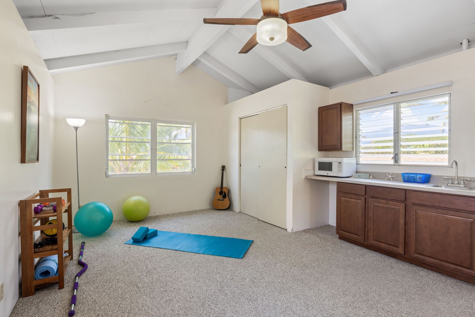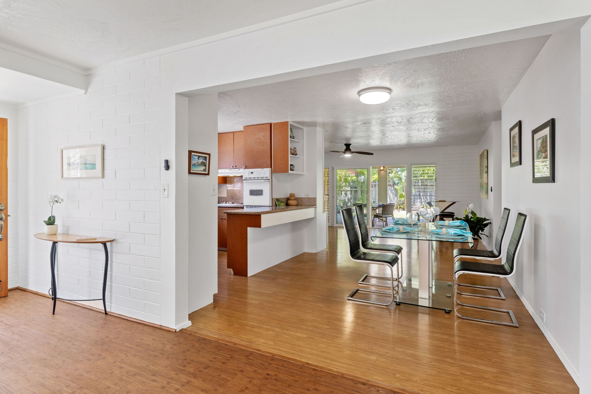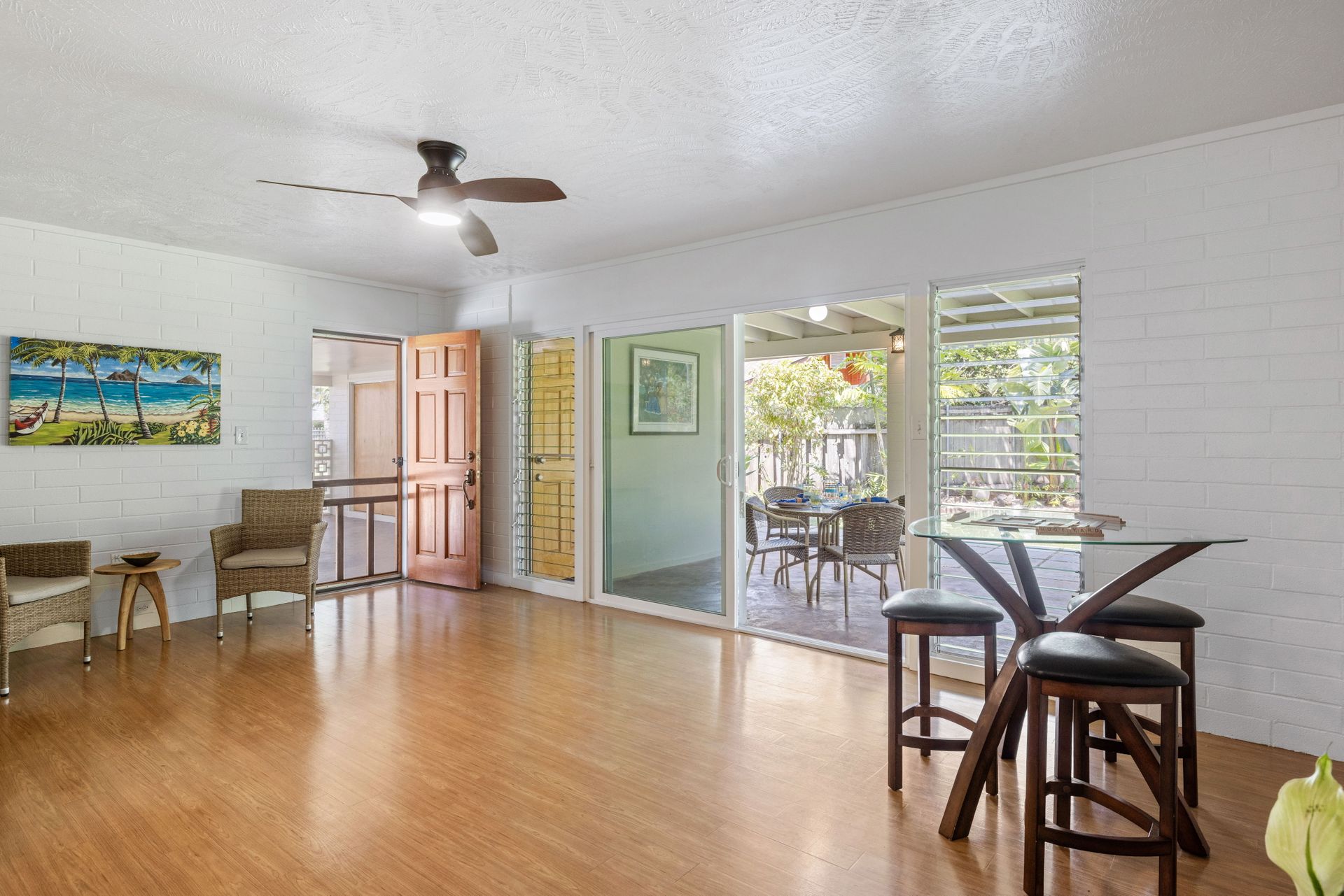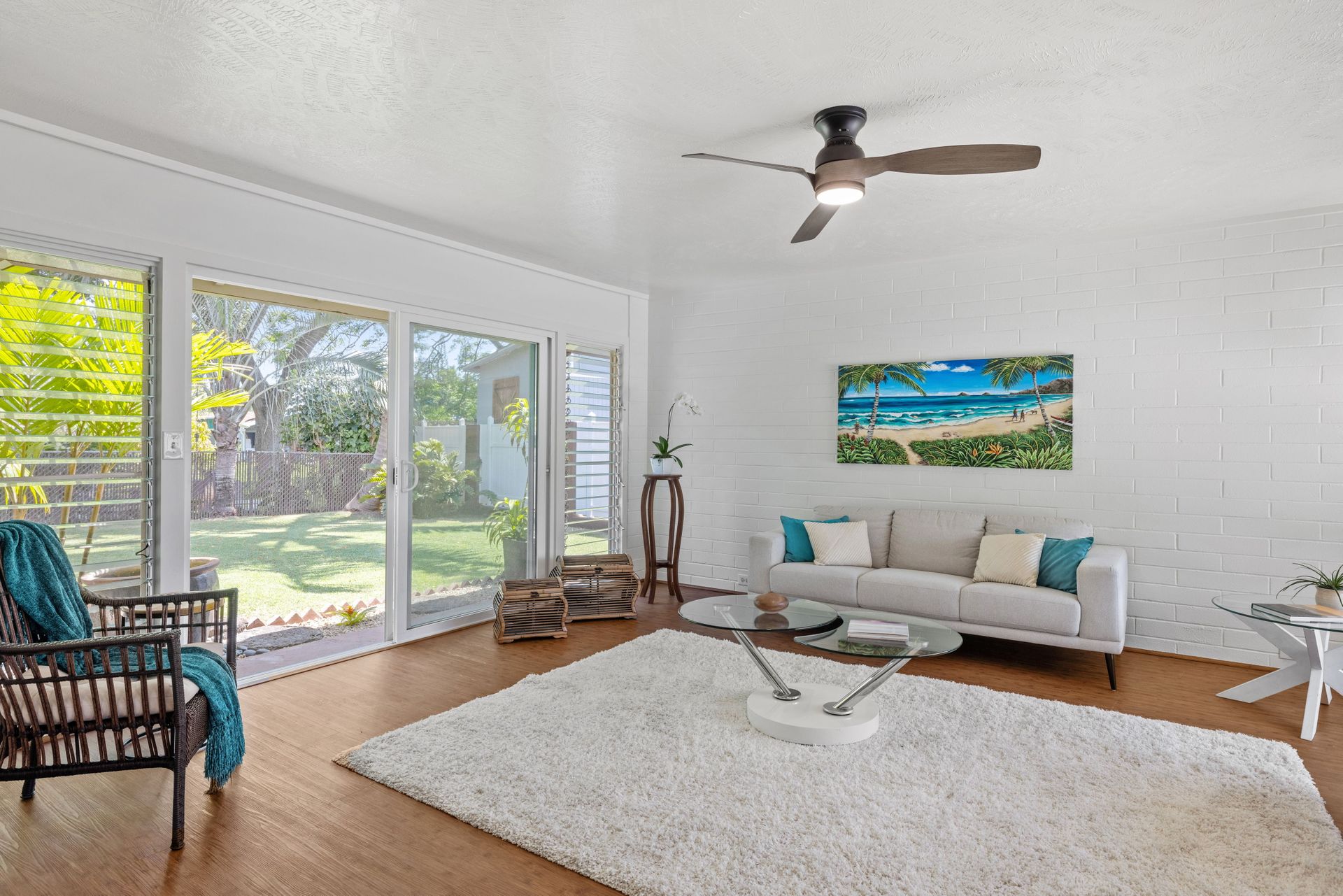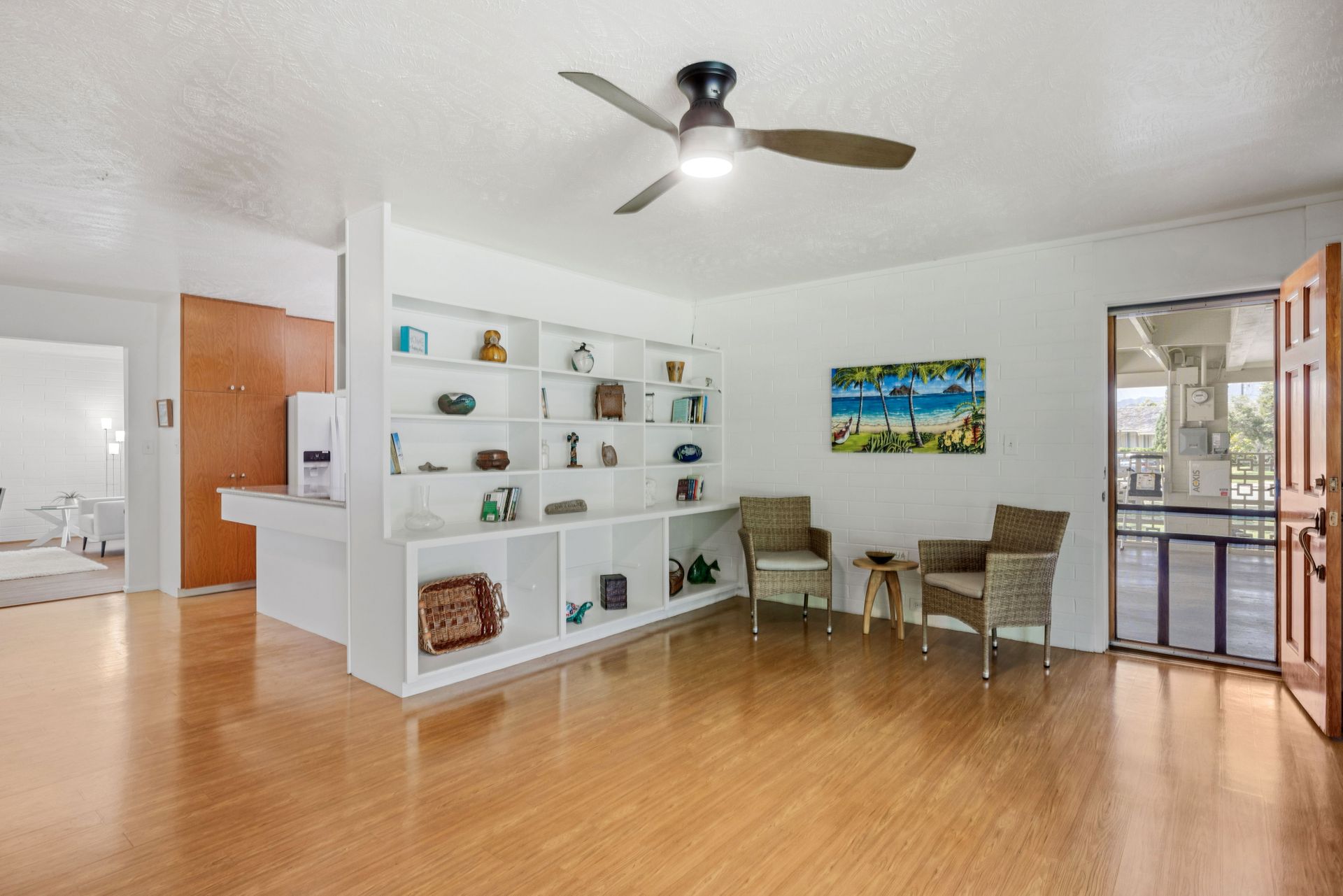 Fabulous location and absolutely charming! Rarely available cul-de-sac location in area of custom homes. This peaceful serene neighborhood is nestled just a short distance to world famous Kailua Beach and trendy Kailua Town. Nicely tucked back from the road, this four bedroom two and one-half bath home offers gracious Hawaiian living with a wonderful open floor plan that naturally flows to the spacious outdoors (10,398 square foot lot). Features include a separate recreation room above carport, solar hot water, 20 owned PV panels w/net energy metering agreement, freshly painted interior, workshop and separate laundry room off carport, and so much more! This is the Kailua Lifestyle at its best! Must see! Home warranty included.