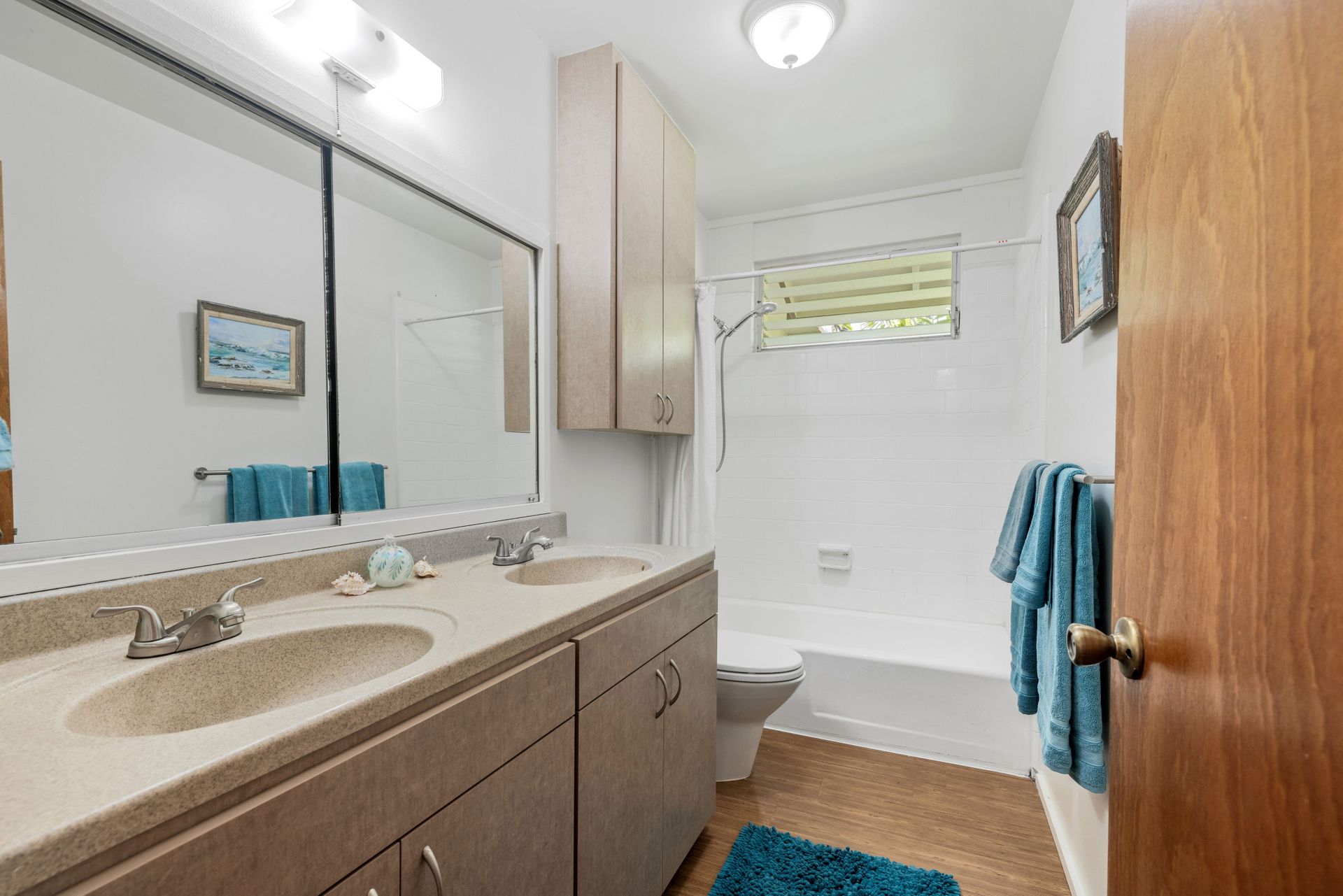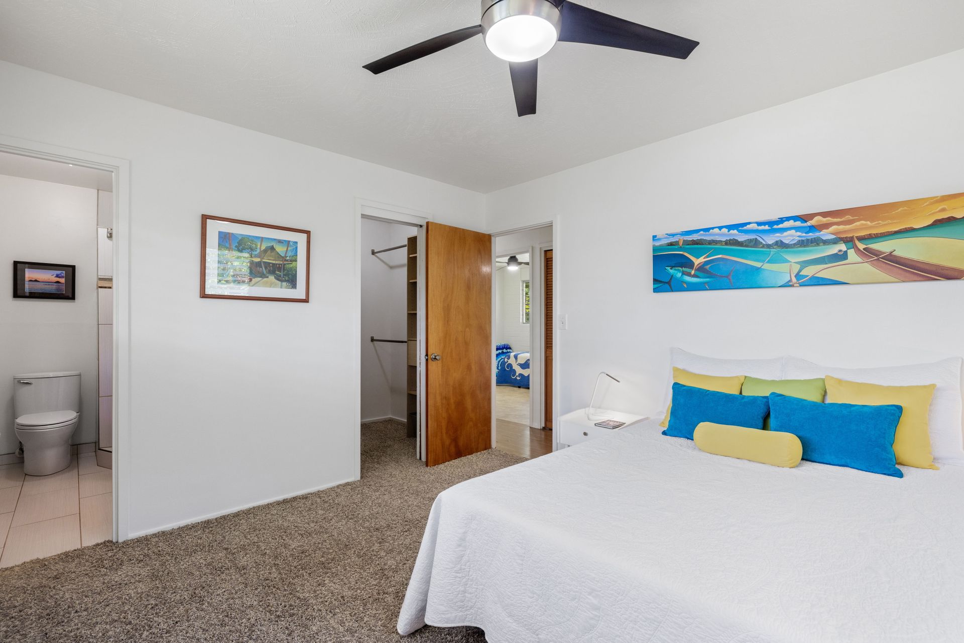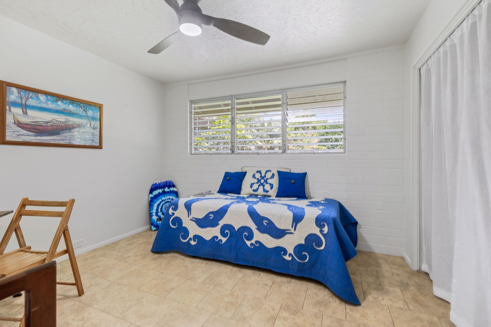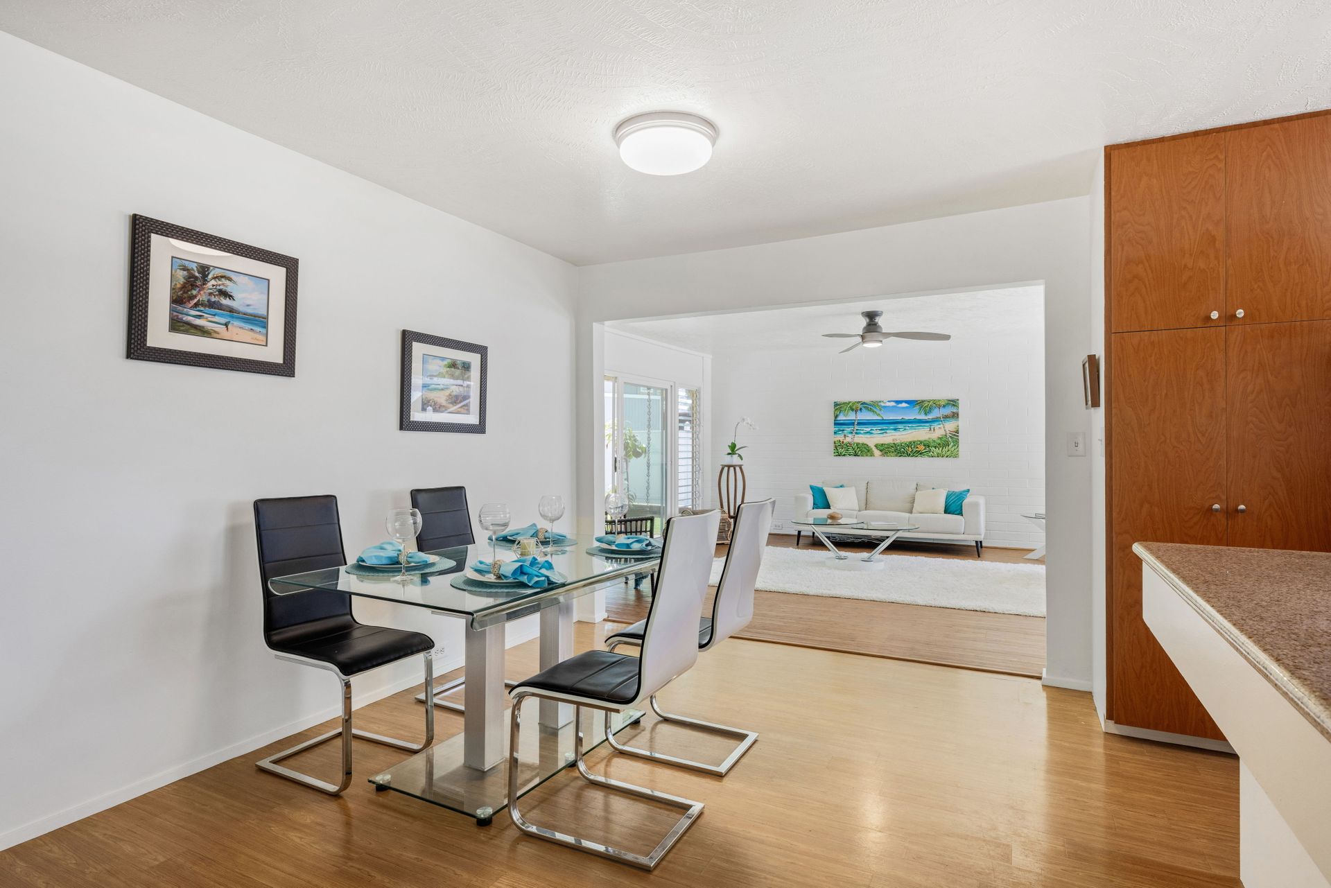 Fabulous location and absolutely charming! Rarely available cul-de-sac location in area of custom homes. This peaceful serene neighborhood is nestled just a short distance to world famous Kailua Beach and trendy Kailua Town. Nicely tucked back from the road, this four bedroom two and one-half bath home offers gracious Hawaiian living with a wonderful open floor plan that naturally flows to the spacious outdoors (10,398 square foot lot). Features include a separate recreation room above carport, solar hot water, 20 owned PV panels w/net energy metering agreement, freshly painted interior, workshop and separate laundry room off carport, and so much more! This is the Kailua Lifestyle at its best! Must see! Home warranty included.