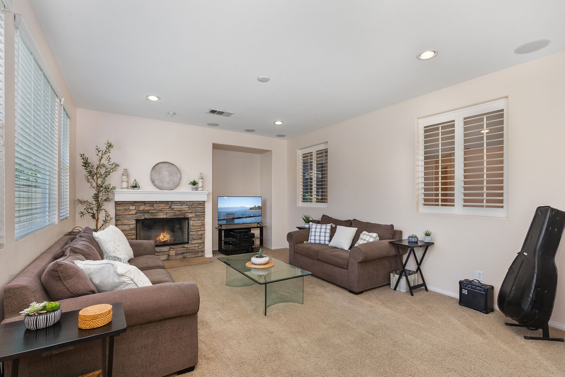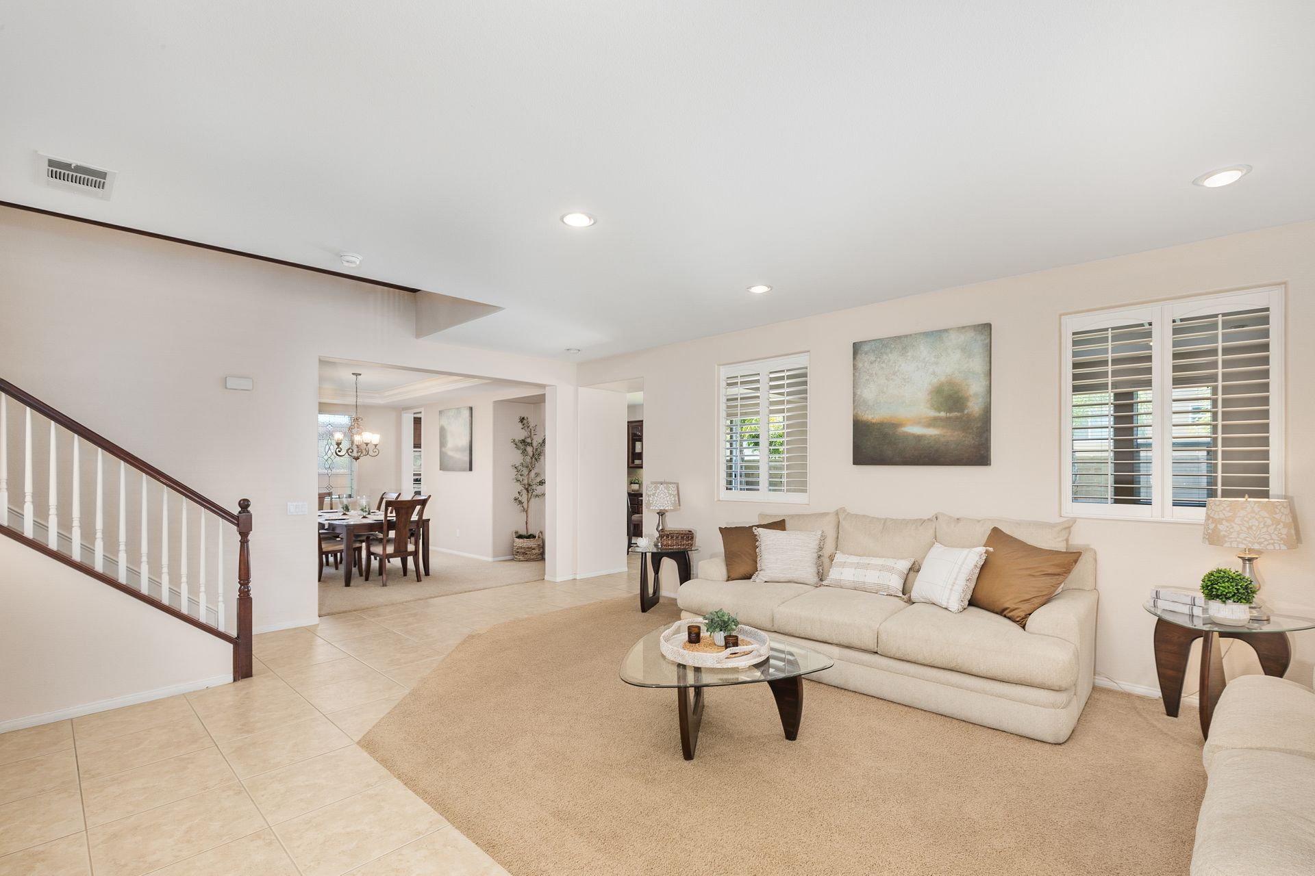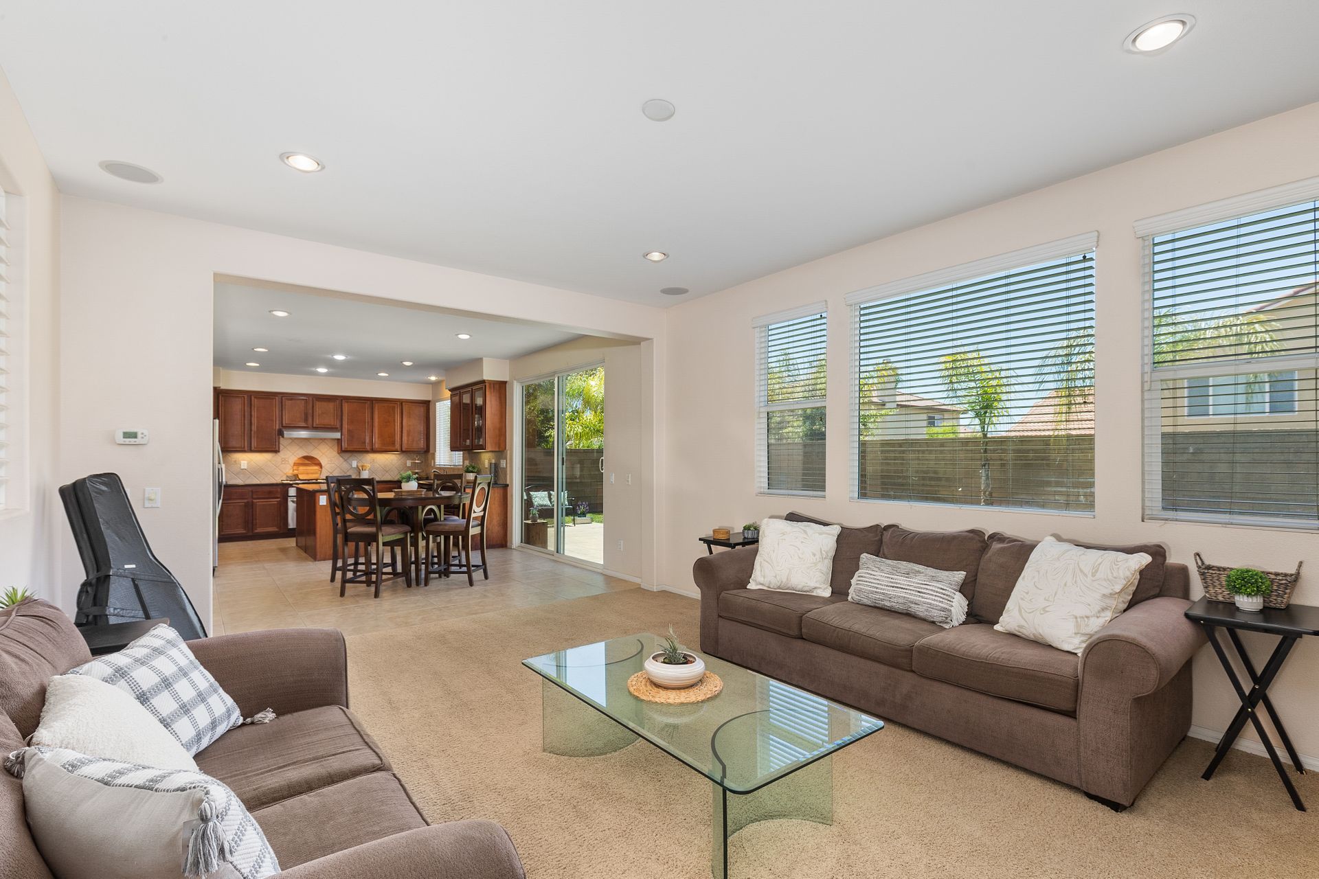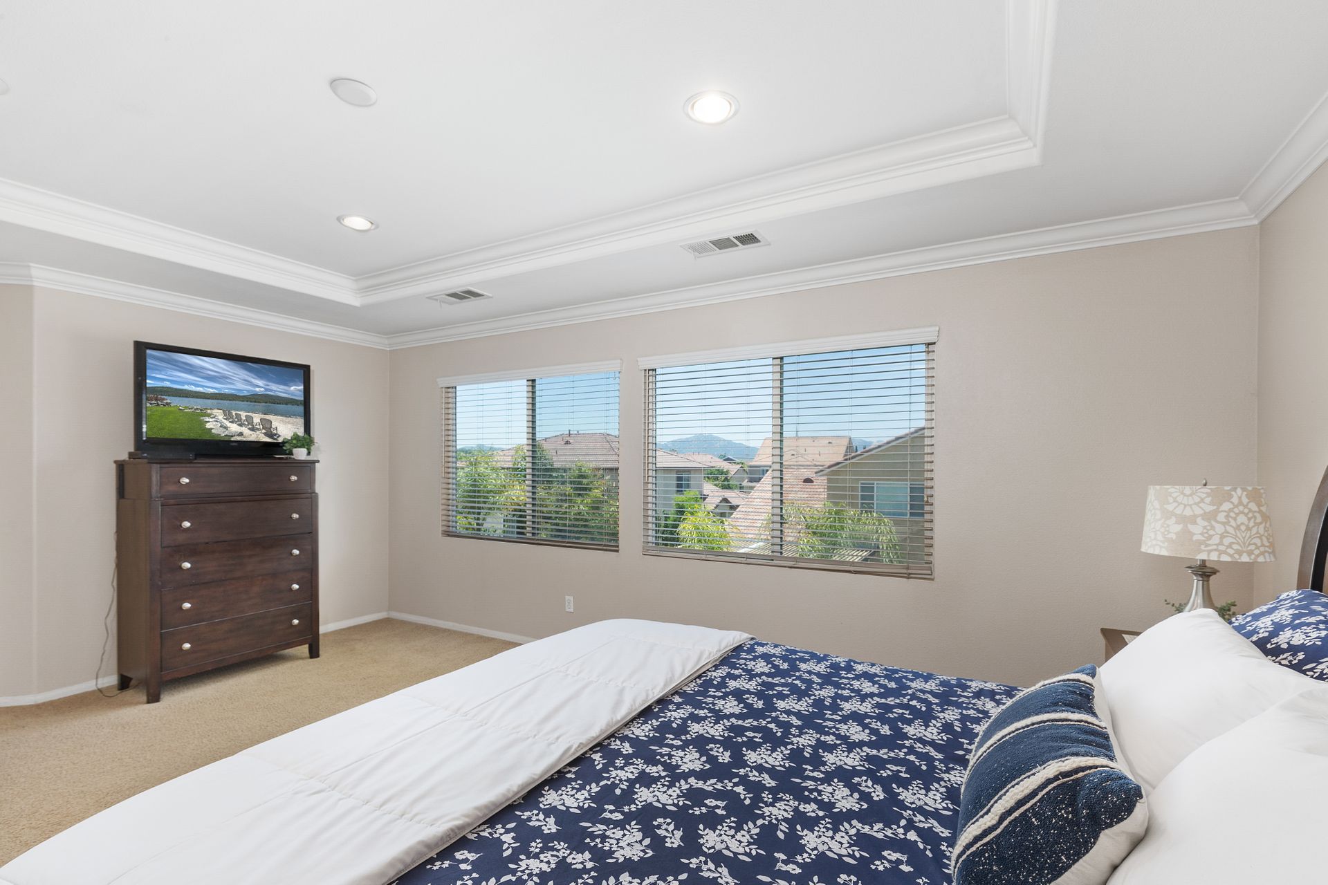Welcome to this stunning South Temecula home, located on a serene cul-de-sac in the desirable Temecula Creek North community. Spanning 3,340 square feet, this beautifully maintained residence offers a perfect blend of luxury, function, and prime location. Step inside to discover five spacious bedrooms and three bathrooms, including a convenient downstairs bedroom and bath, ideal for guests or multi-generational living. The inviting open floor plan is filled with natural light, creating a warm and welcoming atmosphere. Host memorable dinners in the formal dining room, adorned with tray ceilings, crown molding, and a beautiful leaded glass window. The gourmet kitchen is a chef's dream, featuring rich brown cabinetry, sleek black granite countertops, a large center island, stainless steel appliances, and double ovens. The adjacent family room, with its stone-adorned fireplace, and large TV niche, is perfect for gatherings. Ascend the open baluster staircase to a fantastic loft with custom glass sound protection, offering a versatile option for a home office, play area, or entertainment space. The serene primary suite is a true retreat, featuring tray ceilings, can lights, a walk-in wardrobe, dual vanities, an oversized soaking tub, and a separate shower. Secondary bedrooms are generously sized with ample wardrobe space. The free-flowing floor plan seamlessly leads to peaceful rear grounds, ideal for entertaining or enjoying tranquil summer nights. The paved patio is ideal for morning coffee or evening barbecues, while the large, pool-sized lot is a blank canvas for your dream oasis. The unique three-car garage setup includes a separate one-car garage ideal for storage or a workshop. Located in the award-winning Temecula School District, which includes the distinguished Great Oak High School, this home offers unparalleled convenience with nearby trails, easy access to shopping and dining, and convenient freeway access. Low taxes and HOA fees make this an incredible value!
