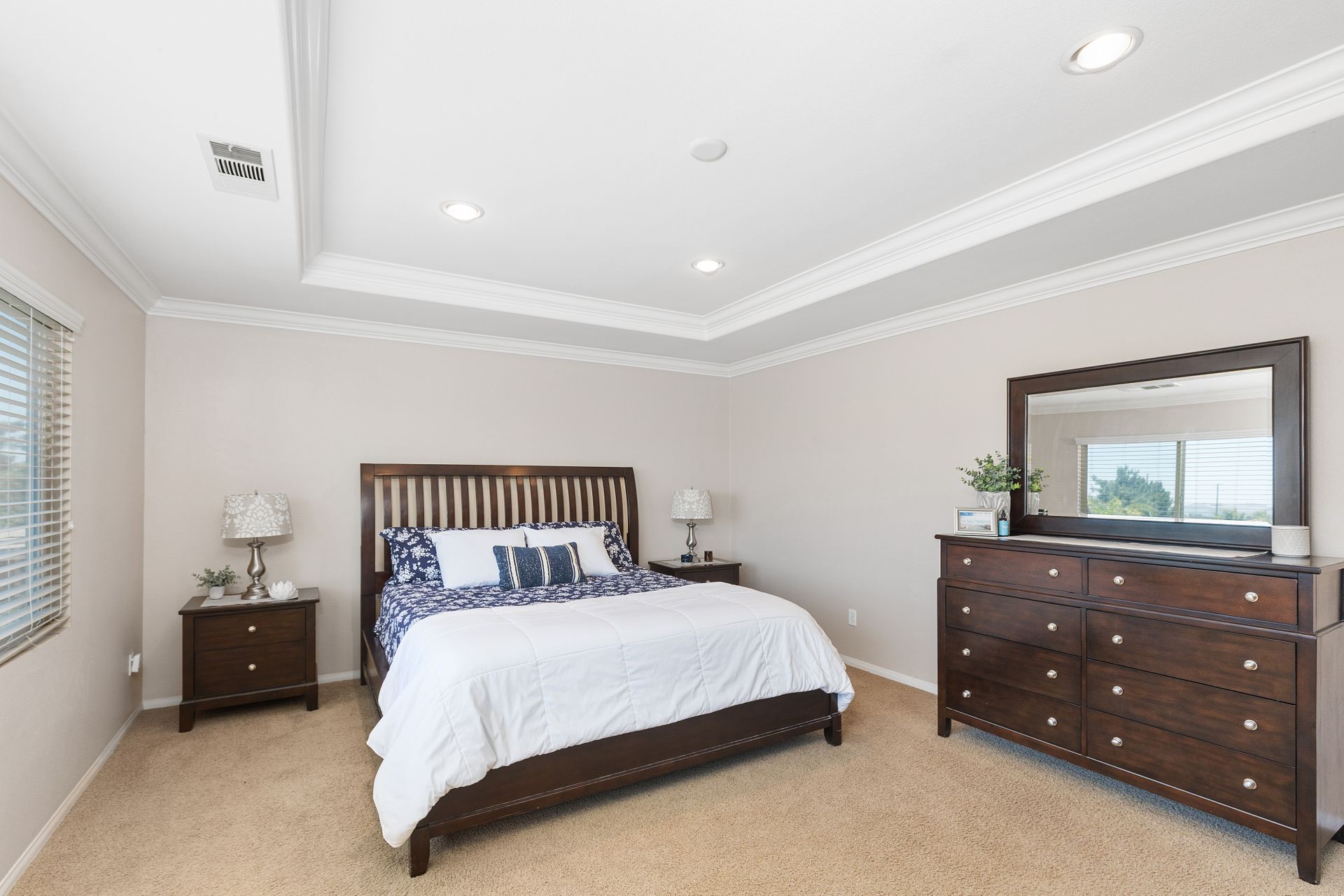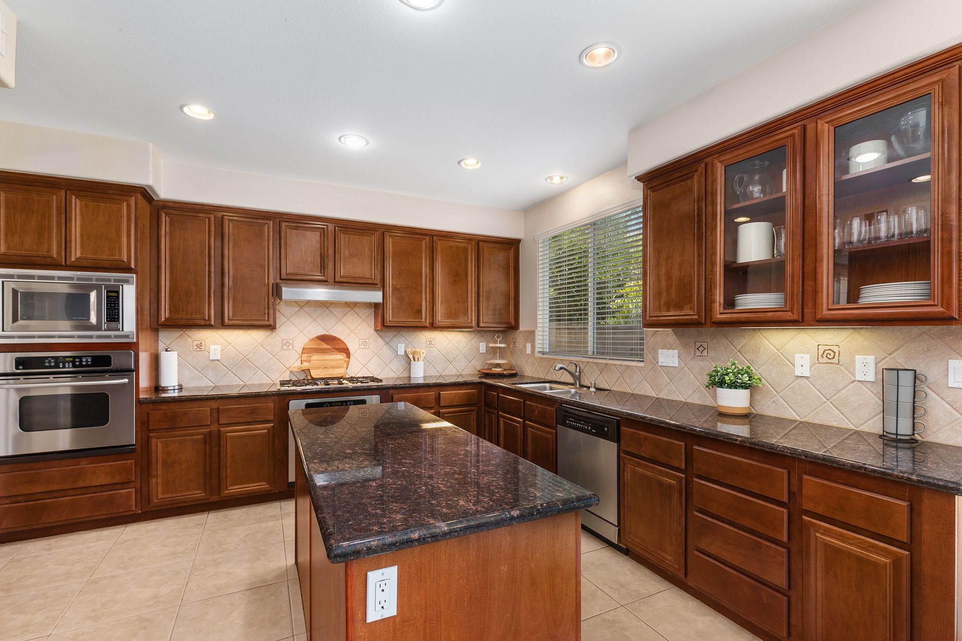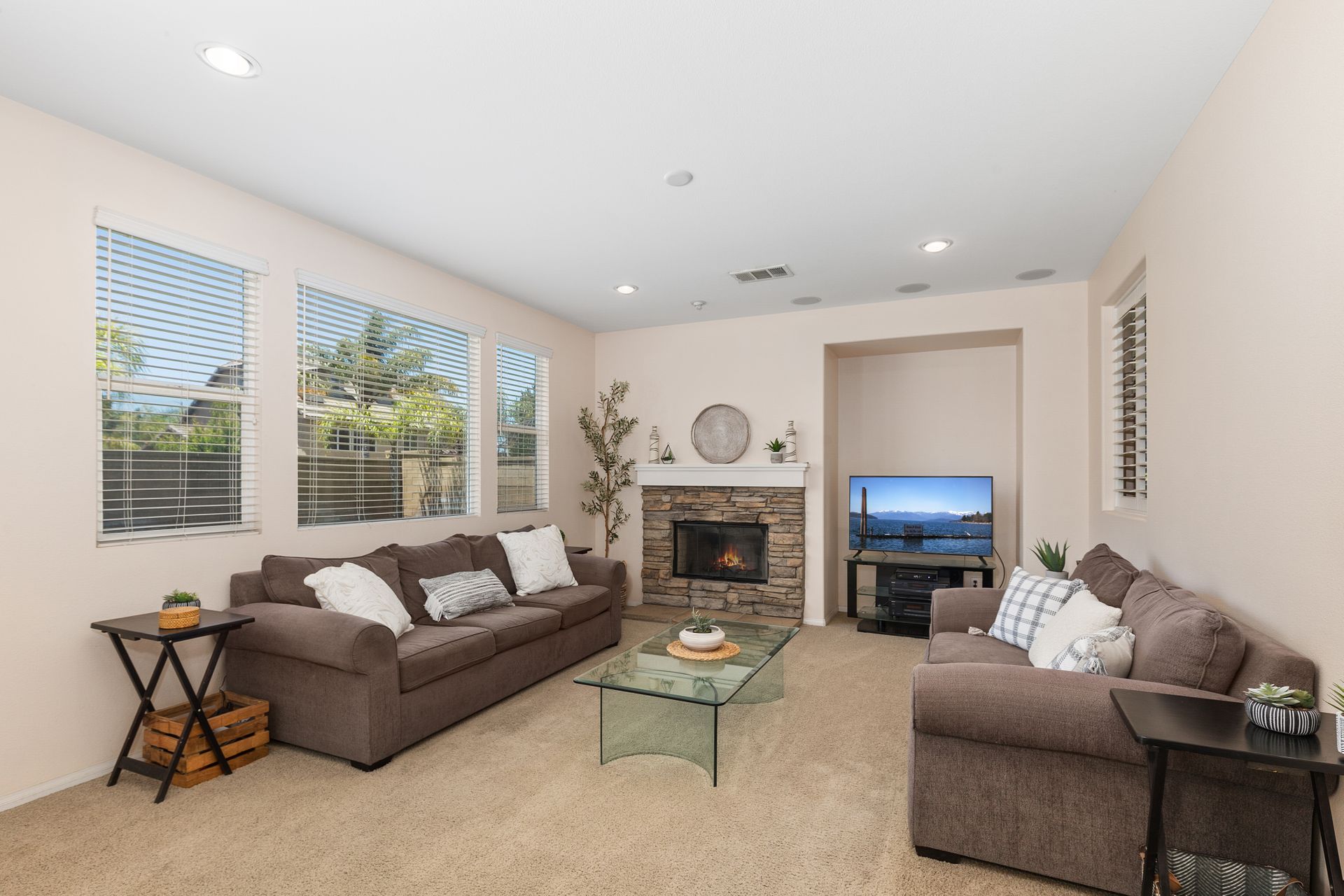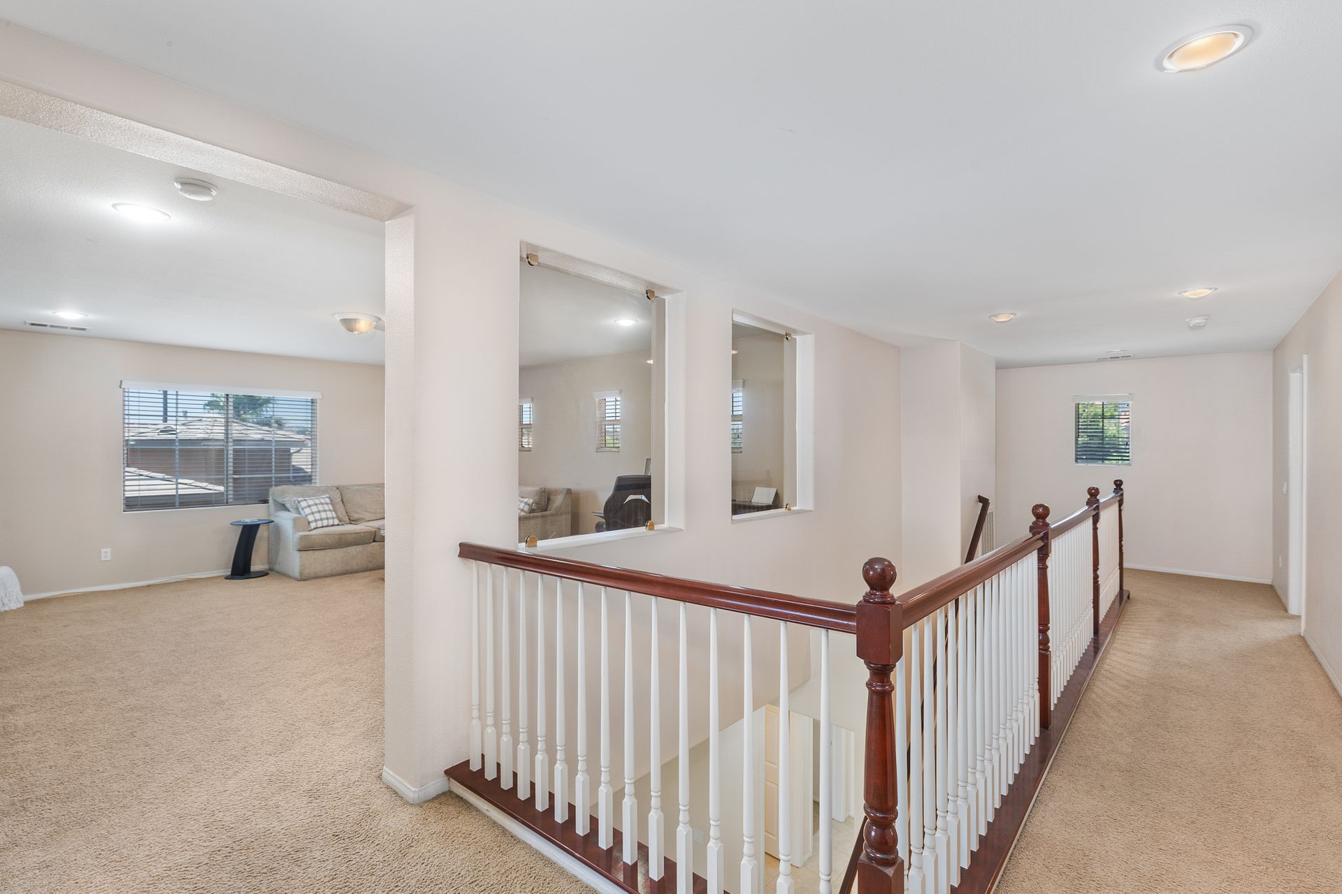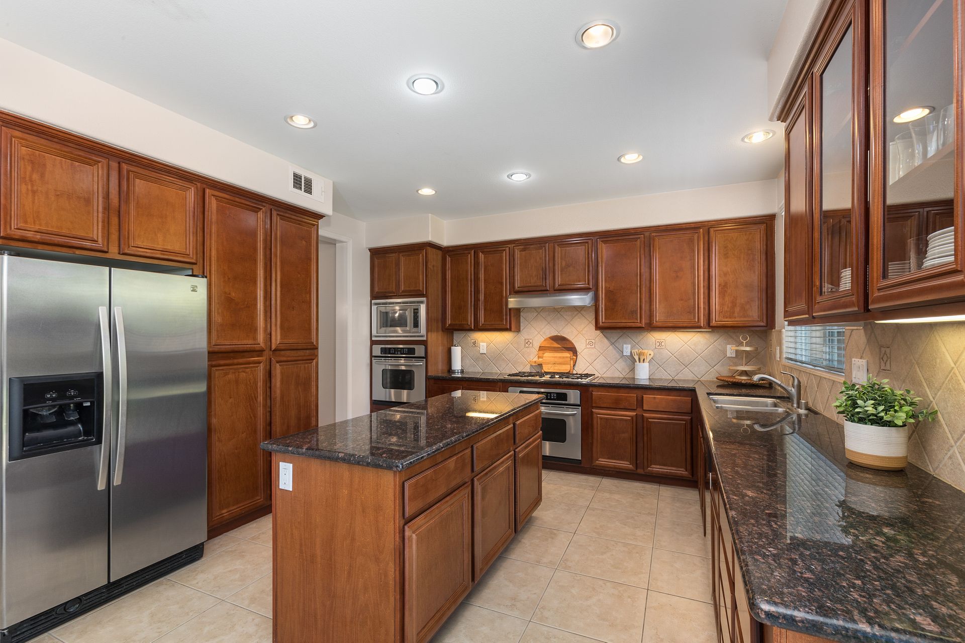 Welcome to this stunning South Temecula home, located on a serene cul-de-sac in the desirable Temecula Creek North community. Spanning 3,340 square feet, this beautifully maintained residence offers a perfect blend of luxury, function, and prime location. Step inside to discover five spacious bedrooms and three bathrooms, including a convenient downstairs bedroom and bath, ideal for guests or multi-generational living. The inviting open floor plan is filled with natural light, creating a warm and welcoming atmosphere. Host memorable dinners in the formal dining room, adorned with tray ceilings, crown molding, and a beautiful leaded glass window. The gourmet kitchen is a chef's dream, featuring rich brown cabinetry, sleek black granite countertops, a large center island, stainless steel appliances, and double ovens. The adjacent family room, with its stone-adorned fireplace, and large TV niche, is perfect for gatherings. Ascend the open baluster staircase to a fantastic loft with custom glass sound protection, offering a versatile option for a home office, play area, or entertainment space. The serene primary suite is a true retreat, featuring tray ceilings, can lights, a walk-in wardrobe, dual vanities, an oversized soaking tub, and a separate shower. Secondary bedrooms are generously sized with ample wardrobe space. The free-flowing floor plan seamlessly leads to peaceful rear grounds, ideal for entertaining or enjoying tranquil summer nights. The paved patio is ideal for morning coffee or evening barbecues, while the large, pool-sized lot is a blank canvas for your dream oasis. The unique three-car garage setup includes a separate one-car garage ideal for storage or a workshop. Located in the award-winning Temecula School District, which includes the distinguished Great Oak High School, this home offers unparalleled convenience with nearby trails, easy access to shopping and dining, and convenient freeway access. Low taxes and HOA fees make this an incredible value!