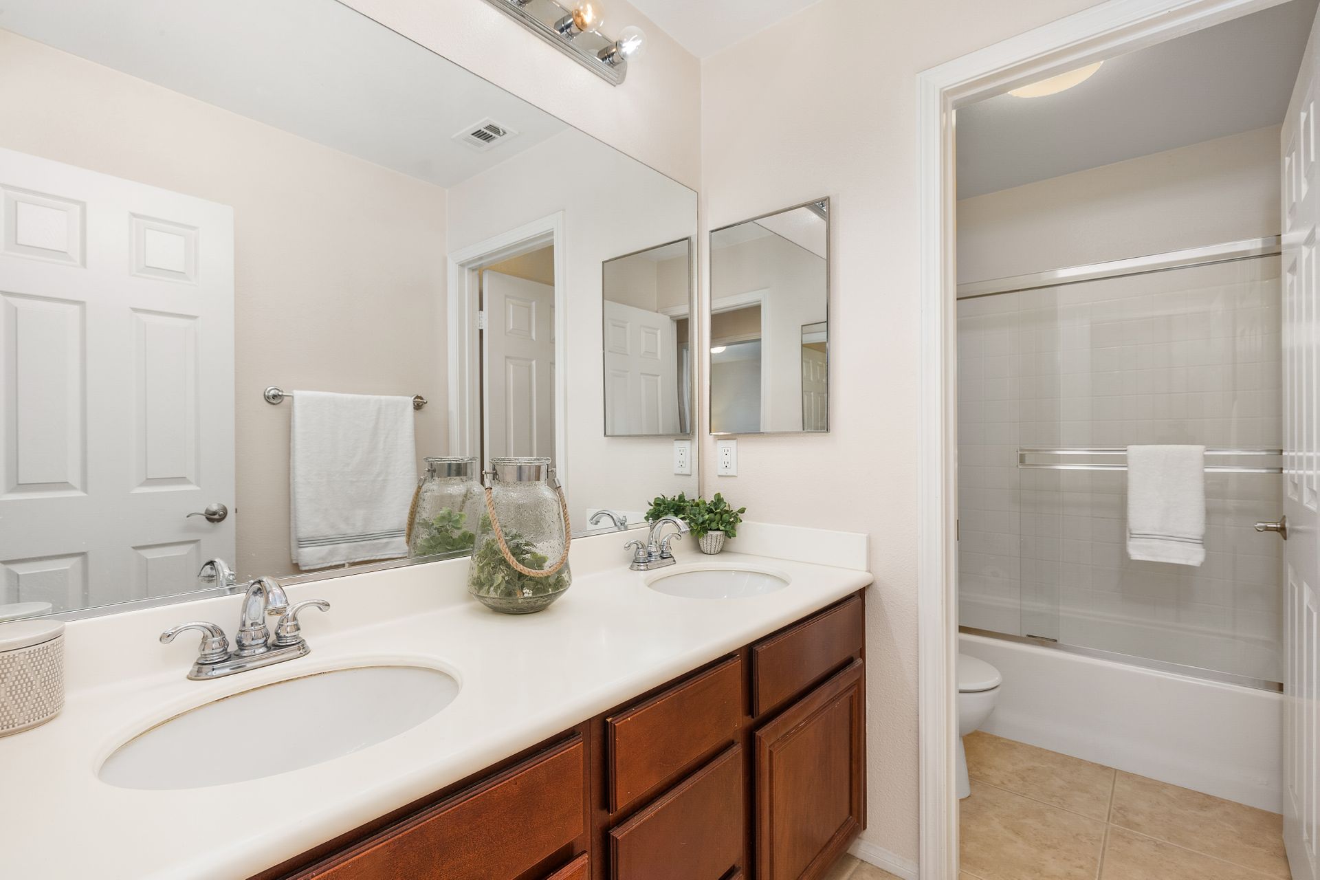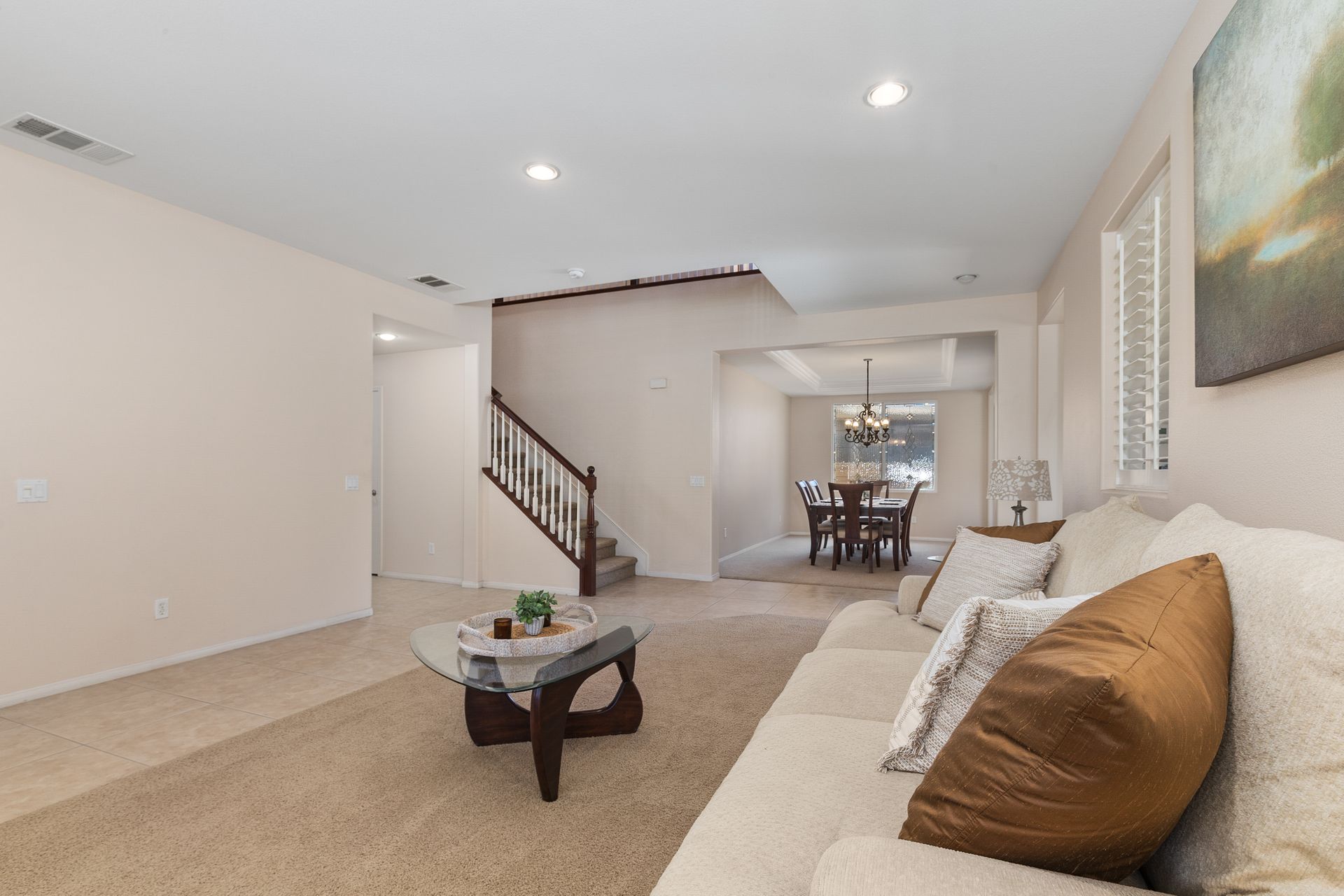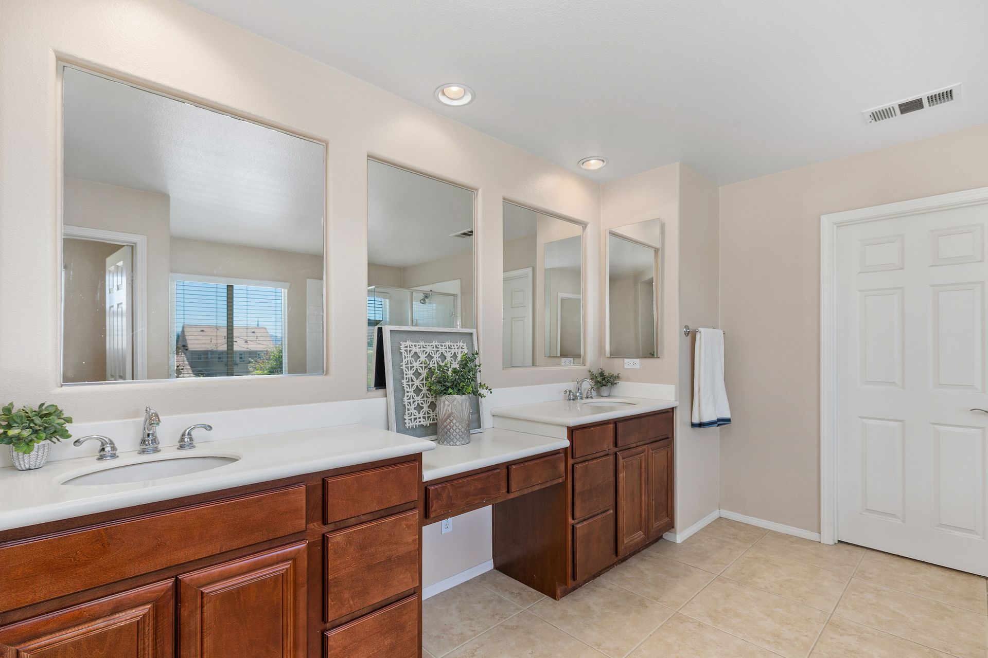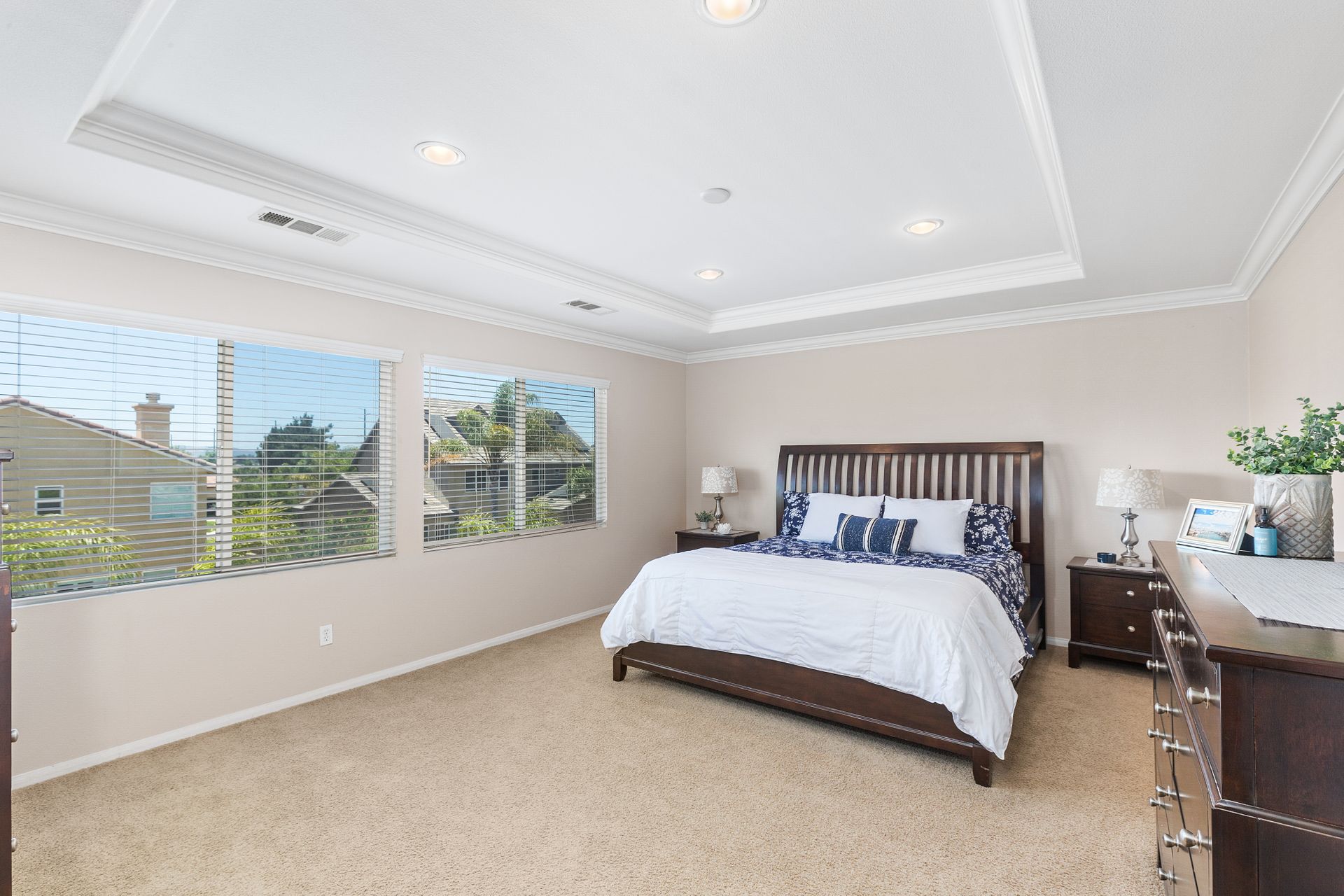Welcome to this stunning South Temecula home, located on a serene cul-de-sac in the desirable Temecula Creek North community. Spanning 3,340 square feet, this beautifully maintained residence offers a perfect blend of luxury, function, and prime location. Step inside to discover five spacious bedrooms and three bathrooms, including a convenient downstairs bedroom and bath, ideal for guests or multi-generational living. The inviting open floor plan is filled with natural light, creating a warm and welcoming atmosphere. Host memorable dinners in the formal dining room, adorned with tray ceilings, crown molding, and a beautiful leaded glass window. The gourmet kitchen is a chef's dream, featuring rich brown cabinetry, sleek black granite countertops, a large center island, stainless steel appliances, and double ovens. The adjacent family room, with its stone-adorned fireplace, and large TV niche, is perfect for gatherings. Ascend the open baluster staircase to a fantastic loft with custom glass sound protection, offering a versatile option for a home office, play area, or entertainment space. The serene primary suite is a true retreat, featuring tray ceilings, can lights, a walk-in wardrobe, dual vanities, an oversized soaking tub, and a separate shower. Secondary bedrooms are generously sized with ample wardrobe space. The free-flowing floor plan seamlessly leads to peaceful rear grounds, ideal for entertaining or enjoying tranquil summer nights. The paved patio is ideal for morning coffee or evening barbecues, while the large, pool-sized lot is a blank canvas for your dream oasis. The unique three-car garage setup includes a separate one-car garage ideal for storage or a workshop. Located in the award-winning Temecula School District, which includes the distinguished Great Oak High School, this home offers unparalleled convenience with nearby trails, easy access to shopping and dining, and convenient freeway access. Low taxes and HOA fees make this an incredible value!