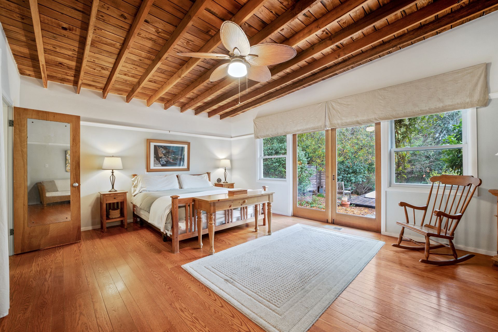 Private single level home in the flats of Sleepy Hollow, situated on an approximately .42 acre creek side lot. The high ceiling and walls of glass in the great room brings the outdoors in. The remodeled kitchen with great natural light, overlooks the back patio and outdoor living area with built in barbecue. The three bedrooms, plus an office, along with a sunroom provides plenty of space. Most all the rooms open to the backyard which offers a gracious indoor/outdoor flow. Additional features include a hot tub, outdoor shower and deck overlooking the seasonal creek side setting. This is the Sleepy Hollow home you have been waiting for. With numerous upgrades, this home is ideal as is along with plenty of opportunity. Near abundant hiking trails and award-winning schools!