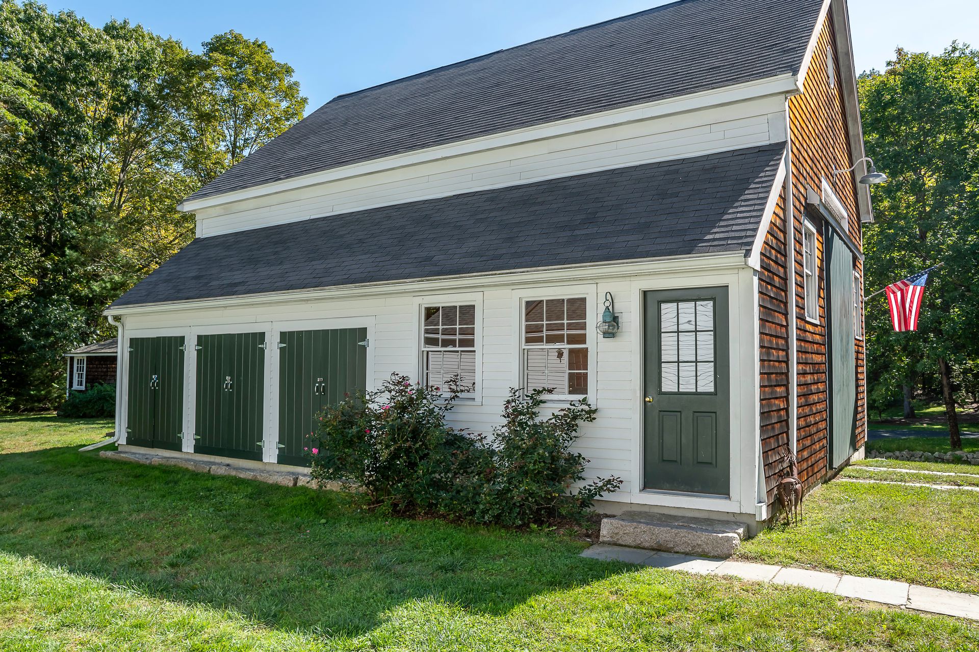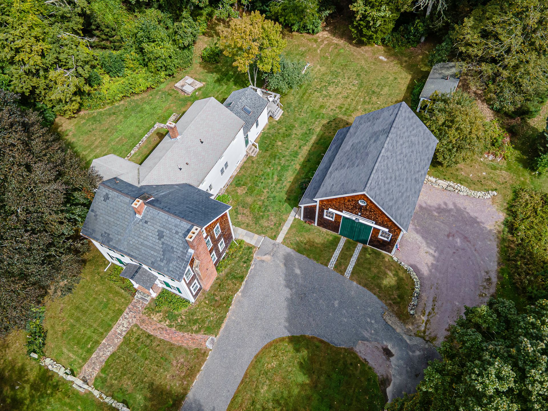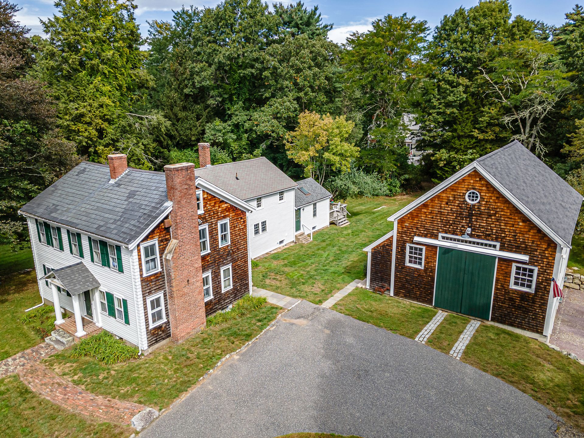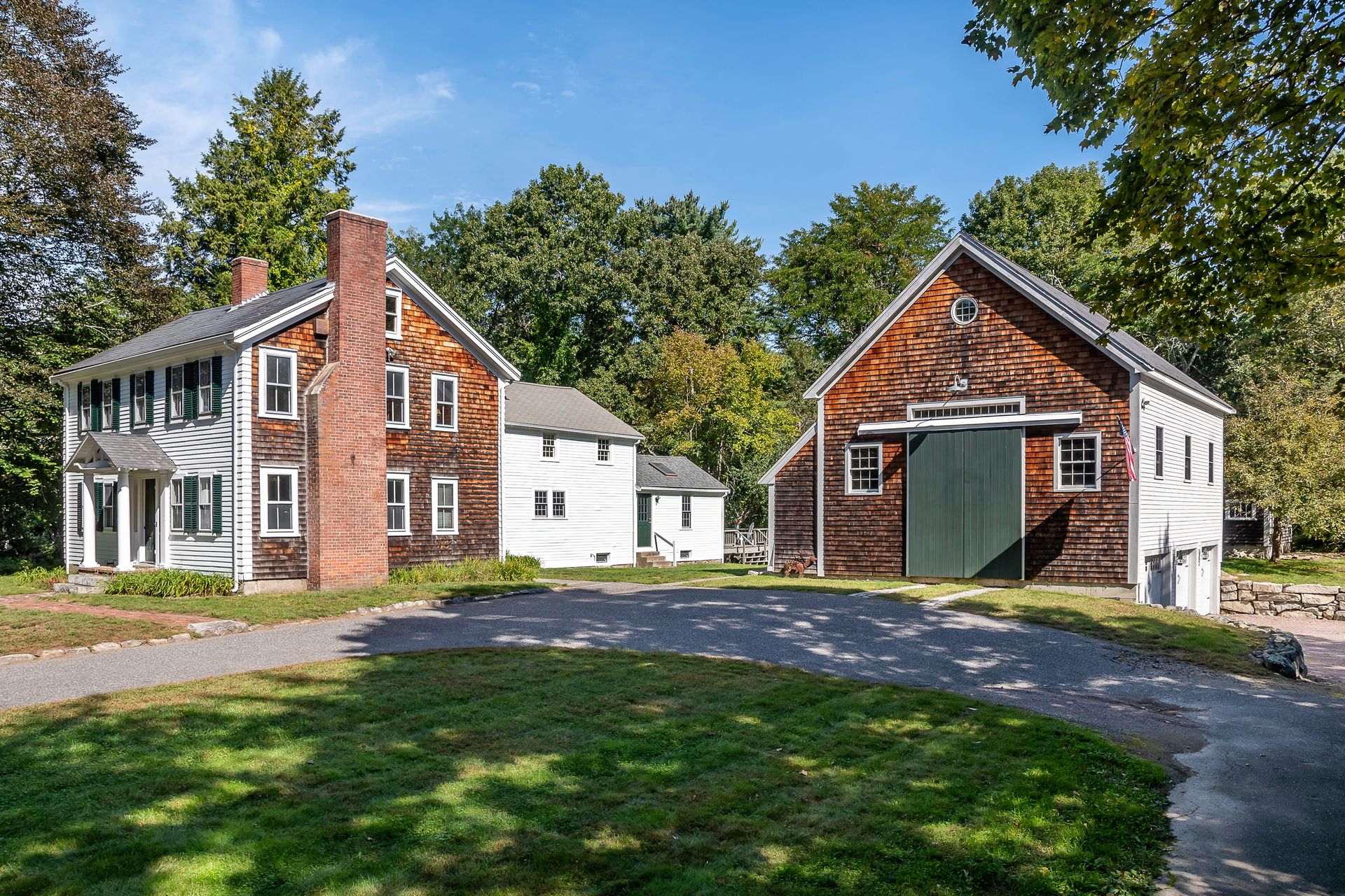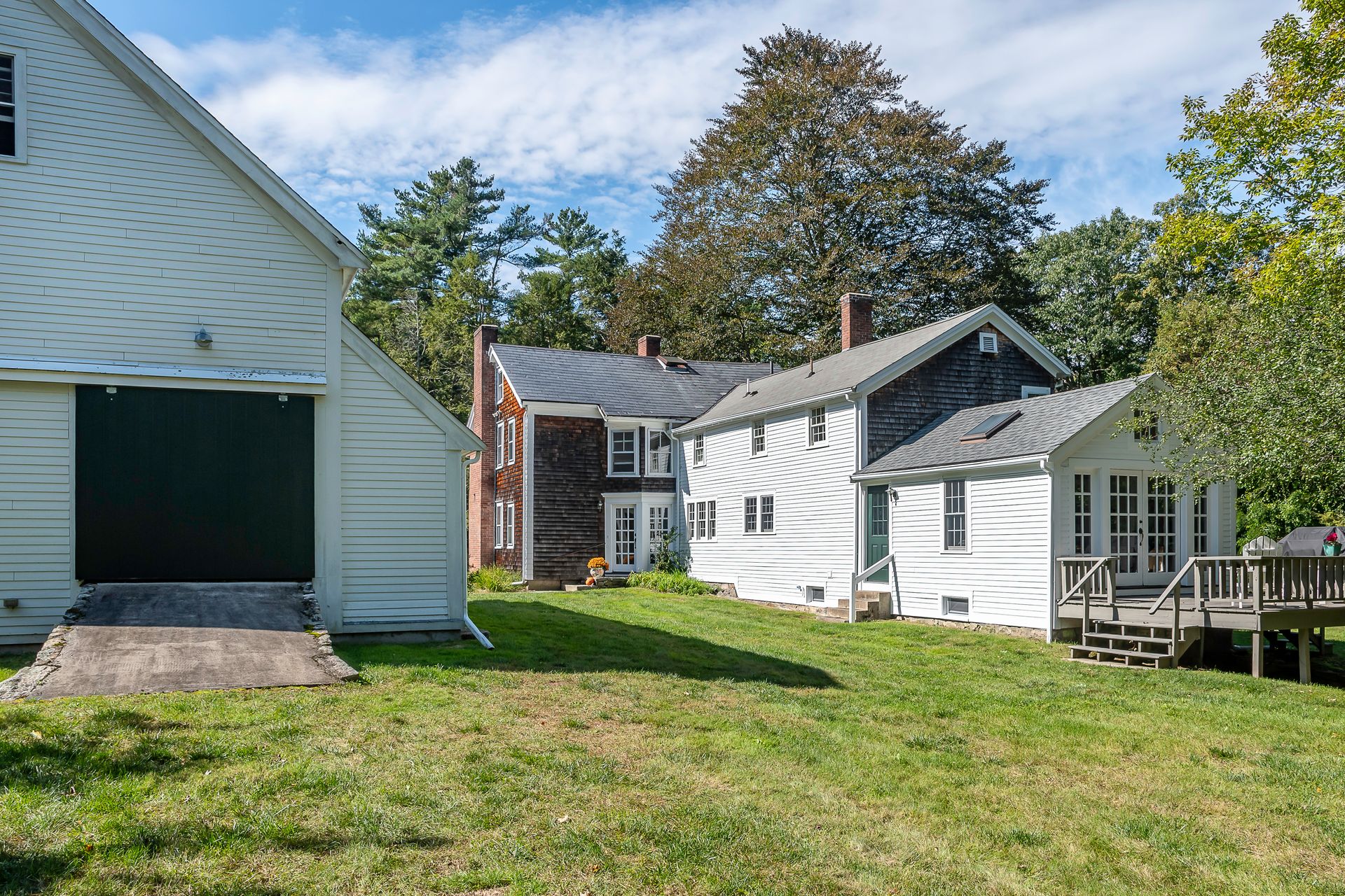 Beautiful 1800's Antique Colonial with a three-story ten-year-old barn three-car garage. Well maintained with new heating system. Charm and warmth abound with this stately home. Wide pine floors with an open floor plan for a home this age. Plenty of closet space not often seen in antiques. The kitchen opens into the cathedral family room with skylights and French doors to a sunny deck. The living room and dining rooms connect and open to a side porch. The front room with fireplace can be a library or office. The second floor has two baths and four-plus bedrooms or an office. Step out to the summer room for a workout or enhance it to your desires! The bedrooms have plenty of closet space. The barn has three parking spots with power doors on the lower level. The second level can be used as a shop or storage. And the third floor is great storage or can be converted to a game room, office or workout room. There are two outbuildings. This is a great home with flexible uses.