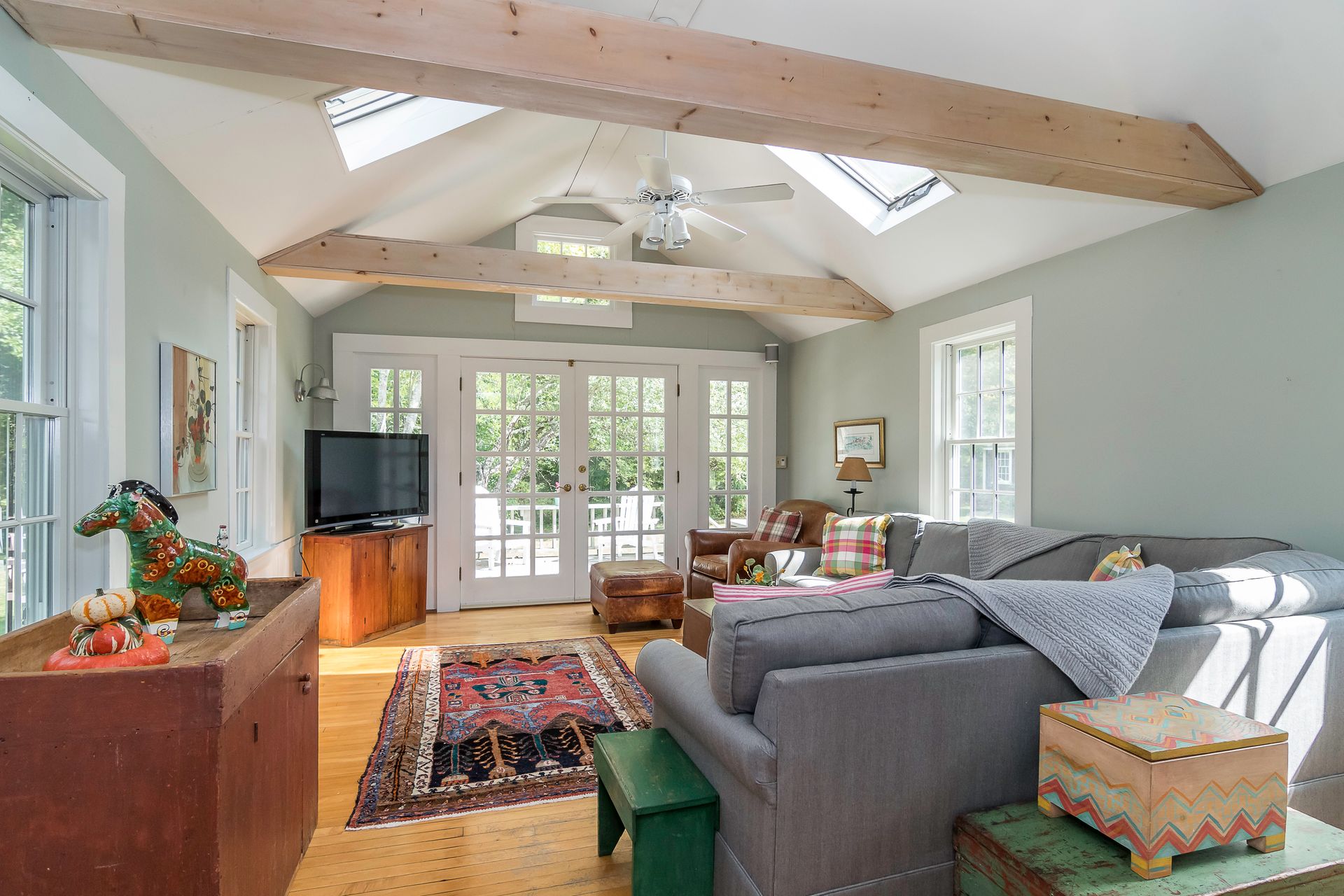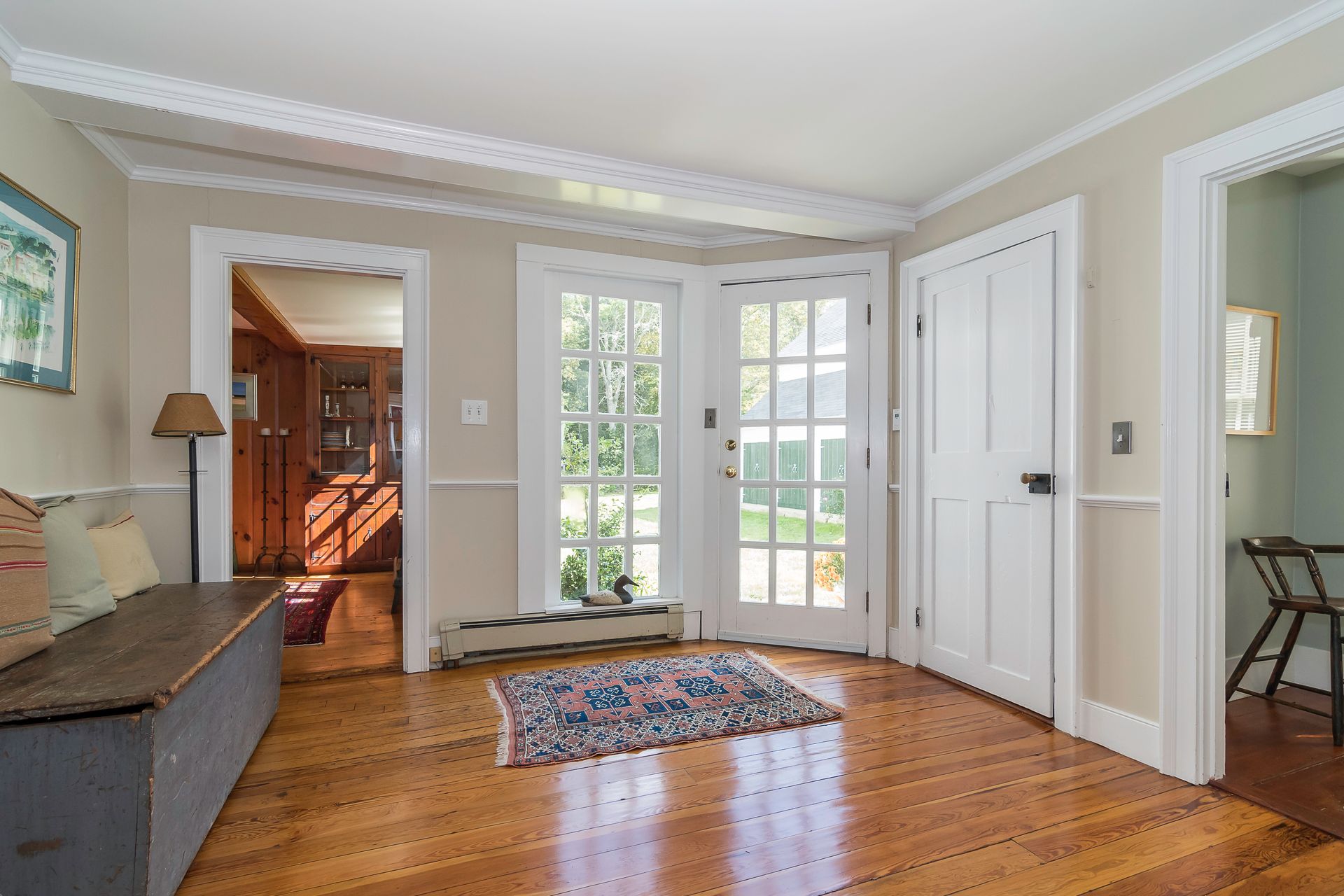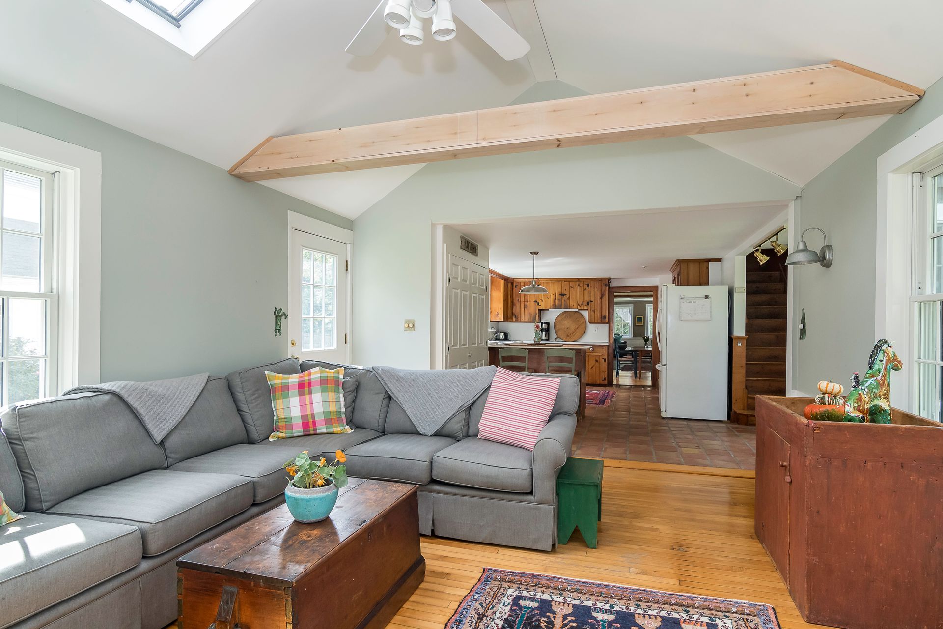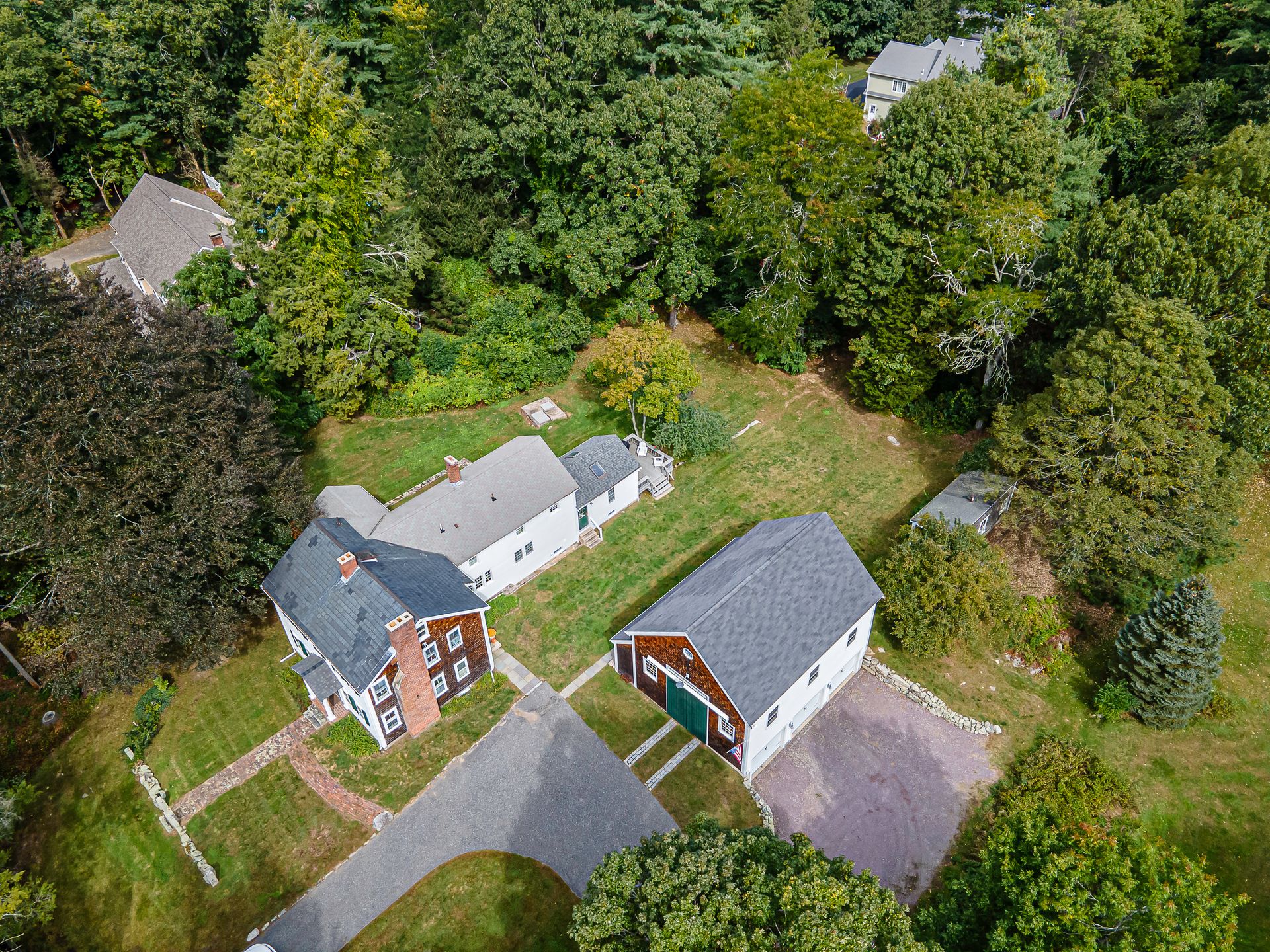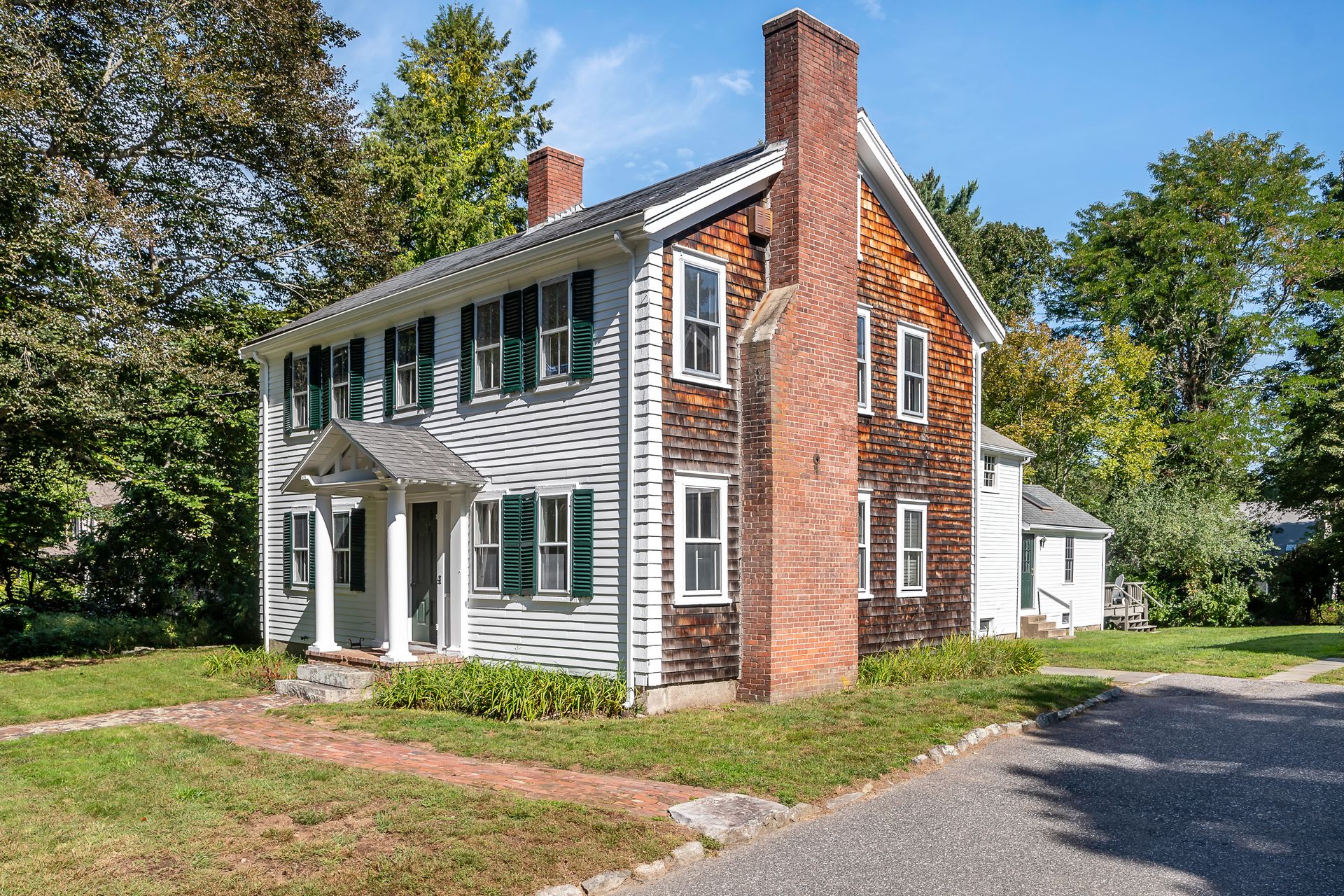 Beautiful 1800's Antique Colonial with a three-story ten-year-old barn three-car garage. Well maintained with new heating system. Charm and warmth abound with this stately home. Wide pine floors with an open floor plan for a home this age. Plenty of closet space not often seen in antiques. The kitchen opens into the cathedral family room with skylights and French doors to a sunny deck. The living room and dining rooms connect and open to a side porch. The front room with fireplace can be a library or office. The second floor has two baths and four-plus bedrooms or an office. Step out to the summer room for a workout or enhance it to your desires! The bedrooms have plenty of closet space. The barn has three parking spots with power doors on the lower level. The second level can be used as a shop or storage. And the third floor is great storage or can be converted to a game room, office or workout room. There are two outbuildings. This is a great home with flexible uses.