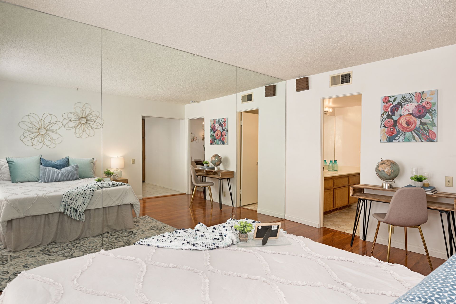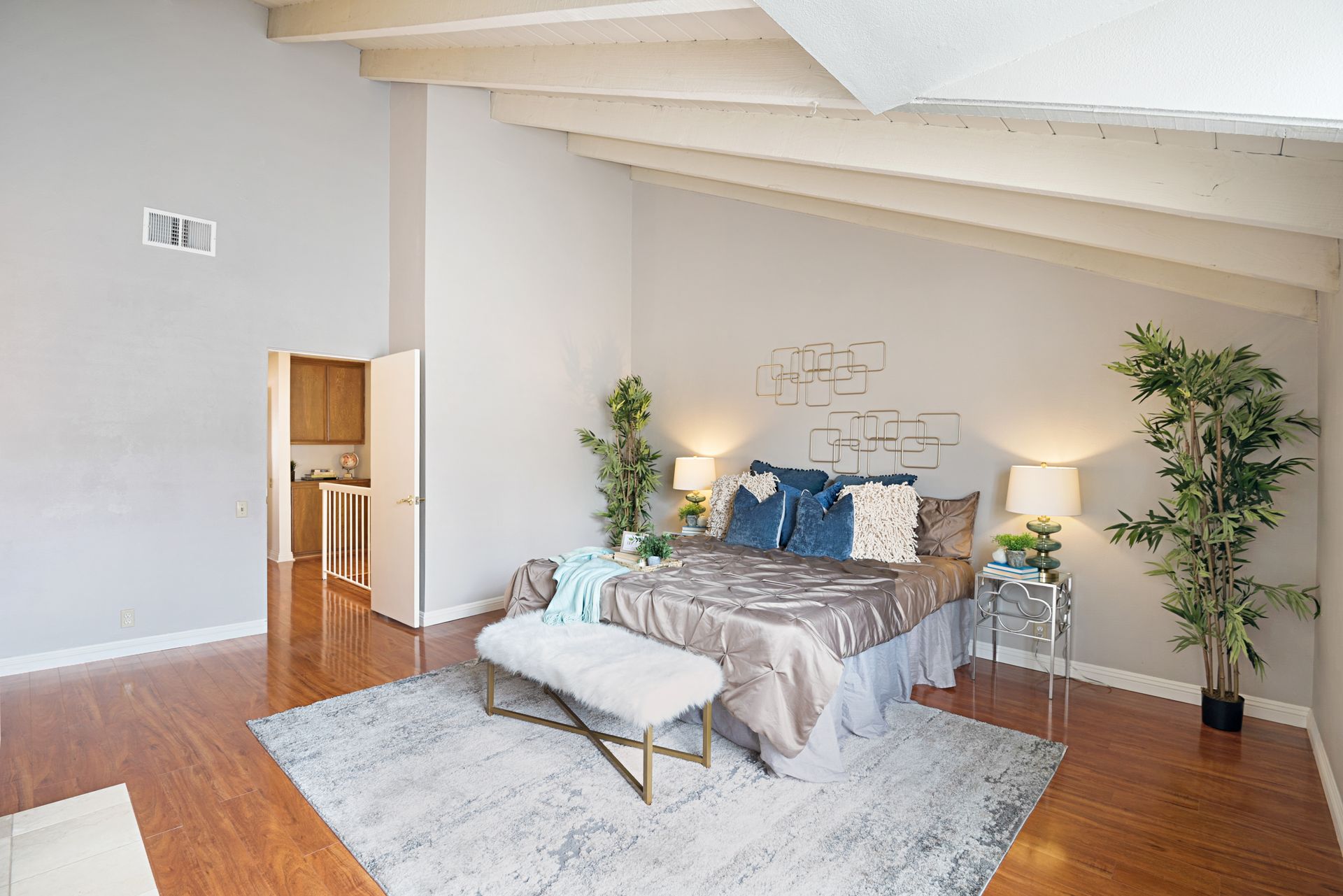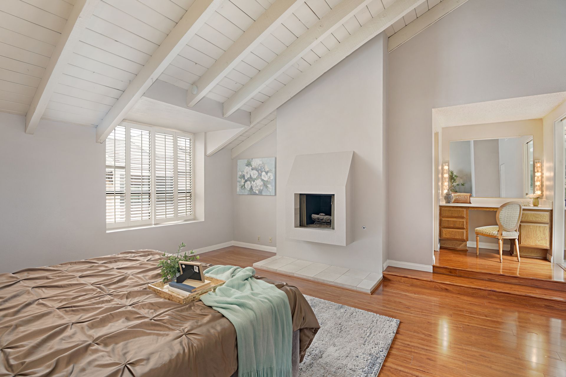 Contemporary townhome in the heart of Arcadia. This home has been beautifully maintained. The main living area has rooms with ceilings that are full of light. The formal living room with gleaming floors, plantation shutters, wet bar and floor-to-ceiling fireplace lead to a large private patio, provides a perfect place for entertaining or al fresco dining. The dining room is oversized and located next to the kitchen. Close to the kitchen is a den/family room or home office, which could be easily converted to a third bedroom with 3/4 bath. The luxurious master suite bedroom on the top floor has beamed ceilings, fireplace, large walk-in closet and bathroom w/soaking tub, two sinks, a separate shower and a large skylight for natural light. There is an additional bedroom suite on the second floor complete with its own bathroom and walk-in closet. The laundry area with ample closet space is located on the same level as the bedrooms for added convenience. There is also a direct access, 2-car garage with additional storage. The complex has 32 units with a sparkling community pool and spa just in time for summer fun. Located in Arcadia’s award-winning school district, close proximity to Westfield mall and minutes from the Santa Anita Racetrack, Arboretum and freeway access. This turn-key unit is a ‘must see’ to fully appreciate!