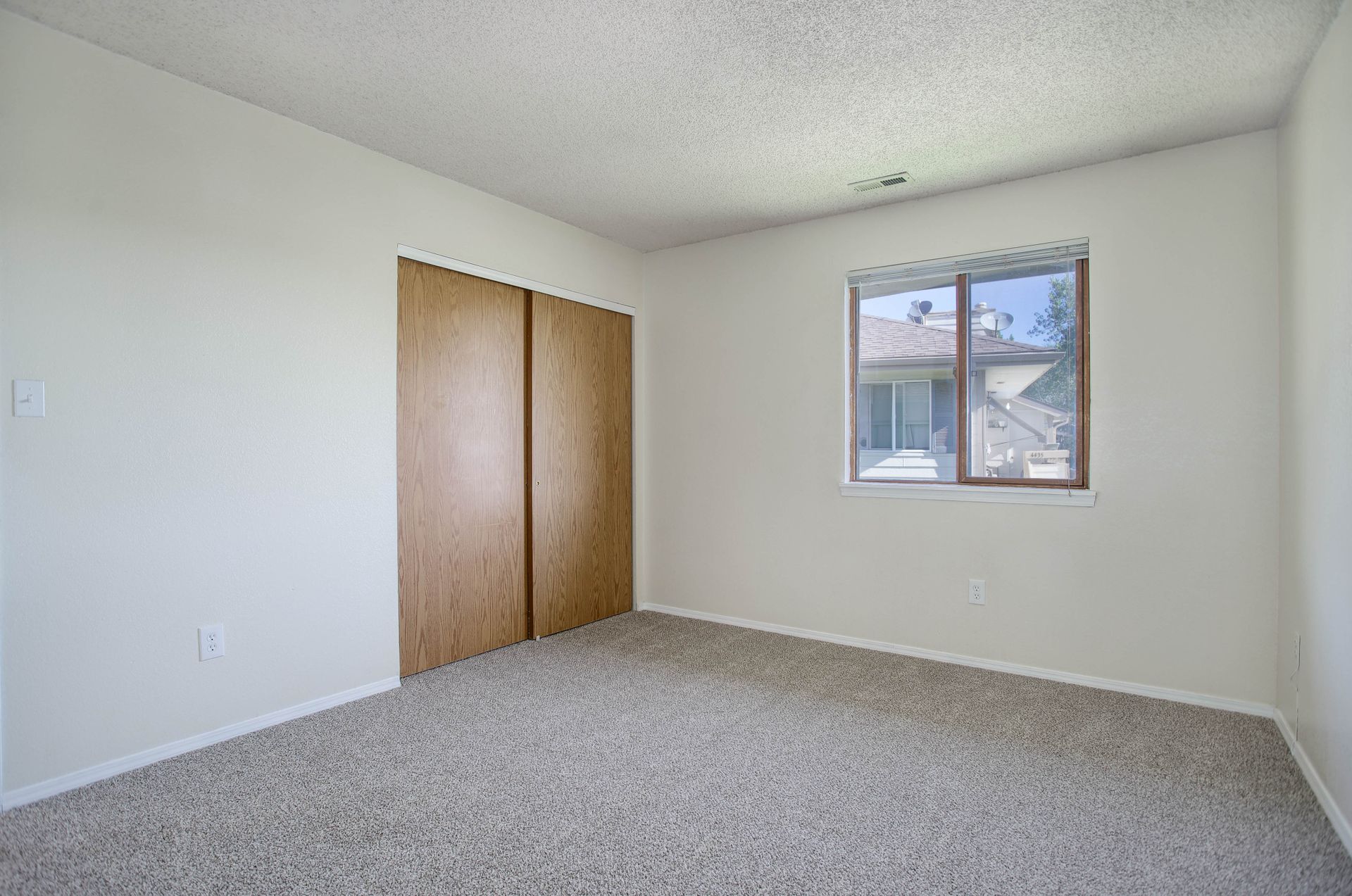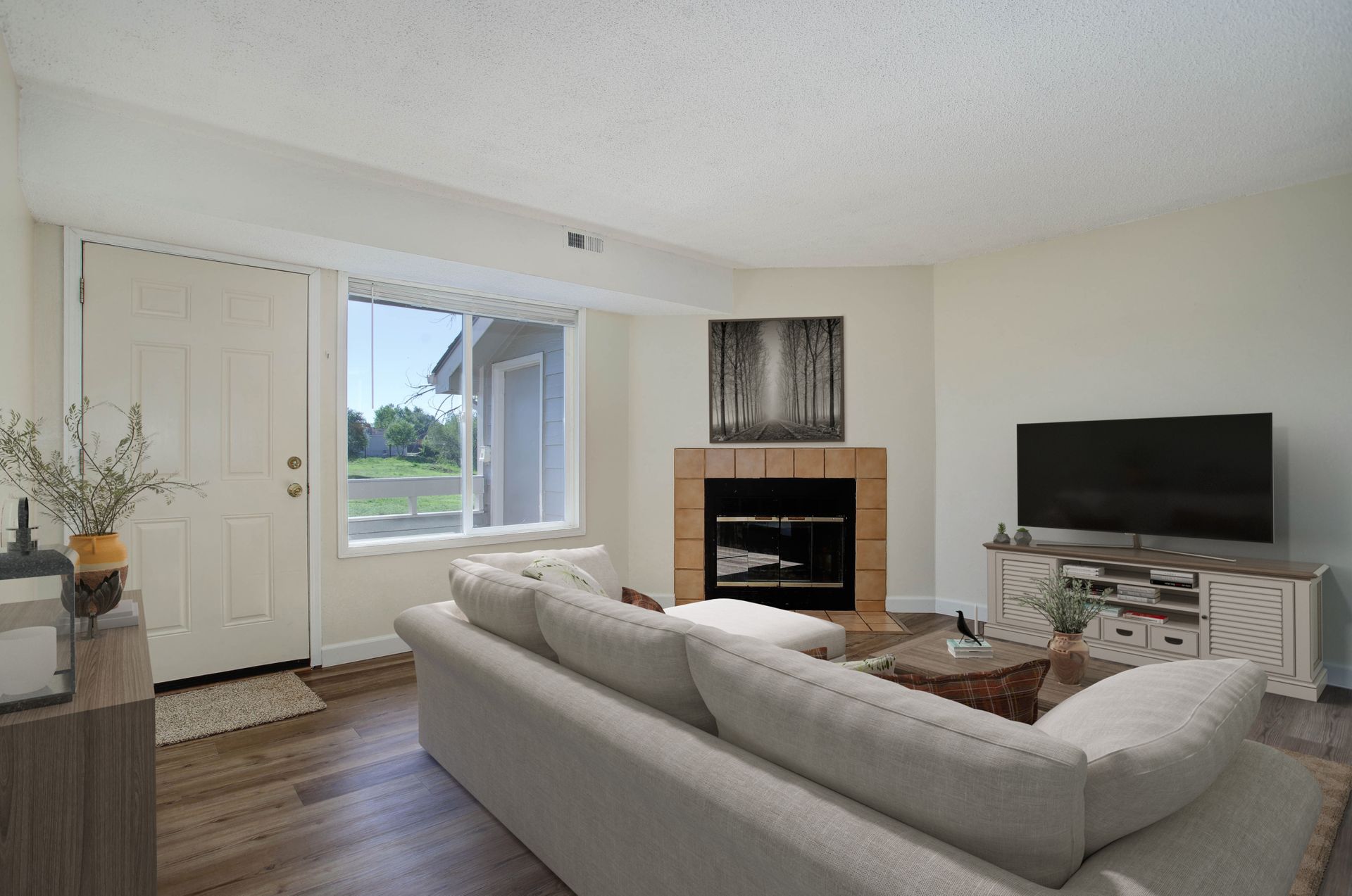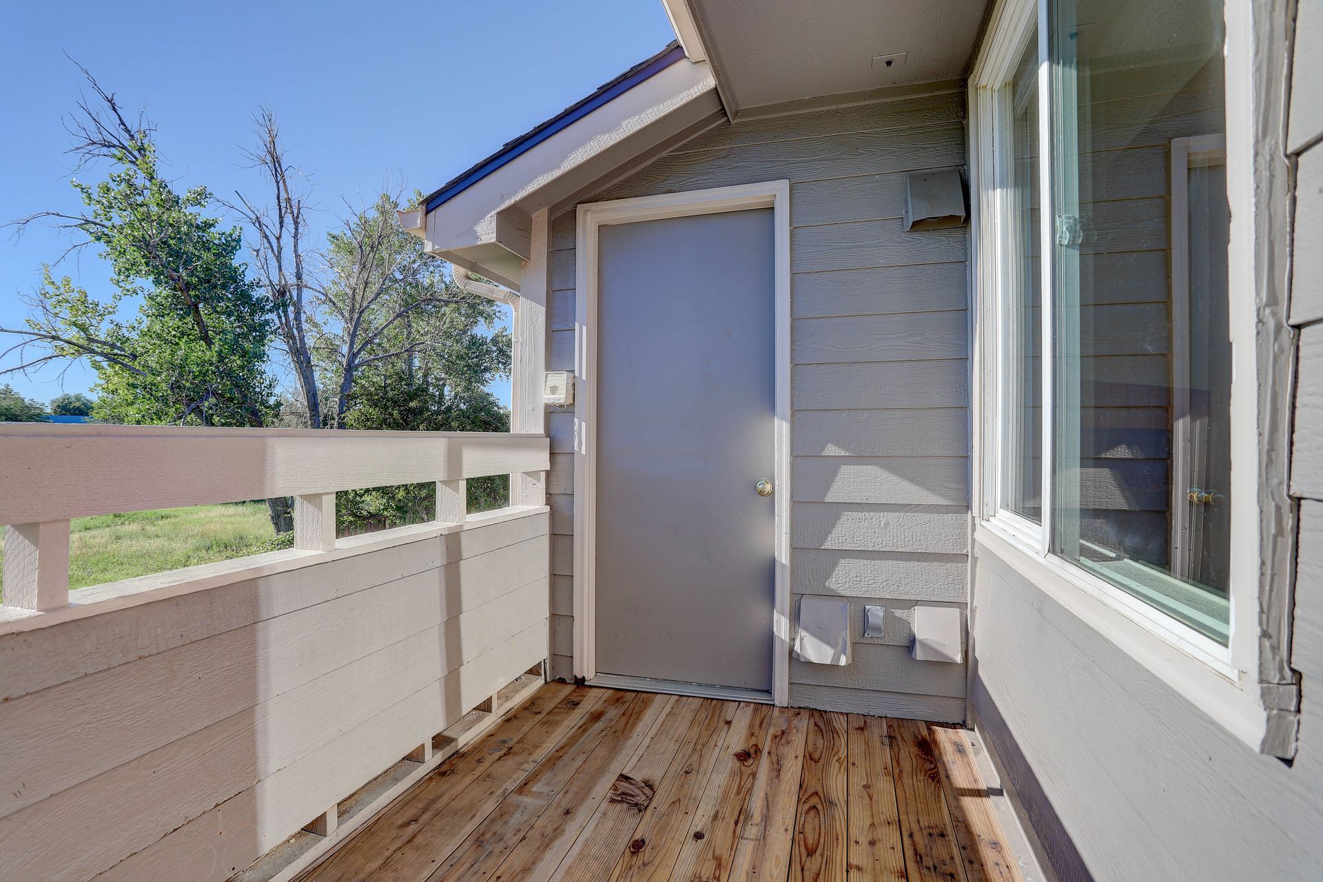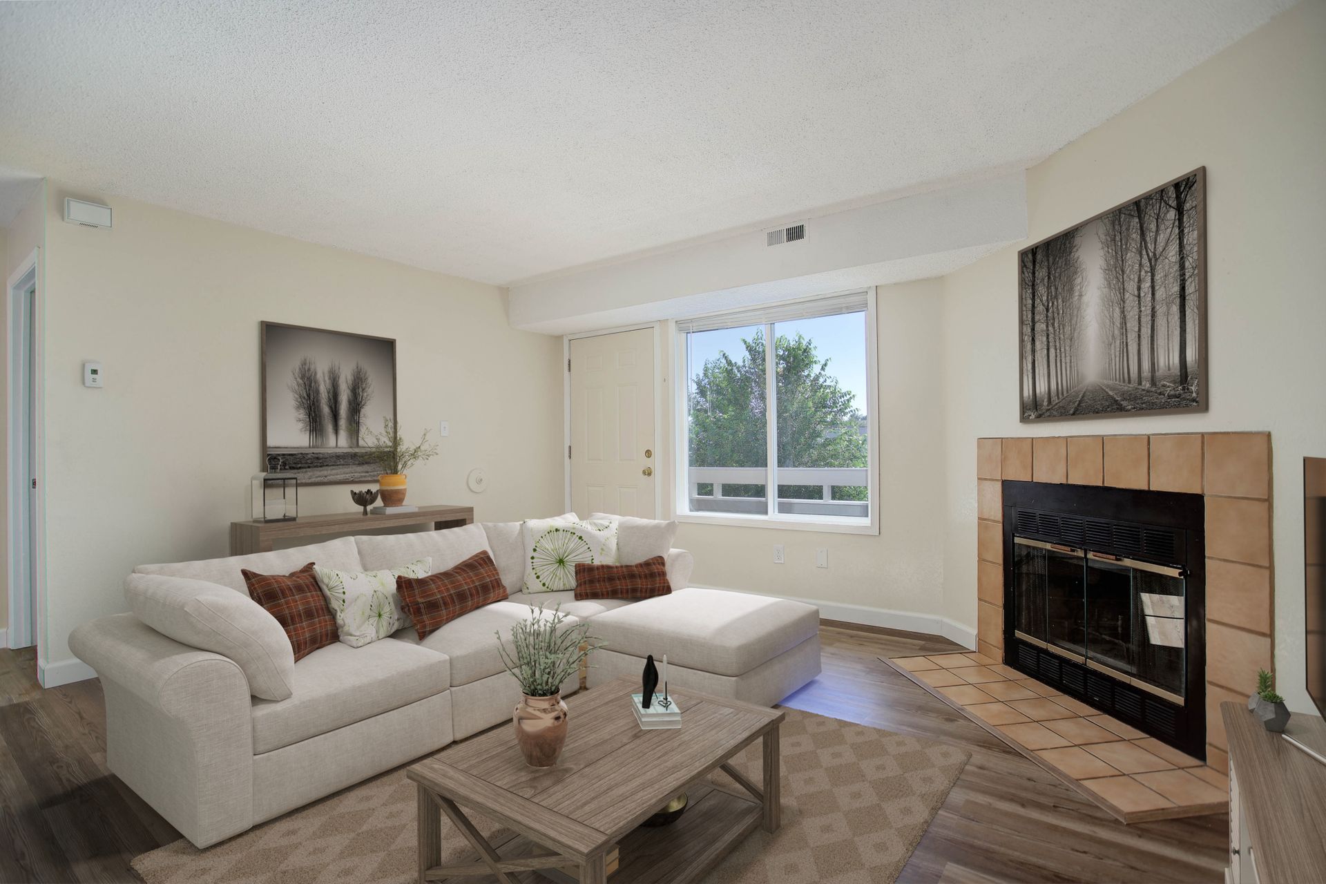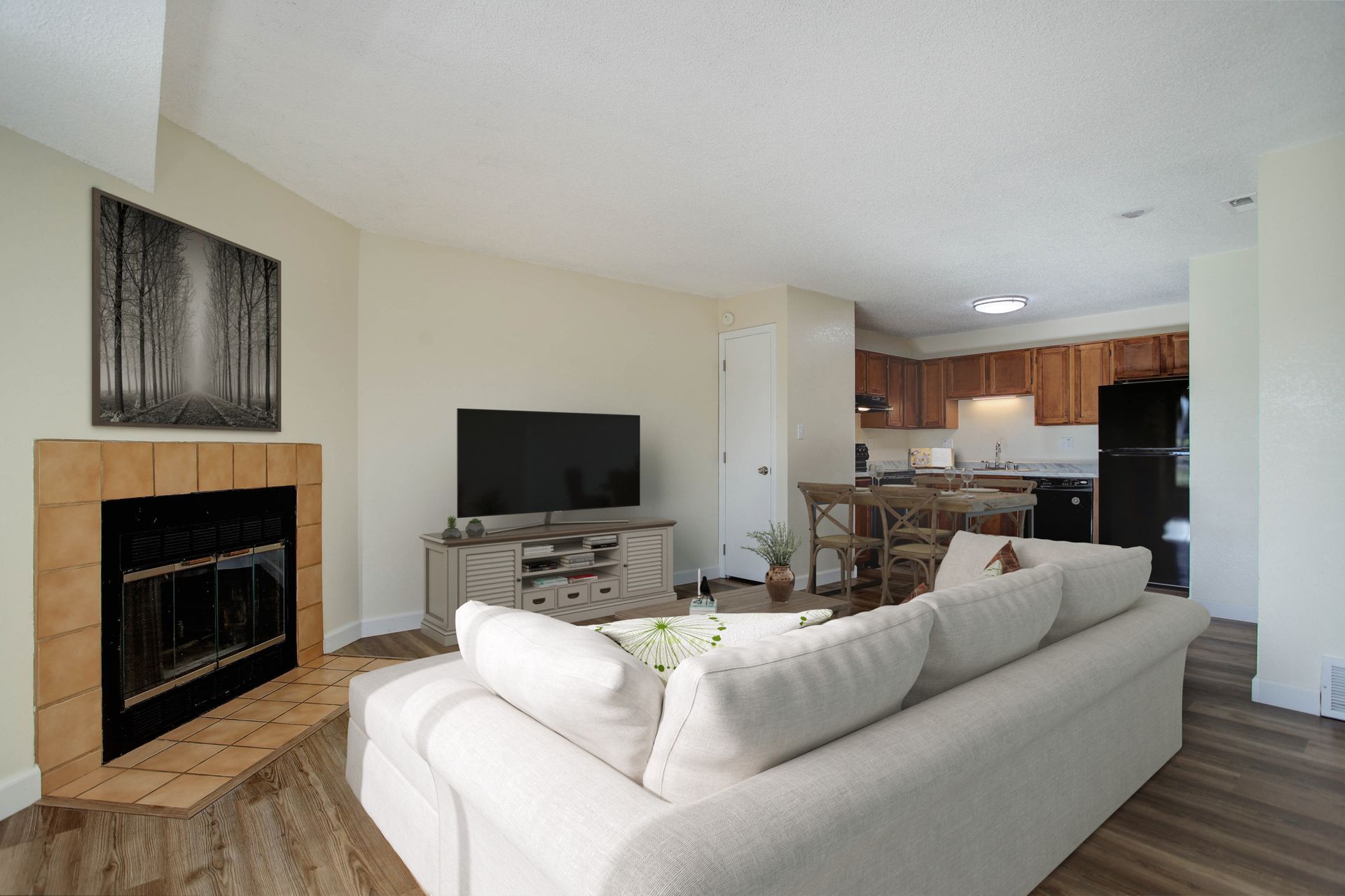 This upper level unit is on the east side of the complex, in one of the best locations overlooking the expansive green areas and bordering church property. This property features...large, sunny-south facing living room with new LVP floors, corner wood-burning FP…cozy eat-in kitchen with ample cabinet space, marble-look counters, and new range oven, hood and refrigerator…new carpet in both the 14x17 primary bedroom and 2nd bedroom...full hall bath with painted vanity and updated light fixture and faucet…laundry space for your full size washer and dryer...and large linen closet. Outside, you'll enjoy the...private deck with view of the mature trees...extra storage in the mechanical room...and assigned parking space. LOW HOA dues in comparison to other complexes, and easy access to both Academy Blvd. and Powers Blvd., too! LVP, carpet, switches and outlets ('24); water heater (‘22).