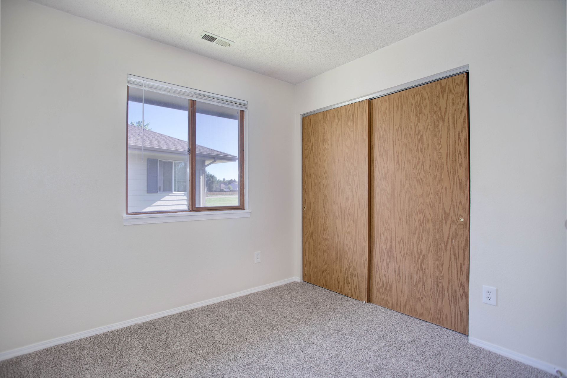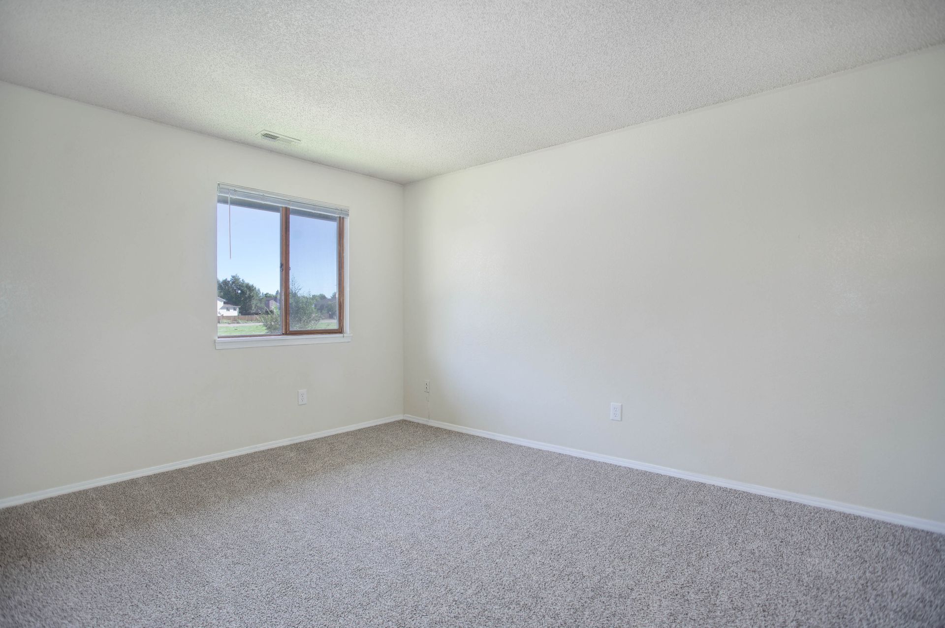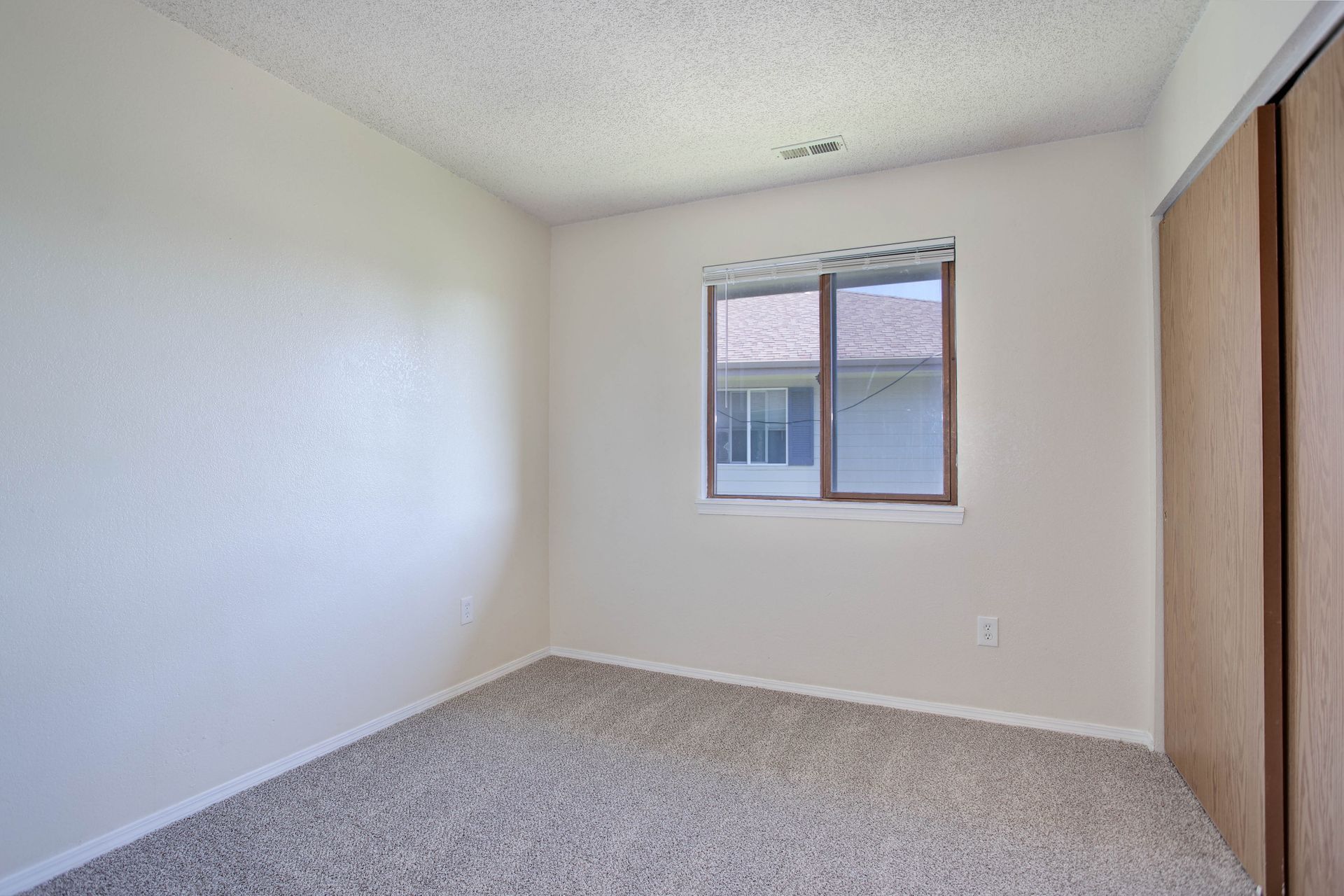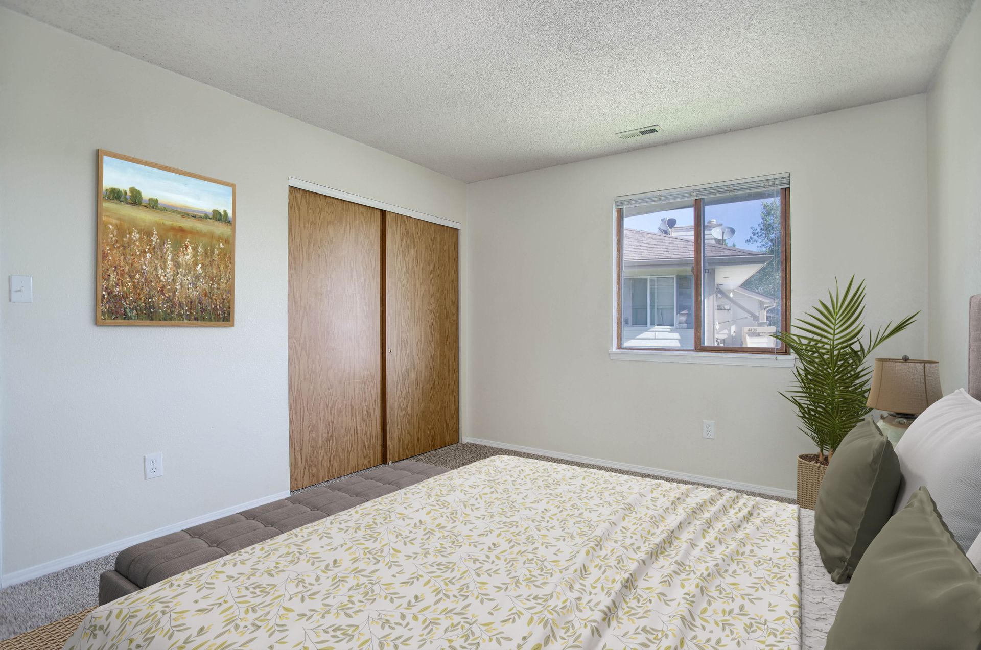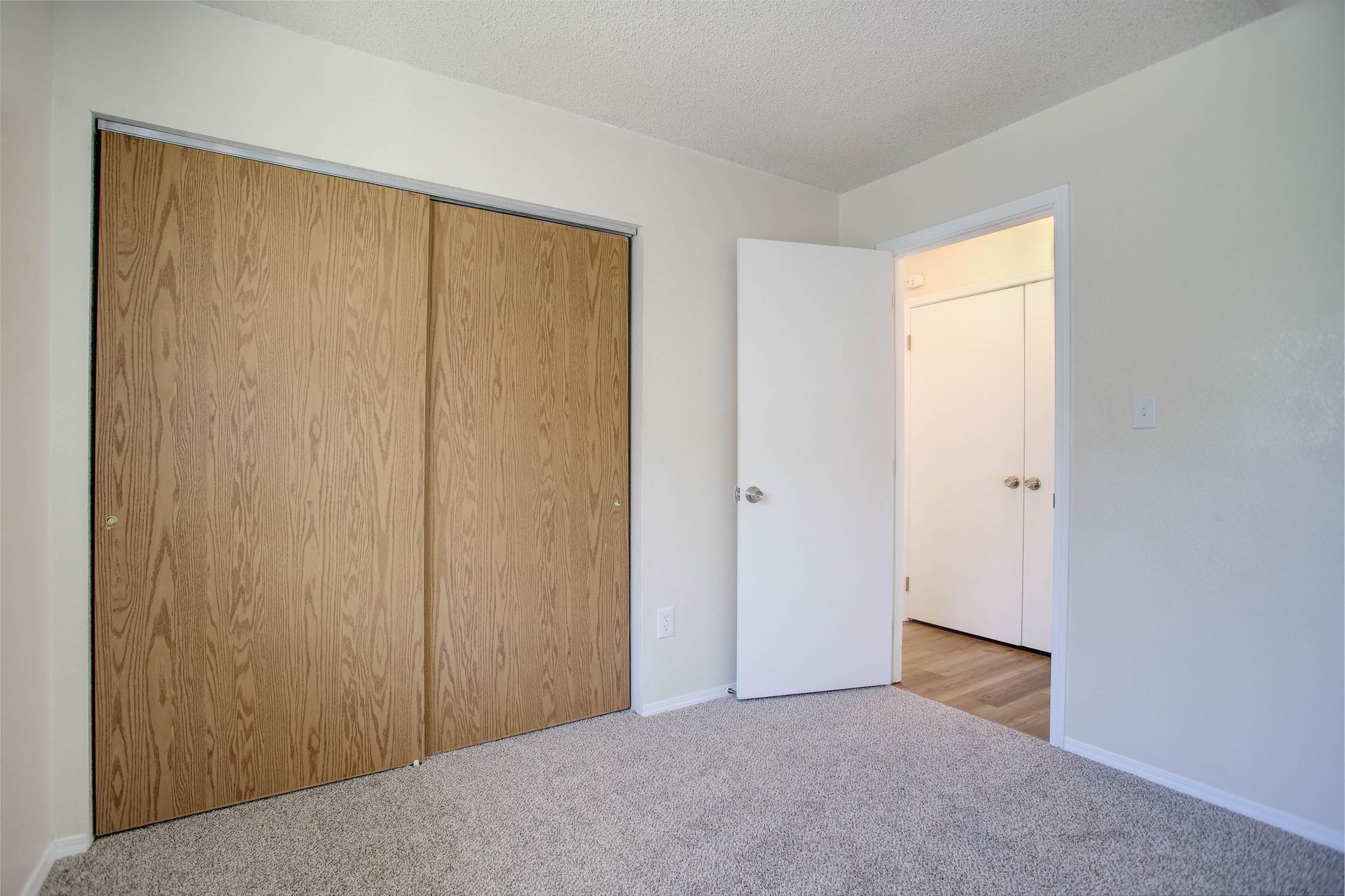 This upper level unit is on the east side of the complex, in one of the best locations overlooking the expansive green areas and bordering church property. This property features...large, sunny-south facing living room with new LVP floors, corner wood-burning FP…cozy eat-in kitchen with ample cabinet space, marble-look counters, and new range oven, hood and refrigerator…new carpet in both the 14x17 primary bedroom and 2nd bedroom...full hall bath with painted vanity and updated light fixture and faucet…laundry space for your full size washer and dryer...and large linen closet. Outside, you'll enjoy the...private deck with view of the mature trees...extra storage in the mechanical room...and assigned parking space. LOW HOA dues in comparison to other complexes, and easy access to both Academy Blvd. and Powers Blvd., too! LVP, carpet, switches and outlets ('24); water heater (‘22).