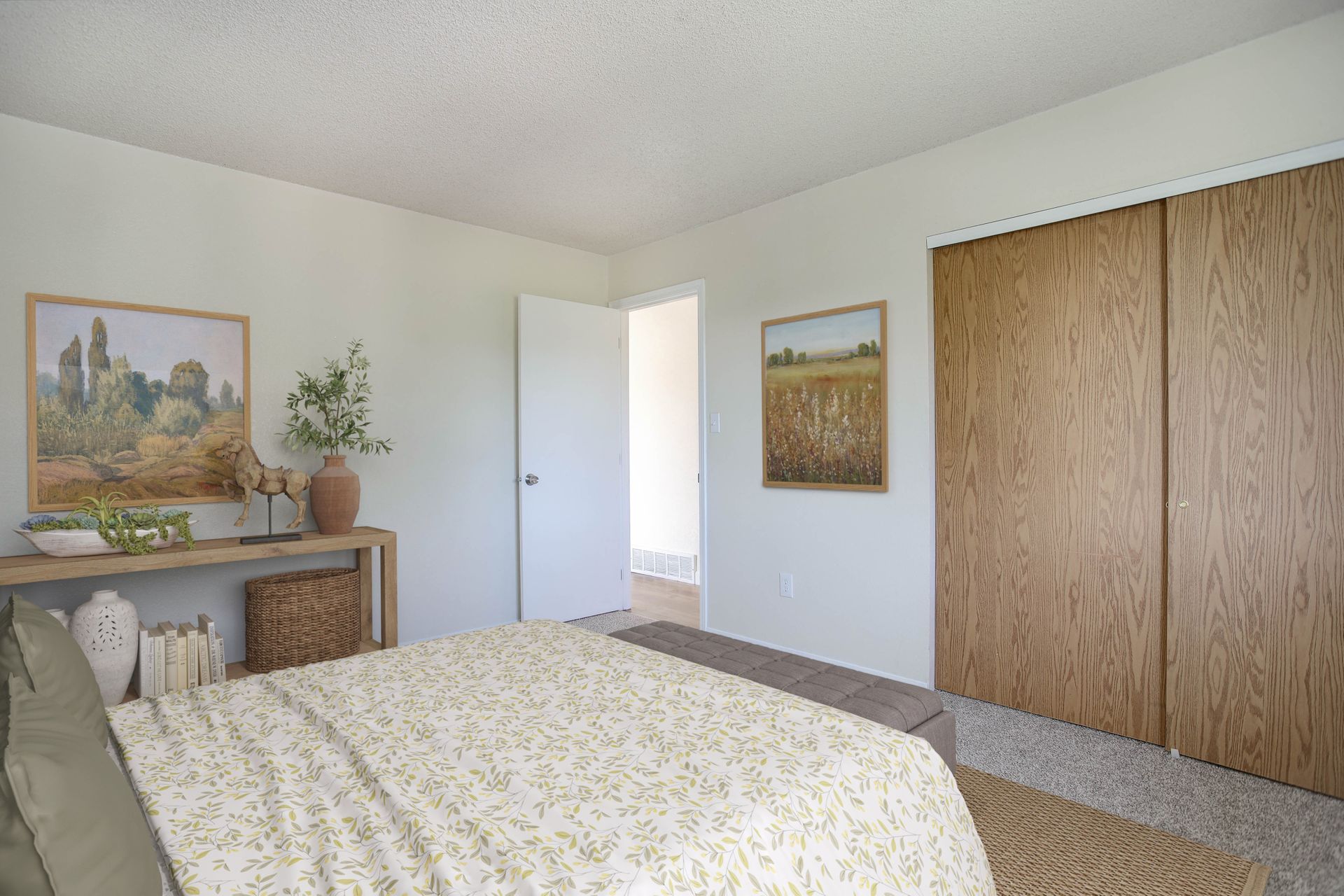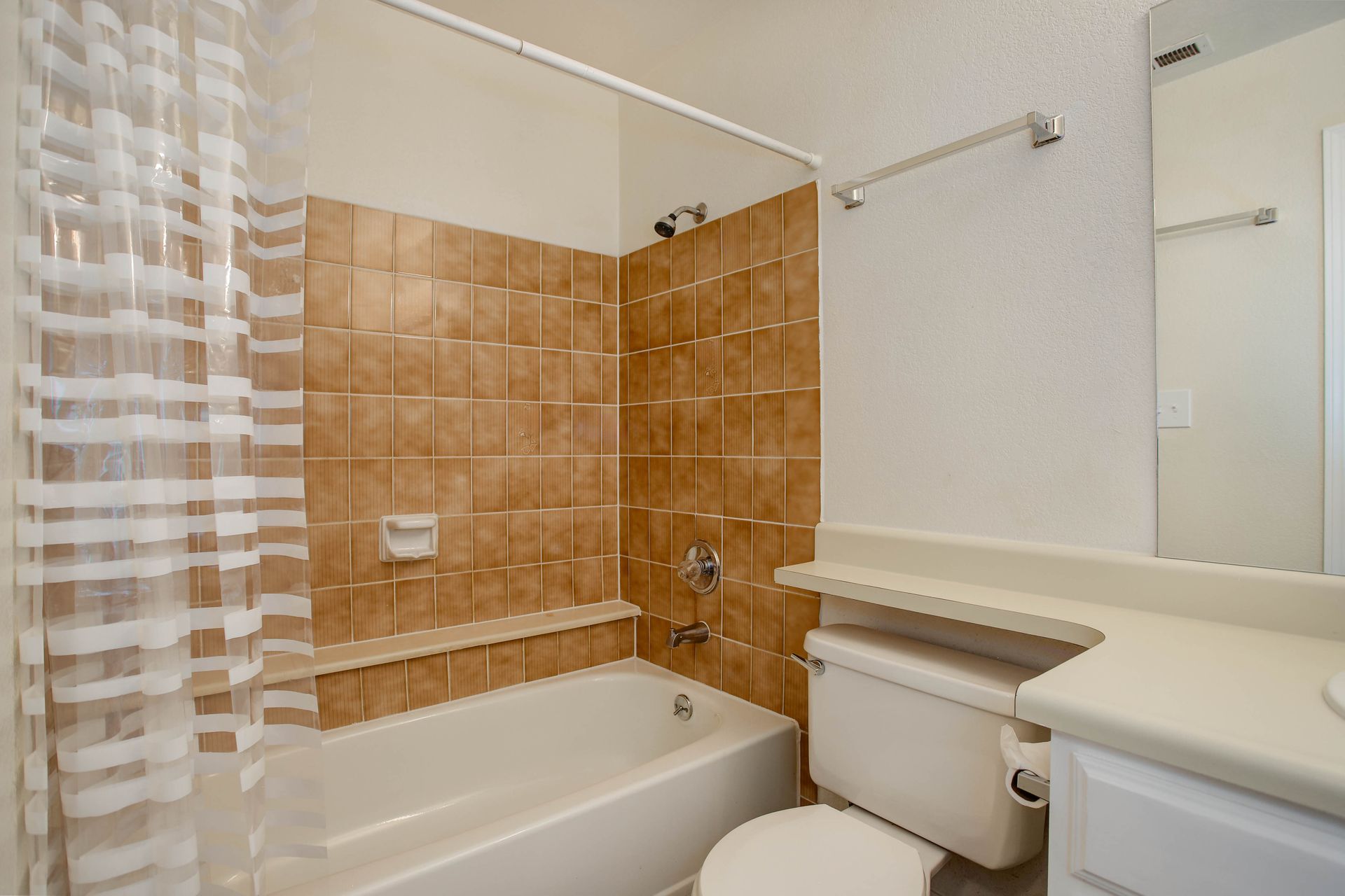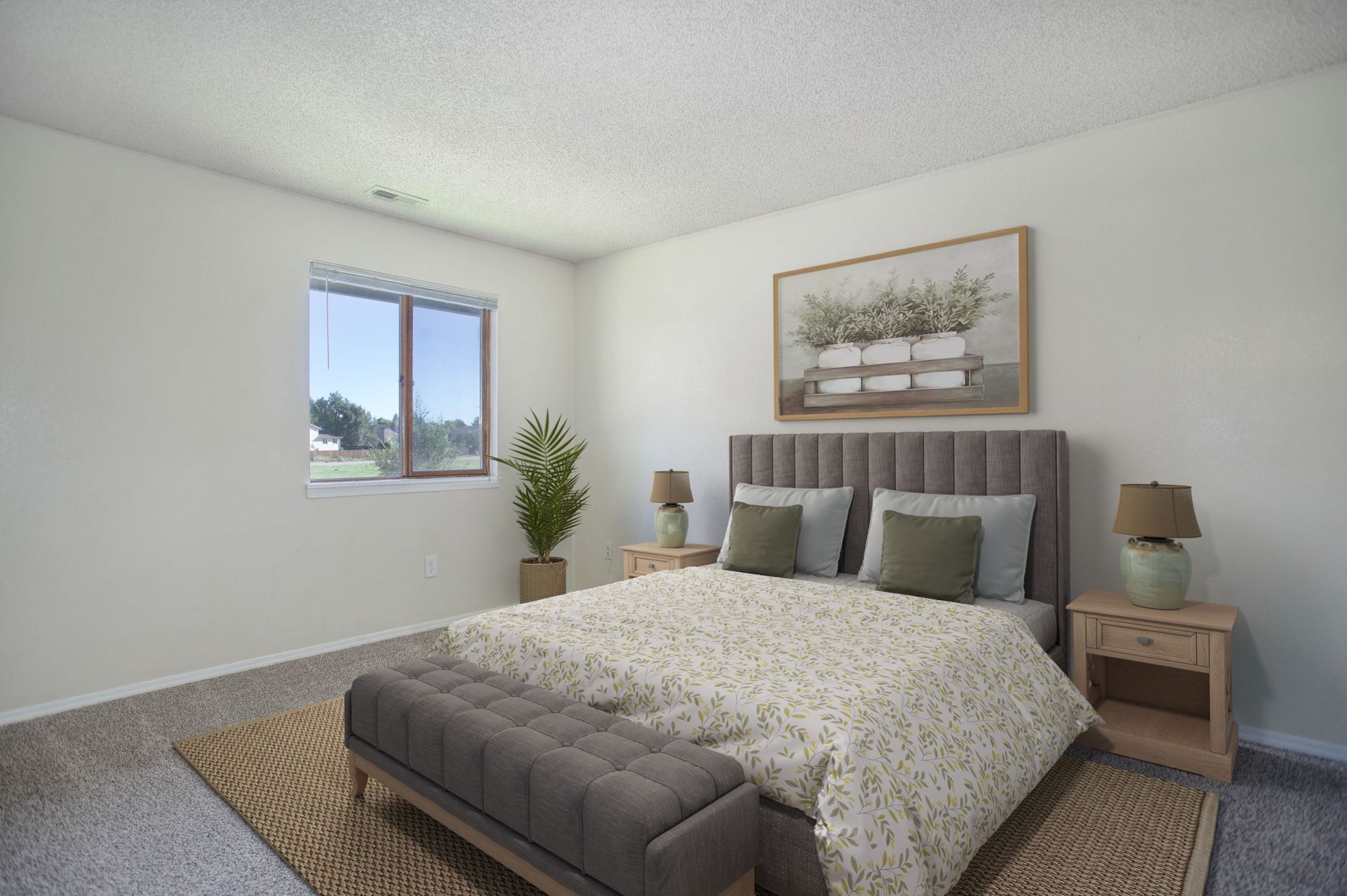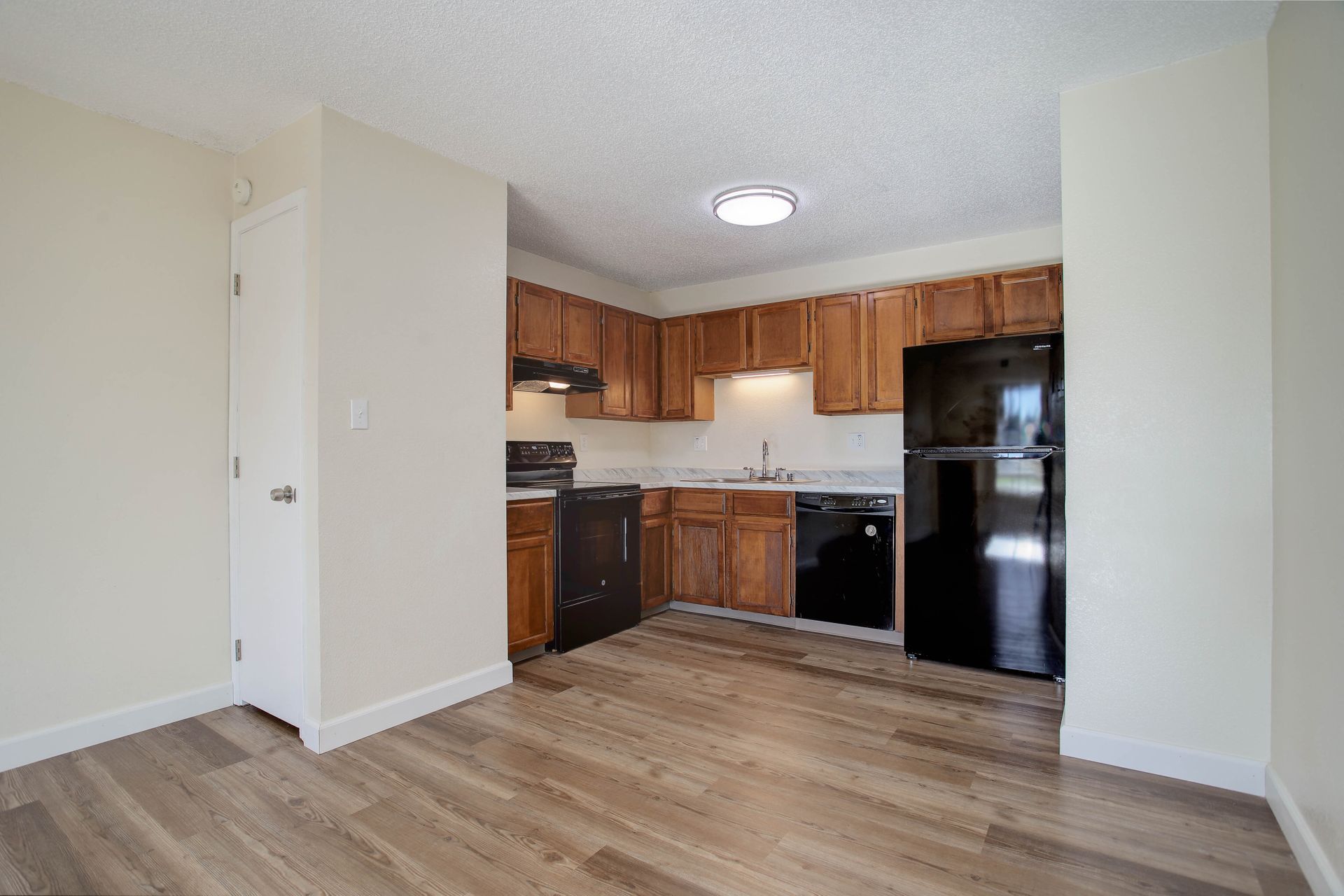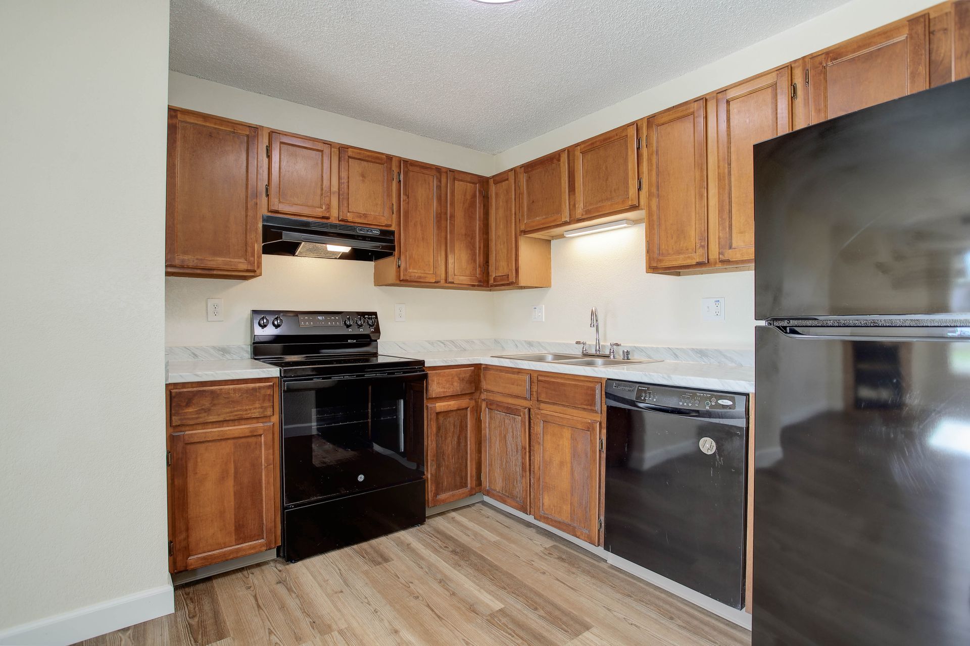 This upper level unit is on the east side of the complex, in one of the best locations overlooking the expansive green areas and bordering church property. This property features...large, sunny-south facing living room with new LVP floors, corner wood-burning FP…cozy eat-in kitchen with ample cabinet space, marble-look counters, and new range oven, hood and refrigerator…new carpet in both the 14x17 primary bedroom and 2nd bedroom...full hall bath with painted vanity and updated light fixture and faucet…laundry space for your full size washer and dryer...and large linen closet. Outside, you'll enjoy the...private deck with view of the mature trees...extra storage in the mechanical room...and assigned parking space. LOW HOA dues in comparison to other complexes, and easy access to both Academy Blvd. and Powers Blvd., too! LVP, carpet, switches and outlets ('24); water heater (‘22).