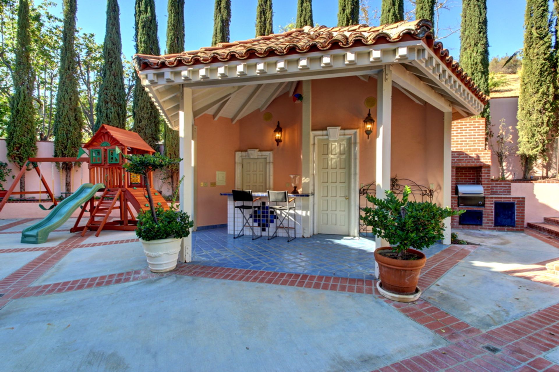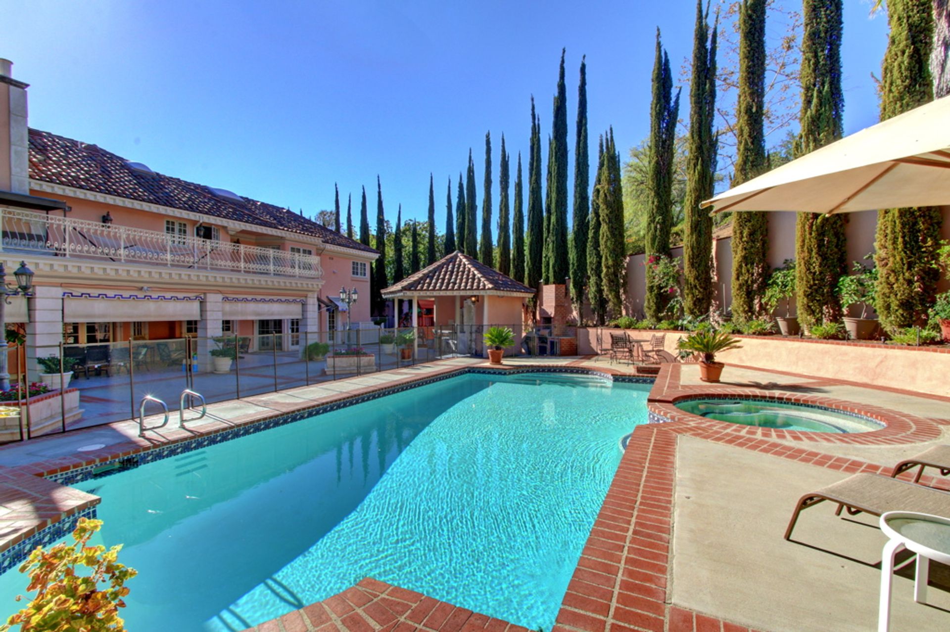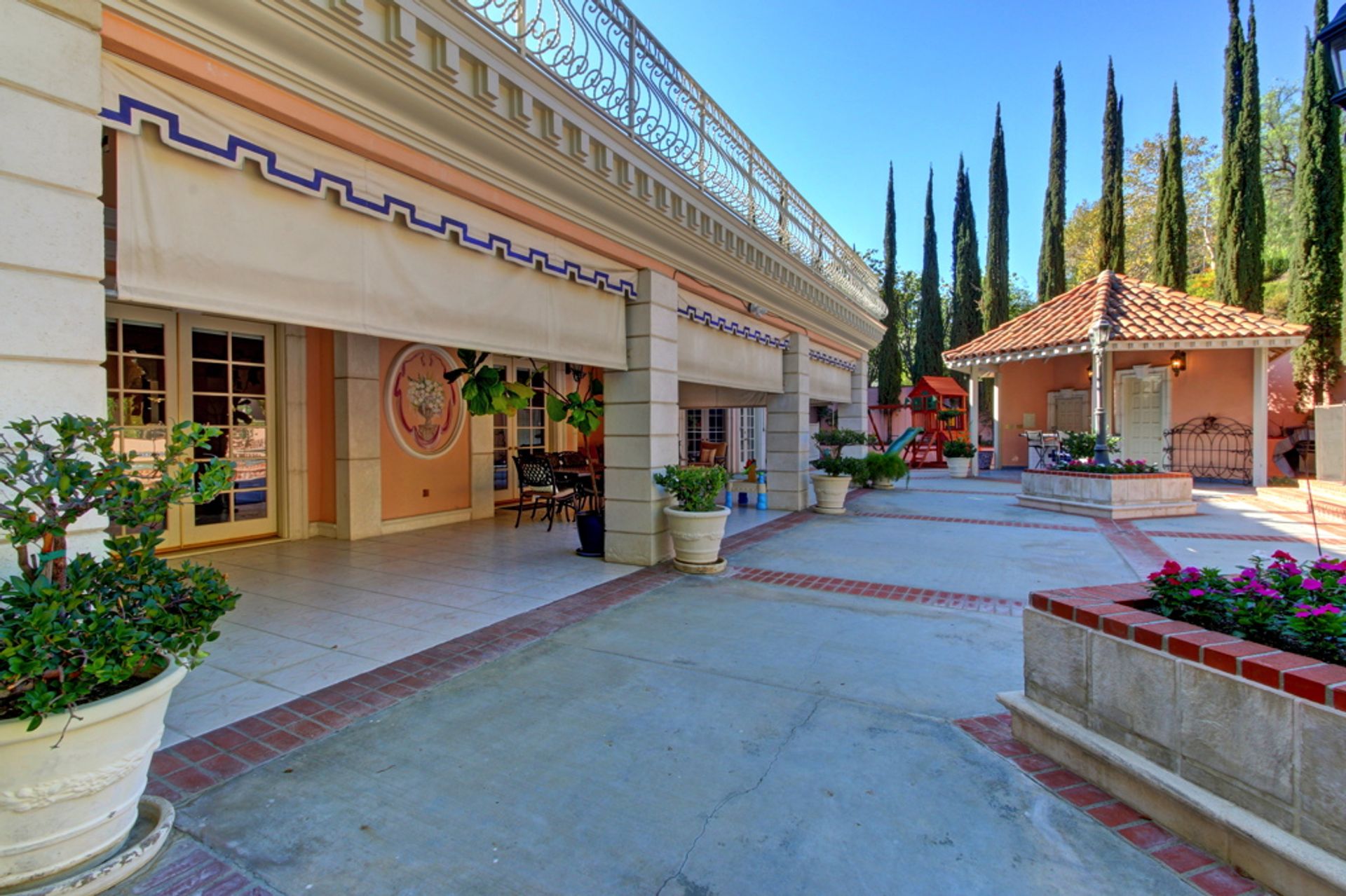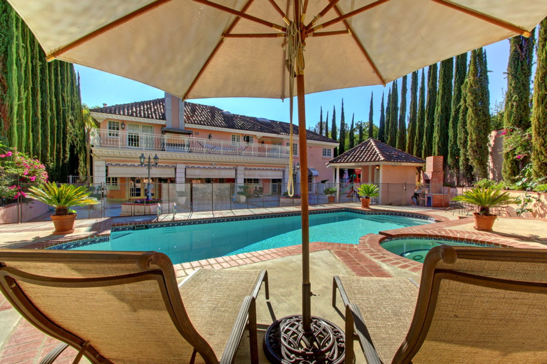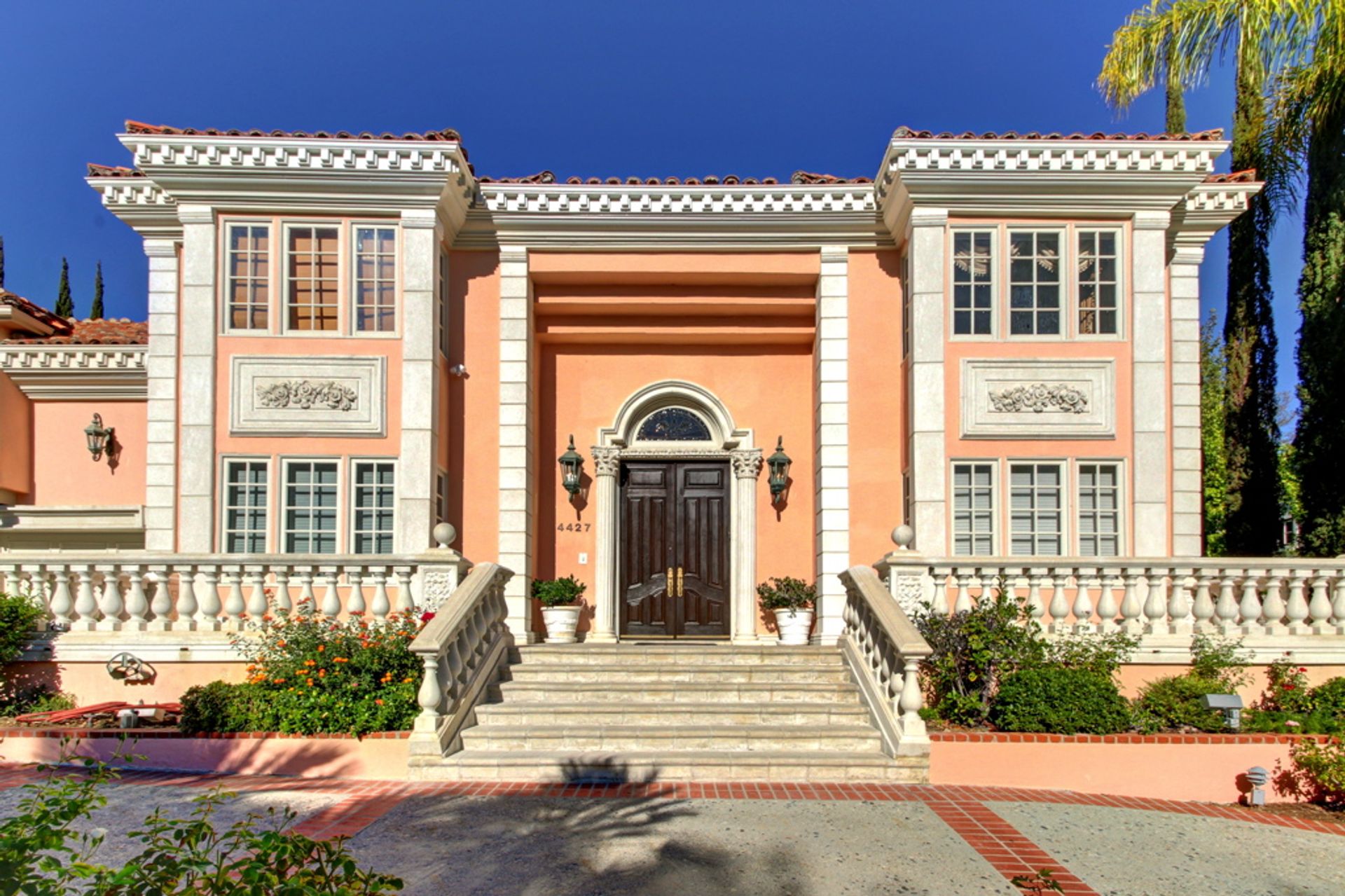 Welcome home to the much sought after and guard-gated Westchester county. This sophisticated luxurious residence is located at the end of Westchester Drive in a very desirable location. Quality craftsmanship and attention to detail are featured throughout this two-story spacious, custom Mediterranean "Tuscan" featuring approximately 6,500 square feet of fine living! Details include an entertainer's floor plan, a circular driveway, high ceilings, crown moldings, a gourmet kitchen with granite counter tops, five bedrooms, six and one-half baths plus a bonus room. The lushly landscaped backyard features a pool and spa, a cabana with outdoor bath and shower and a built in BBQ on a fabulous patio, ideal for entertaining. This fantastic property truly does have it all!