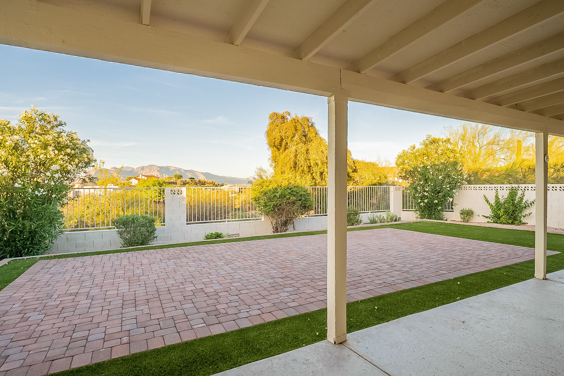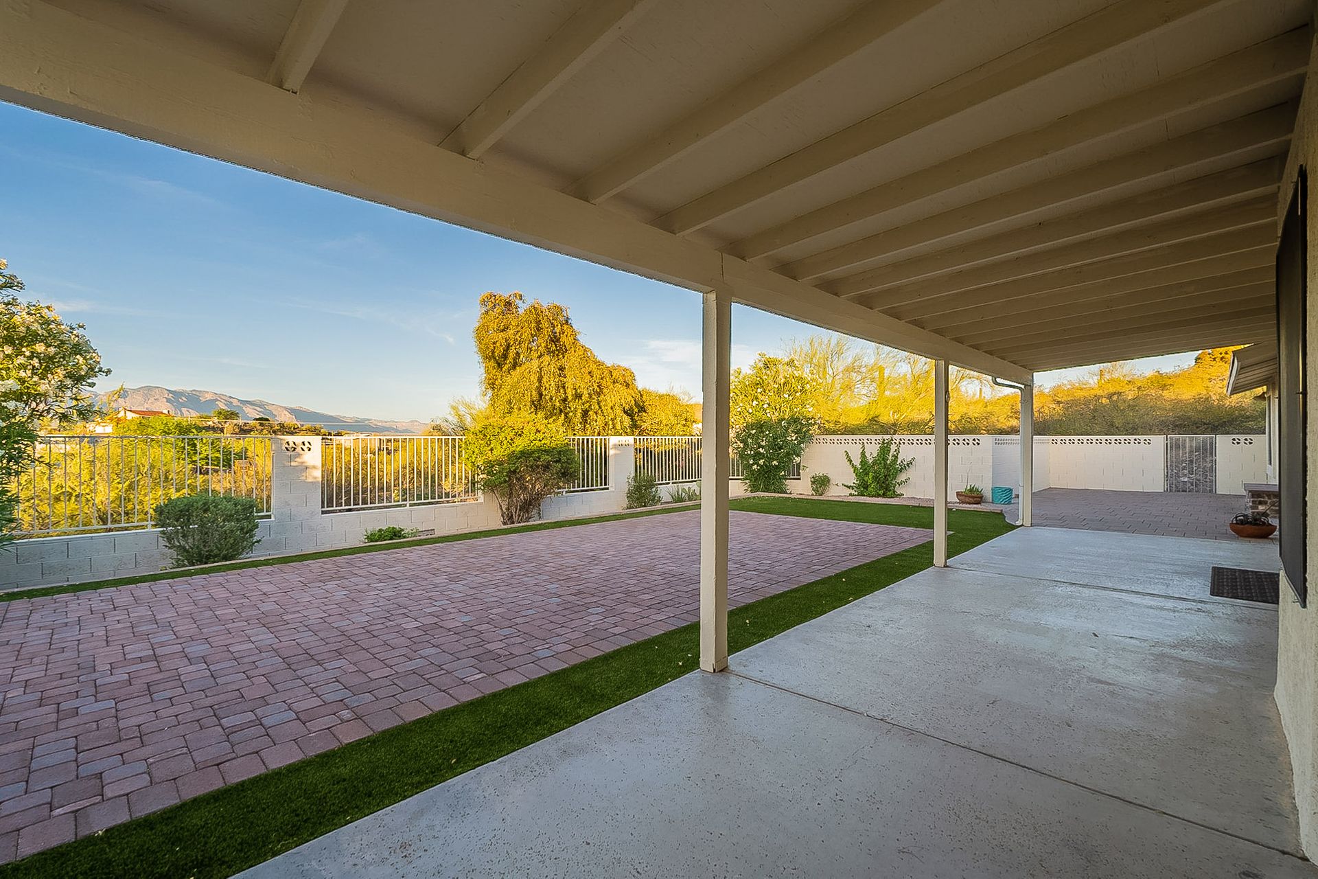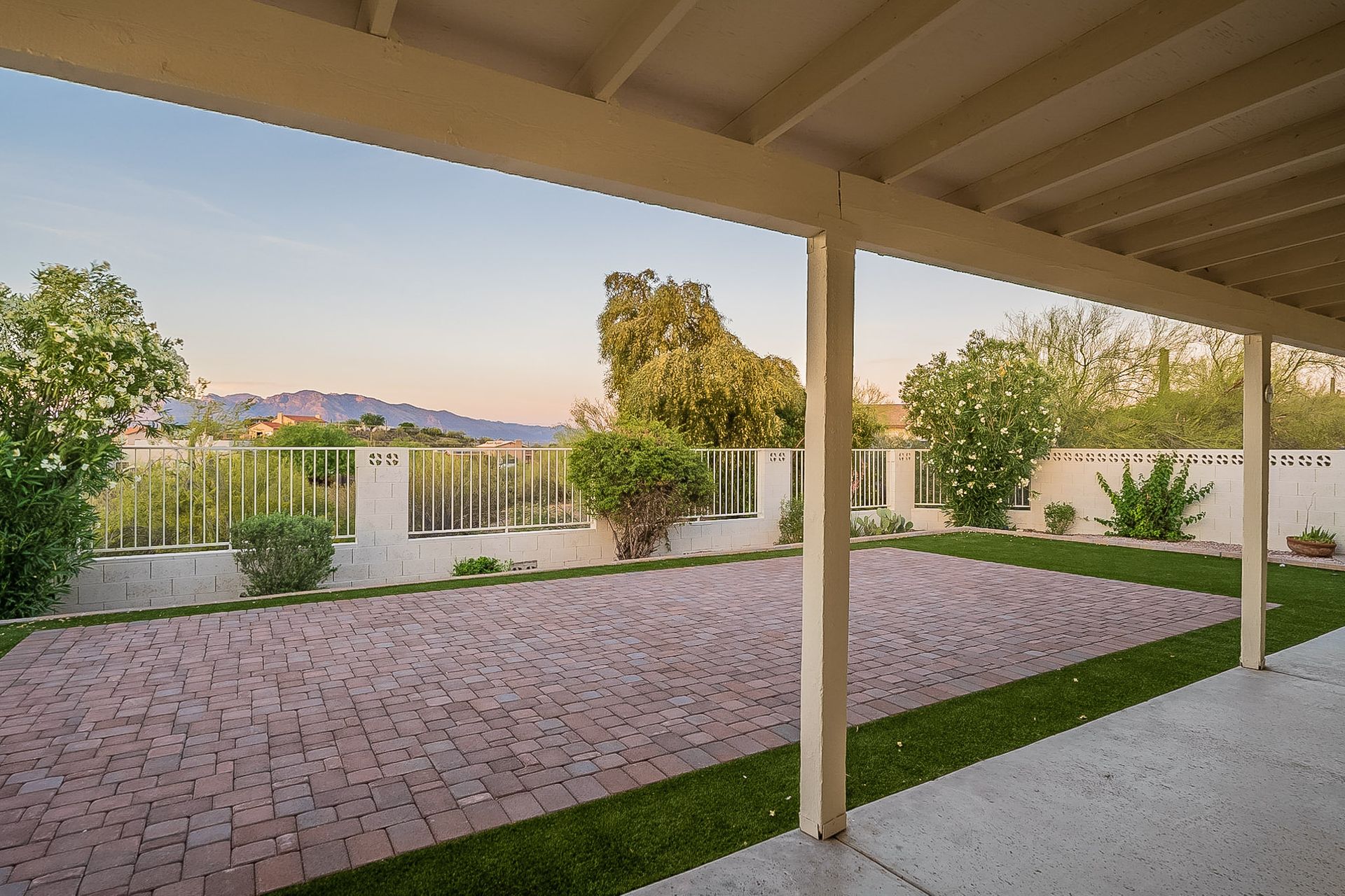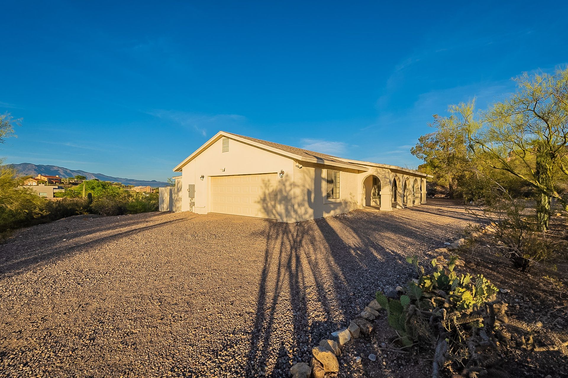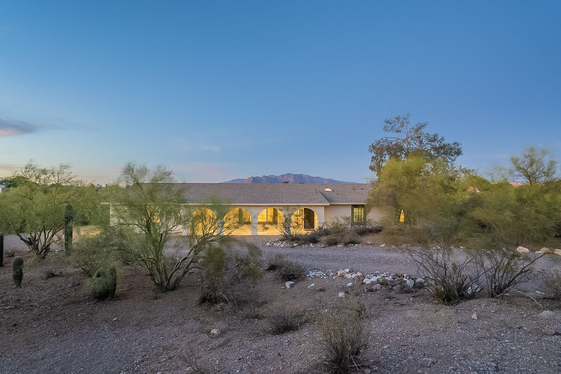 PRIVACY AND LOCATION! This stunning Tucson Ranch sits on over an acre of land with no rear neighbors. Lush acre backs up to a wash with beautiful mountain views, stunning sunsets, and city lights. Enjoy the low-care front yard and gorgeous backyard with a fully covered patio, pavers, a side yard, and artificial turf. The kitchen has just had a facelift with gorgeous greyish-blue cabinets, new hardware, and quartz-like counters – The bonus is a huge walk-in pantry. Beautiful wood beams run across the vaulted ceilings and warm Saltillo flooring. Three large bedrooms, two baths, oversized two-car garage plus huge workshop, man door, and extra storage. There are also dual-pane windows and newer light fixtures. It feels like you are on your own remote island - with a cul-de-sac location, however less than 10 minutes to I-10, with an easy commute to the University of Arizona, downtown, Raytheon, Caterpillar, Davis Monthan Air Base, and Tucson airport. This is a true Tucson gem - Hurry over for a Visit.