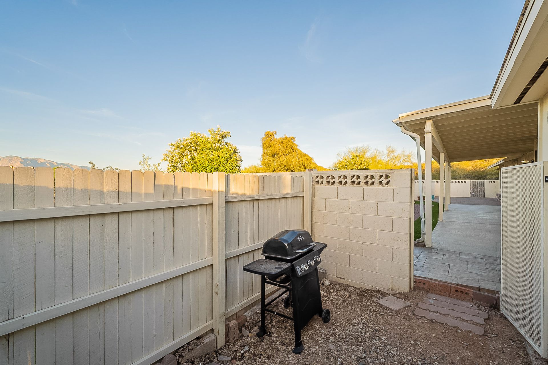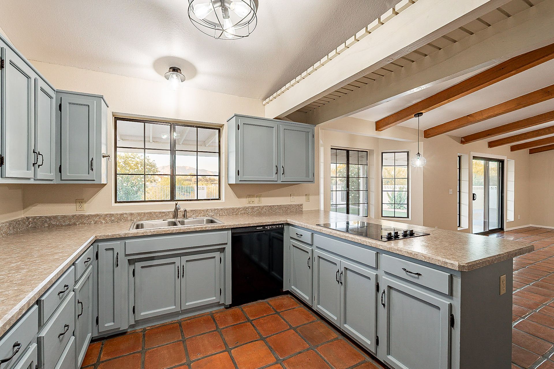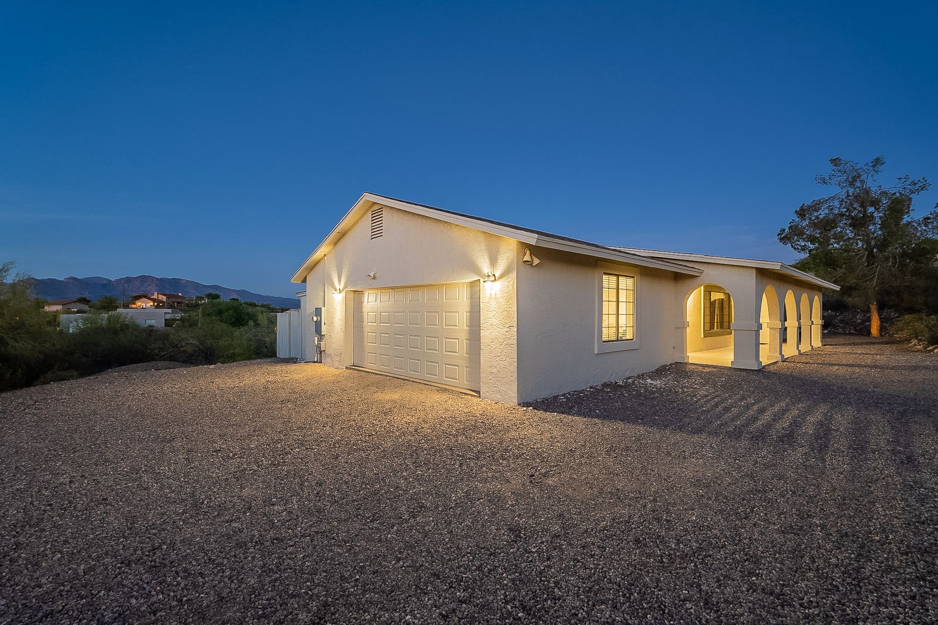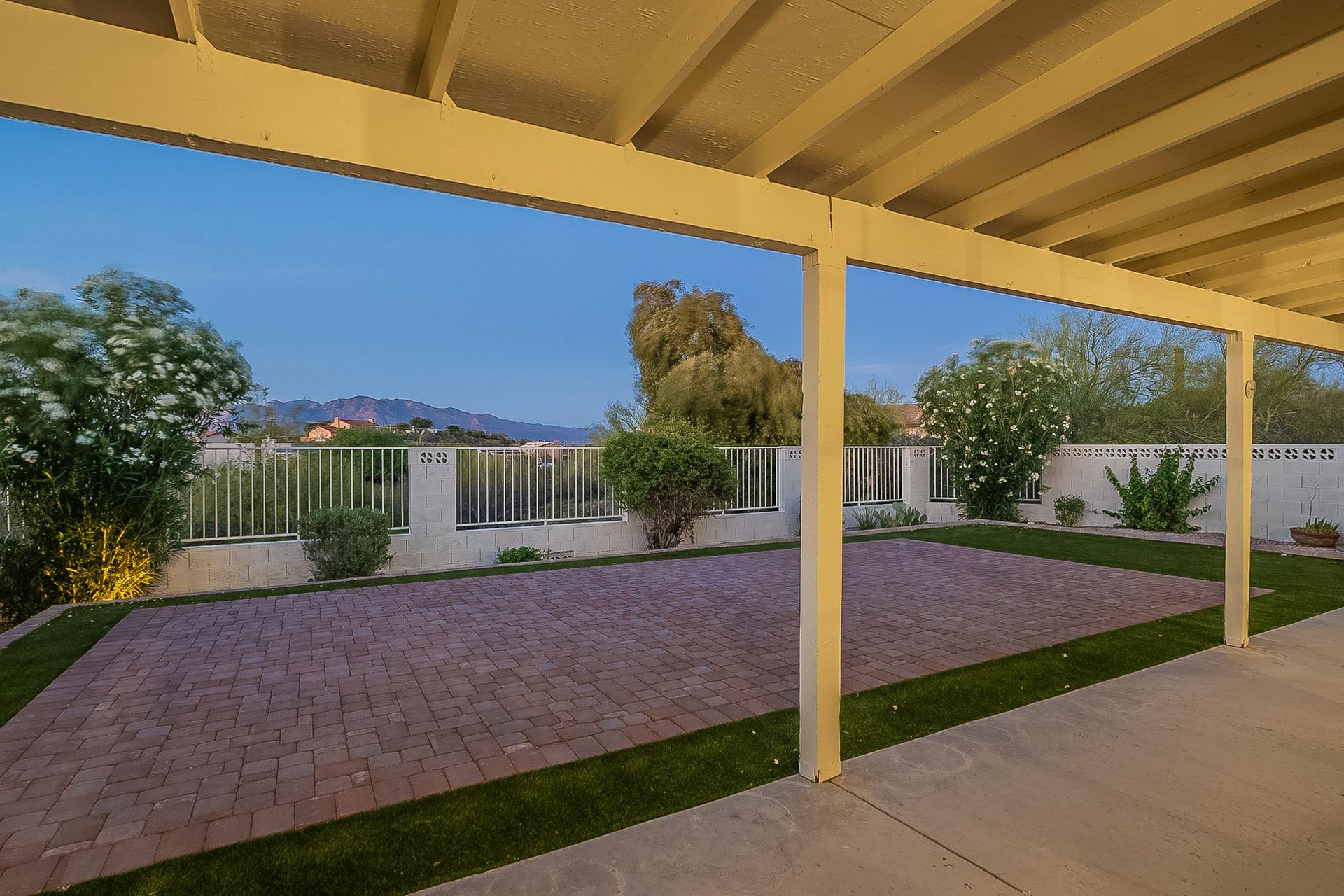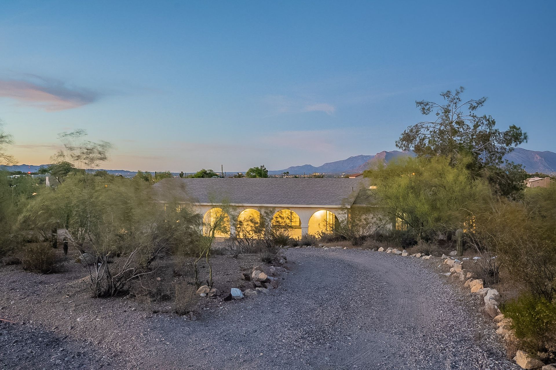 PRIVACY AND LOCATION! This stunning Tucson Ranch sits on over an acre of land with no rear neighbors. Lush acre backs up to a wash with beautiful mountain views, stunning sunsets, and city lights. Enjoy the low-care front yard and gorgeous backyard with a fully covered patio, pavers, a side yard, and artificial turf. The kitchen has just had a facelift with gorgeous greyish-blue cabinets, new hardware, and quartz-like counters – The bonus is a huge walk-in pantry. Beautiful wood beams run across the vaulted ceilings and warm Saltillo flooring. Three large bedrooms, two baths, oversized two-car garage plus huge workshop, man door, and extra storage. There are also dual-pane windows and newer light fixtures. It feels like you are on your own remote island - with a cul-de-sac location, however less than 10 minutes to I-10, with an easy commute to the University of Arizona, downtown, Raytheon, Caterpillar, Davis Monthan Air Base, and Tucson airport. This is a true Tucson gem - Hurry over for a Visit.