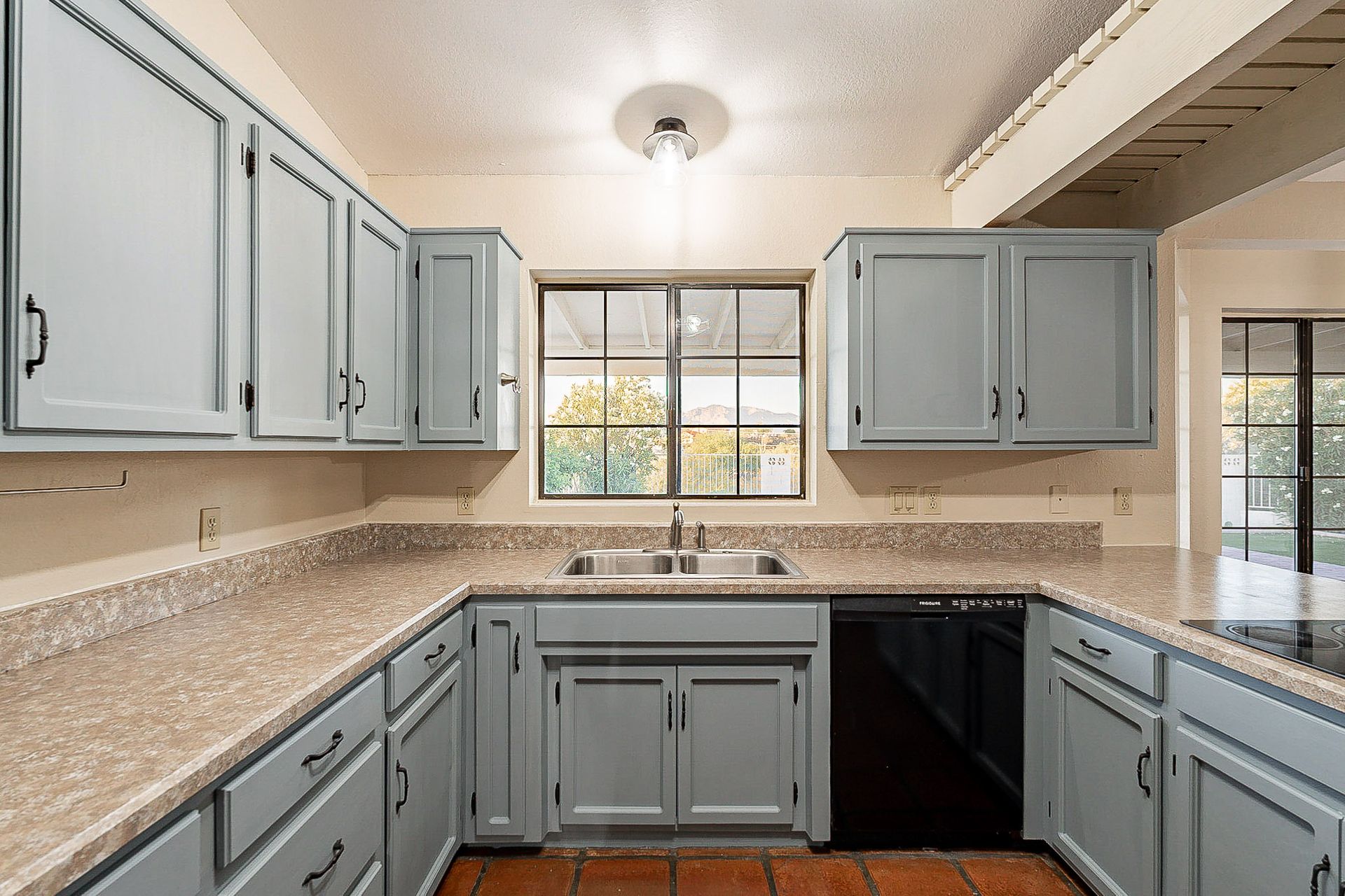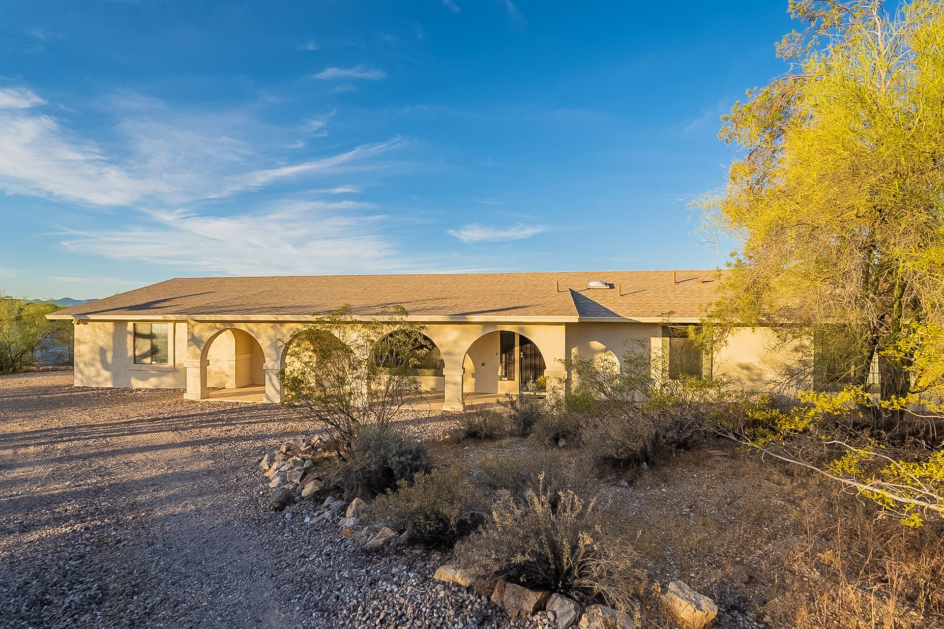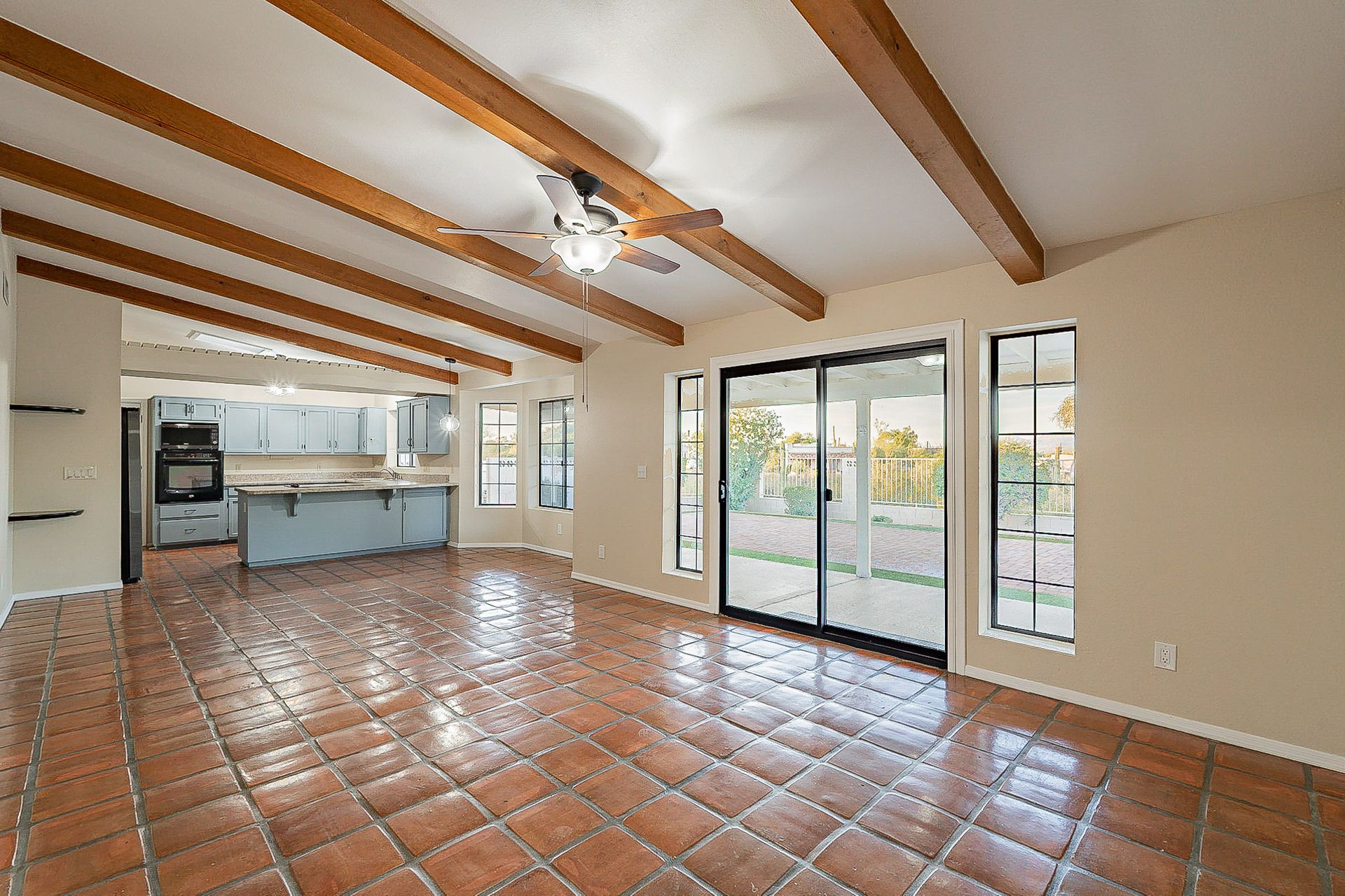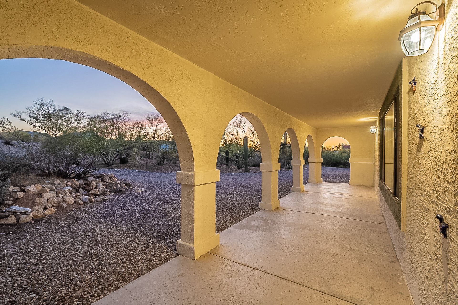 PRIVACY AND LOCATION! This stunning Tucson Ranch sits on over an acre of land with no rear neighbors. Lush acre backs up to a wash with beautiful mountain views, stunning sunsets, and city lights. Enjoy the low-care front yard and gorgeous backyard with a fully covered patio, pavers, a side yard, and artificial turf. The kitchen has just had a facelift with gorgeous greyish-blue cabinets, new hardware, and quartz-like counters – The bonus is a huge walk-in pantry. Beautiful wood beams run across the vaulted ceilings and warm Saltillo flooring. Three large bedrooms, two baths, oversized two-car garage plus huge workshop, man door, and extra storage. There are also dual-pane windows and newer light fixtures. It feels like you are on your own remote island - with a cul-de-sac location, however less than 10 minutes to I-10, with an easy commute to the University of Arizona, downtown, Raytheon, Caterpillar, Davis Monthan Air Base, and Tucson airport. This is a true Tucson gem - Hurry over for a Visit.