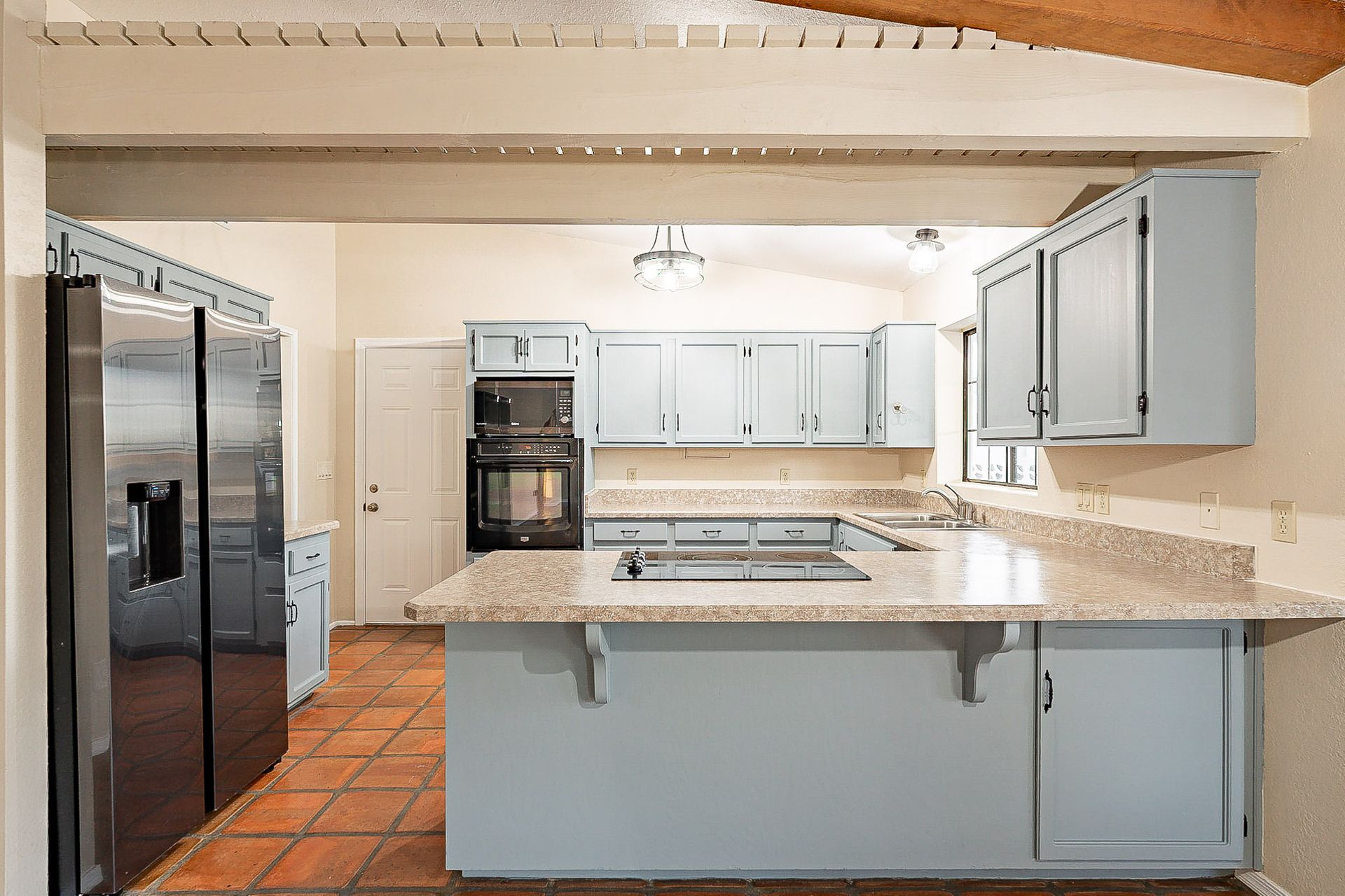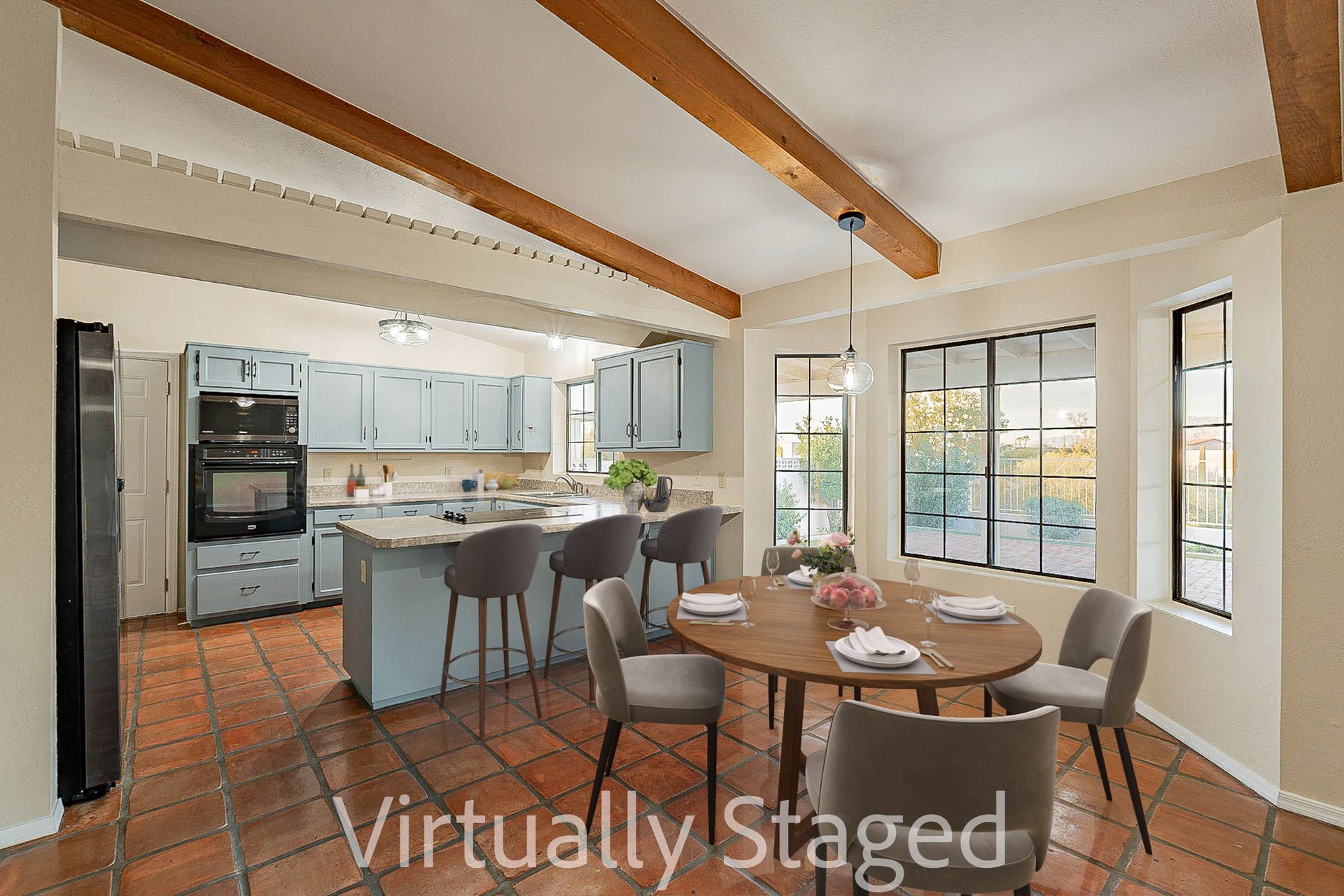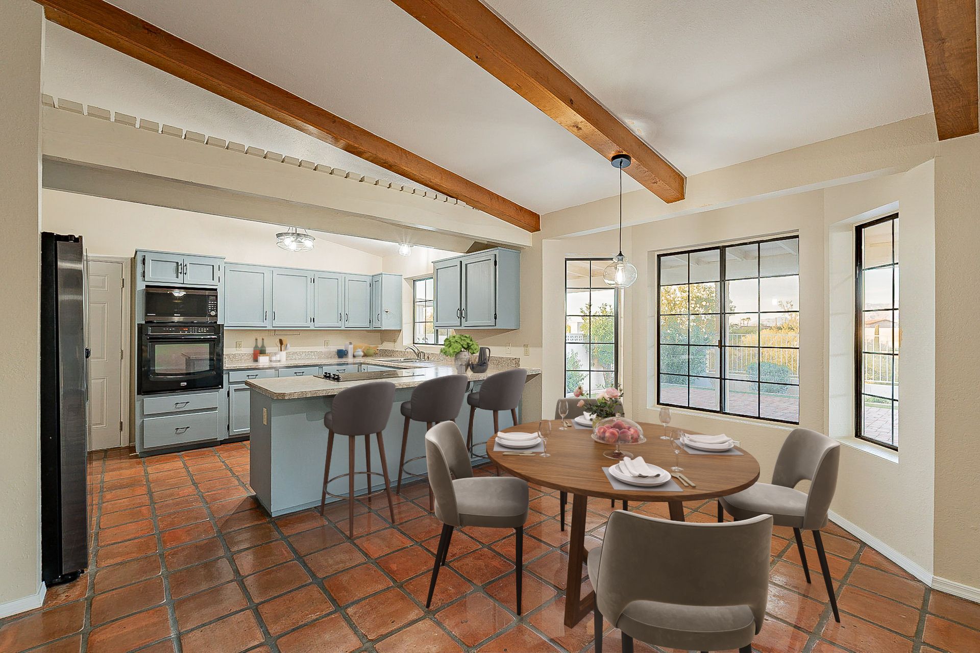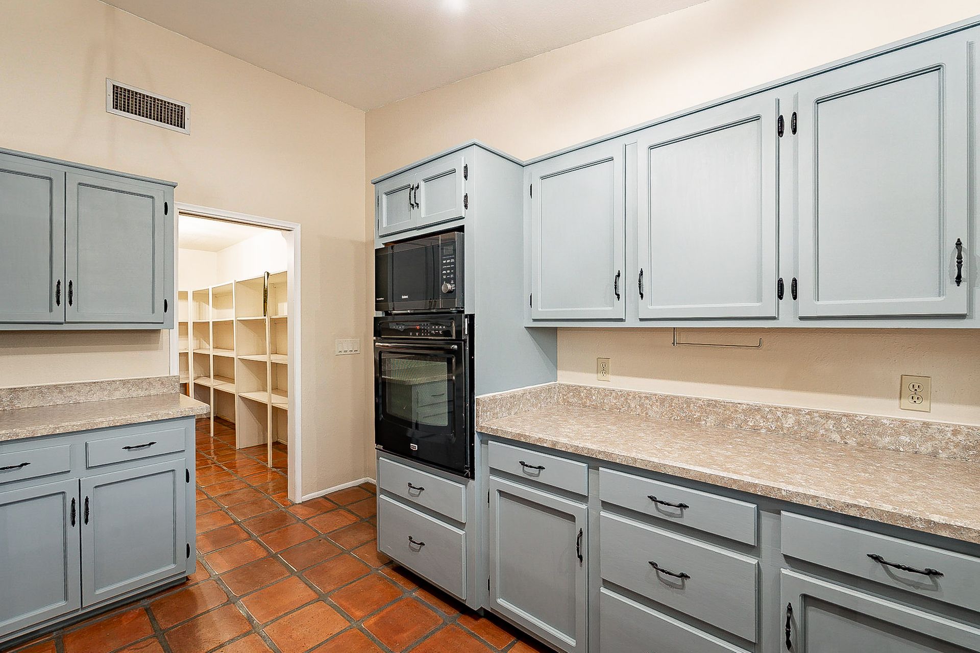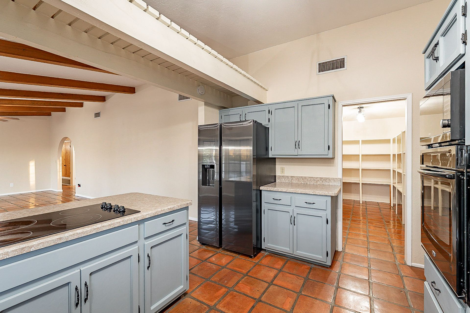 PRIVACY AND LOCATION! This stunning Tucson Ranch sits on over an acre of land with no rear neighbors. Lush acre backs up to a wash with beautiful mountain views, stunning sunsets, and city lights. Enjoy the low-care front yard and gorgeous backyard with a fully covered patio, pavers, a side yard, and artificial turf. The kitchen has just had a facelift with gorgeous greyish-blue cabinets, new hardware, and quartz-like counters – The bonus is a huge walk-in pantry. Beautiful wood beams run across the vaulted ceilings and warm Saltillo flooring. Three large bedrooms, two baths, oversized two-car garage plus huge workshop, man door, and extra storage. There are also dual-pane windows and newer light fixtures. It feels like you are on your own remote island - with a cul-de-sac location, however less than 10 minutes to I-10, with an easy commute to the University of Arizona, downtown, Raytheon, Caterpillar, Davis Monthan Air Base, and Tucson airport. This is a true Tucson gem - Hurry over for a Visit.