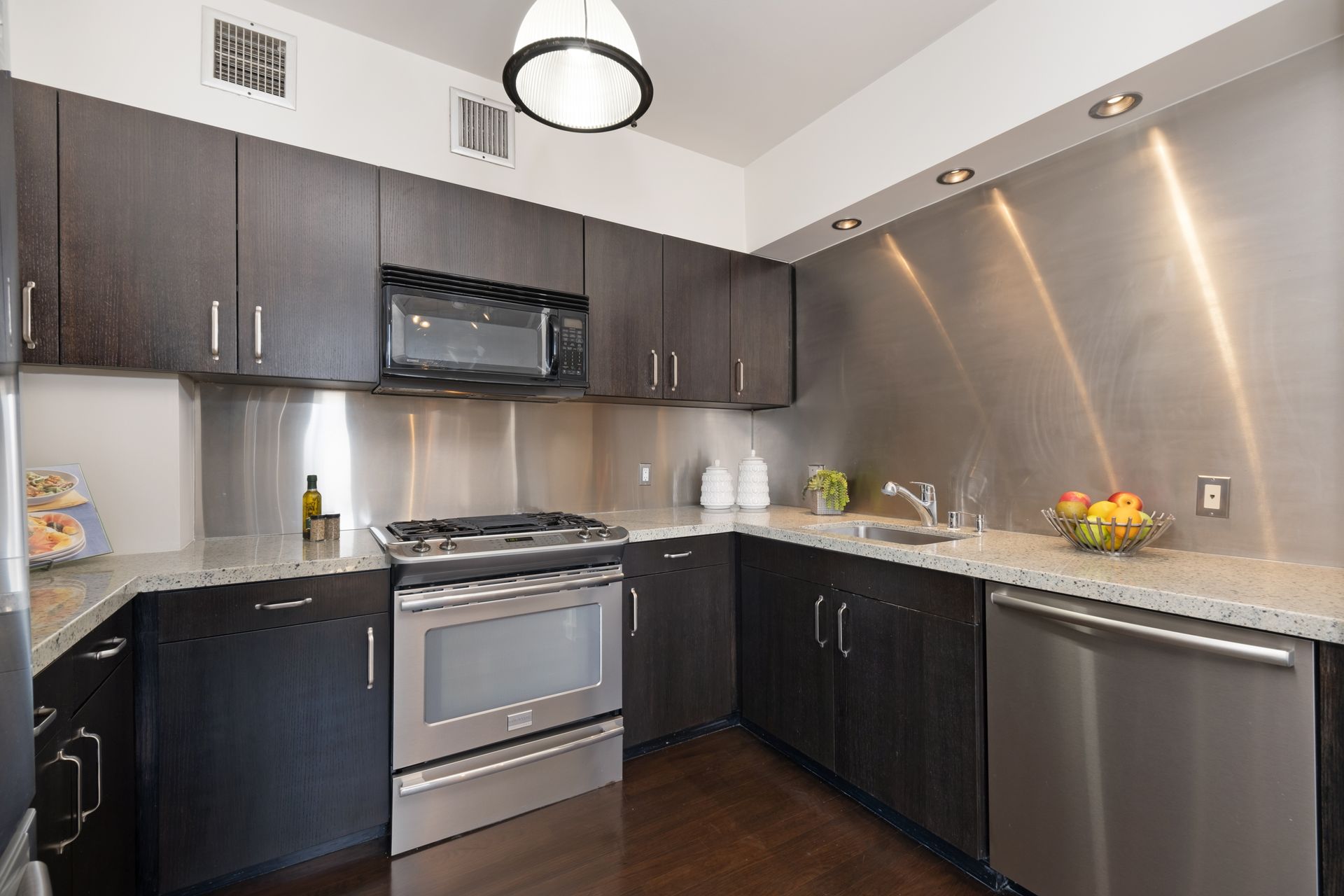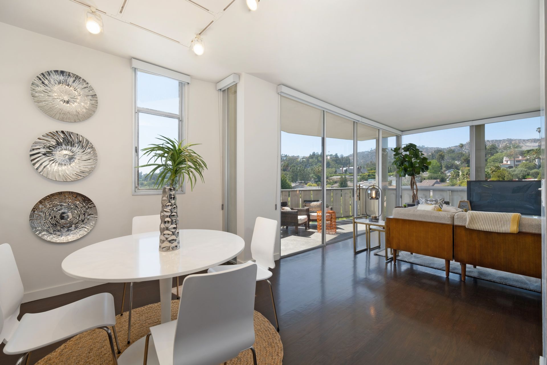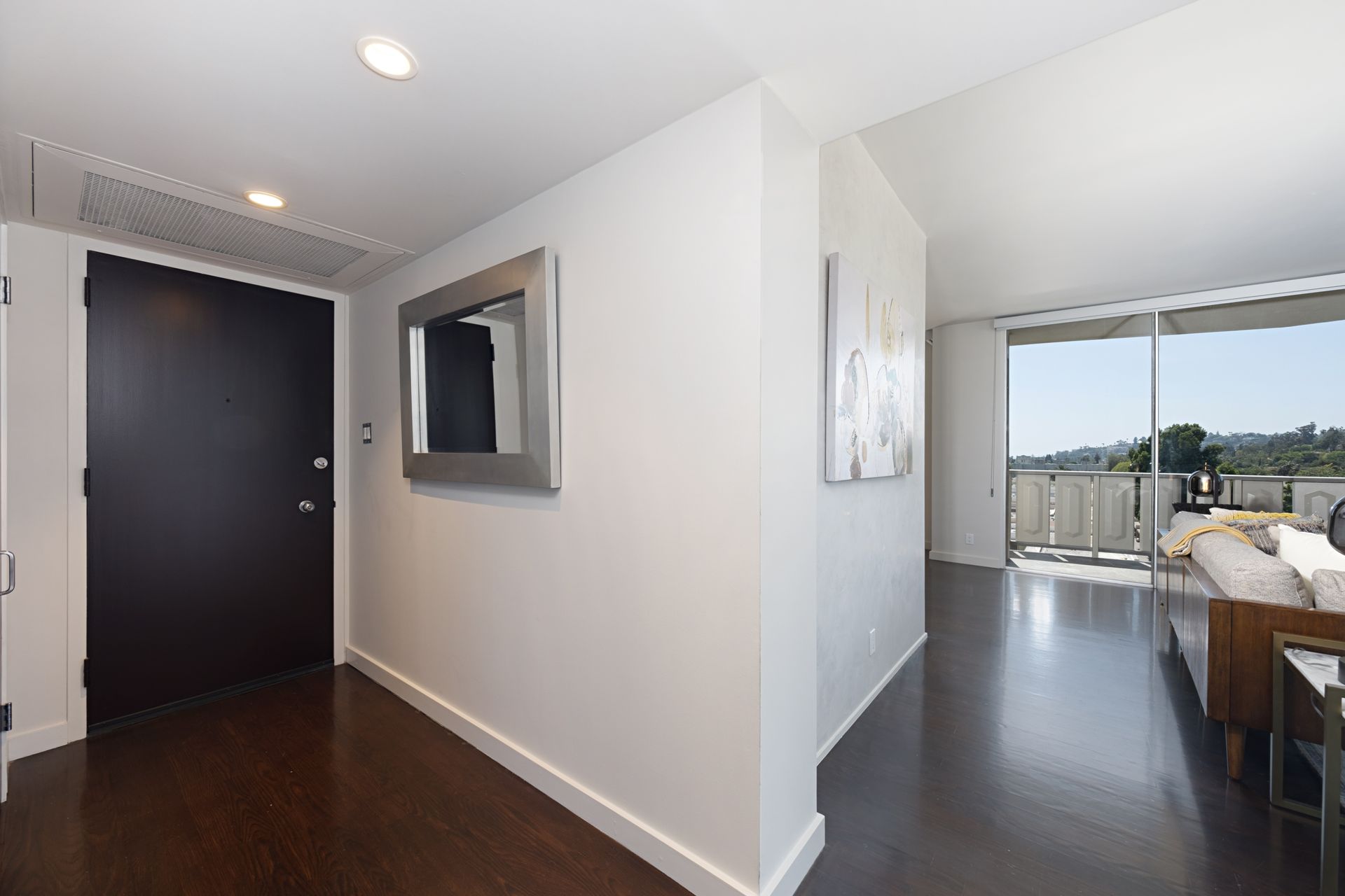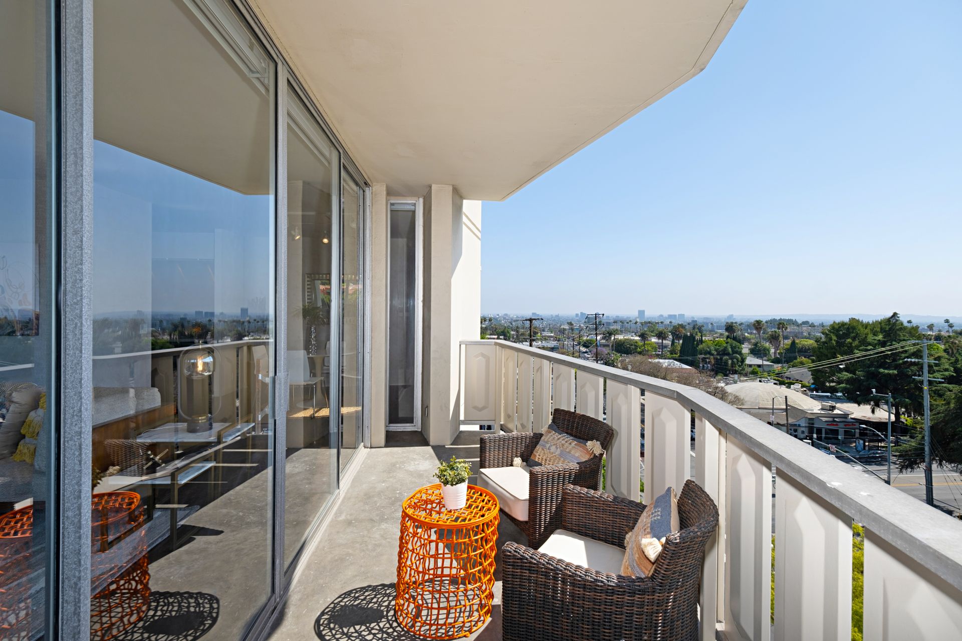 This coveted designer corner unit is most ideal for your main residence or Pied-à-terre. The modern kitchen features granite countertops, stainless-steel backsplash, and newer appliances. The unit showcases nine-foot ceilings with wall to ceiling glass windows with updated custom-fit shades. The newer sliding doors create an open space living area or an enclosed office with Halogen track lighting and built-in floating bookcases. The unit has oak hardwood floors with dark custom walnut finish and several built-in closets. The master bathroom has its own en-suite bathroom and newer spacious closets. This full-service complex features 24-hour security, a doorman, a beautiful heated pool, a gym, saunas, community laundry, two assigned premium parking spaces, a private storage unit and community bike racks. The unit has amazing views of all the things that makes this city spectacular: downtown, the ocean, hiking trails and Hollywood hills! Located a block away from Hillhurst Village shops, grocery stores and restaurants. Come home after a busy day and unwind watching the sunset off your private balcony.