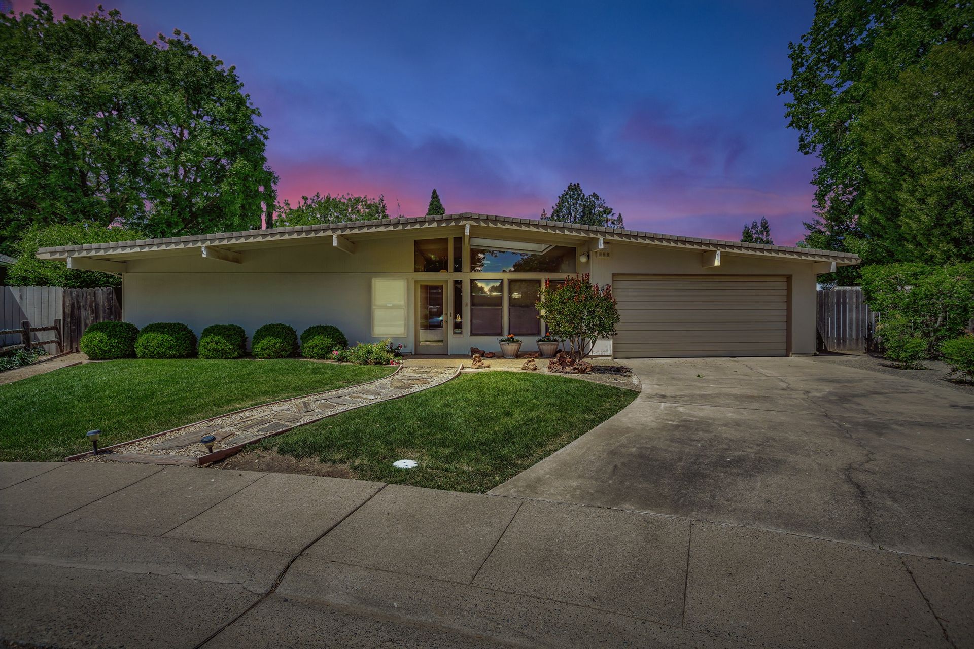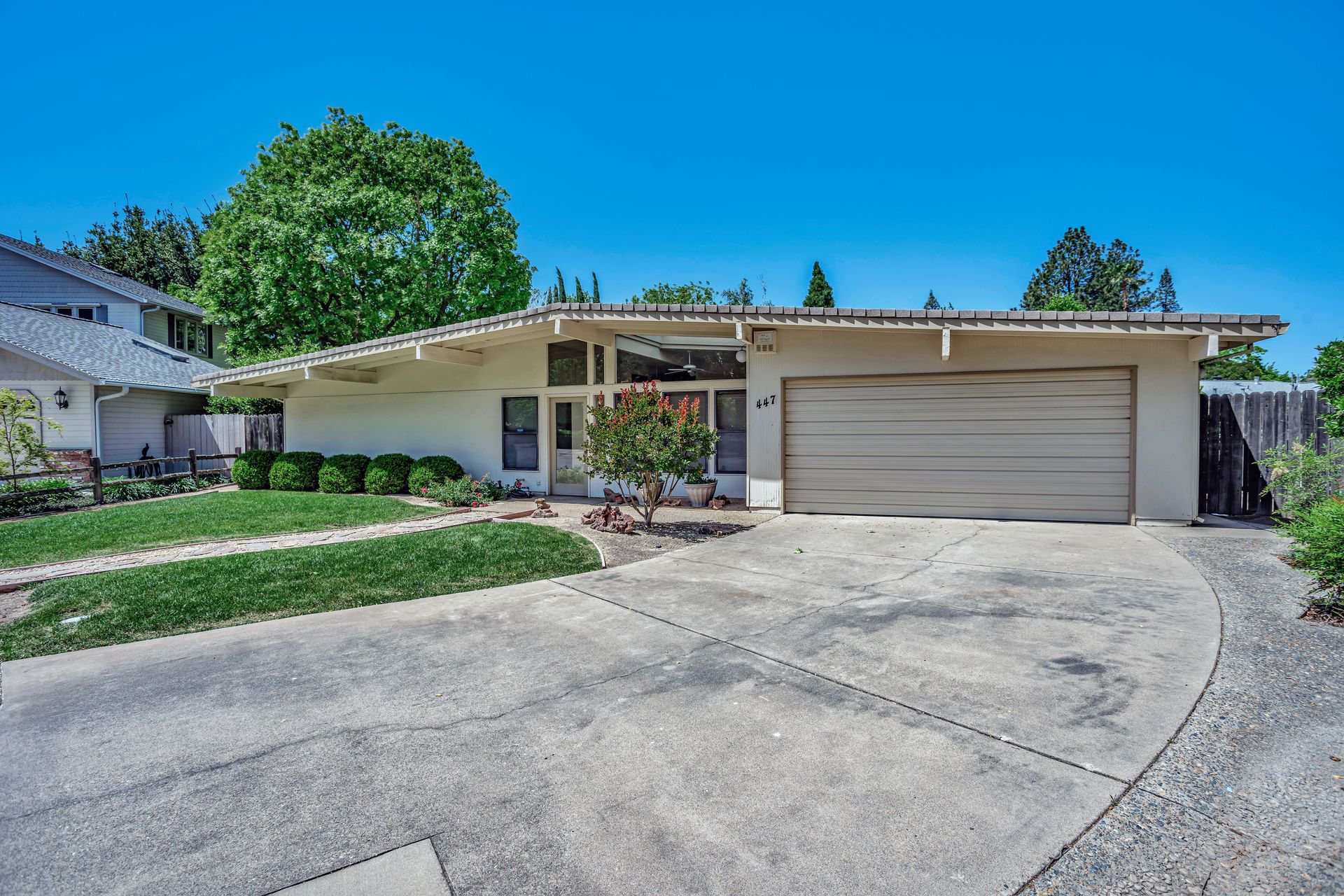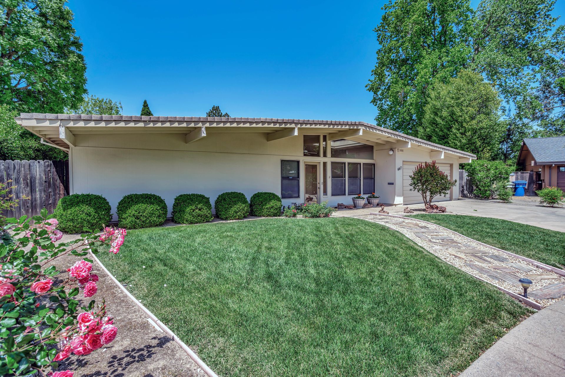 Welcome to 447 Groton Ct., a mid-century modern gem in the Wilhaggin community of Sacramento. This home boasts timeless design & is awaiting its new owners' touches to make it a dream residence for any discerning buyer. With 3 bedrooms & 3 full bathrooms spread over 2268 sq ft, this home offers spacious living areas ideal for both relaxation and entertaining. As you step inside, you're greeted by the inviting open spaces, a highlight of Streng MCM design. Enjoy two cozy fireplaces, in the family room & primary ensuite, that add warmth and character. The front enclosed atrium/patio space creates a serene and private retreat. One of the standout features of this property is the expansive approx. 1/2 acre landscaped lot, complete with a refreshing pool. Imagine hosting gatherings with friends and family in your private outdoor oasis, surrounded by lush greenery and the soothing sounds of water.