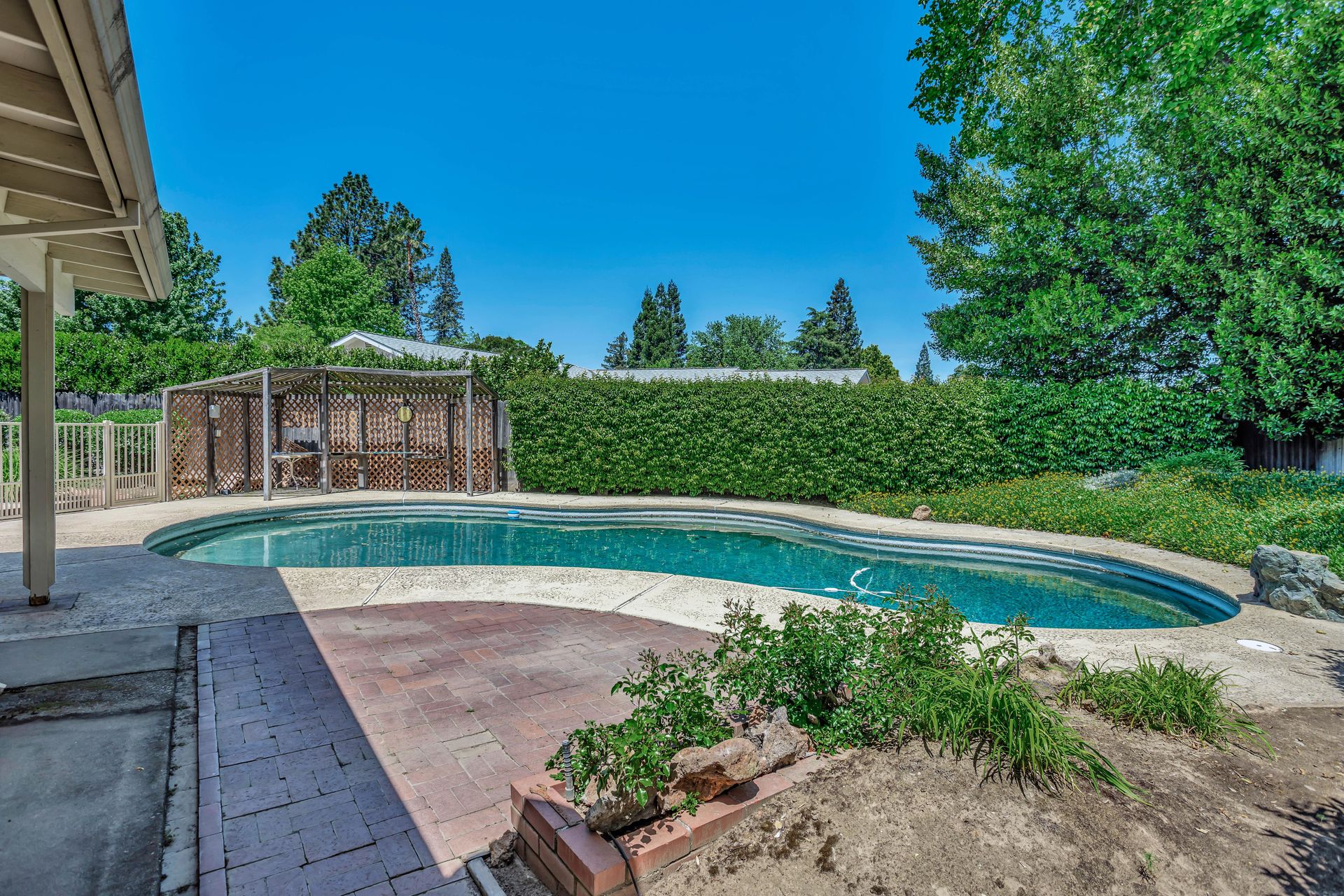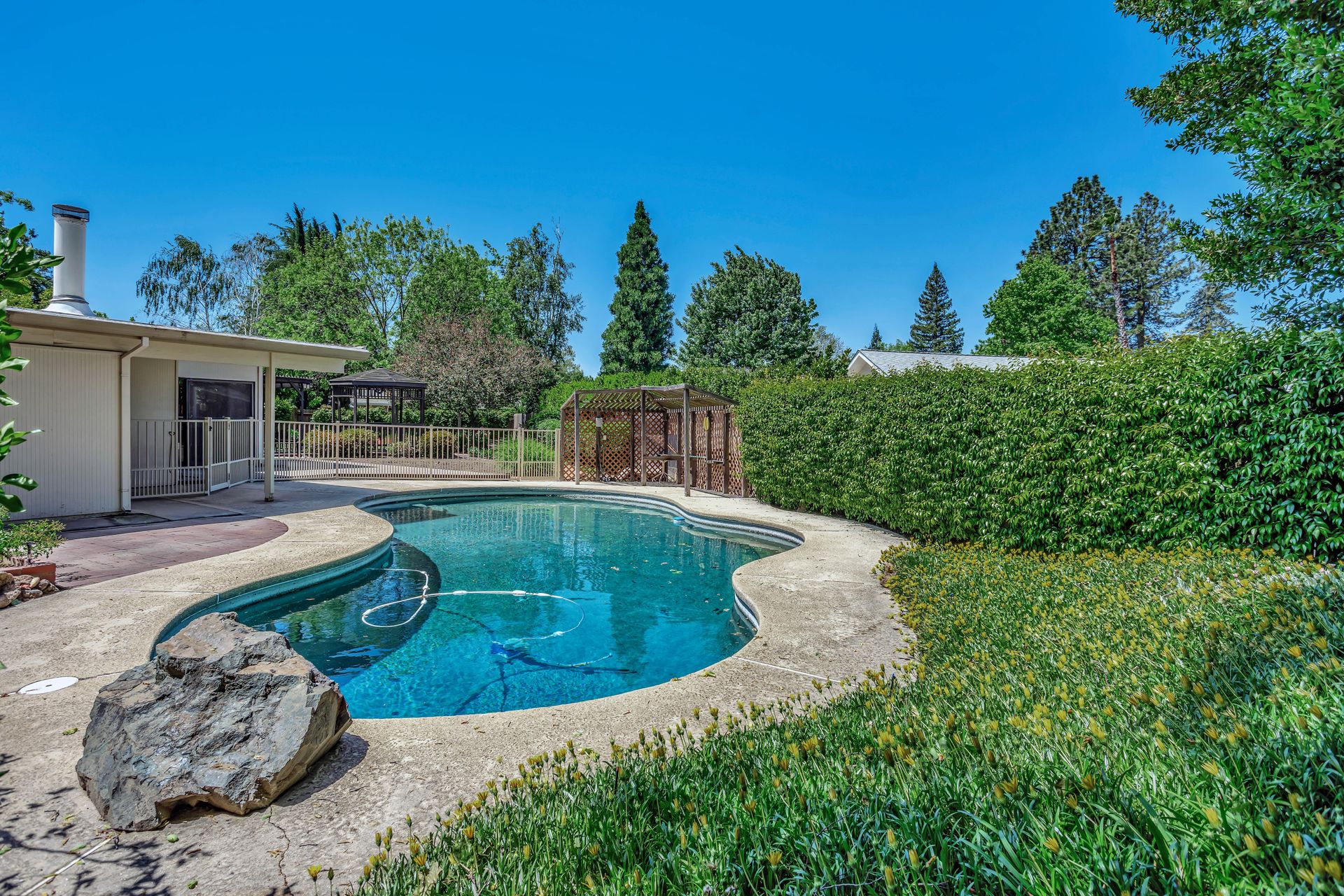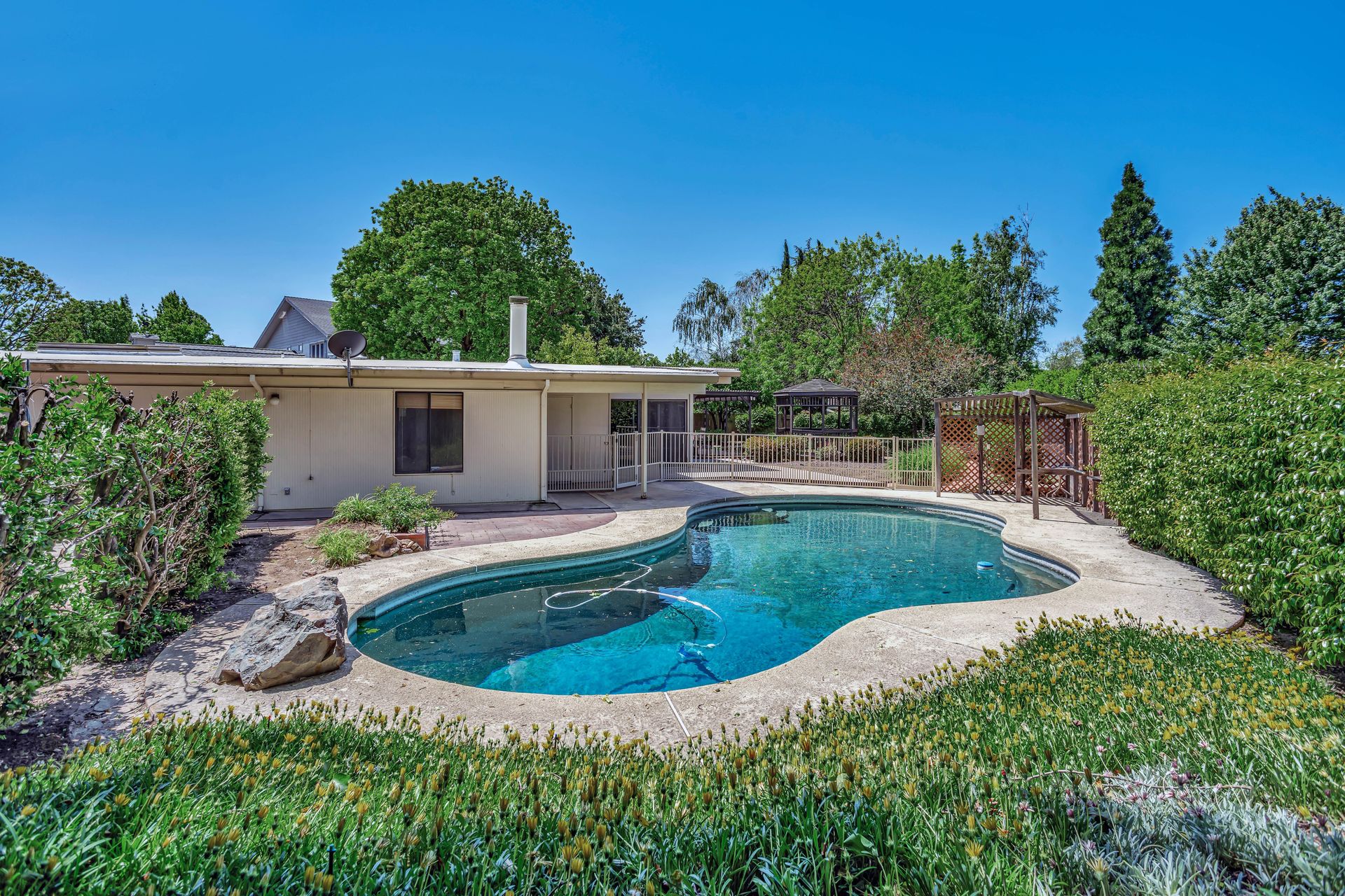 Welcome to 447 Groton Ct., a mid-century modern gem in the Wilhaggin community of Sacramento. This home boasts timeless design & is awaiting its new owners' touches to make it a dream residence for any discerning buyer. With 3 bedrooms & 3 full bathrooms spread over 2268 sq ft, this home offers spacious living areas ideal for both relaxation and entertaining. As you step inside, you're greeted by the inviting open spaces, a highlight of Streng MCM design. Enjoy two cozy fireplaces, in the family room & primary ensuite, that add warmth and character. The front enclosed atrium/patio space creates a serene and private retreat. One of the standout features of this property is the expansive approx. 1/2 acre landscaped lot, complete with a refreshing pool. Imagine hosting gatherings with friends and family in your private outdoor oasis, surrounded by lush greenery and the soothing sounds of water.