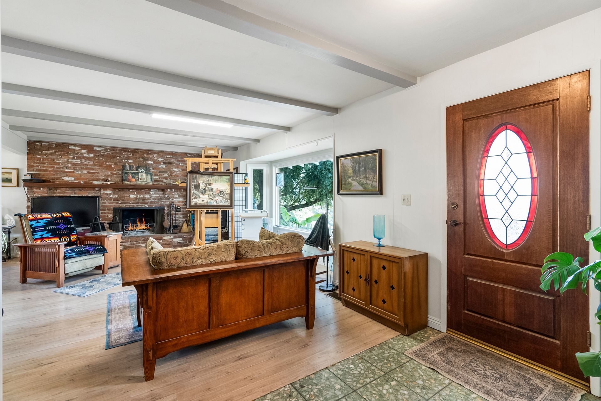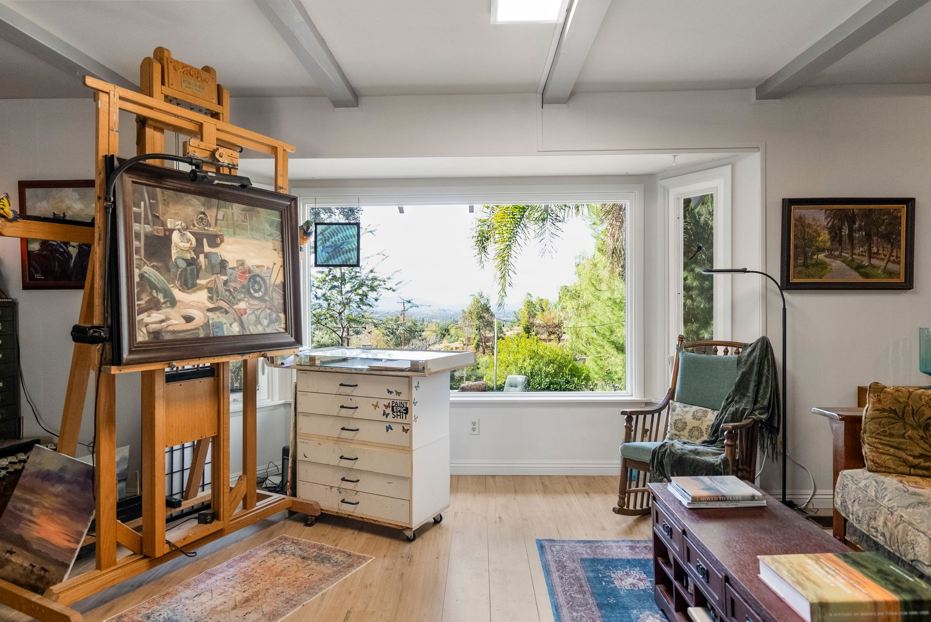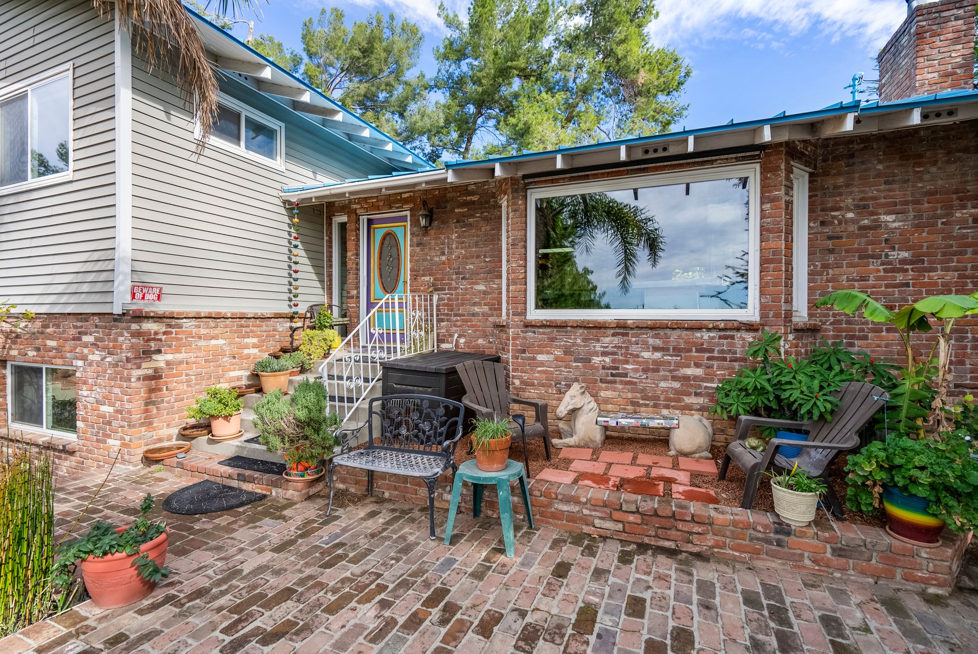Introducing a truly exceptional property surrounded by the breathtaking Box Springs Mountain Preserve. This oasis was once a backdrop for famed Hollywood cinematographer and Riverside native, Ken Middleham. Time stands still in his projection room, theater, darkroom, and workshop. This unique home is currently owned by an artist and has been an incredible canvas for creativity and self-expression. This home has been lovingly maintained by only two owners over its 60-year existence. This remarkable gated retreat boasts privacy and breathtaking views on a sprawling one-acre property. The layout of the 3,523 square foot multi-level floorplan is ideal for multigenerational living, affording everyone a sense of privacy. The original roof was recently replaced with a standing seam metal roof offering practical durability and aesthetic appeal. Other features and improvements include an updated kitchen, a newer A/C and heat pump, updated windows, and tons of built-ins throughout. The picturesque landscape is adorned with a vegetable garden and a variety of fruit trees including every imaginable citrus tree, multiple stone fruits, guava, pomegranate, and grapevines. The brick front porch is an ideal location for Spring/Summer al fresco dining by the serene koi pond or for crisp Fall/Winter nights by the crackling firepit. There is plenty of storage and room for toys, as well as accommodation for occasional overnight guests. Within biking distance to UCR and a short drive to Downtown Riverside and freeway access. Don't miss this opportunity to own a one-of-a-kind property in Riverside.