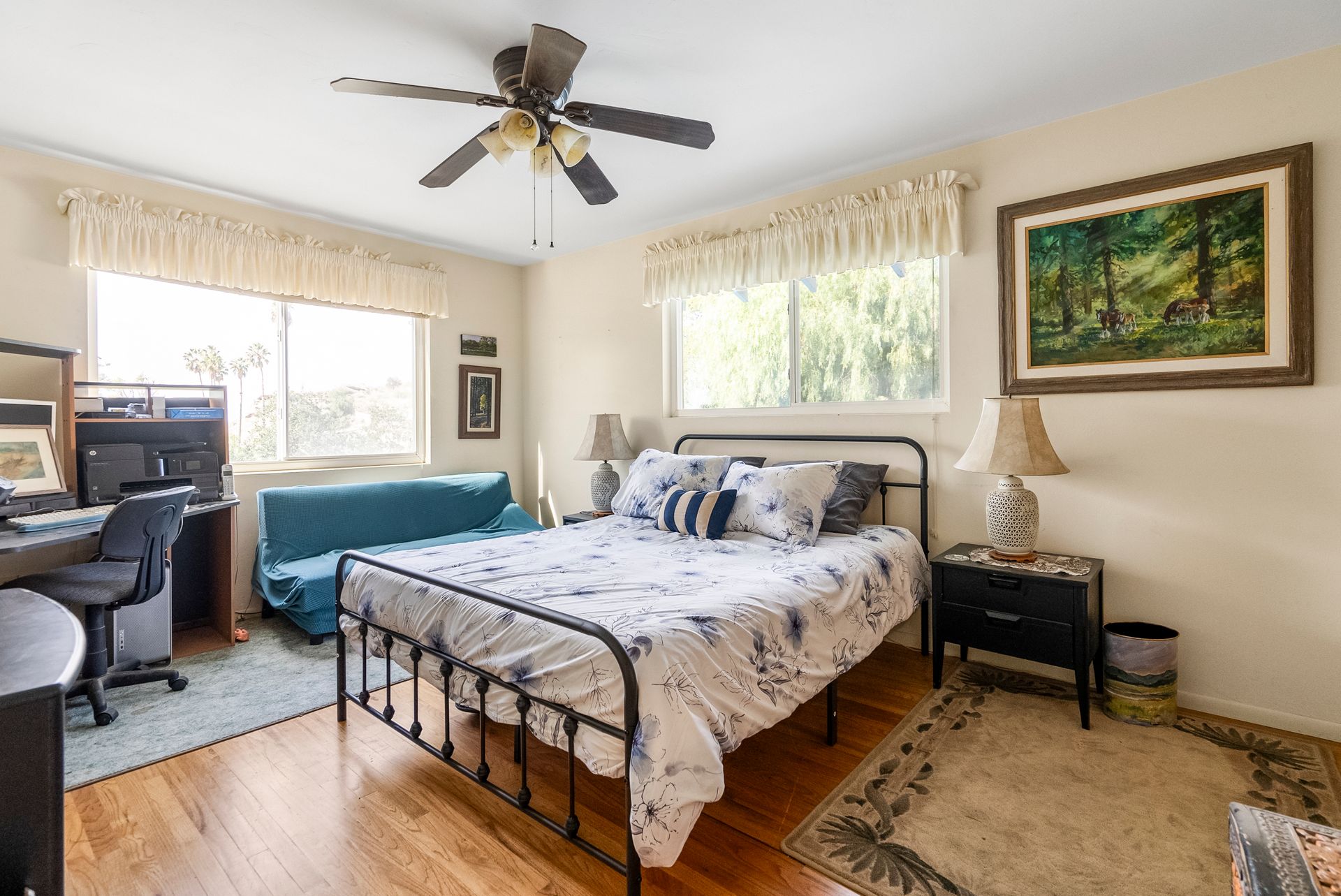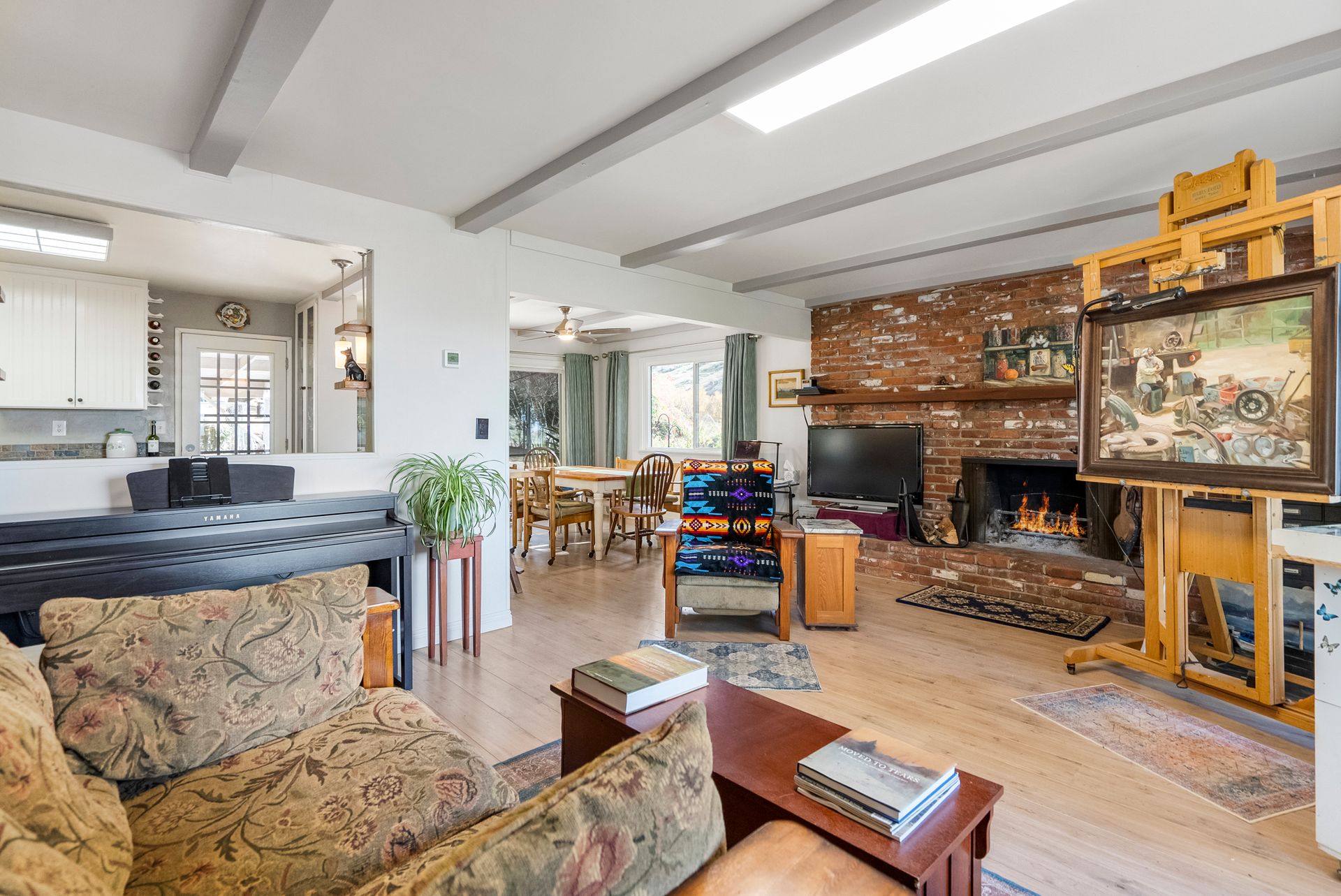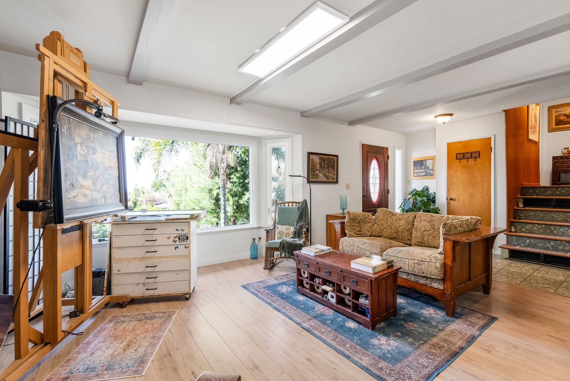 Introducing a truly exceptional property surrounded by the breathtaking Box Springs Mountain Preserve. This oasis was once a backdrop for famed Hollywood cinematographer and Riverside native, Ken Middleham. Time stands still in his projection room, theater, darkroom, and workshop. This unique home is currently owned by an artist and has been an incredible canvas for creativity and self-expression. This home has been lovingly maintained by only two owners over its 60-year existence. This remarkable gated retreat boasts privacy and breathtaking views on a sprawling one-acre property. The layout of the 3,523 square foot multi-level floorplan is ideal for multigenerational living, affording everyone a sense of privacy. The original roof was recently replaced with a standing seam metal roof offering practical durability and aesthetic appeal. Other features and improvements include an updated kitchen, a newer A/C and heat pump, updated windows, and tons of built-ins throughout. The picturesque landscape is adorned with a vegetable garden and a variety of fruit trees including every imaginable citrus tree, multiple stone fruits, guava, pomegranate, and grapevines. The brick front porch is an ideal location for Spring/Summer al fresco dining by the serene koi pond or for crisp Fall/Winter nights by the crackling firepit. There is plenty of storage and room for toys, as well as accommodation for occasional overnight guests. Within biking distance to UCR and a short drive to Downtown Riverside and freeway access. Don't miss this opportunity to own a one-of-a-kind property in Riverside.