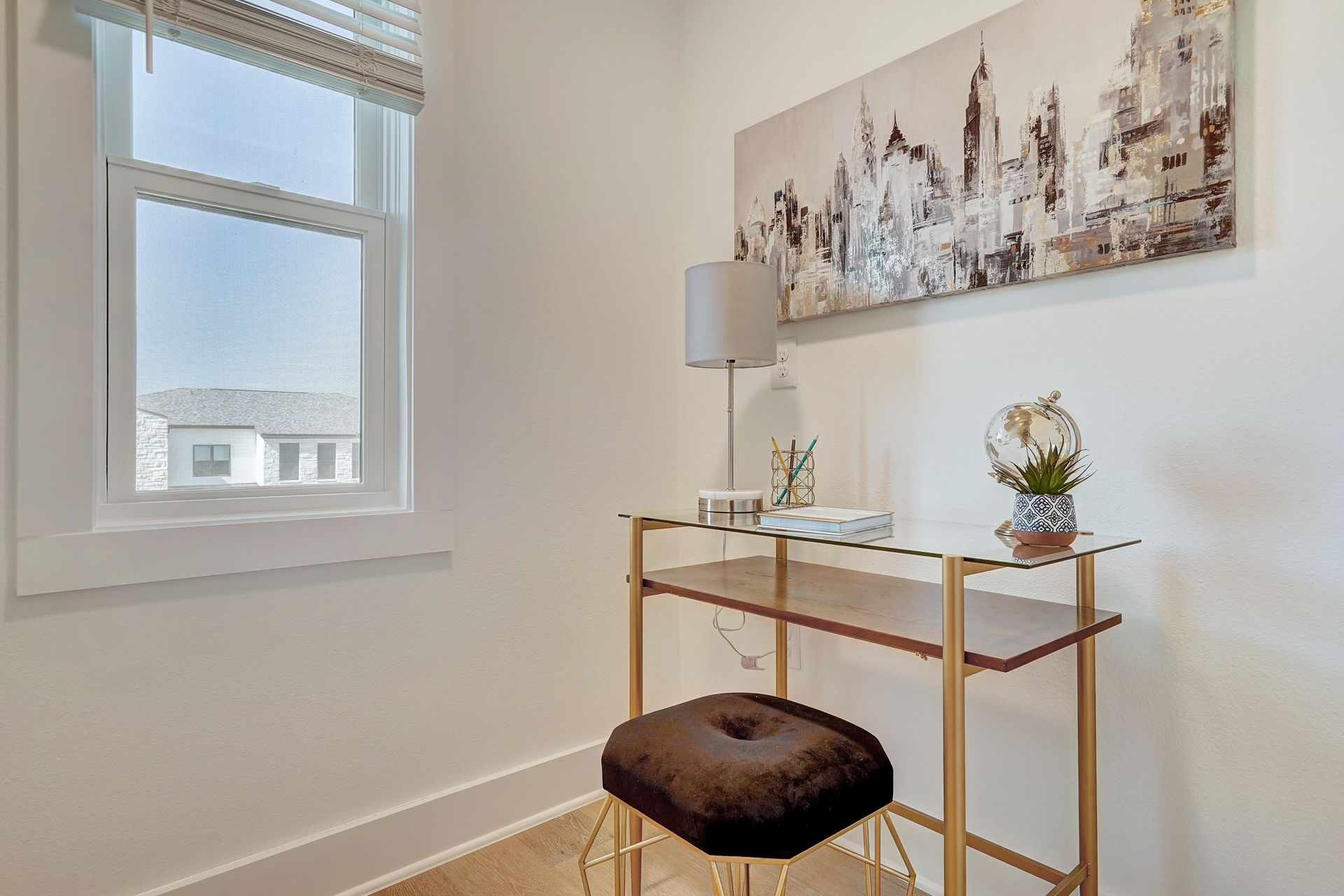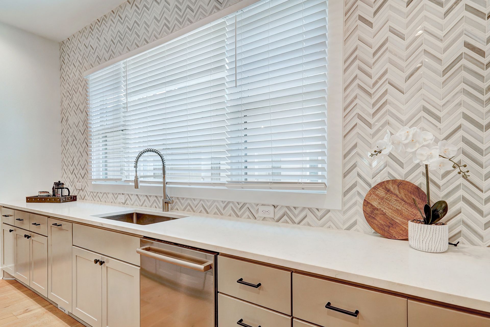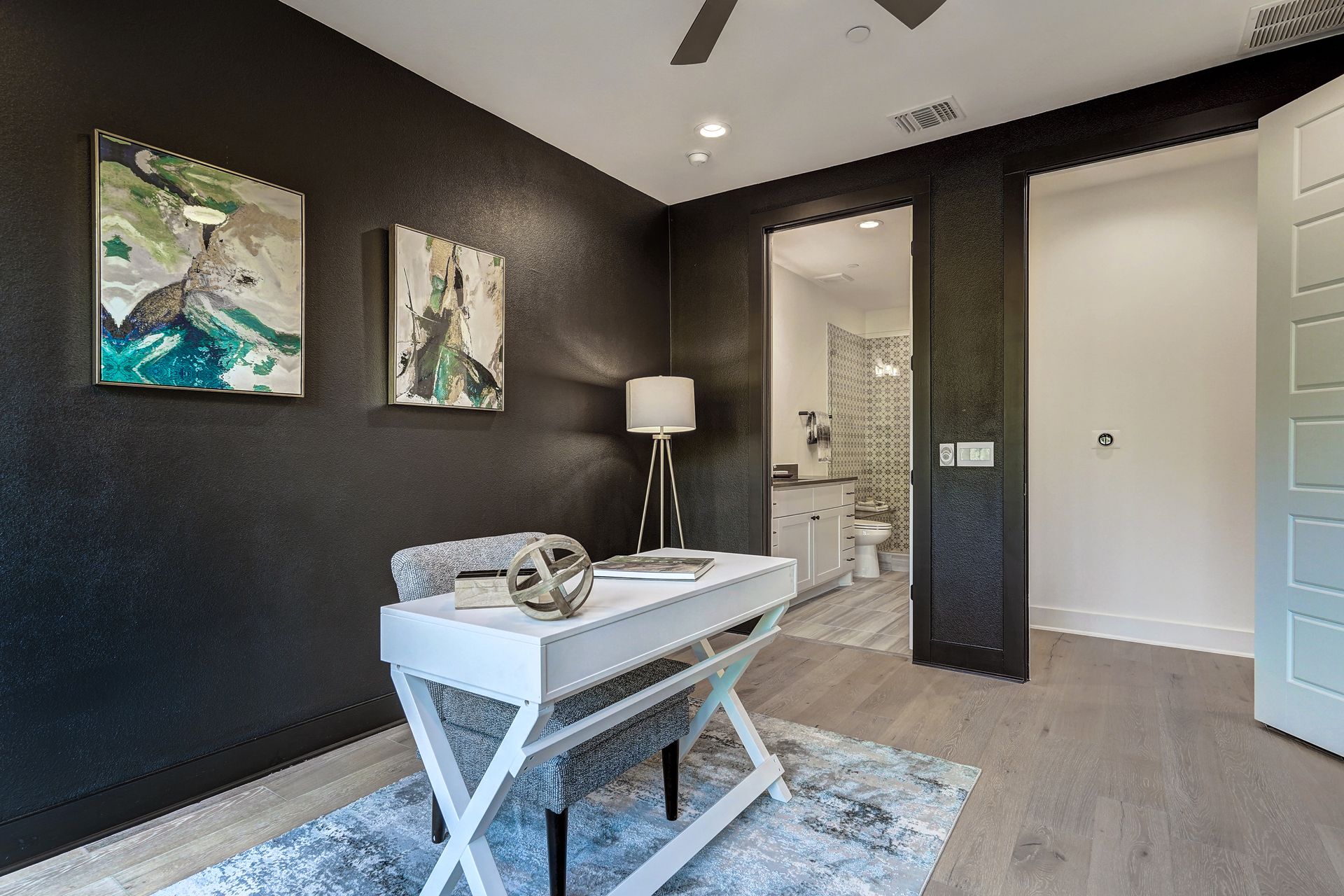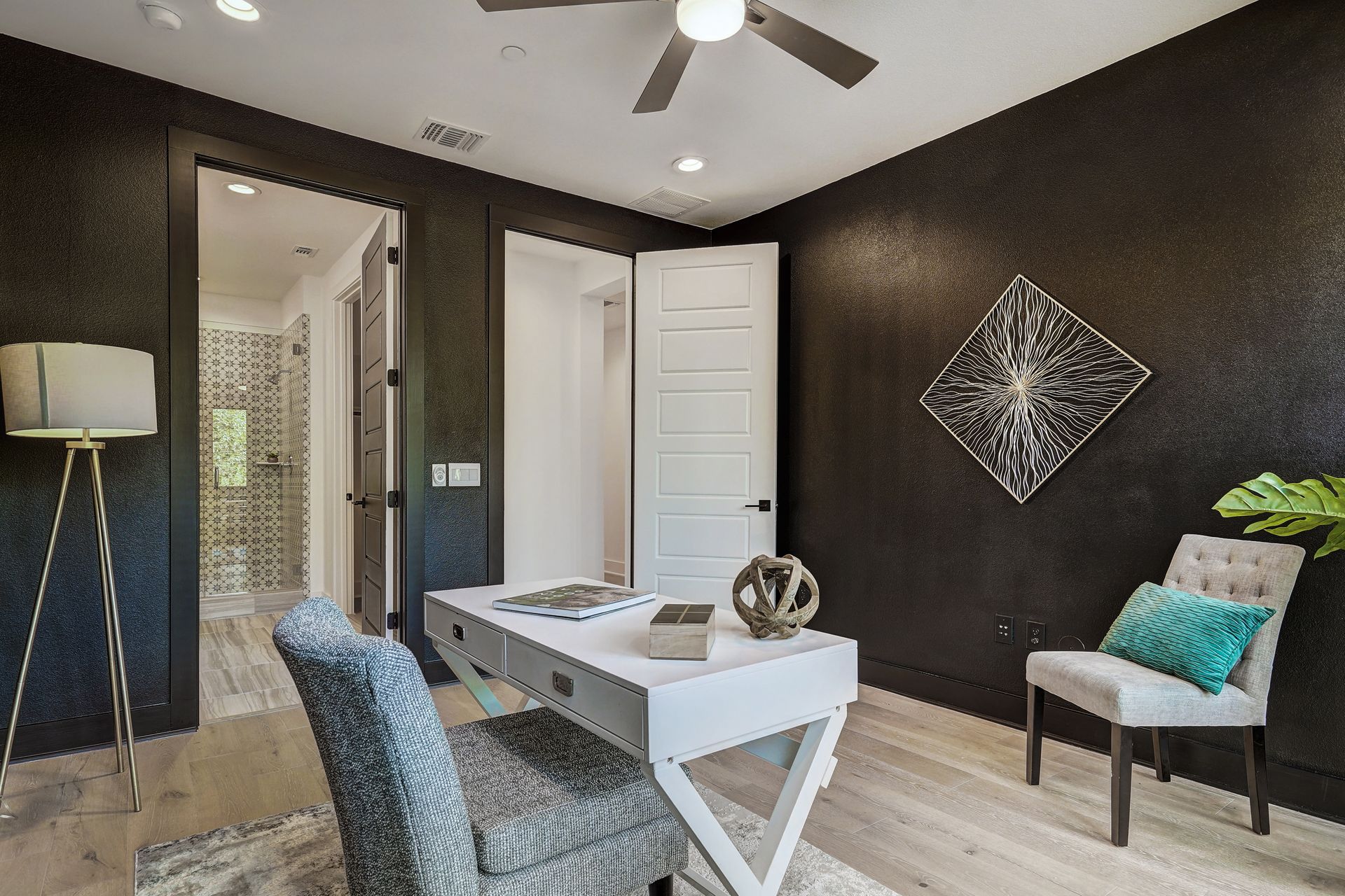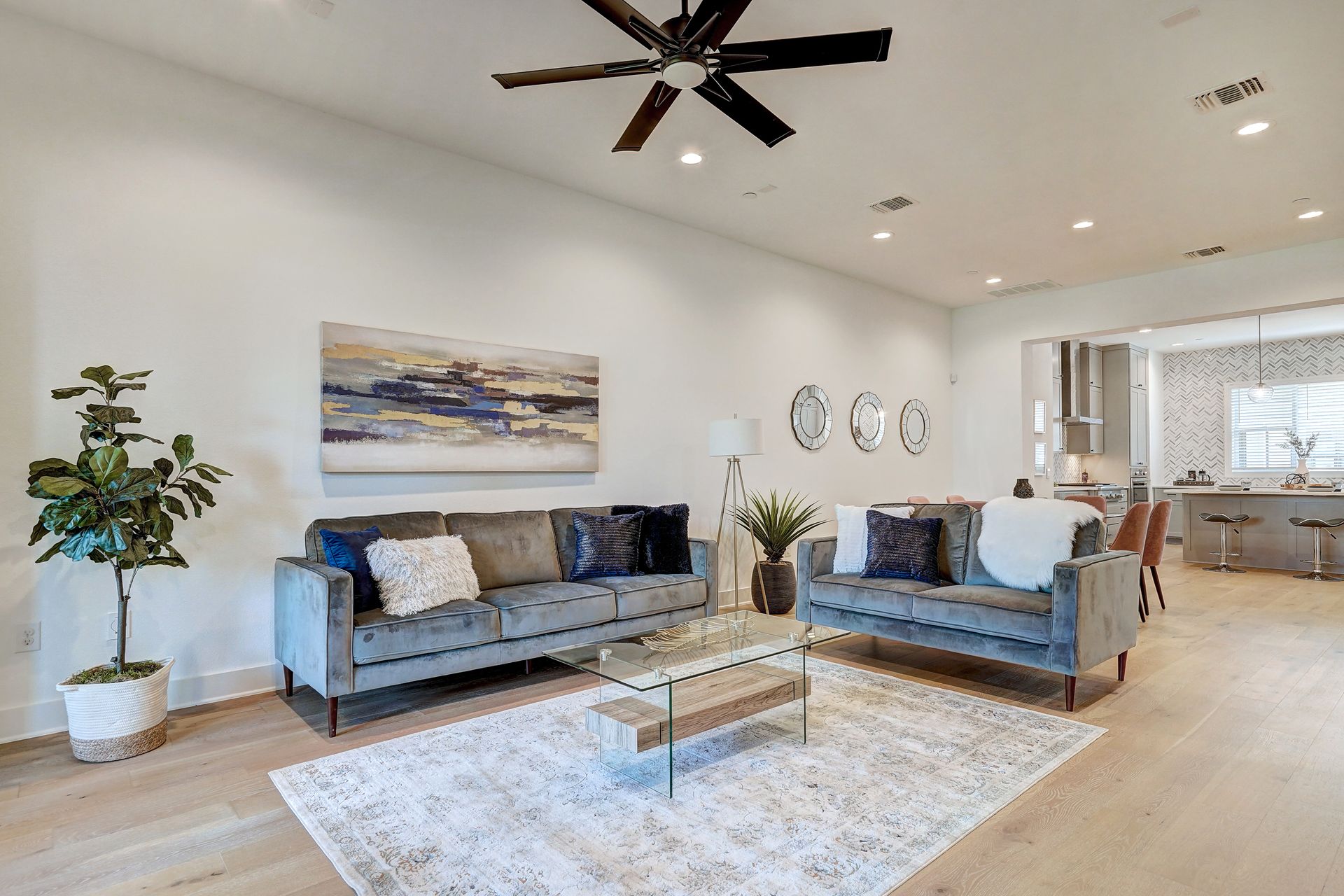 This stunning luxury townhome is ready for immediate move-in. The Grove is centrally located five miles from UT, downtown, Zilker, the Capitol & The Domain. Numerous upgraded features including hardwood flooring, herringbone caps on stairs, quartz counters throughout, extra lighting, & fans plus a bonus office nook. The ground level features a fenced front yard, flexible den/office space with a full bath and elevator entrance. The gourmet kitchen has abundant cabinets, backsplash, pantry, and an oversized island. The large dining and living rooms unfold onto a large covered balcony. Endless owner's suite with double vanities, separate shower & tub and a massive custom-built walk-in closet. The top floor has a bedroom/bath plus an enormous bonus room that opens to a covered deck. Enjoy incredible downtown views & watch the gorgeous sunset! Walking distance to hiking & bike trails, ponds, manicured green space and parks with shops and dining coming soon. Don't miss this amazing residence in the heart of Austin!