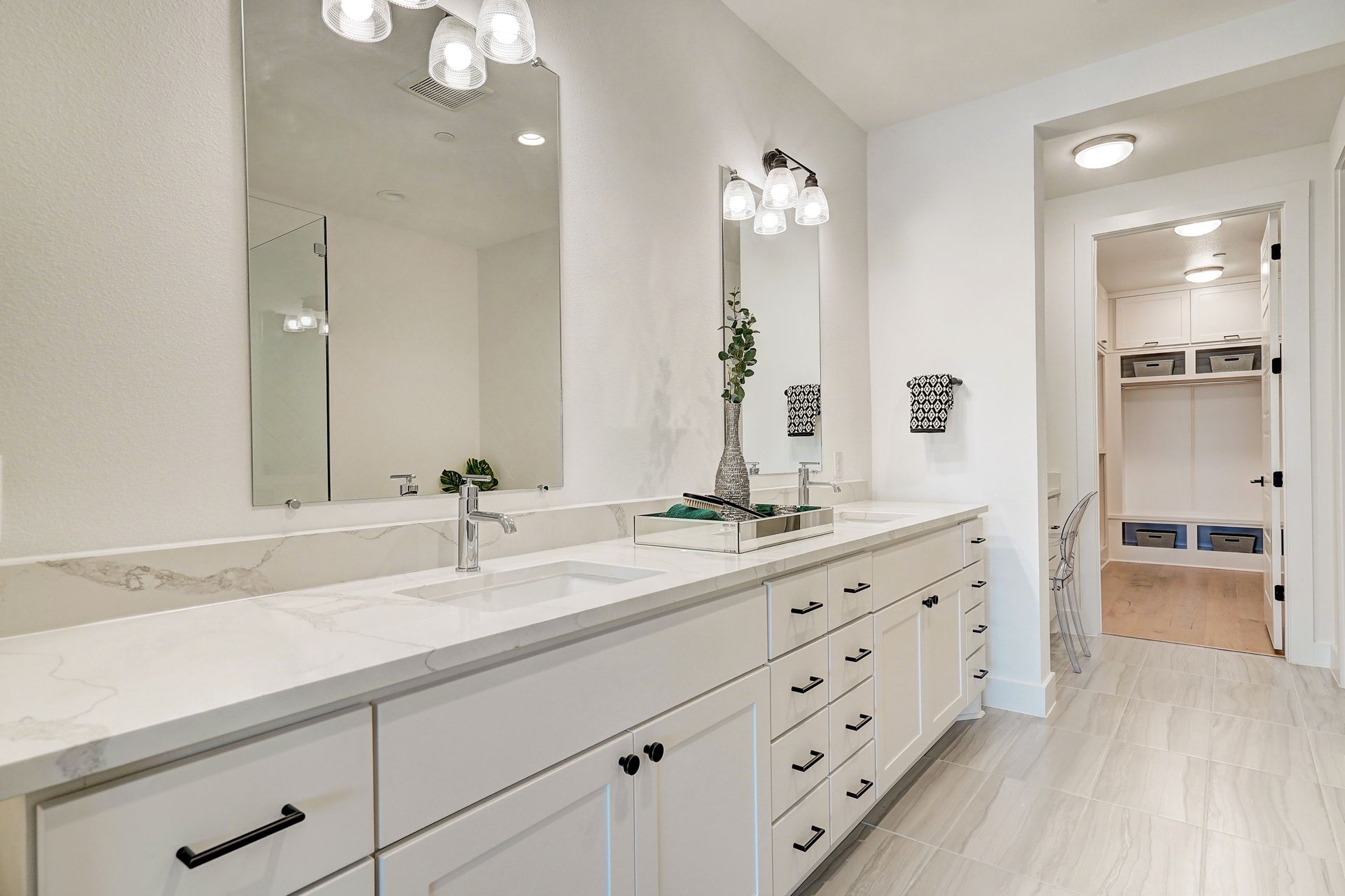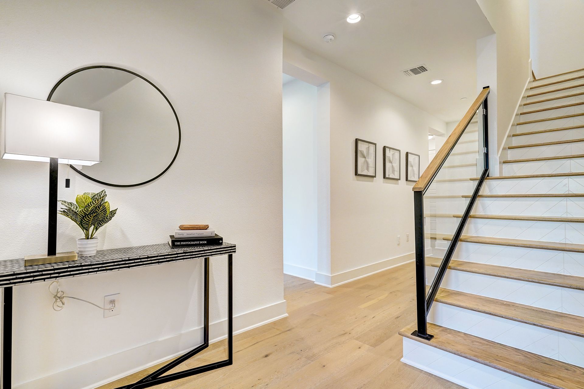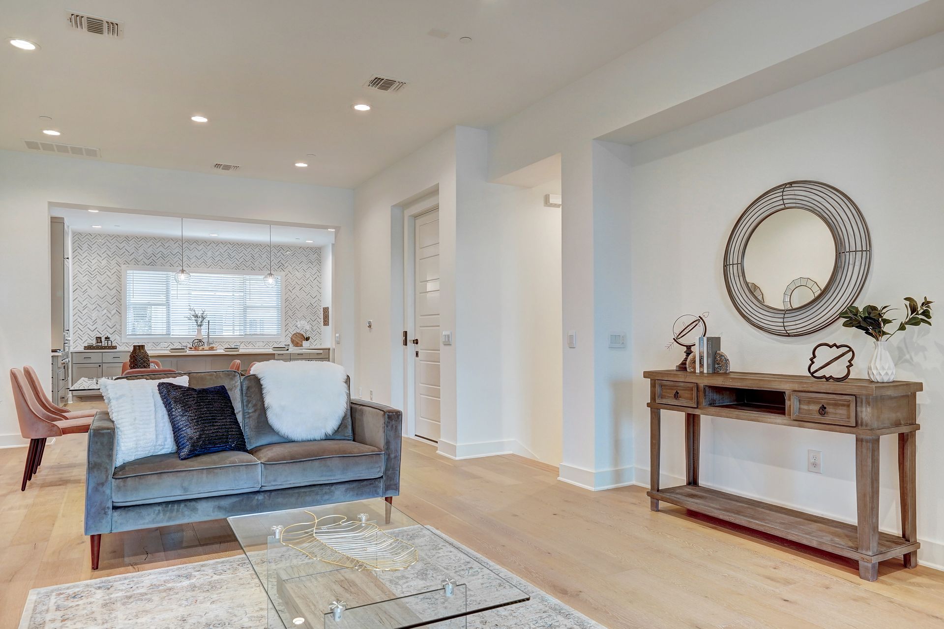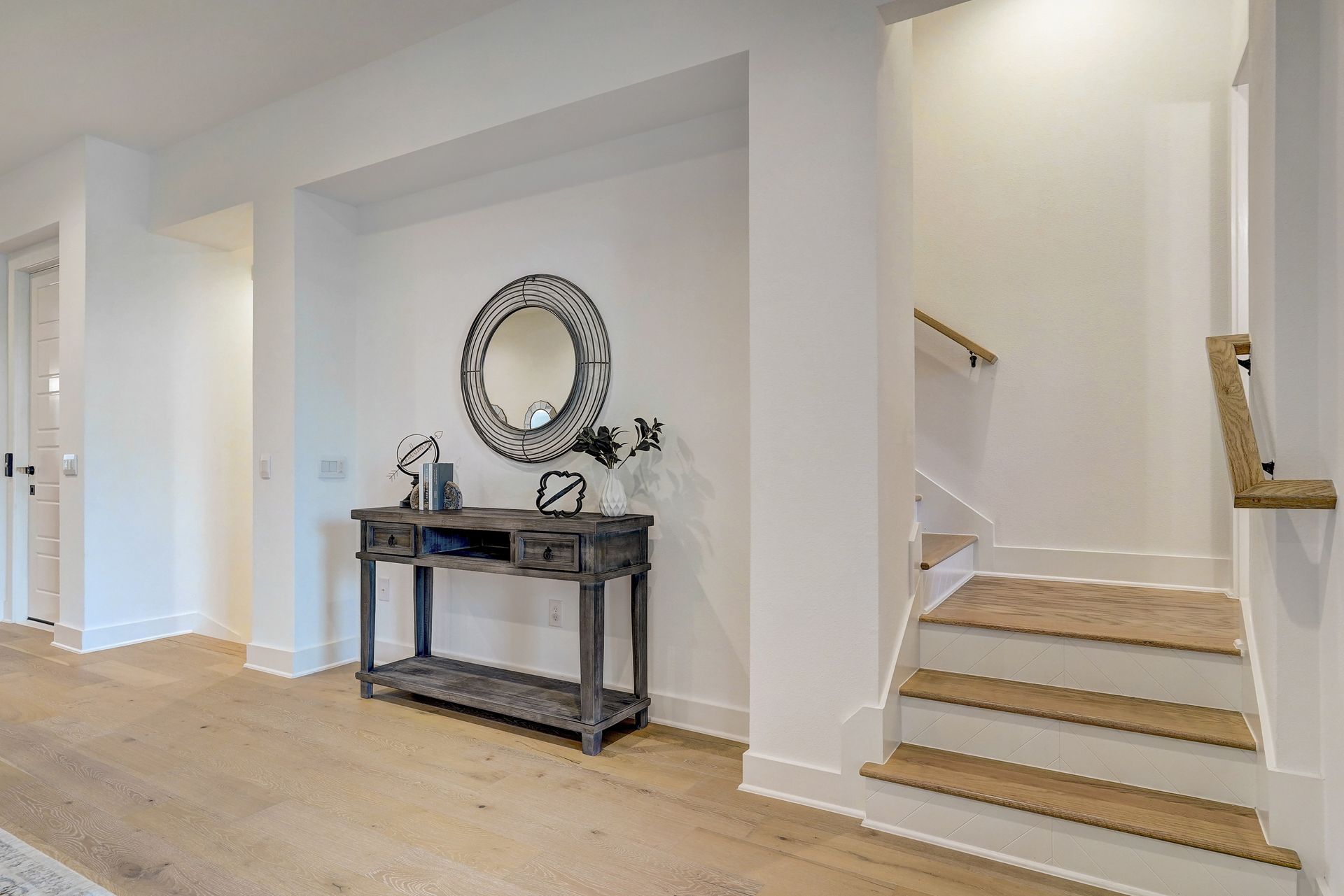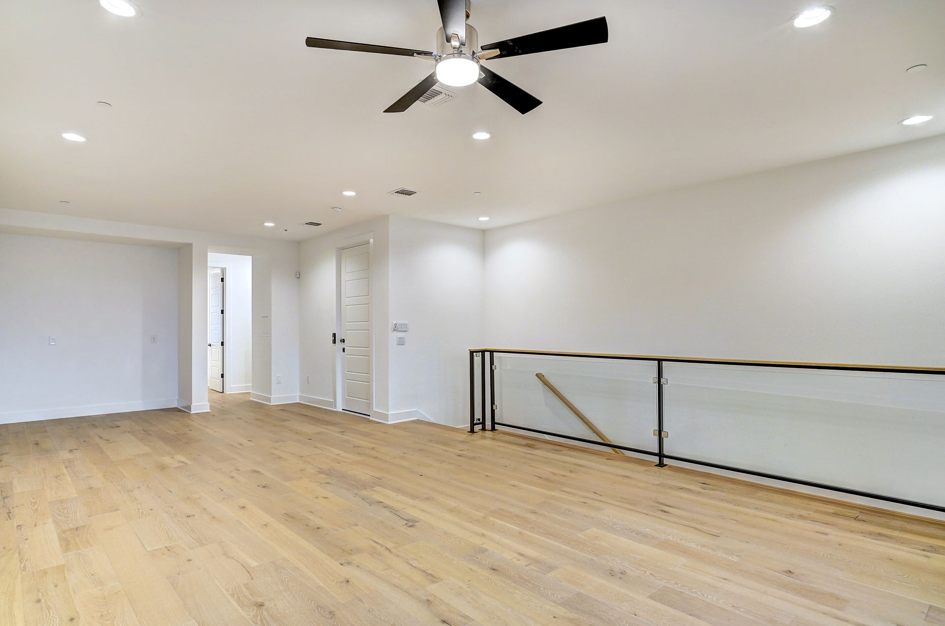 This stunning luxury townhome is ready for immediate move-in. The Grove is centrally located five miles from UT, downtown, Zilker, the Capitol & The Domain. Numerous upgraded features including hardwood flooring, herringbone caps on stairs, quartz counters throughout, extra lighting, & fans plus a bonus office nook. The ground level features a fenced front yard, flexible den/office space with a full bath and elevator entrance. The gourmet kitchen has abundant cabinets, backsplash, pantry, and an oversized island. The large dining and living rooms unfold onto a large covered balcony. Endless owner's suite with double vanities, separate shower & tub and a massive custom-built walk-in closet. The top floor has a bedroom/bath plus an enormous bonus room that opens to a covered deck. Enjoy incredible downtown views & watch the gorgeous sunset! Walking distance to hiking & bike trails, ponds, manicured green space and parks with shops and dining coming soon. Don't miss this amazing residence in the heart of Austin!