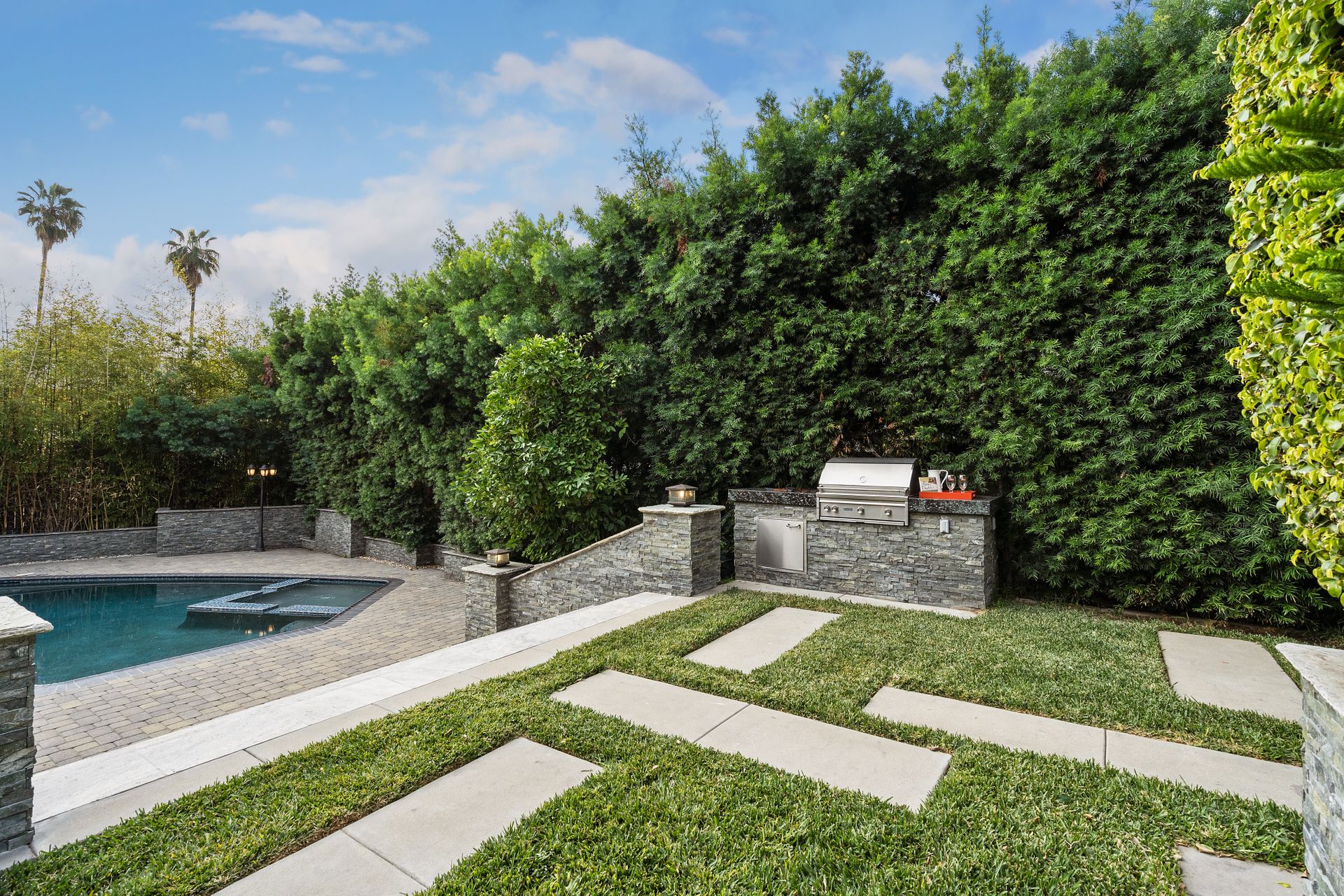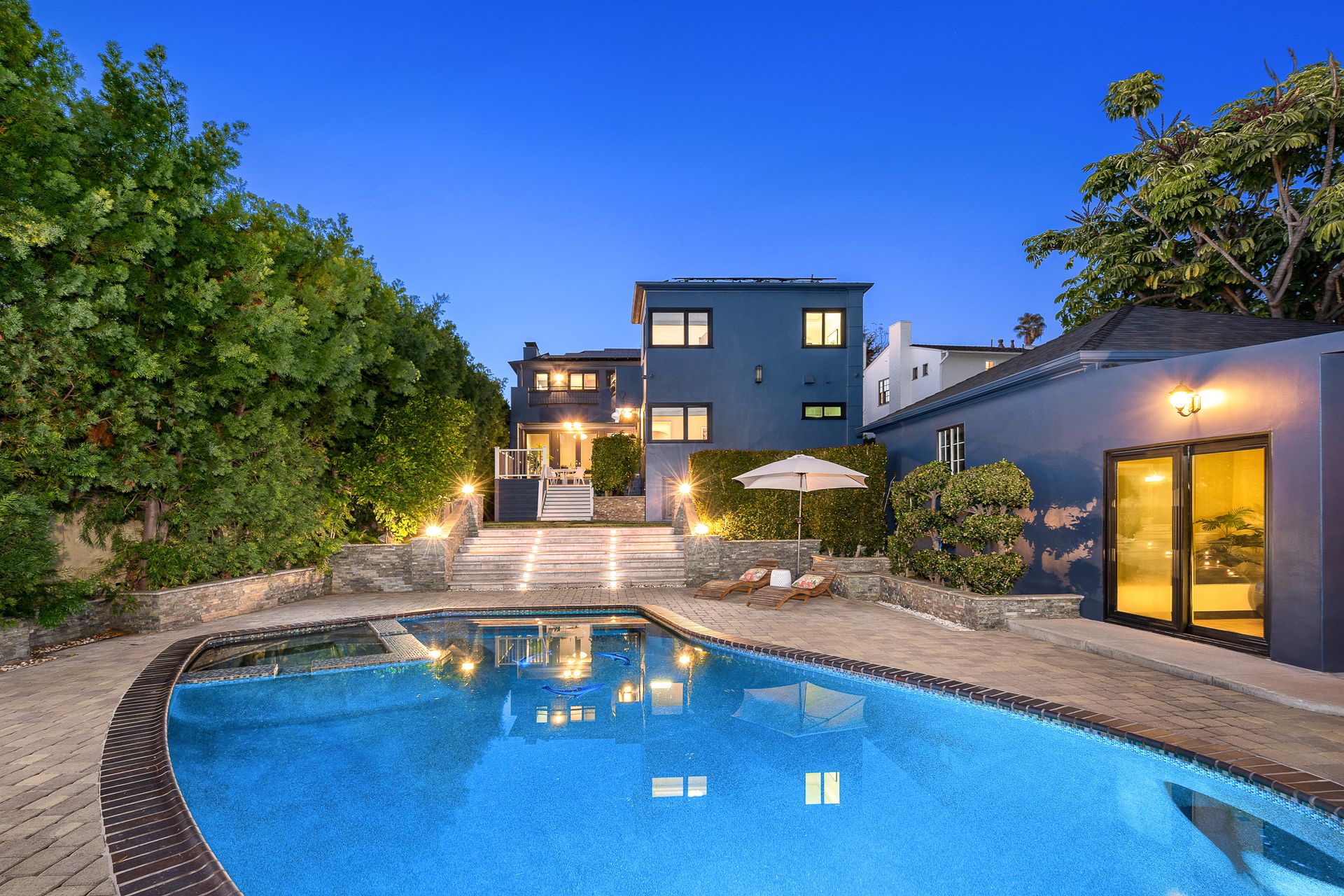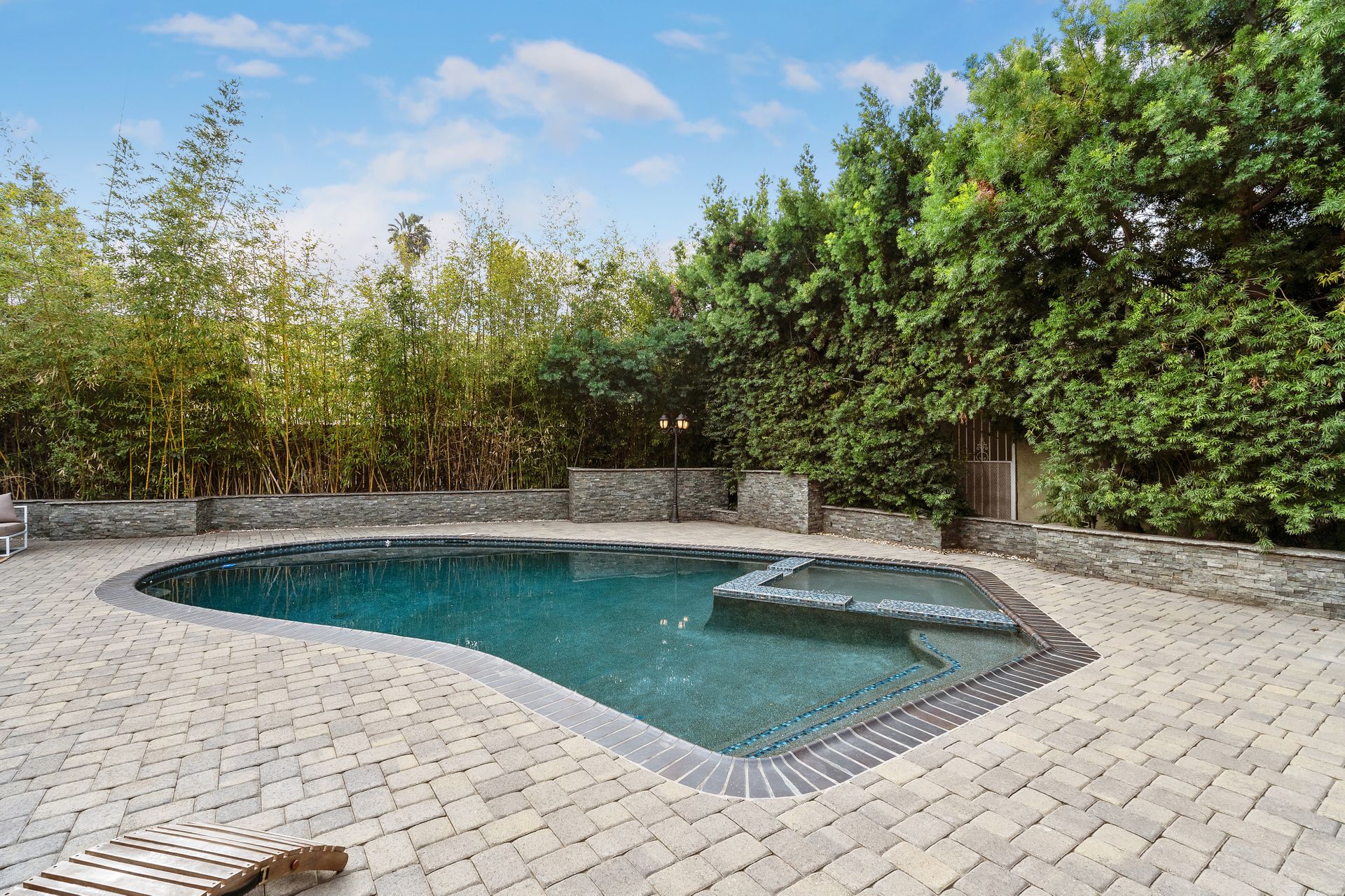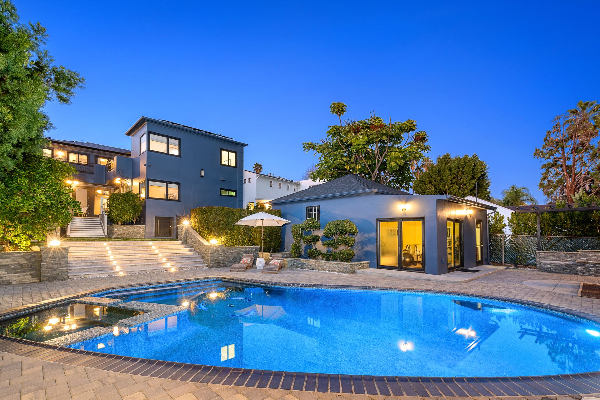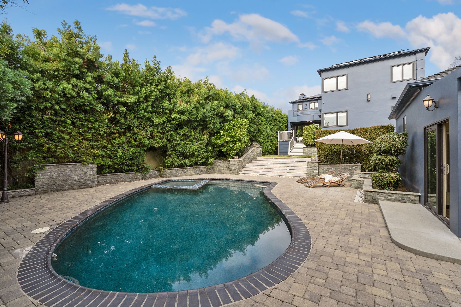 As you enter through the front door, be prepared to expect the unexpected. This updated, modern home, featuring four bedrooms, five baths will be sure to impress and wow you. Your own private Shangri-La awaits. Entering through the front door you are welcomed by the grand staircase, stained glass window and inlaid tile in the foyer. You will then be drawn through the home to the French doors onto a large entertainer’s deck leading you to the lush, terraced and landscaped backyard with a private saltwater pool and spa. Features of the home include two master suites...each with a walk-in closet and deep soaking tubs. Enjoy the charm and coziness provided by the two fireplaces...one that anchors the living room and the other in the front master suite. For the epicurean a large cook’s kitchen awaits you complete with a grand center island, Thermador suite of stainless-steel appliances, a breakfast area and an Edgestein wine refrigerator. Other features of the home include a wine cellar, outlets for up to three electrical vehicle charging stations, solar panels, an outdoor gas barbecue, gas fire pit and a separate room off the pool area ideal for home gym, office, yoga/zen retreat. The two-car garage is equipped with built-in work and storage cabinets along with your own air compressor. Private and gated.