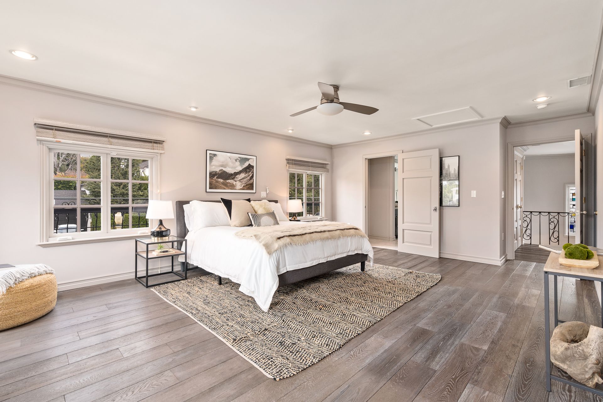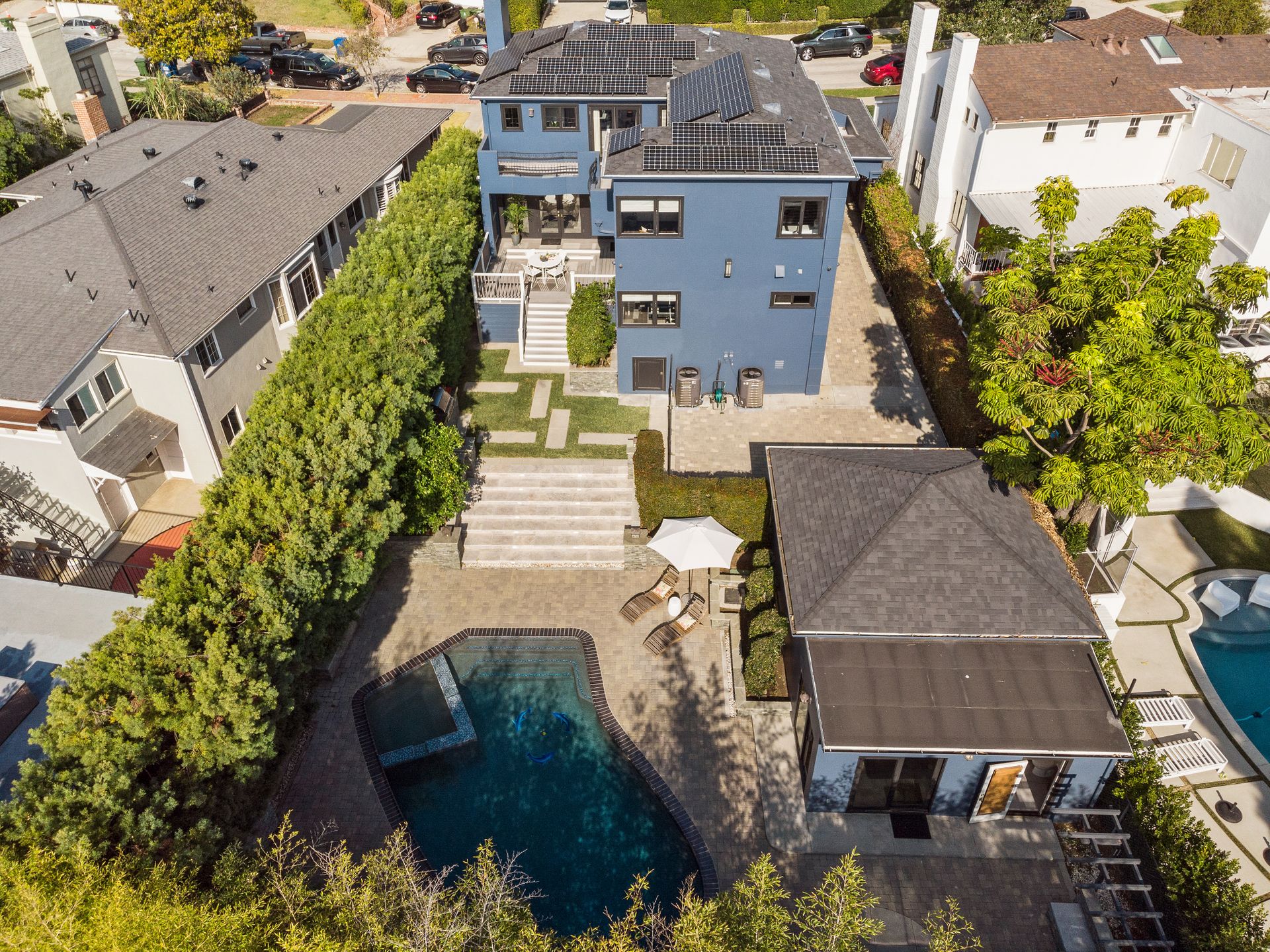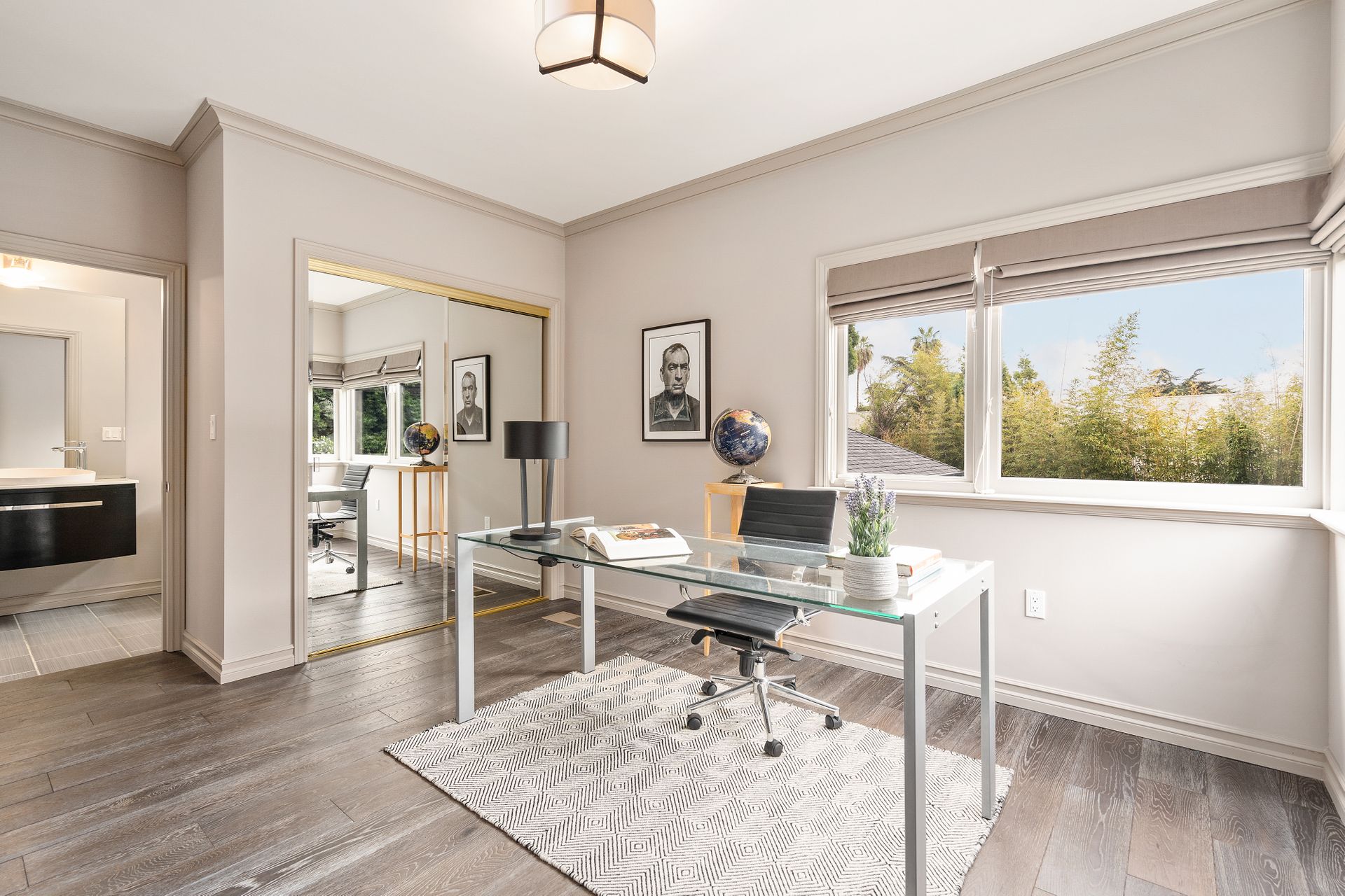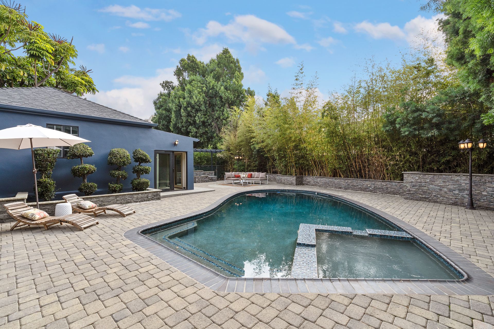 As you enter through the front door, be prepared to expect the unexpected. This updated, modern home, featuring four bedrooms, five baths will be sure to impress and wow you. Your own private Shangri-La awaits. Entering through the front door you are welcomed by the grand staircase, stained glass window and inlaid tile in the foyer. You will then be drawn through the home to the French doors onto a large entertainer’s deck leading you to the lush, terraced and landscaped backyard with a private saltwater pool and spa. Features of the home include two master suites...each with a walk-in closet and deep soaking tubs. Enjoy the charm and coziness provided by the two fireplaces...one that anchors the living room and the other in the front master suite. For the epicurean a large cook’s kitchen awaits you complete with a grand center island, Thermador suite of stainless-steel appliances, a breakfast area and an Edgestein wine refrigerator. Other features of the home include a wine cellar, outlets for up to three electrical vehicle charging stations, solar panels, an outdoor gas barbecue, gas fire pit and a separate room off the pool area ideal for home gym, office, yoga/zen retreat. The two-car garage is equipped with built-in work and storage cabinets along with your own air compressor. Private and gated.