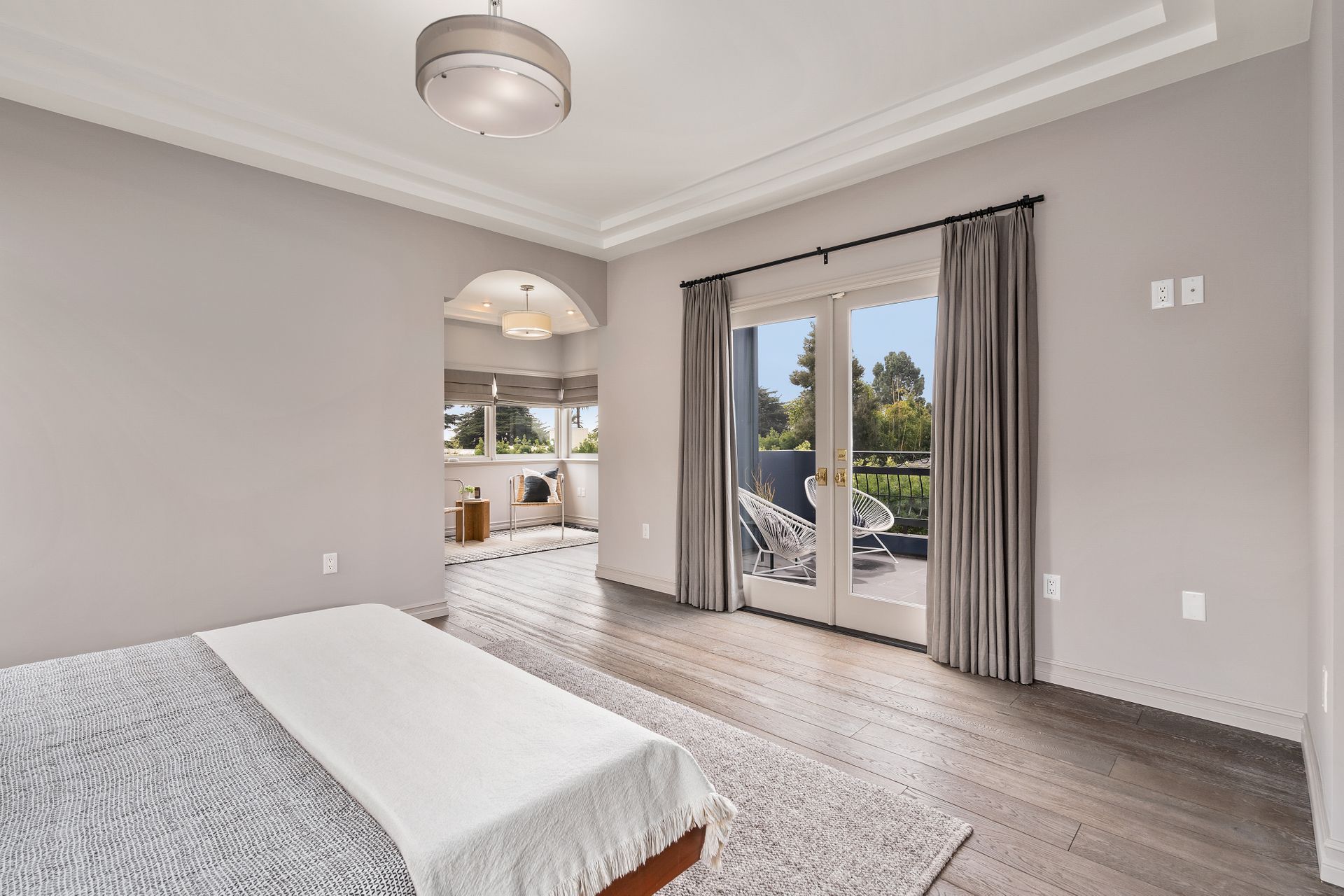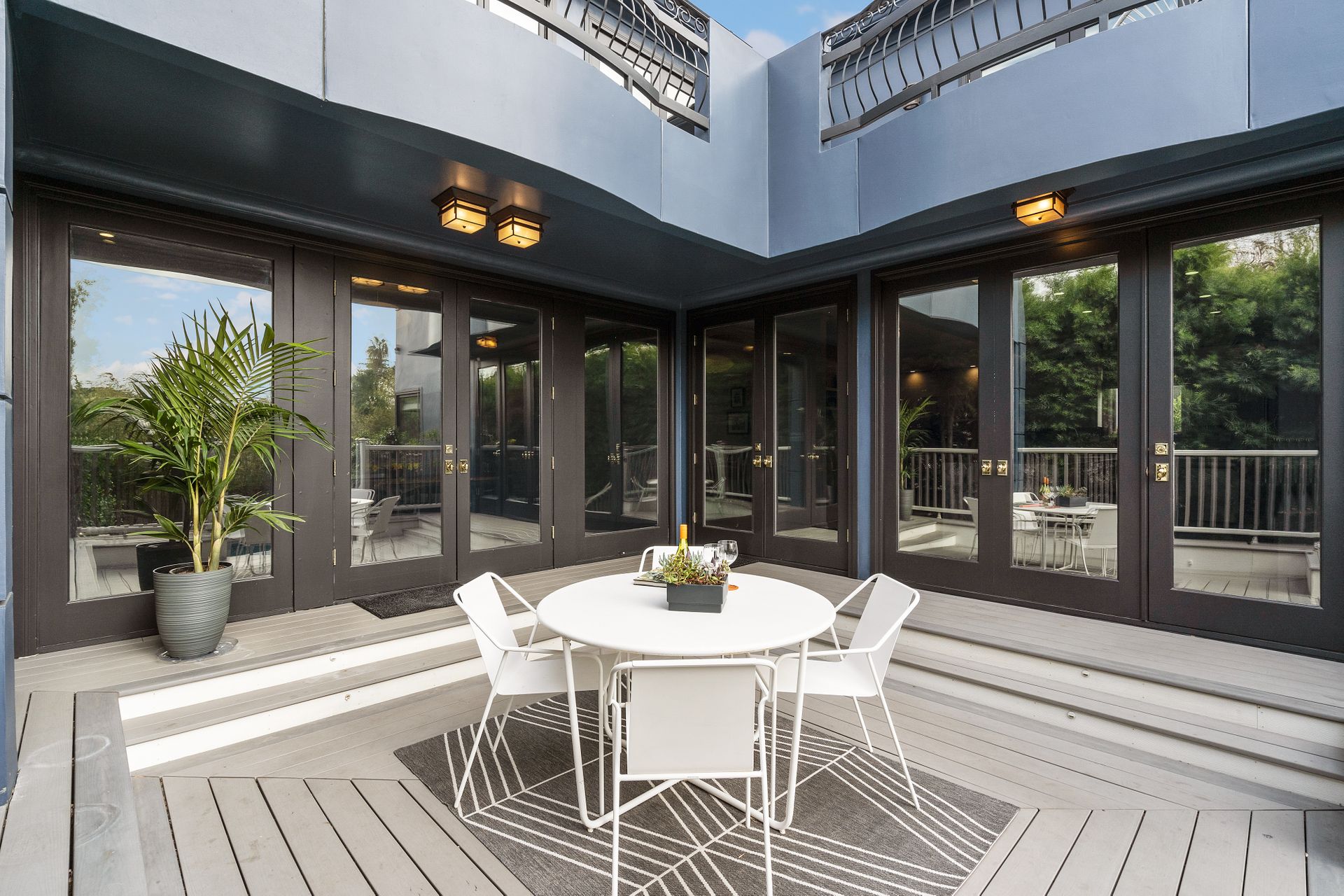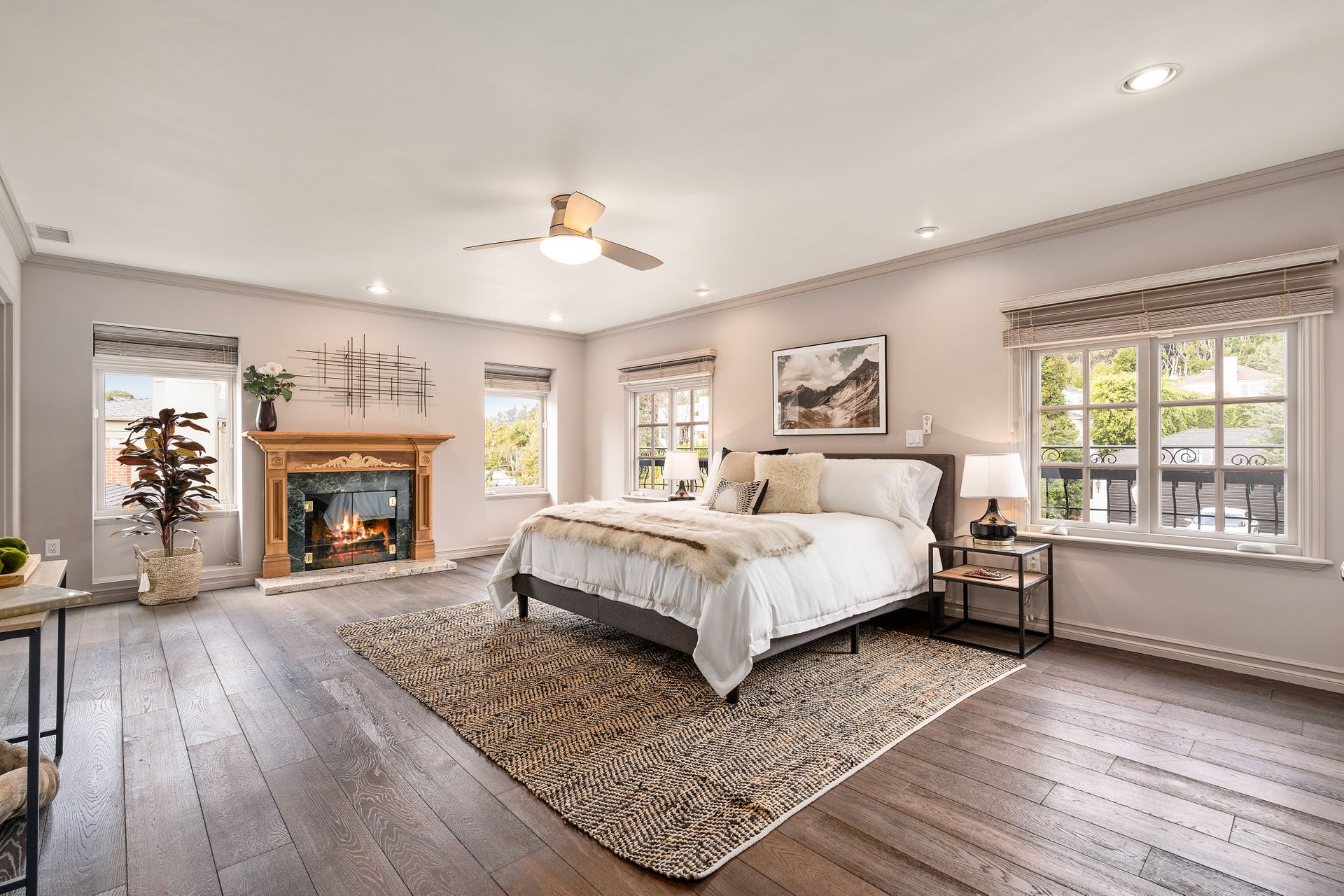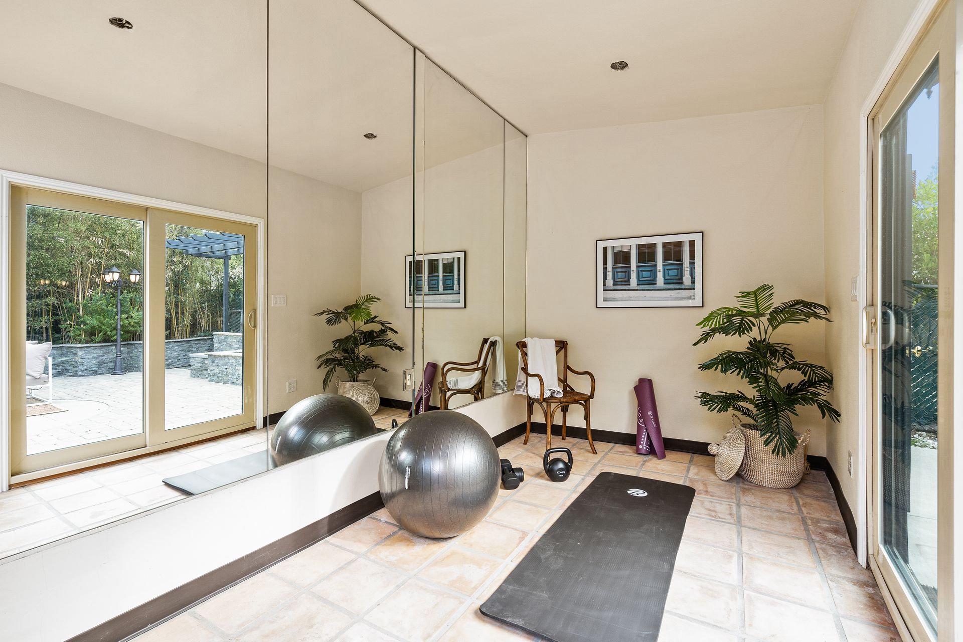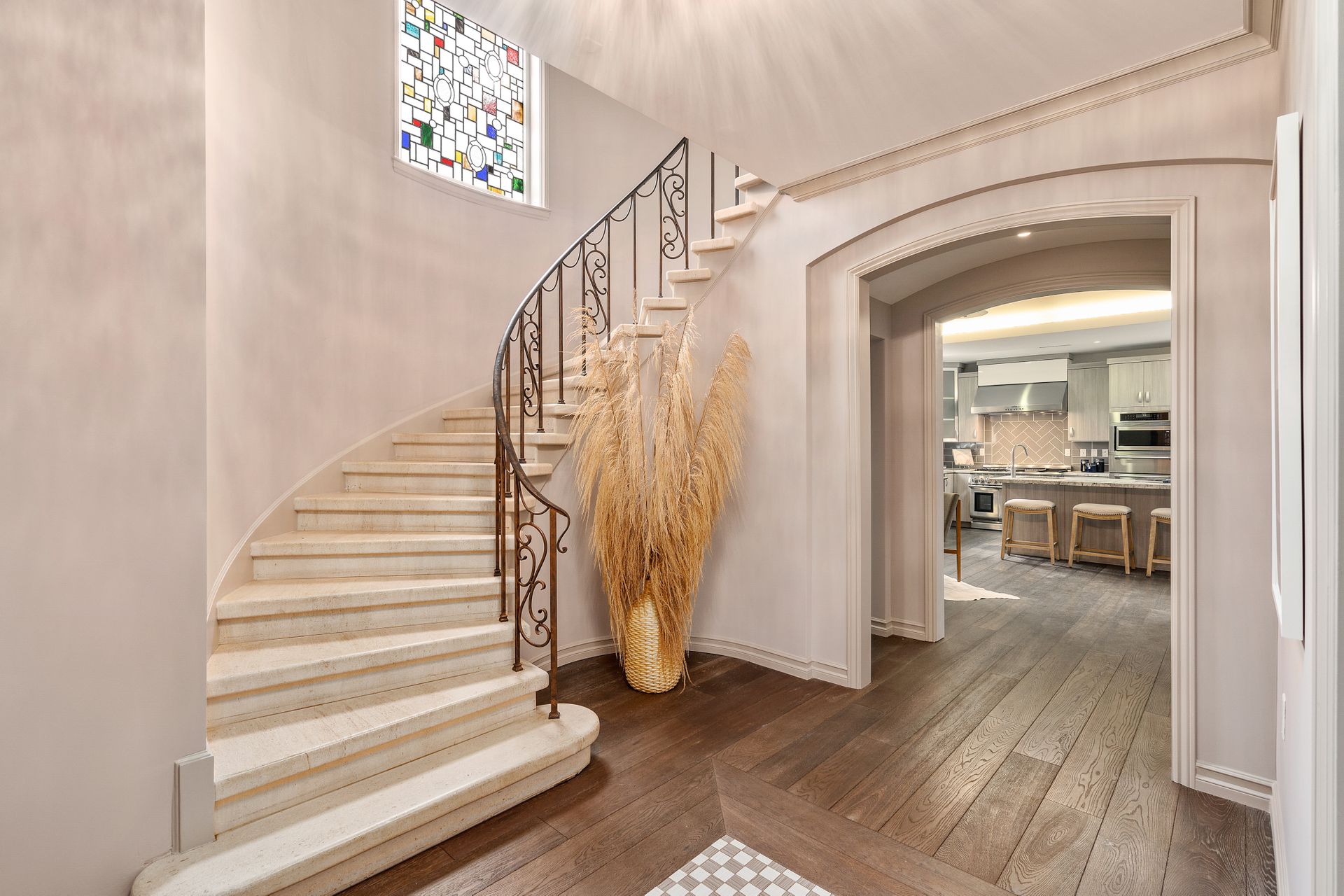 As you enter through the front door, be prepared to expect the unexpected. This updated, modern home, featuring four bedrooms, five baths will be sure to impress and wow you. Your own private Shangri-La awaits. Entering through the front door you are welcomed by the grand staircase, stained glass window and inlaid tile in the foyer. You will then be drawn through the home to the French doors onto a large entertainer’s deck leading you to the lush, terraced and landscaped backyard with a private saltwater pool and spa. Features of the home include two master suites...each with a walk-in closet and deep soaking tubs. Enjoy the charm and coziness provided by the two fireplaces...one that anchors the living room and the other in the front master suite. For the epicurean a large cook’s kitchen awaits you complete with a grand center island, Thermador suite of stainless-steel appliances, a breakfast area and an Edgestein wine refrigerator. Other features of the home include a wine cellar, outlets for up to three electrical vehicle charging stations, solar panels, an outdoor gas barbecue, gas fire pit and a separate room off the pool area ideal for home gym, office, yoga/zen retreat. The two-car garage is equipped with built-in work and storage cabinets along with your own air compressor. Private and gated.