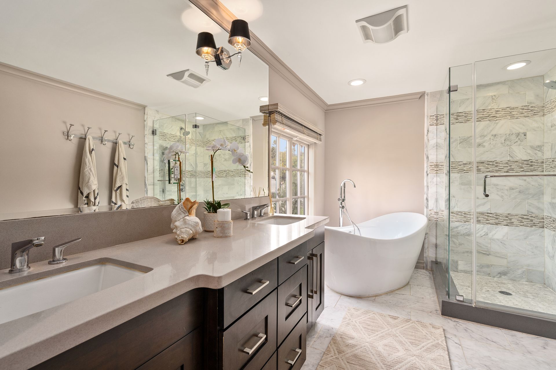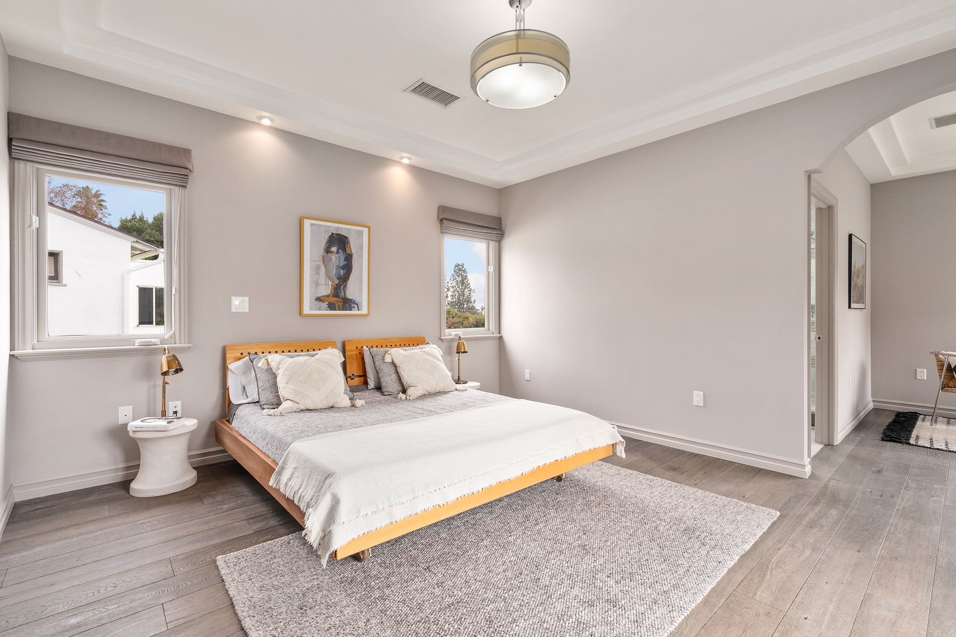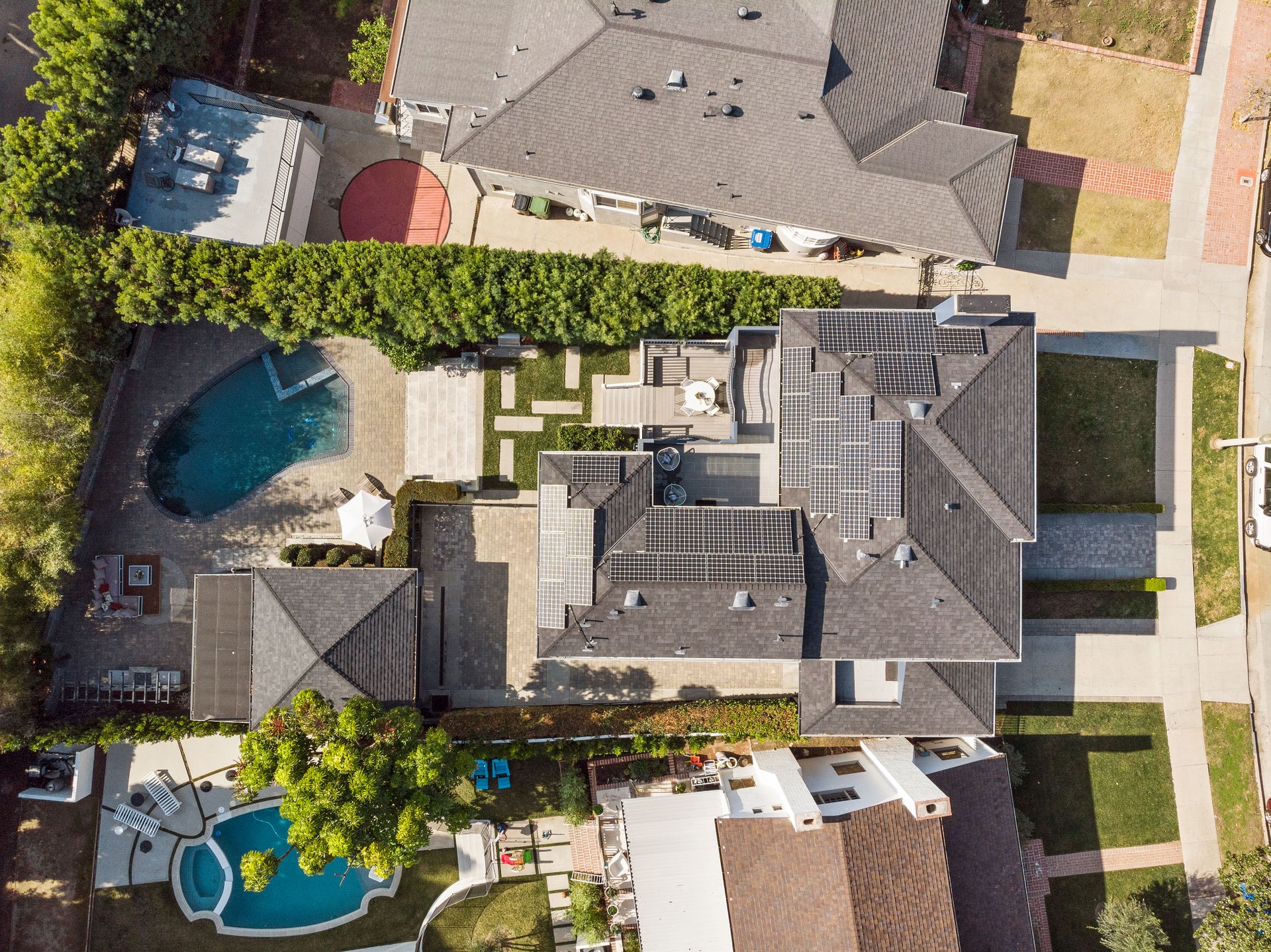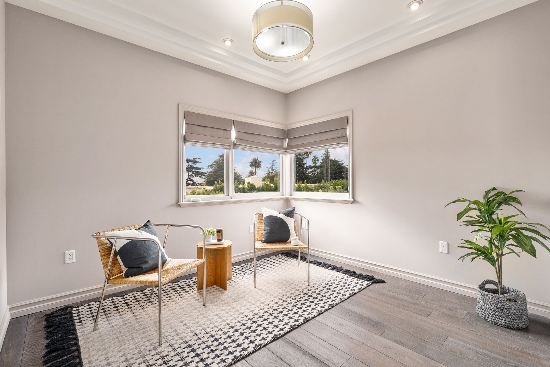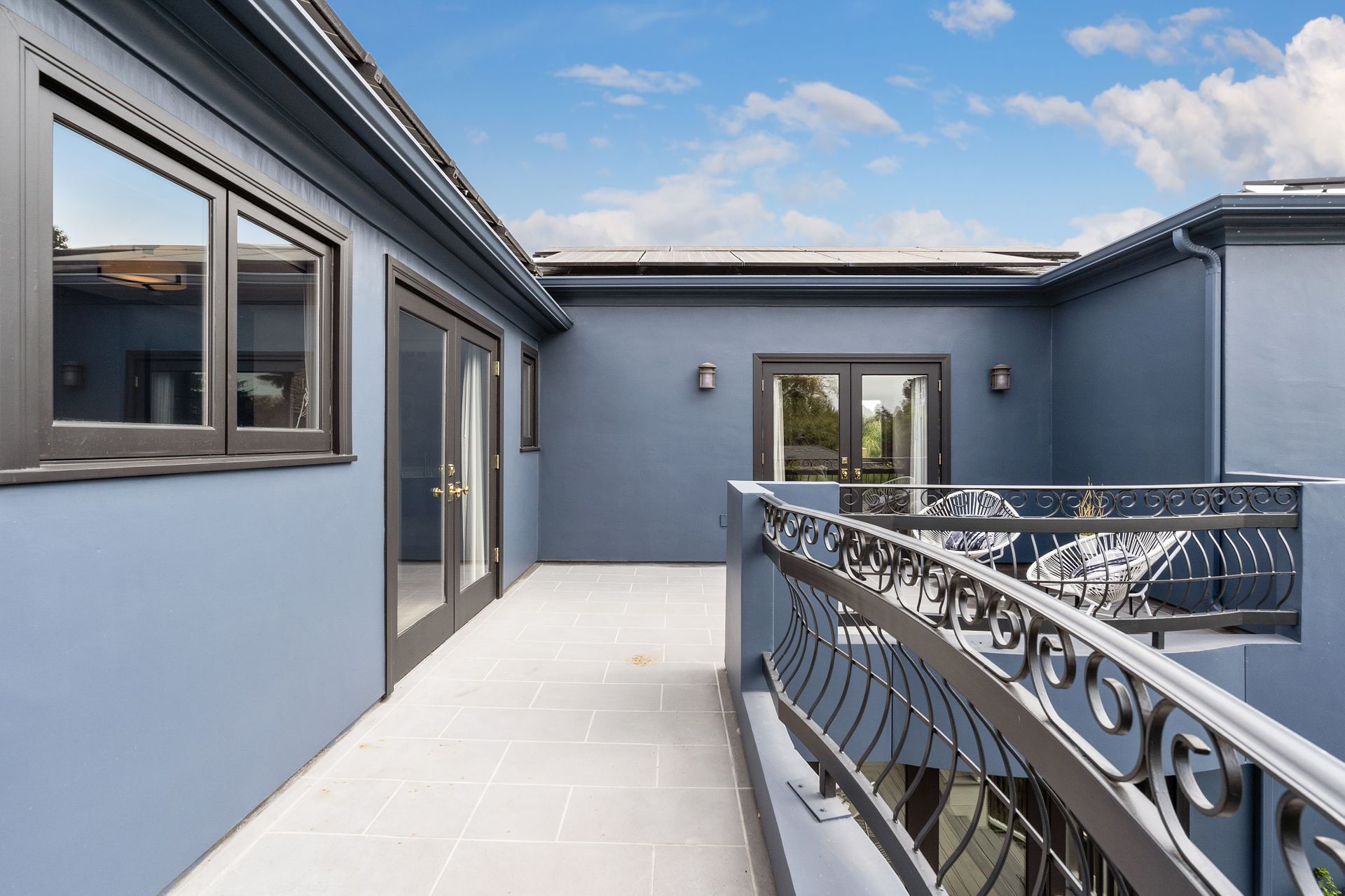 As you enter through the front door, be prepared to expect the unexpected. This updated, modern home, featuring four bedrooms, five baths will be sure to impress and wow you. Your own private Shangri-La awaits. Entering through the front door you are welcomed by the grand staircase, stained glass window and inlaid tile in the foyer. You will then be drawn through the home to the French doors onto a large entertainer’s deck leading you to the lush, terraced and landscaped backyard with a private saltwater pool and spa. Features of the home include two master suites...each with a walk-in closet and deep soaking tubs. Enjoy the charm and coziness provided by the two fireplaces...one that anchors the living room and the other in the front master suite. For the epicurean a large cook’s kitchen awaits you complete with a grand center island, Thermador suite of stainless-steel appliances, a breakfast area and an Edgestein wine refrigerator. Other features of the home include a wine cellar, outlets for up to three electrical vehicle charging stations, solar panels, an outdoor gas barbecue, gas fire pit and a separate room off the pool area ideal for home gym, office, yoga/zen retreat. The two-car garage is equipped with built-in work and storage cabinets along with your own air compressor. Private and gated.
