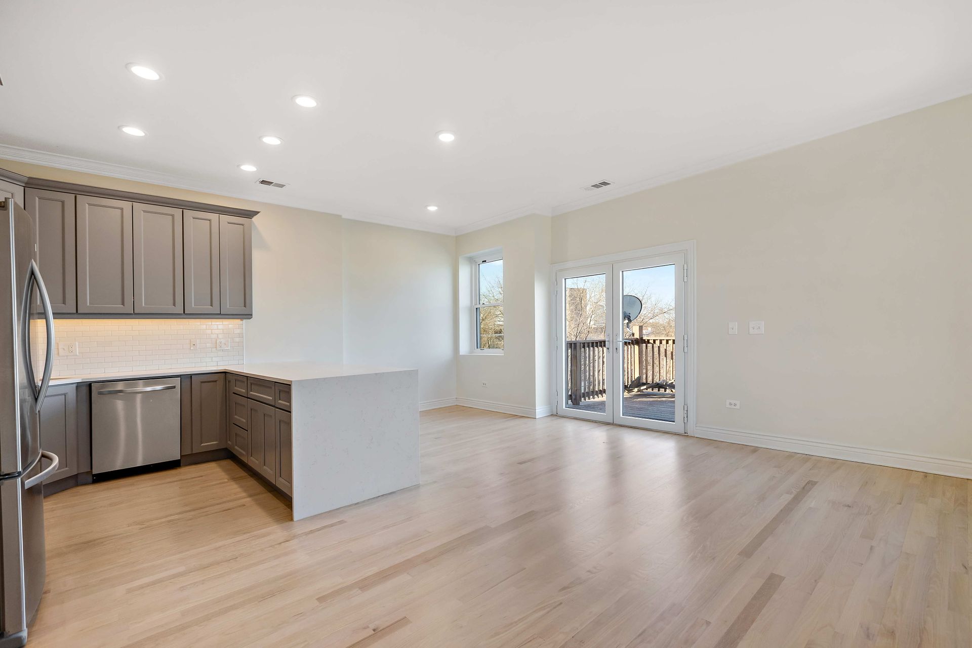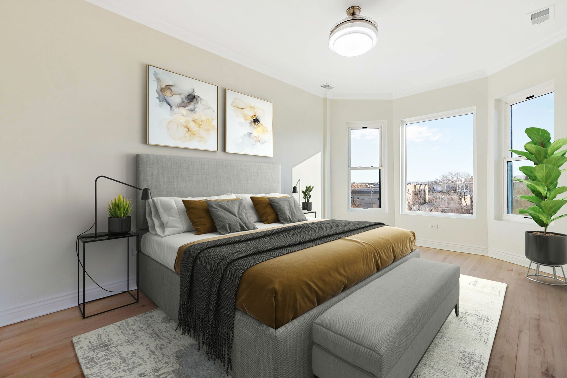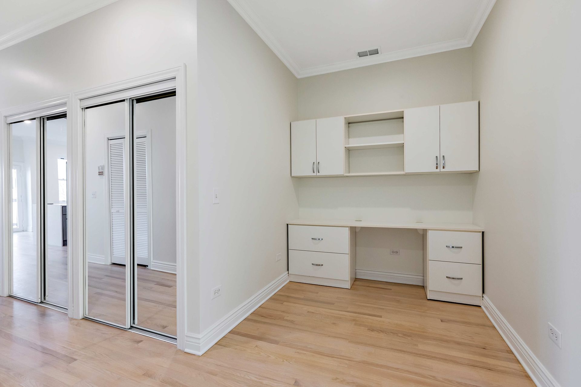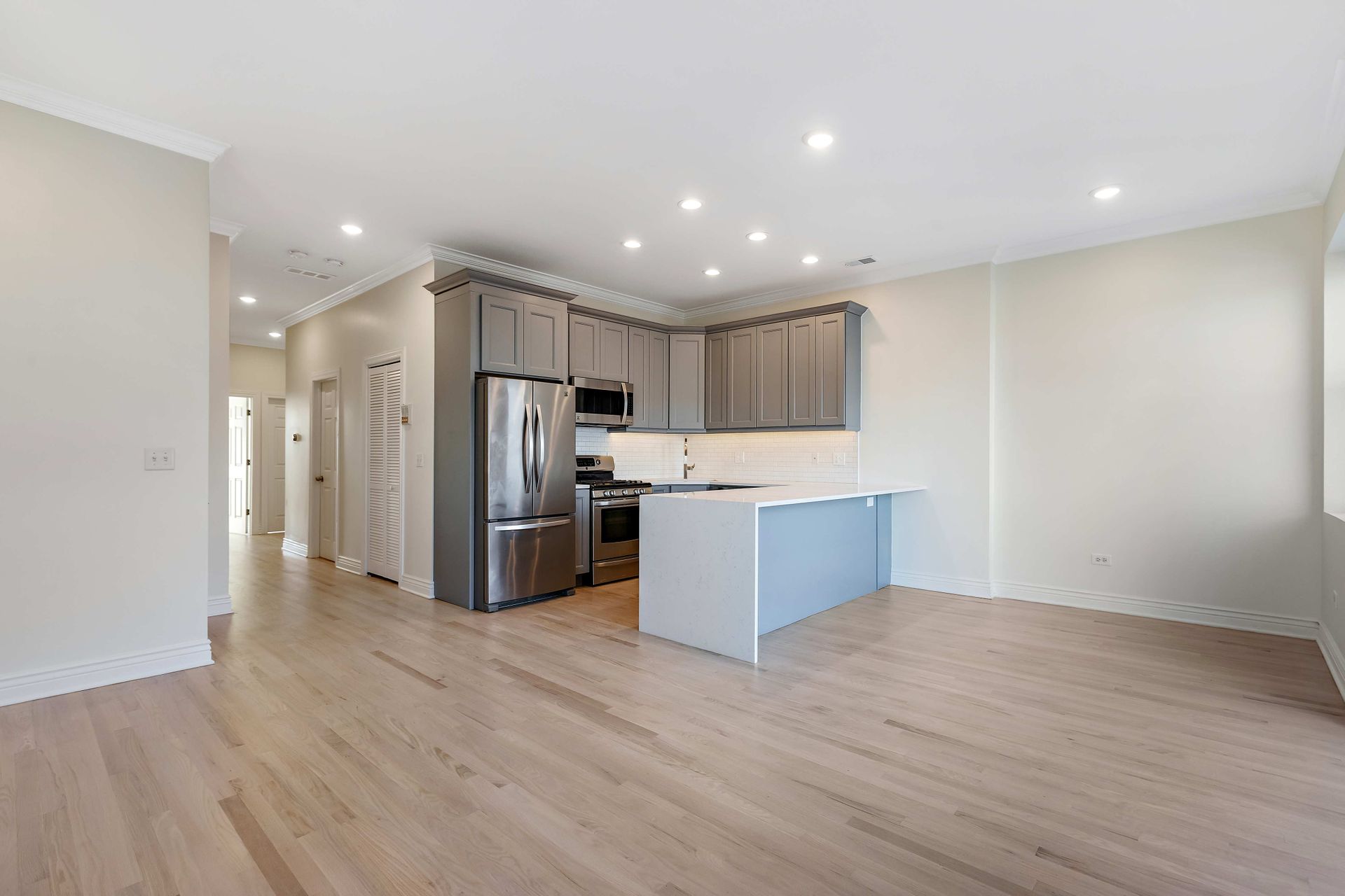 The ultimate in living enjoyment is located in Bronzeville. This spacious two bedroom penthouse condo with a built-in home office and secured parking is in this vintage rehabbed four-flat loft building on Cottage Grove Corridor. Take the landlord off your payroll and say "hello" to a good buy. Meal preparation is a breeze in this ultra-modern kitchen featuring 42-inch contemporary cabinetry with undercabinet lighting, stainless steel appliances, Kohler faucets, quartz countertop with waterfall and subway tile backsplash. Additional premium amenities include newly refinished hardwood floors throughout the entire unit, crown moldings, Okna/Hi-Mark Starmark cellular composite triple-paned Lo-E high-efficiency double-hung windows, Rehau 4700 Geneo European double doors with laminated Lo-E high-efficiency glass for elevated security and sound abatement with multi-point locking system and Nest thermostat. Let talk about how convenient public transportation is outside your doors as is retail shops, including the new shops opening at 4400 Grove. This residence is statically located close to Univ of Chicago, IIT, parks, Walmart, Trader Joe's, Whole Foods, Mariano's and the Lakefront!