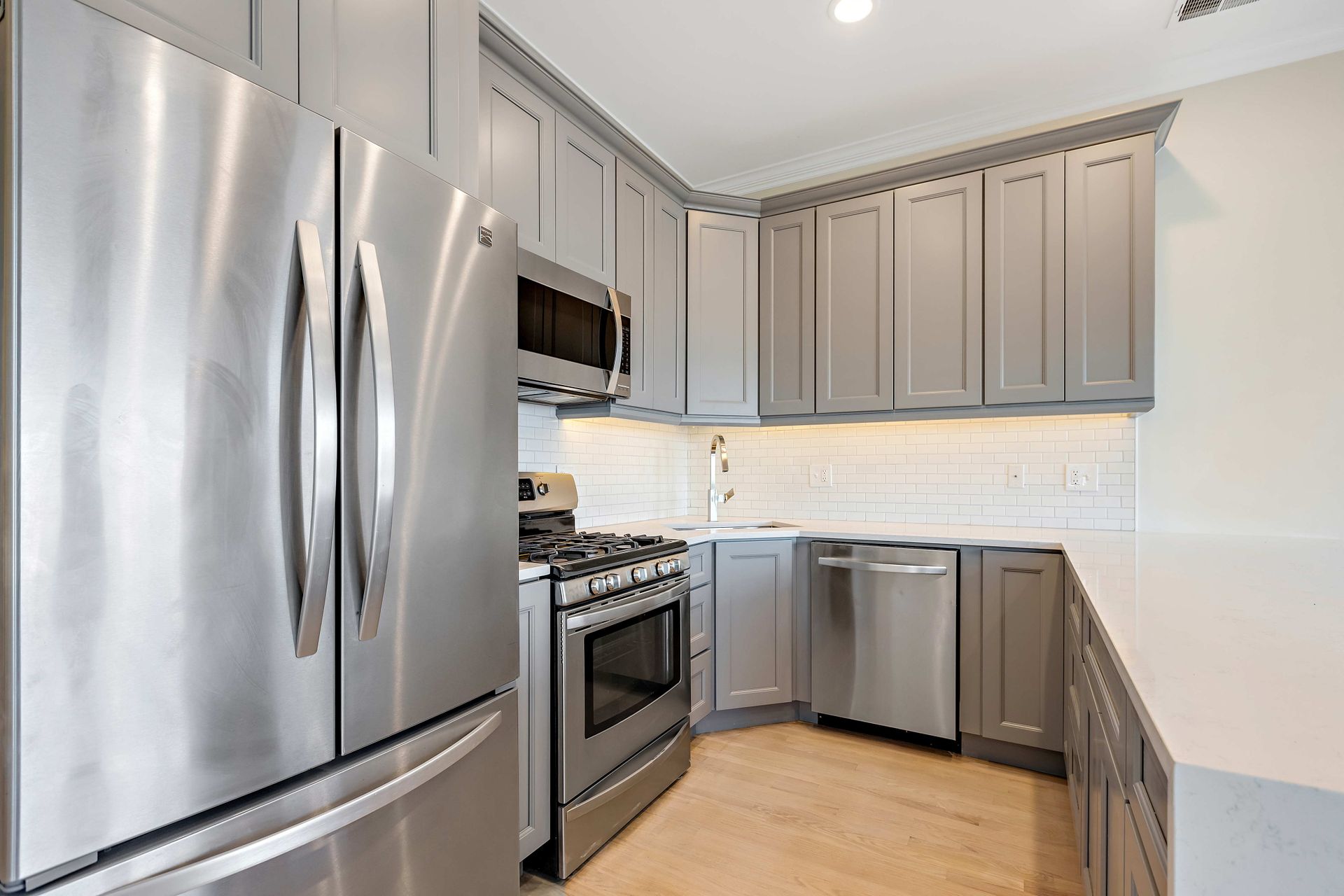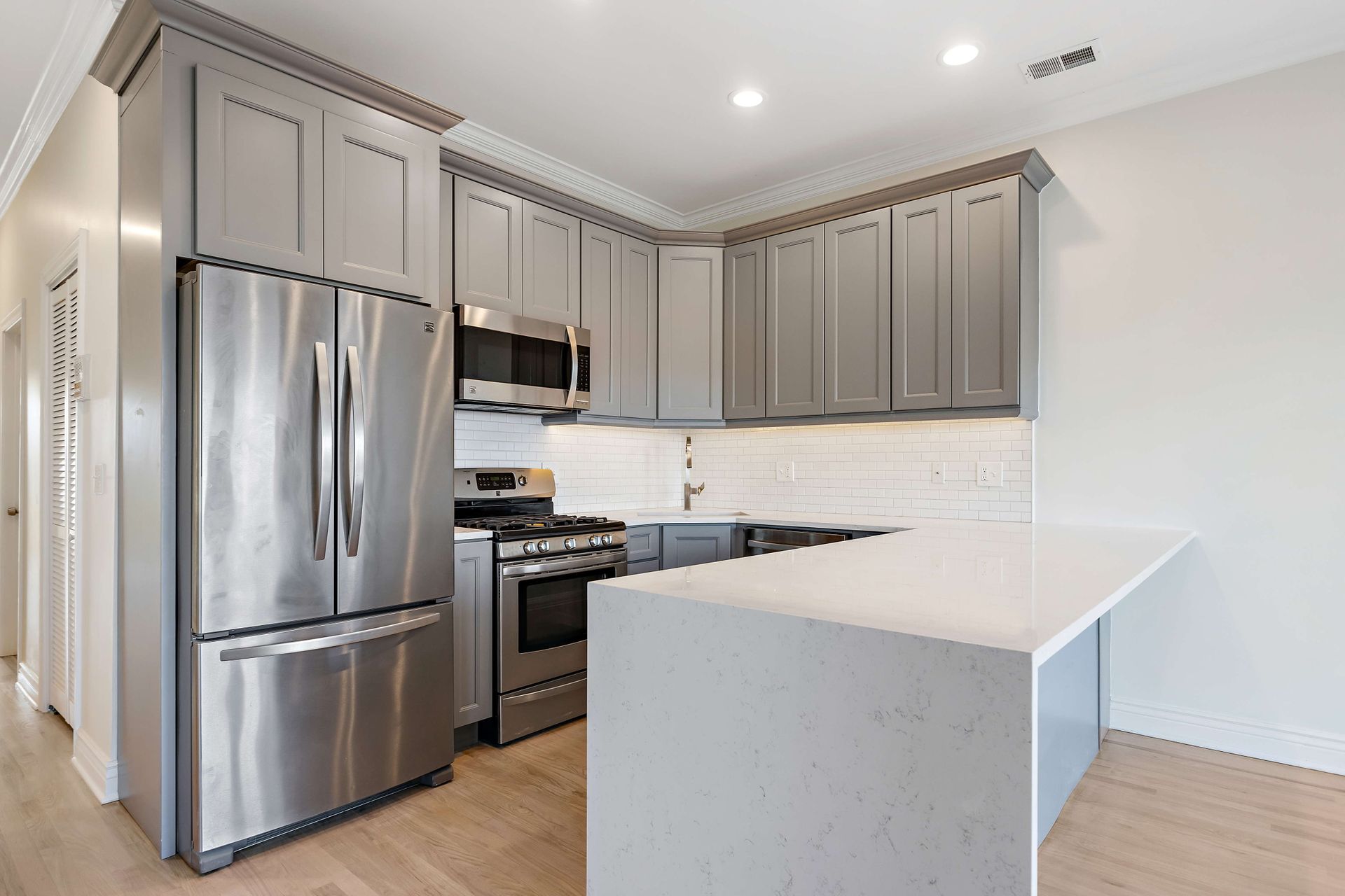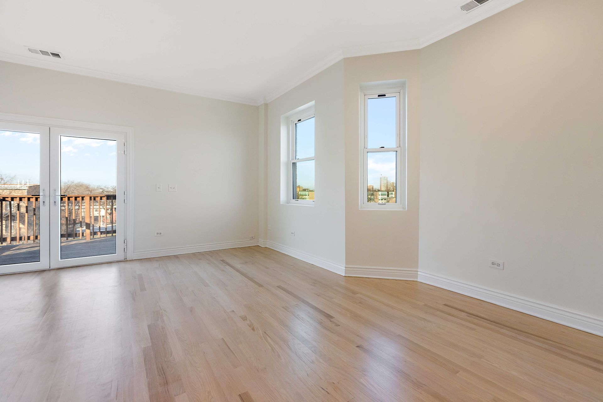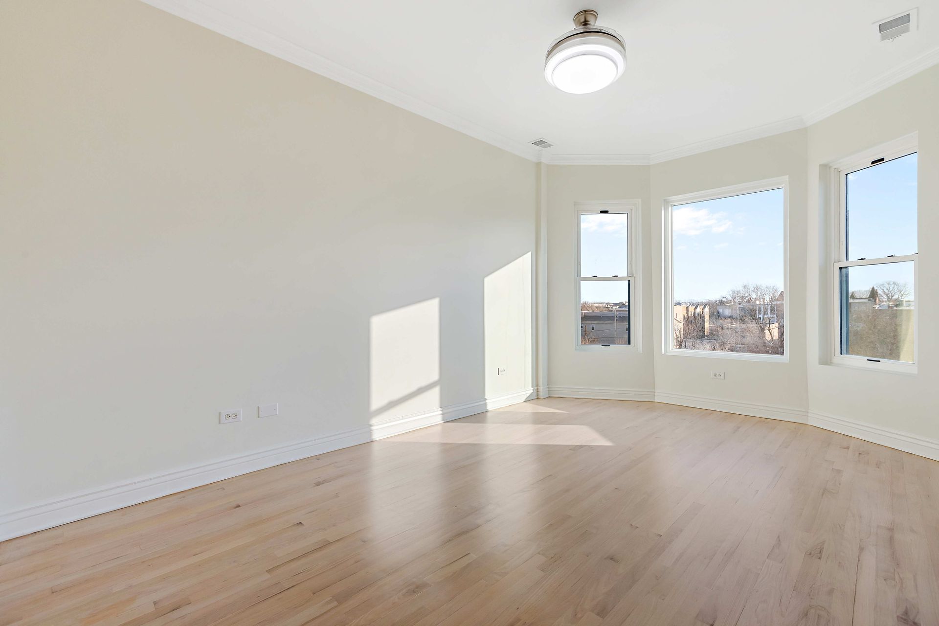 The ultimate in living enjoyment is located in Bronzeville. This spacious two bedroom penthouse condo with a built-in home office and secured parking is in this vintage rehabbed four-flat loft building on Cottage Grove Corridor. Take the landlord off your payroll and say "hello" to a good buy. Meal preparation is a breeze in this ultra-modern kitchen featuring 42-inch contemporary cabinetry with undercabinet lighting, stainless steel appliances, Kohler faucets, quartz countertop with waterfall and subway tile backsplash. Additional premium amenities include newly refinished hardwood floors throughout the entire unit, crown moldings, Okna/Hi-Mark Starmark cellular composite triple-paned Lo-E high-efficiency double-hung windows, Rehau 4700 Geneo European double doors with laminated Lo-E high-efficiency glass for elevated security and sound abatement with multi-point locking system and Nest thermostat. Let talk about how convenient public transportation is outside your doors as is retail shops, including the new shops opening at 4400 Grove. This residence is statically located close to Univ of Chicago, IIT, parks, Walmart, Trader Joe's, Whole Foods, Mariano's and the Lakefront!