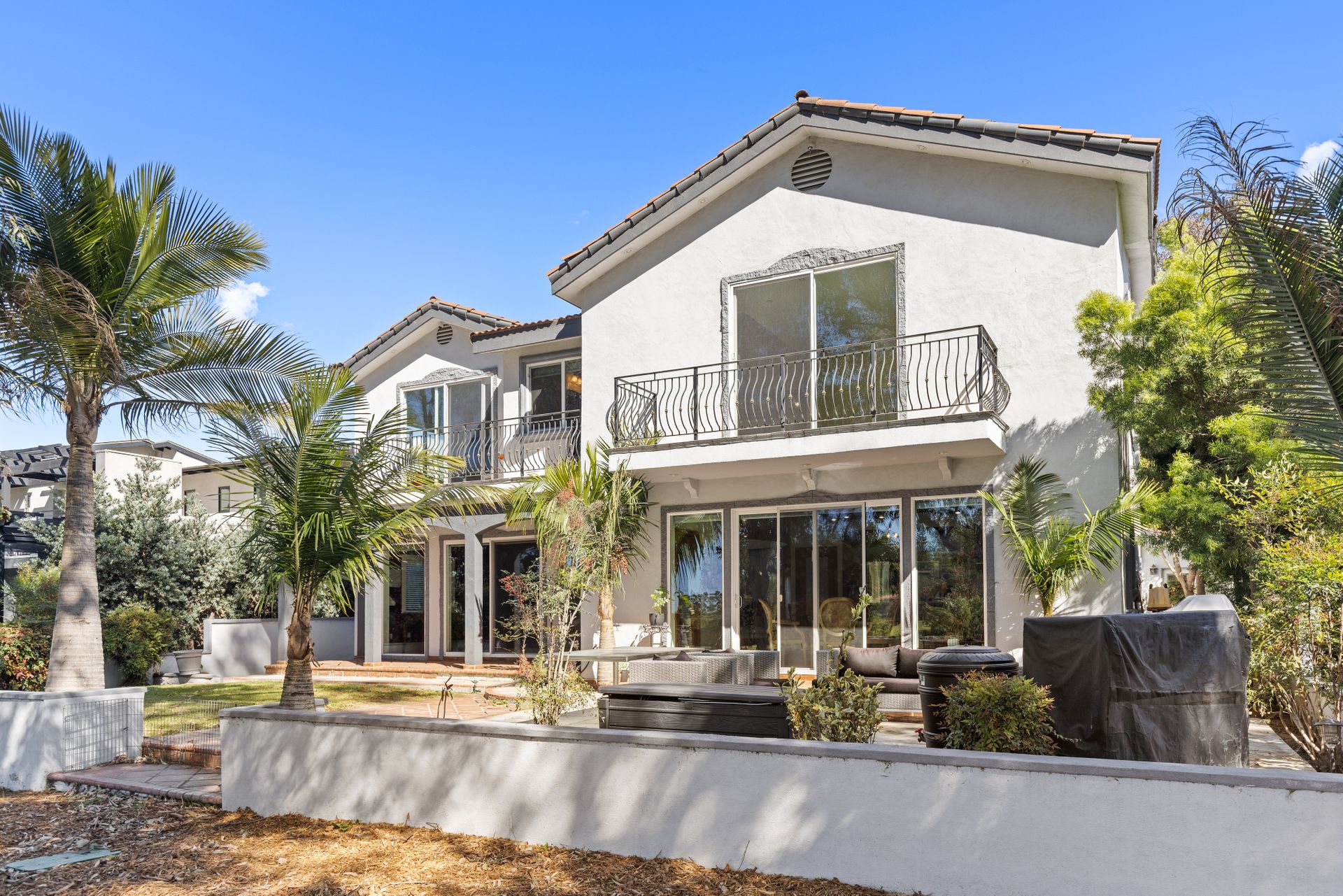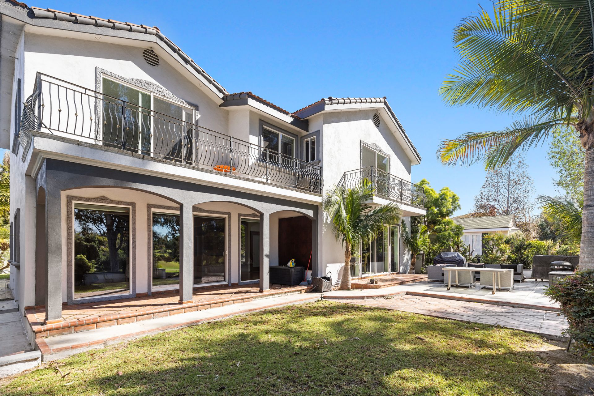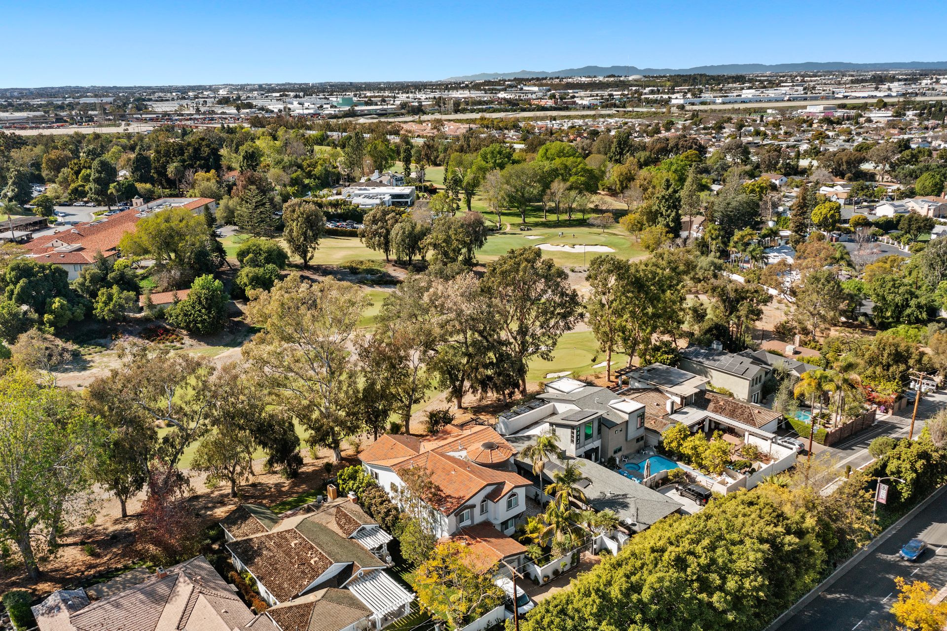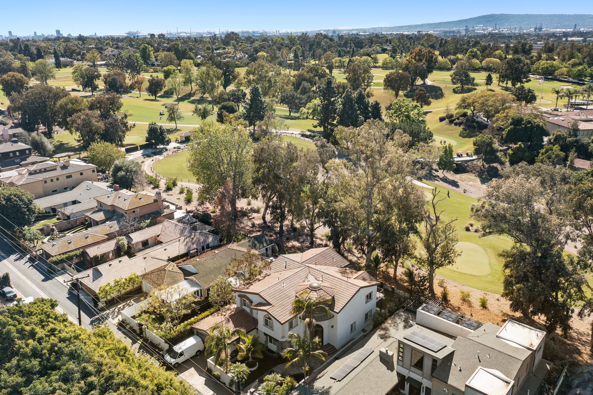 Welcome to the gated street of County Club Lane in the charming Virginia Country Club area of Bixby Knolls. This exclusive knoll of homes overlooks the golf course of Virginia Country Club – one of the oldest courses in California! Through the gated courtyard, the two-story villa greets you. Entering via the wooden double doors, the turret-style cupola frames the foyer and spiral staircase. Artisan wood detail and huge skylight give a sense of grandeur rarely found today on the market. The main floor provides an open floor plan with definitive spacing. You'll find a large dining area, direct garage access and main floor primary bedroom with attached bathroom. The media room is so unique, large enough to host the Oscar or Super Bowl party for your loved ones! The kitchen is very generous with an oversized center island, built-in six-burner range, double oven, huge refrigerator alcove and of course – the view! Sliding doors from either the kitchen or the grand living room take you to the lot-width patio. Beautiful towering eucalyptus trees frame the grassy slope of the recently installed “miniature” golf course! The historic-style clubhouse is perched in the distance. The sunsets are amazing! Back inside, up the custom wrought iron staircase is a nice landing with a great up-close view of the cupola. You’ll enjoy FOUR more bedrooms including an ensuite retreat with an attached bathroom plus a hall bathroom. The primary bedroom is something to behold - a large space with soaring ceilings, a balcony and of course the golf course view. The attached bathroom has dual vanities, a shower and a bathtub with a view! Adjacent is a game room with a balcony could be so many things – a gym, home office, playroom, meditation room, so many options! This has an excellent location with so many opportunities! The lifestyle in this neighborhood is top-notch!