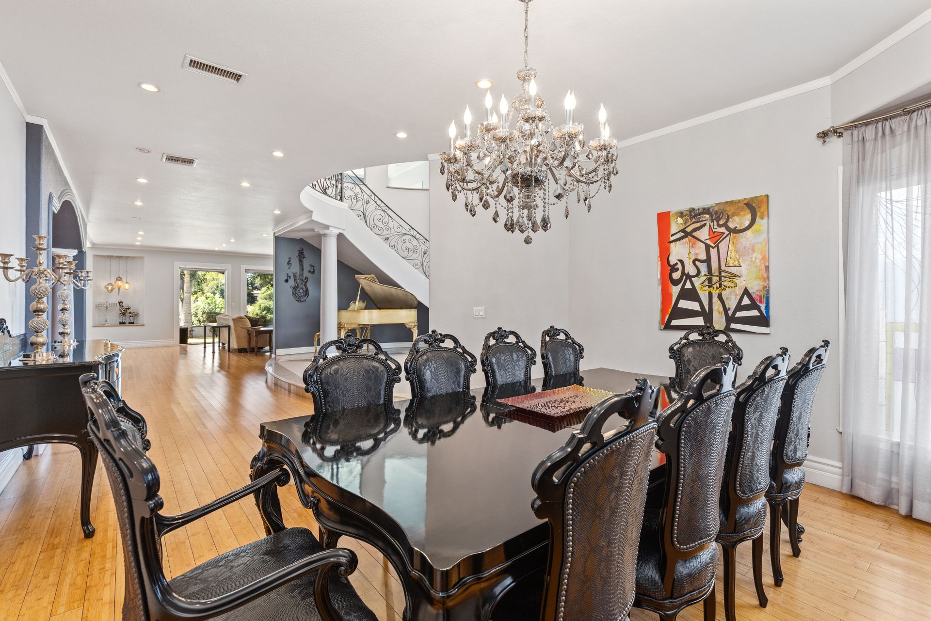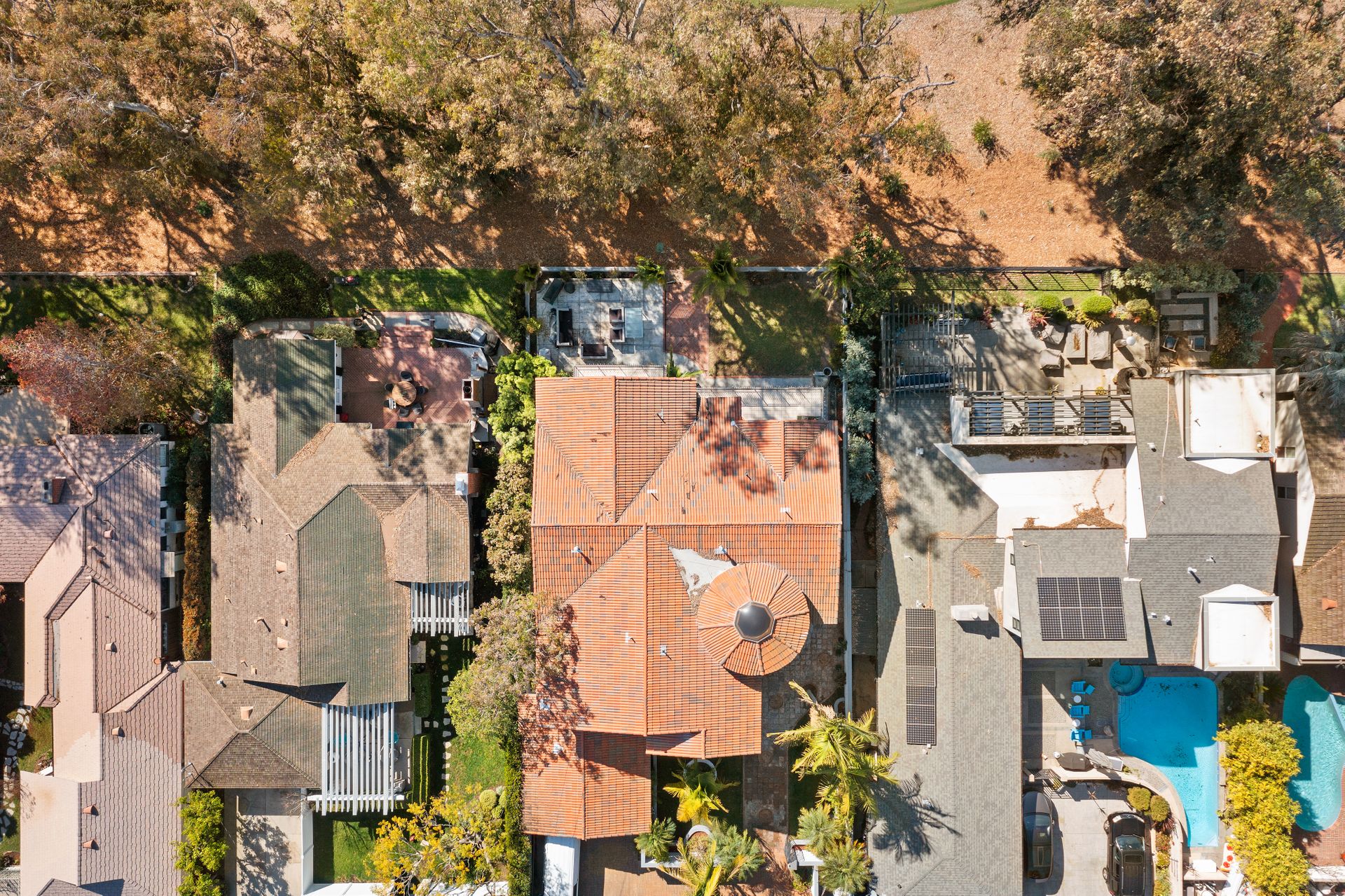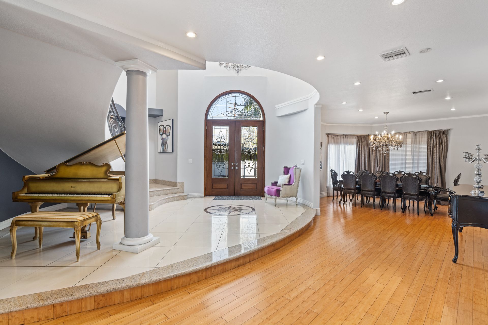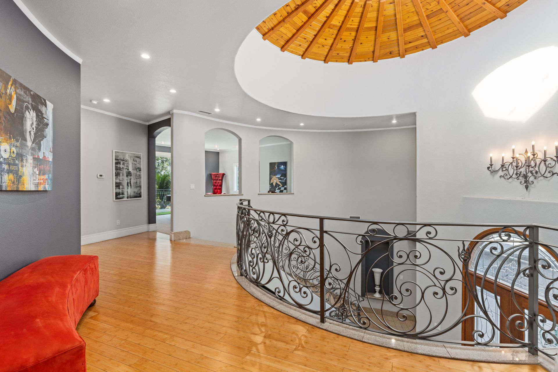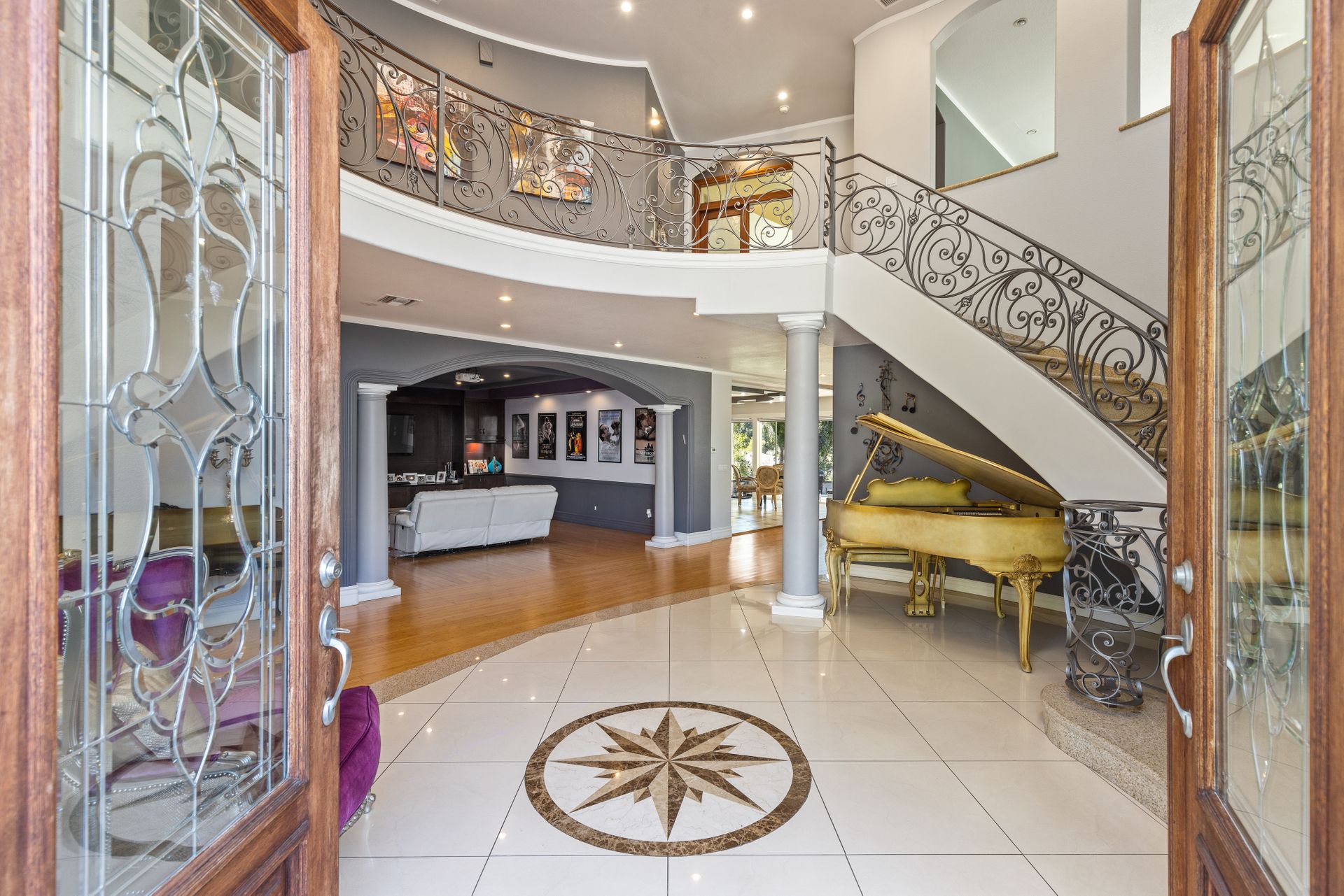 Welcome to the gated street of County Club Lane in the charming Virginia Country Club area of Bixby Knolls. This exclusive knoll of homes overlooks the golf course of Virginia Country Club – one of the oldest courses in California! Through the gated courtyard, the two-story villa greets you. Entering via the wooden double doors, the turret-style cupola frames the foyer and spiral staircase. Artisan wood detail and huge skylight give a sense of grandeur rarely found today on the market. The main floor provides an open floor plan with definitive spacing. You'll find a large dining area, direct garage access and main floor primary bedroom with attached bathroom. The media room is so unique, large enough to host the Oscar or Super Bowl party for your loved ones! The kitchen is very generous with an oversized center island, built-in six-burner range, double oven, huge refrigerator alcove and of course – the view! Sliding doors from either the kitchen or the grand living room take you to the lot-width patio. Beautiful towering eucalyptus trees frame the grassy slope of the recently installed “miniature” golf course! The historic-style clubhouse is perched in the distance. The sunsets are amazing! Back inside, up the custom wrought iron staircase is a nice landing with a great up-close view of the cupola. You’ll enjoy FOUR more bedrooms including an ensuite retreat with an attached bathroom plus a hall bathroom. The primary bedroom is something to behold - a large space with soaring ceilings, a balcony and of course the golf course view. The attached bathroom has dual vanities, a shower and a bathtub with a view! Adjacent is a game room with a balcony could be so many things – a gym, home office, playroom, meditation room, so many options! This has an excellent location with so many opportunities! The lifestyle in this neighborhood is top-notch!