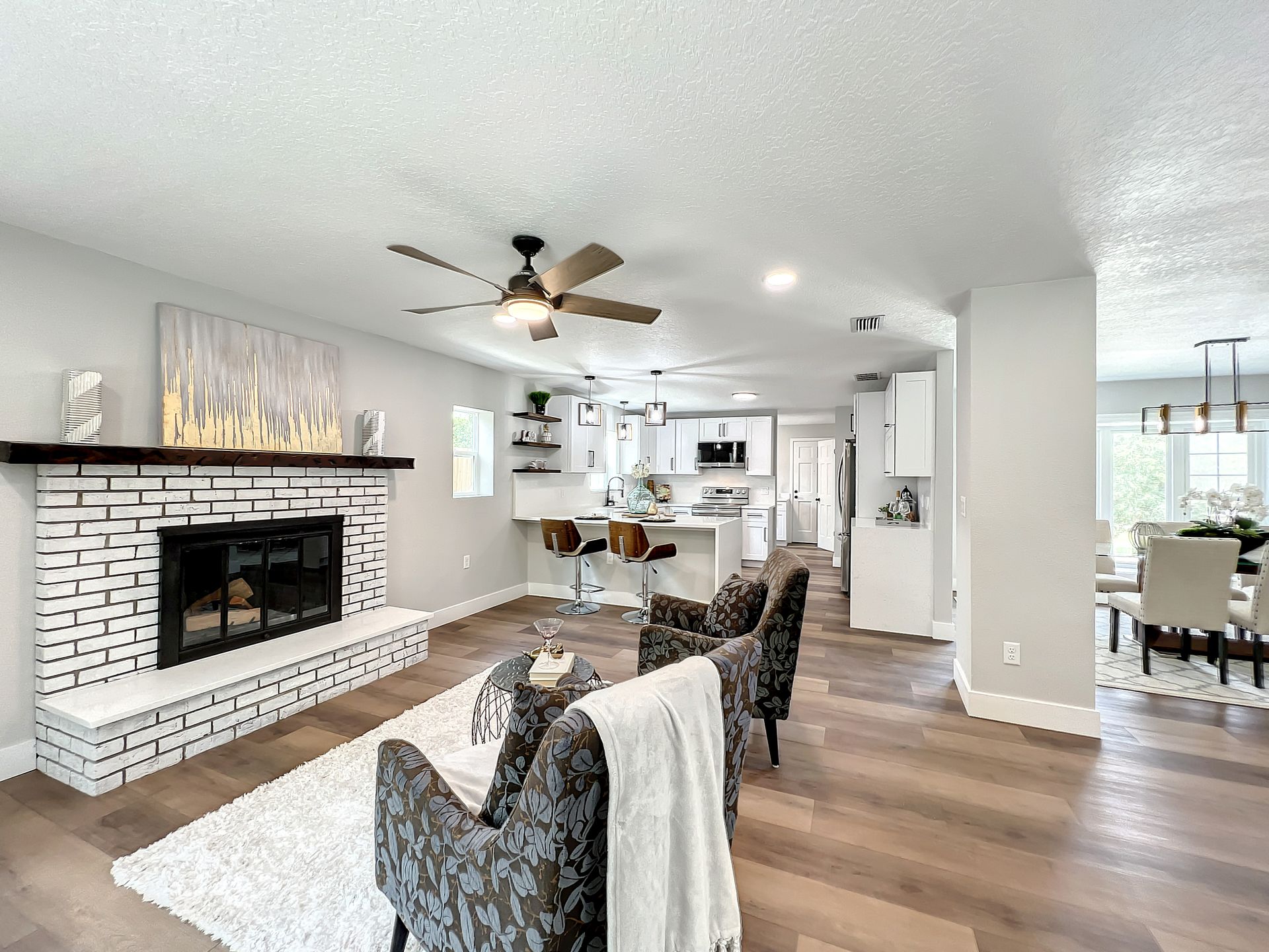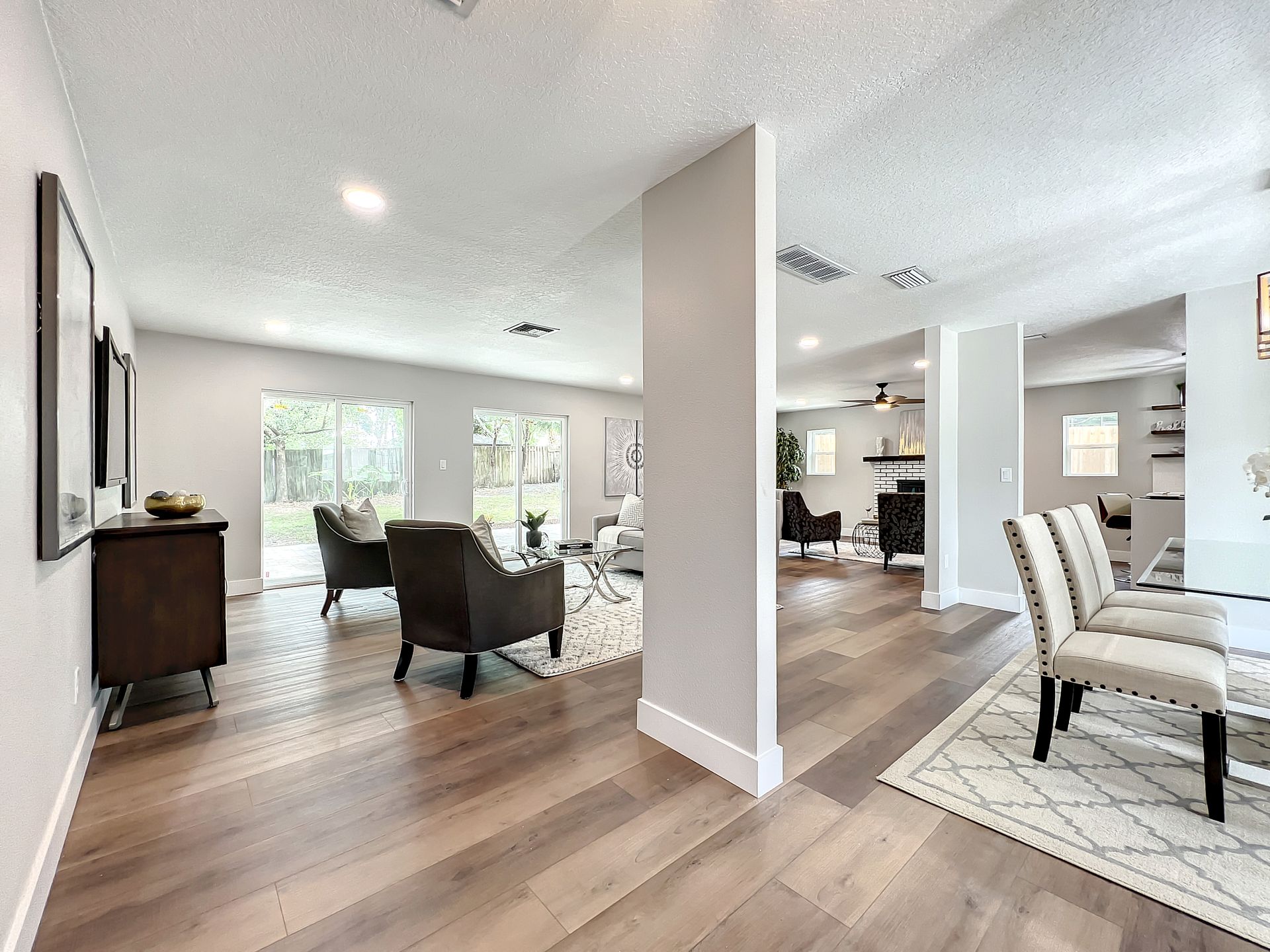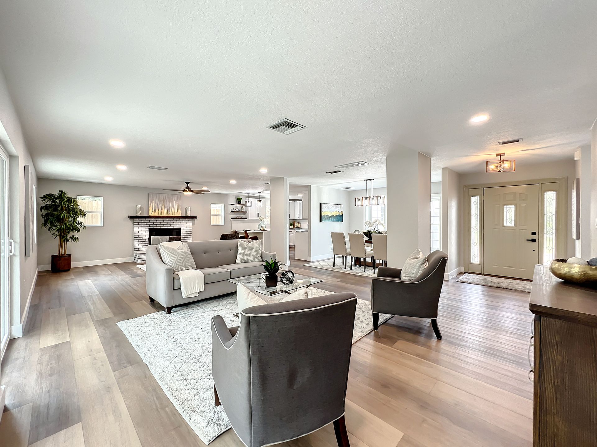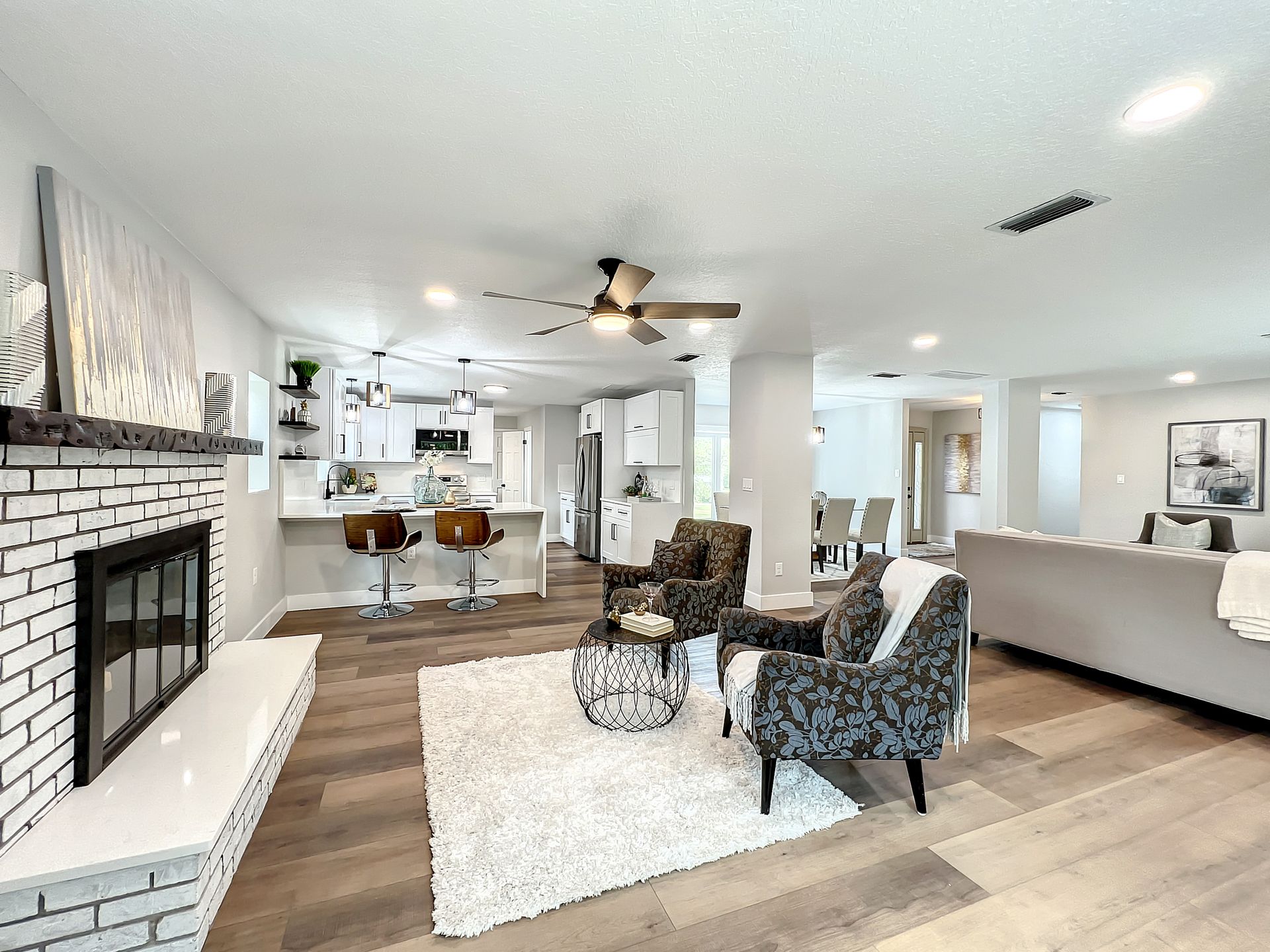 Extraordinary and Stunning family home nestled in the desirable and highly sought-after Sanlando Springs Subdivision. Remarkable property that is tastefully renovated and absolutely gorgeous with luxurious and modern finishes. As you step into the foyer, you will be captivated with the open and practical living space. The living room enjoys double sliding patio doors and great view of the outdoor living areas by the patio and private backyard. The dining room is open to the living room and overlooks the front yard via the beautiful bay window. The charming family room provides cozy space by the wood burning fireplace. The all new lavish kitchen with solid wood cabinets, Quartz counter tops and backsplash, stainless steel appliances, and a vast peninsula accommodating 4 barstools great for entertainment and family gatherings. The laundry room by the kitchen offers additional cabinets and a pantry. A powder room / half bath is conveniently located by the laundry room and the garage. The charming and spacious Master Suite enjoys a large walk-in closet, 3 windows overlooking the yard and a sliding patio door overlooking the patio and serene backyard. The luxurious all new master bath comes with double sinks and marble shower and matt black fixtures. The 3 additional good sized bedrooms enjoy a hall / guest bathroom with a double sink vanity, and a bathtub shower with white subway tiles. There is plenty of storage space in the hallway closet and the large linen closet. You will enjoy time in the expansive back yard that could accommodate any outdoor living ideas you would like to implement. The side fenced yard has plenty of room for a boat, RV, or a shed, or event a dog run. Spacious garage with plenty of space for storage or a work bench. Roof 2018, brand new AC in 2023, new electric panel and all new devices and fixtures, upgraded plumbing, new water heater in 2022, new well water equipment in 2022, new sliding doors & some new windows.
