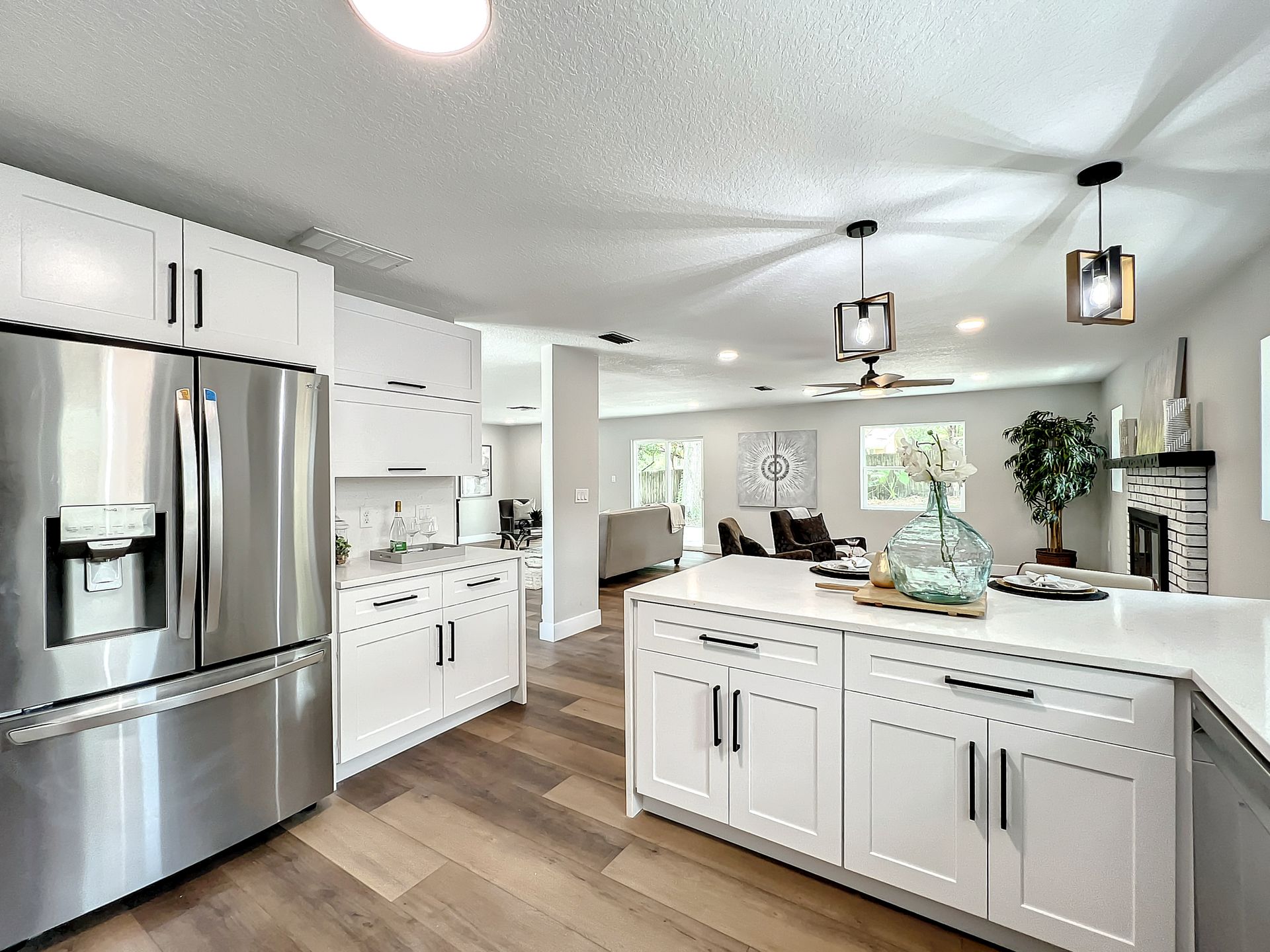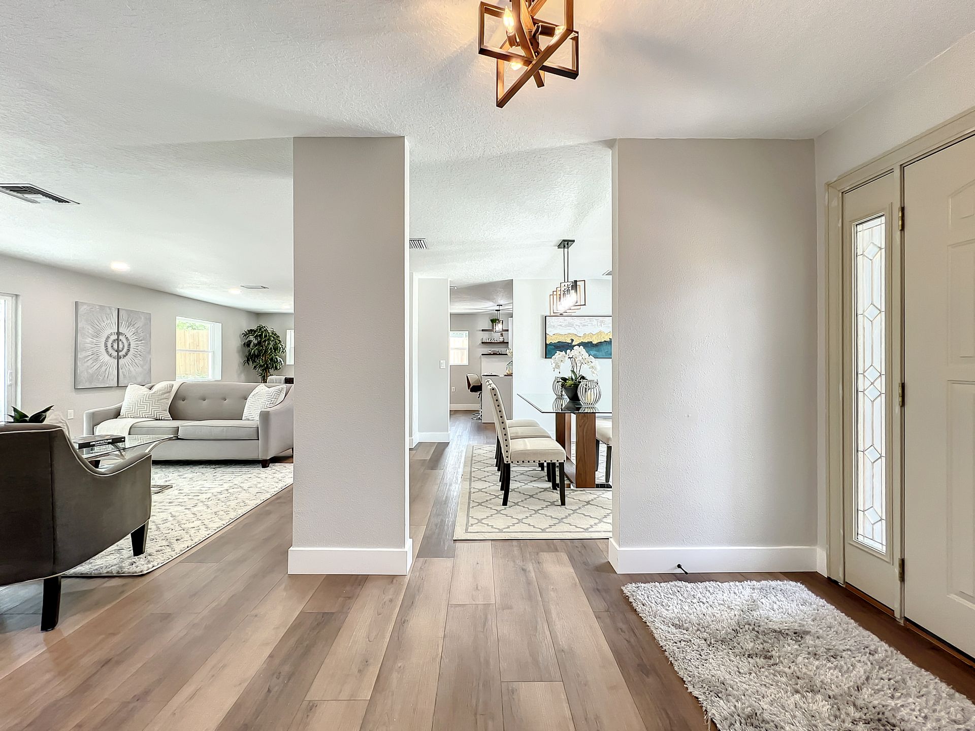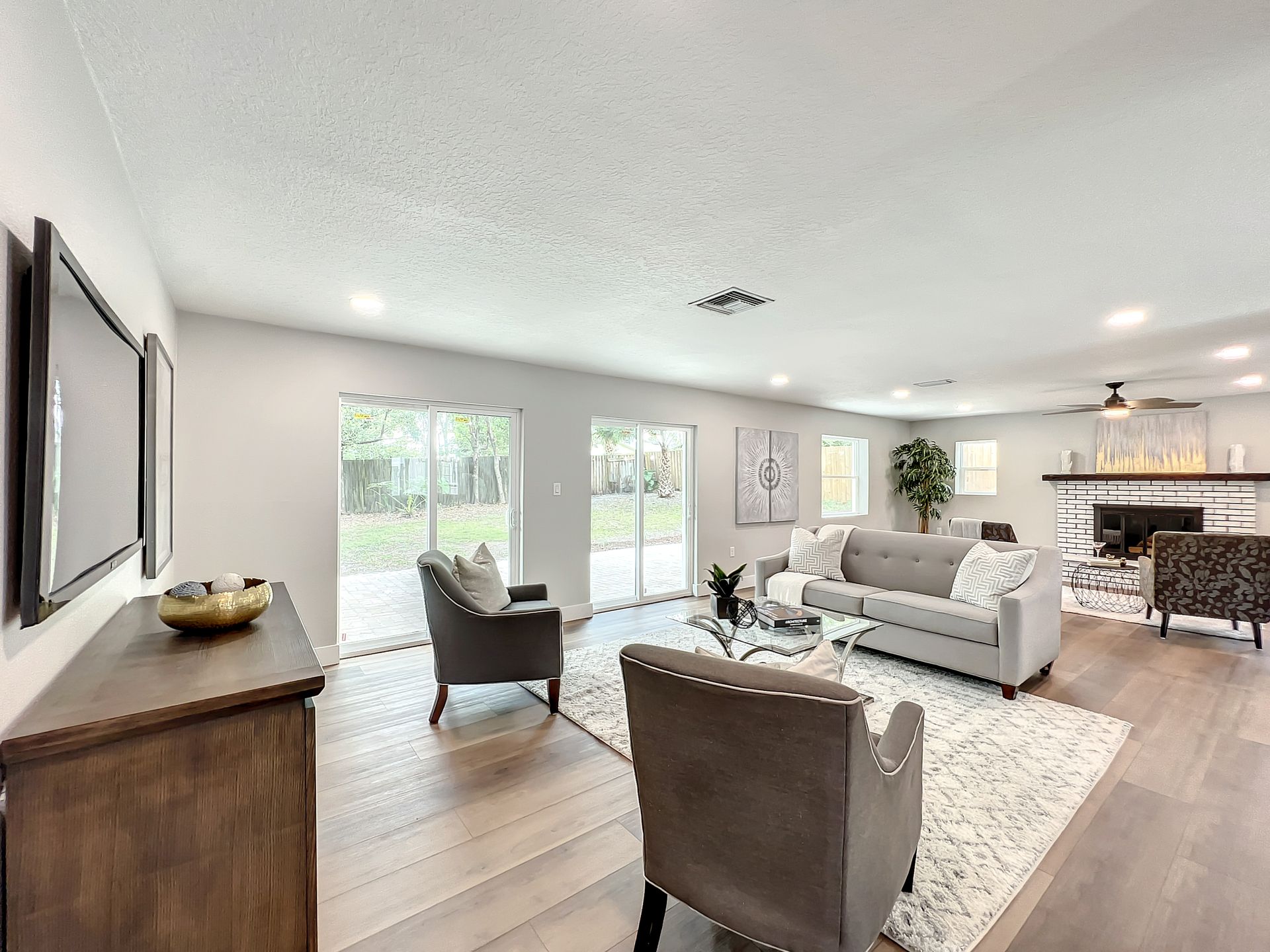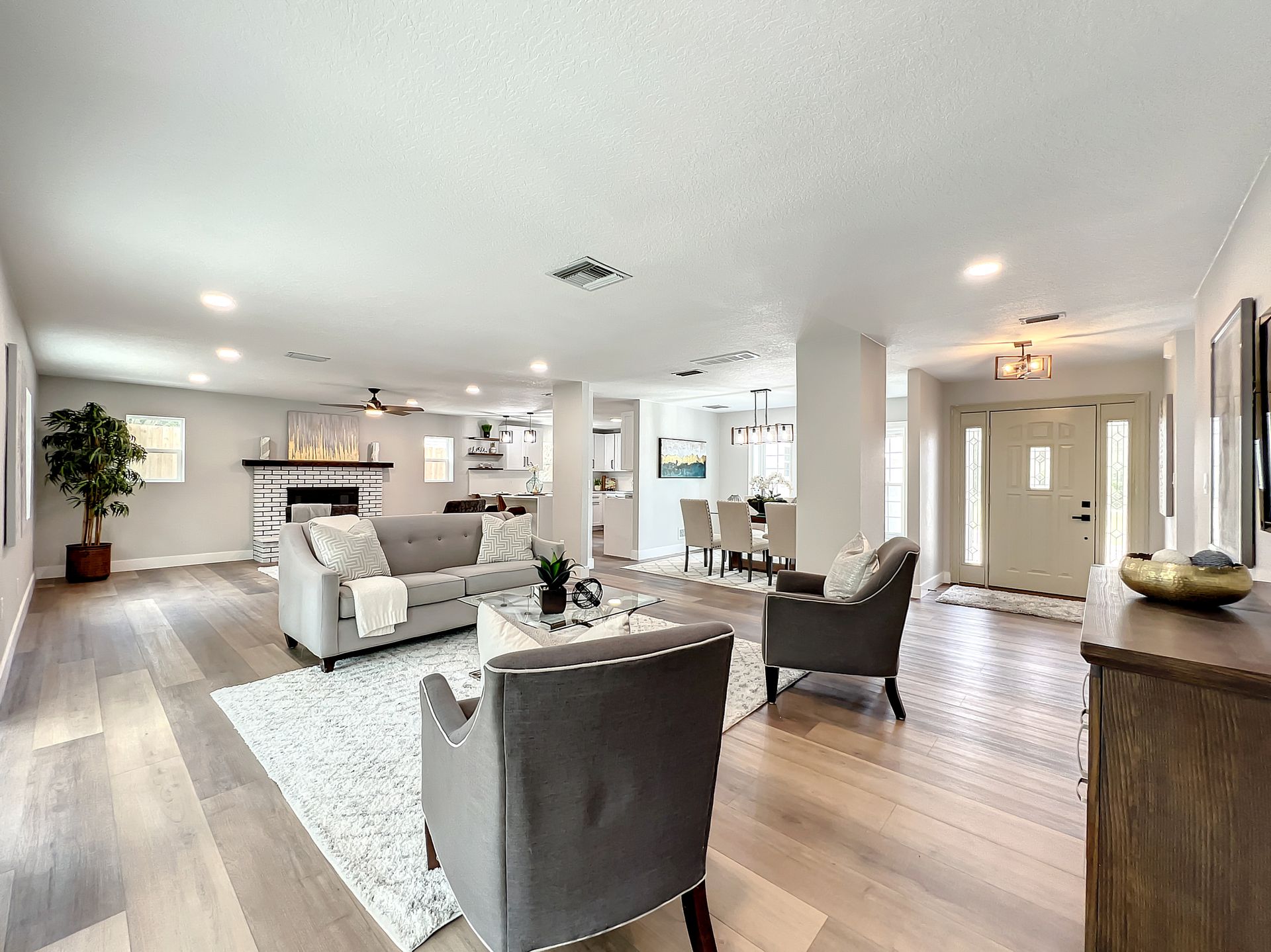Extraordinary and Stunning family home nestled in the desirable and highly sought-after Sanlando Springs Subdivision. Remarkable property that is tastefully renovated and absolutely gorgeous with luxurious and modern finishes. As you step into the foyer, you will be captivated with the open and practical living space. The living room enjoys double sliding patio doors and great view of the outdoor living areas by the patio and private backyard. The dining room is open to the living room and overlooks the front yard via the beautiful bay window. The charming family room provides cozy space by the wood burning fireplace. The all new lavish kitchen with solid wood cabinets, Quartz counter tops and backsplash, stainless steel appliances, and a vast peninsula accommodating 4 barstools great for entertainment and family gatherings. The laundry room by the kitchen offers additional cabinets and a pantry. A powder room / half bath is conveniently located by the laundry room and the garage. The charming and spacious Master Suite enjoys a large walk-in closet, 3 windows overlooking the yard and a sliding patio door overlooking the patio and serene backyard. The luxurious all new master bath comes with double sinks and marble shower and matt black fixtures. The 3 additional good sized bedrooms enjoy a hall / guest bathroom with a double sink vanity, and a bathtub shower with white subway tiles. There is plenty of storage space in the hallway closet and the large linen closet. You will enjoy time in the expansive back yard that could accommodate any outdoor living ideas you would like to implement. The side fenced yard has plenty of room for a boat, RV, or a shed, or event a dog run. Spacious garage with plenty of space for storage or a work bench. Roof 2018, brand new AC in 2023, new electric panel and all new devices and fixtures, upgraded plumbing, new water heater in 2022, new well water equipment in 2022, new sliding doors & some new windows.
