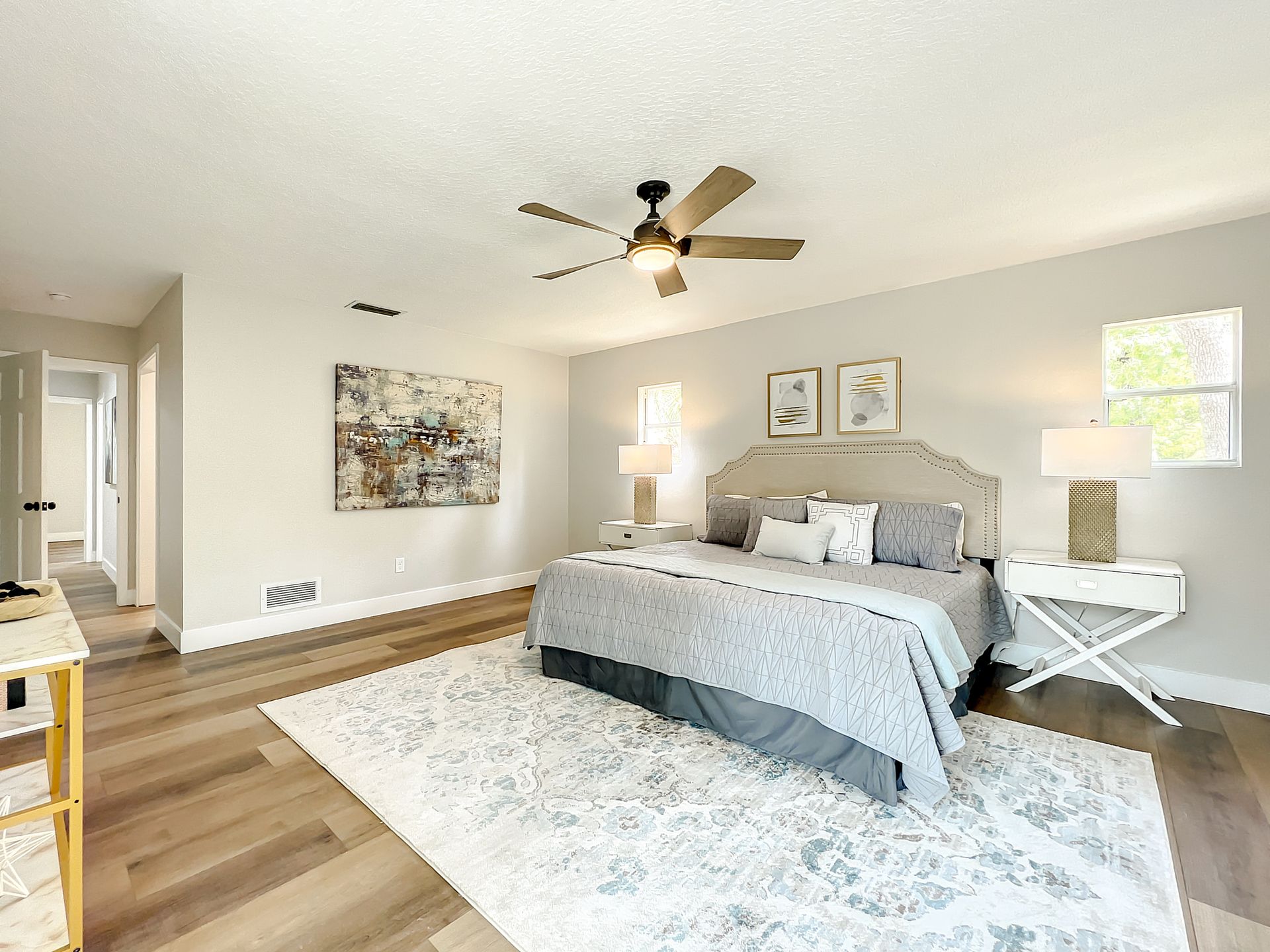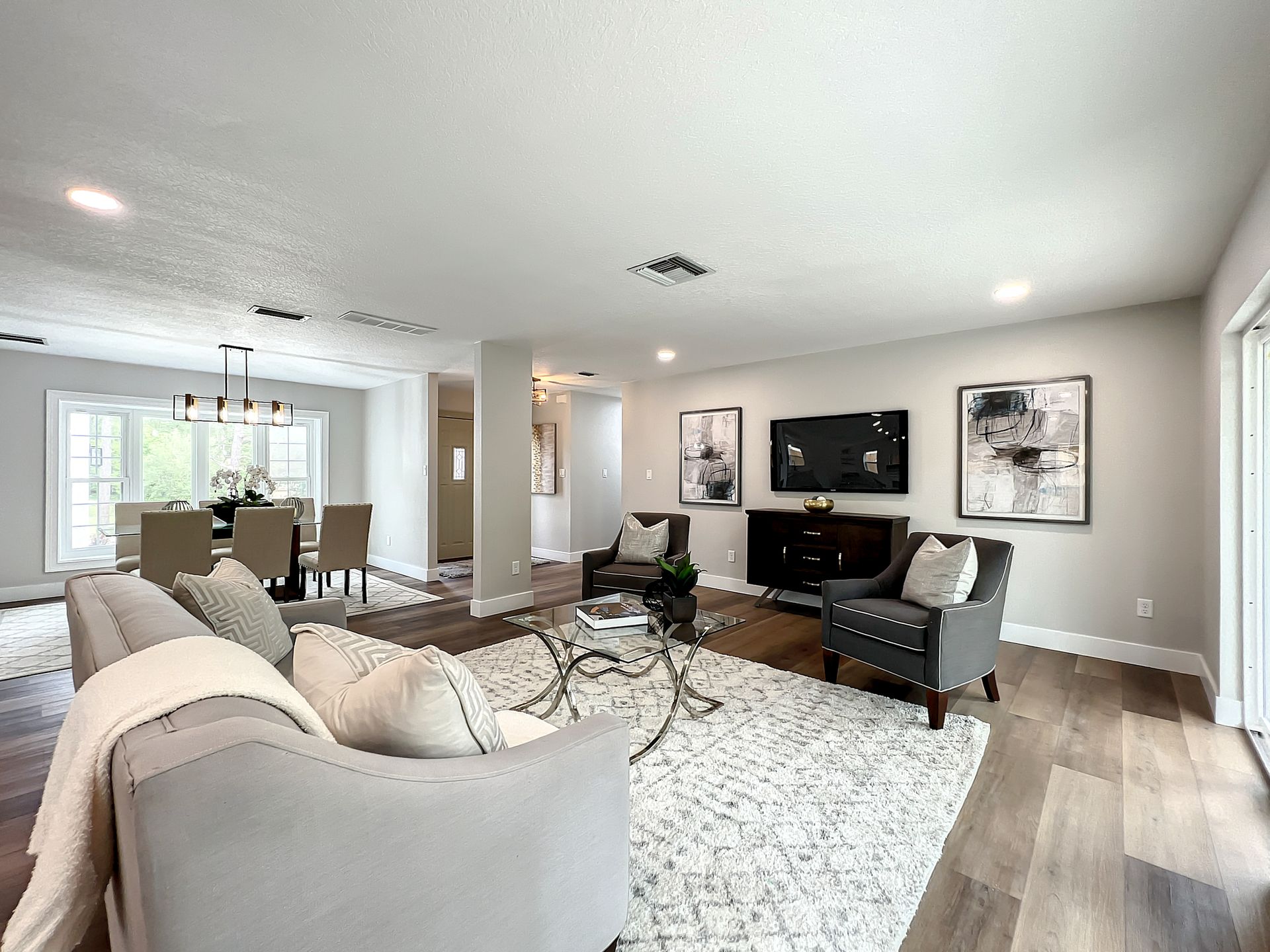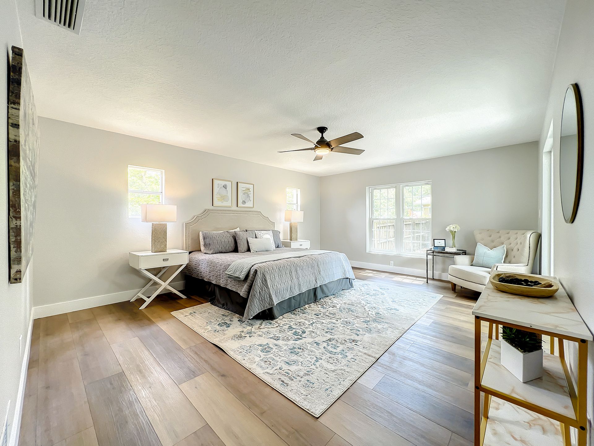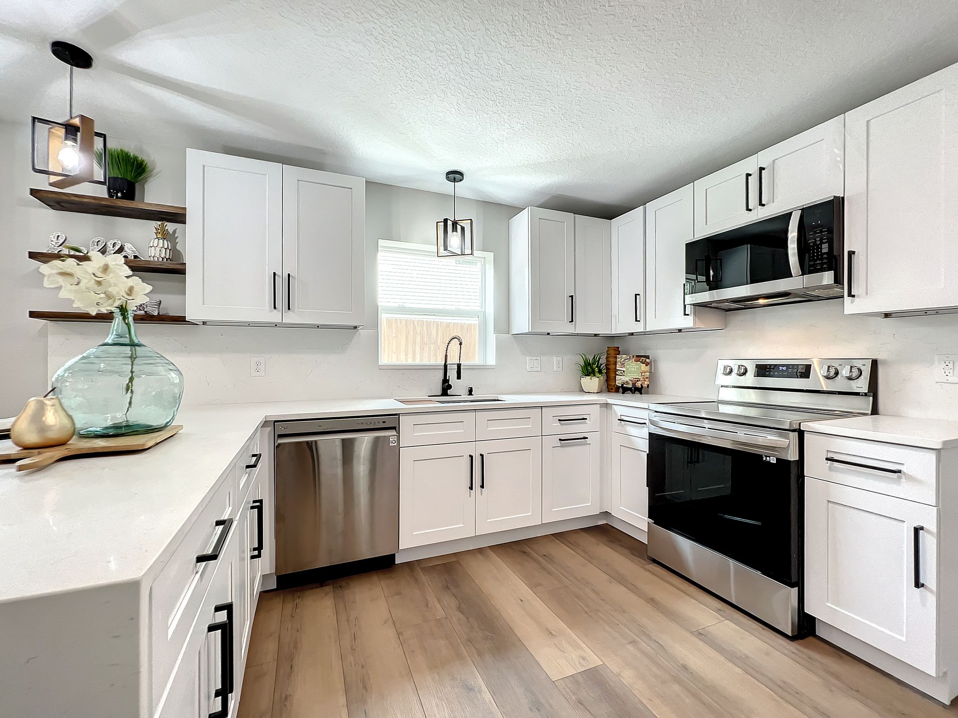 Extraordinary and Stunning family home nestled in the desirable and highly sought-after Sanlando Springs Subdivision. Remarkable property that is tastefully renovated and absolutely gorgeous with luxurious and modern finishes. As you step into the foyer, you will be captivated with the open and practical living space. The living room enjoys double sliding patio doors and great view of the outdoor living areas by the patio and private backyard. The dining room is open to the living room and overlooks the front yard via the beautiful bay window. The charming family room provides cozy space by the wood burning fireplace. The all new lavish kitchen with solid wood cabinets, Quartz counter tops and backsplash, stainless steel appliances, and a vast peninsula accommodating 4 barstools great for entertainment and family gatherings. The laundry room by the kitchen offers additional cabinets and a pantry. A powder room / half bath is conveniently located by the laundry room and the garage. The charming and spacious Master Suite enjoys a large walk-in closet, 3 windows overlooking the yard and a sliding patio door overlooking the patio and serene backyard. The luxurious all new master bath comes with double sinks and marble shower and matt black fixtures. The 3 additional good sized bedrooms enjoy a hall / guest bathroom with a double sink vanity, and a bathtub shower with white subway tiles. There is plenty of storage space in the hallway closet and the large linen closet. You will enjoy time in the expansive back yard that could accommodate any outdoor living ideas you would like to implement. The side fenced yard has plenty of room for a boat, RV, or a shed, or event a dog run. Spacious garage with plenty of space for storage or a work bench. Roof 2018, brand new AC in 2023, new electric panel and all new devices and fixtures, upgraded plumbing, new water heater in 2022, new well water equipment in 2022, new sliding doors & some new windows.
