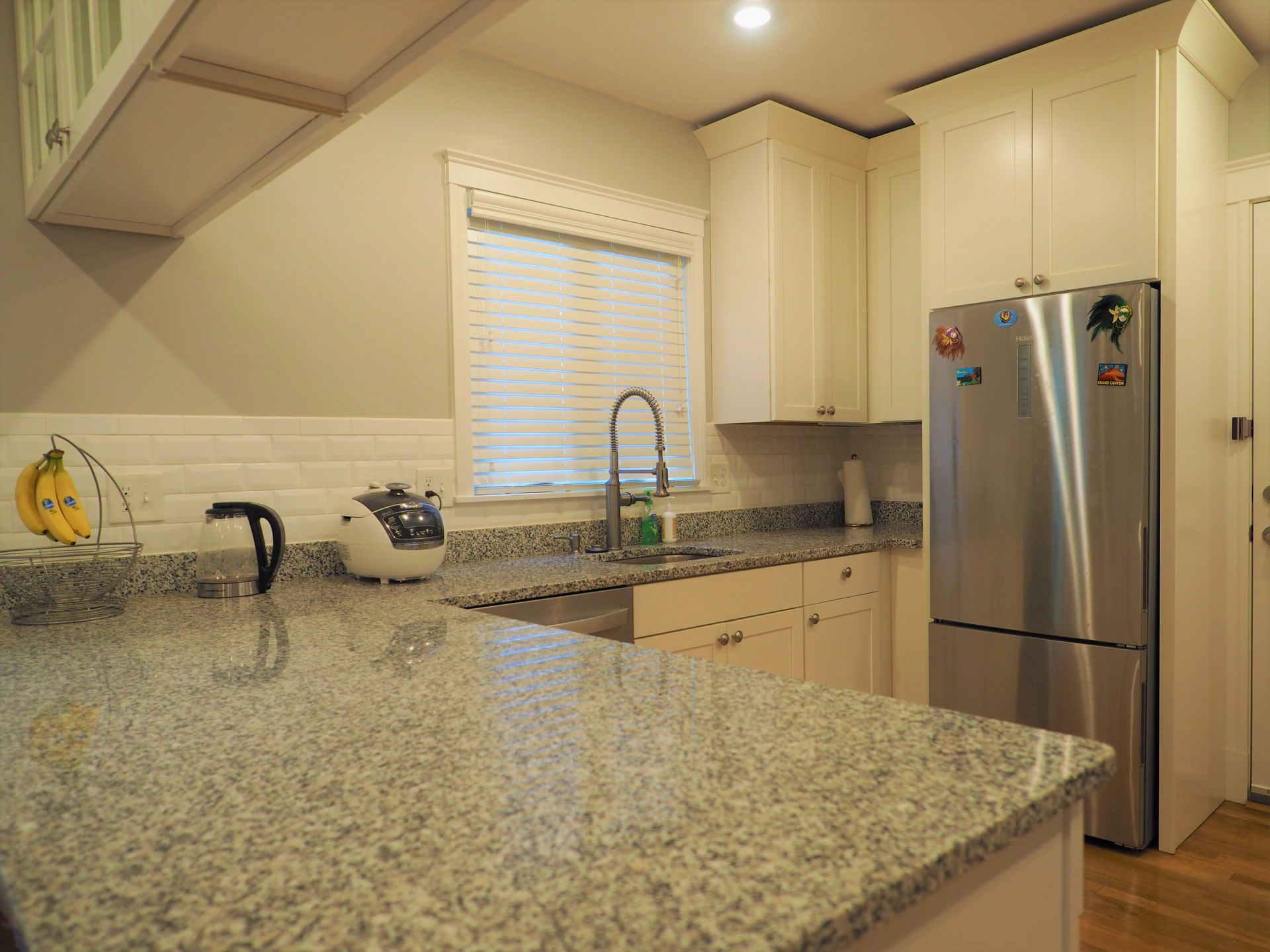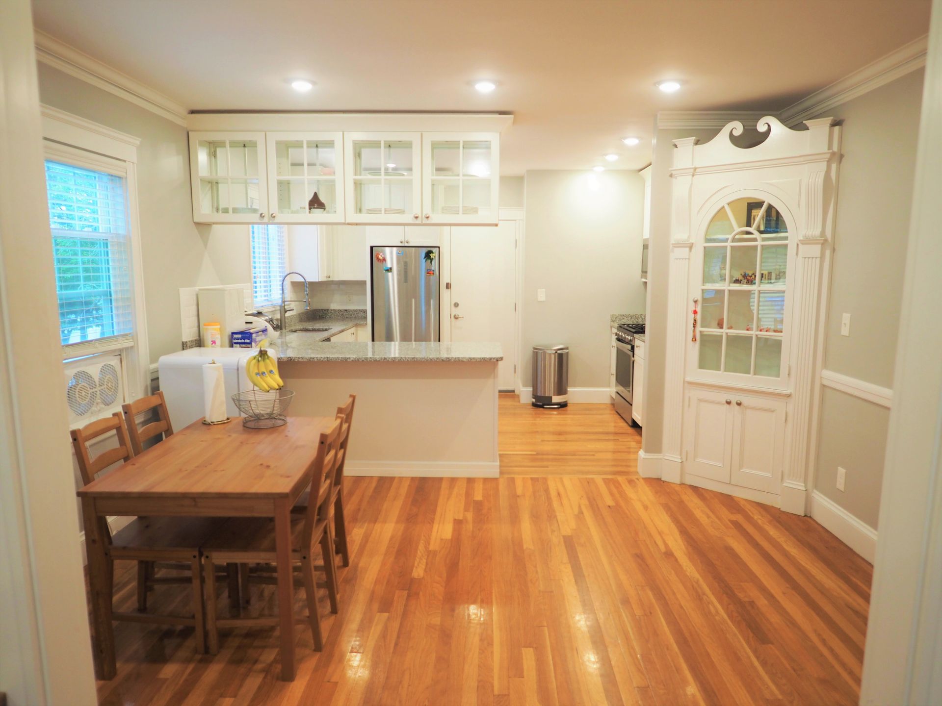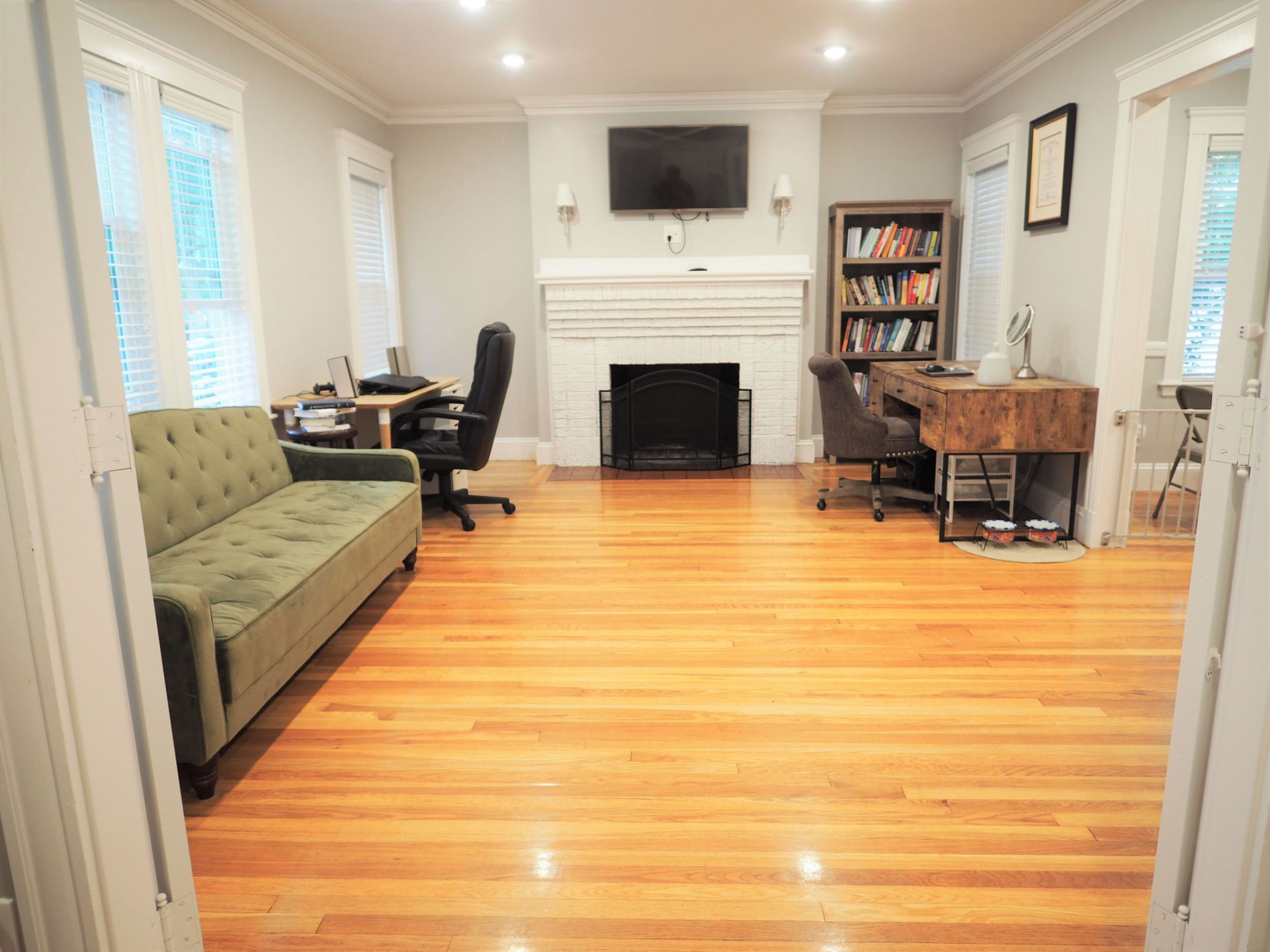 Come home to this immaculate two-bed, two-bath condo in the Brook Farm area of West Roxbury. This condo was gut renovated in 2018 and is still in like new condition. The spacious open floor plan offers comfortable living with hardwood floors throughout the main living area and bedrooms. The kitchen is well thought out with a breakfast bar looking into the dining area. With granite counters, stainless appliances, gas cooking, a dishwasher, and a built-in microwave, you have everything you need to start cooking. The living room is just off the foyer and has a fireplace with a mantle that sets the stage for cozy nights. The primary bedroom has an ensuite bath and a large closet. The washer/dryer is conveniently placed on the main living level. The home is equipped with central air and hydroheat-forced air. Large finished three-room storage space with closets and full windows located on the lower level which totals about an additional 430 square feet (which is not included in the living area square feet). The West Roxbury commuter line is about .4 miles away and only a half mile to markets, stores, and restaurants.