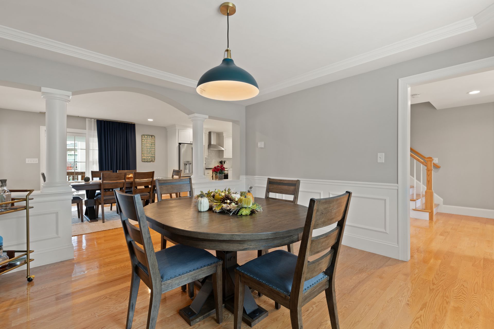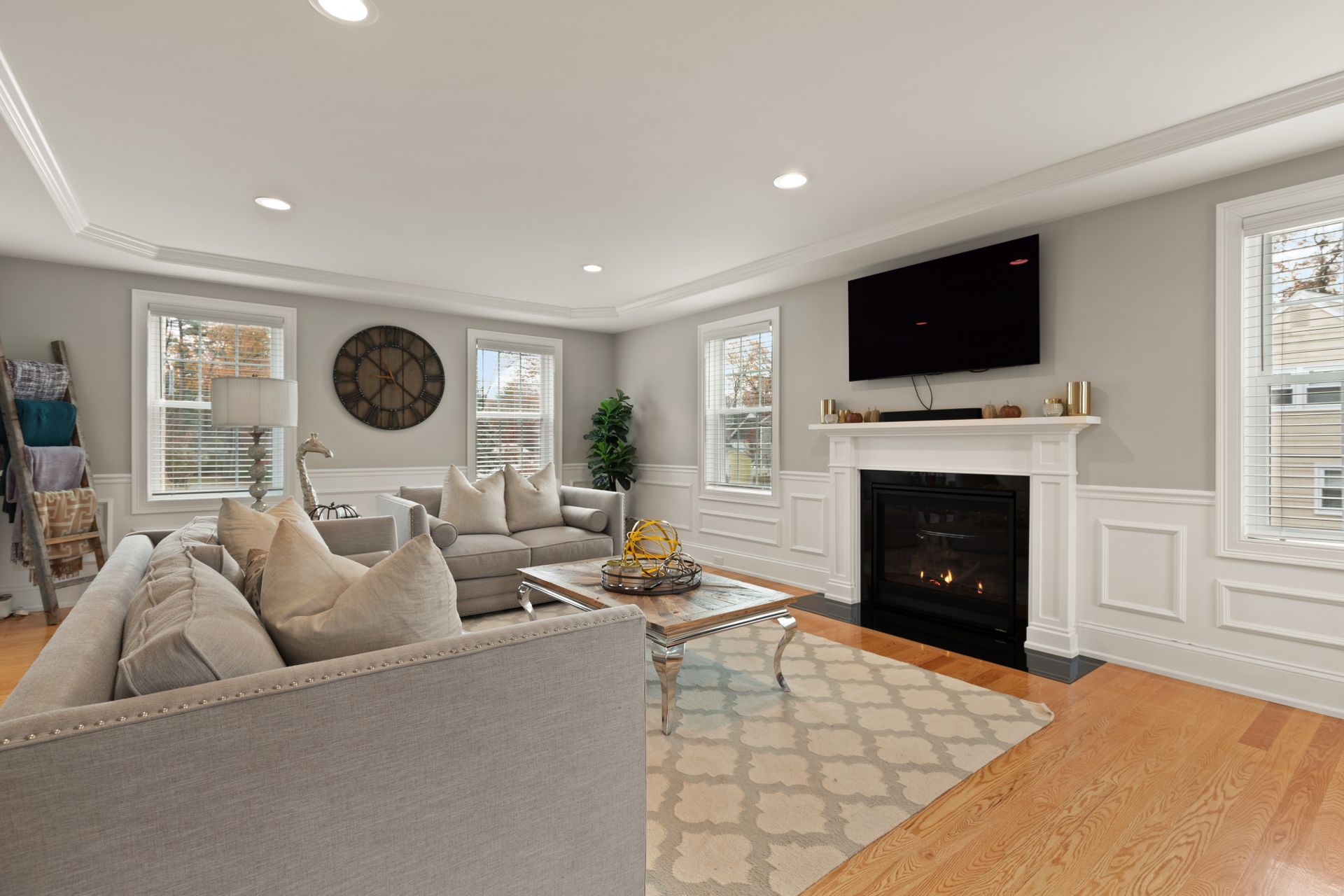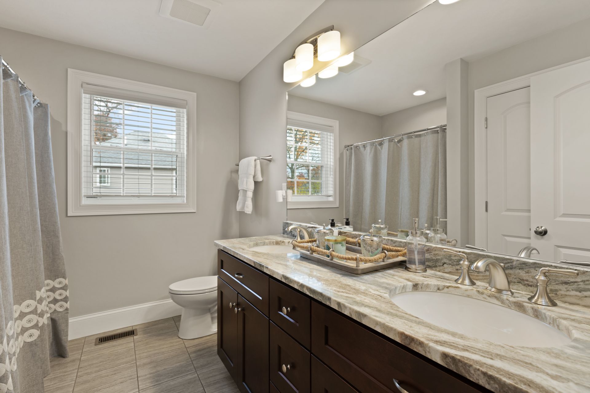 Stunning better than new property near the Burlington Line. A welcoming foyer greets you into this home. View your open floor plan with hardwood flooring, separated by pillars and arches between the kitchen, dining and great rooms. Lots of trim with chair rails, shadow boxes and crown molding throughout the first floor accented by recessed lighting. Enter your gorgeous kitchen with an eight-foot island, quartz counters, stainless steel high end Cafe appliances and a huge hideaway pantry. The formal living space doubles as an office with Glass French Doors. The second floor displays a large primary en suite bedroom with gigantic walk-in closet, a bathroom with soaking tub, huge tiled shower, double vanity and granite counters. Main upstairs bath has a double vanity and granite counters. Three Bedrooms round out the second floor. Use the Walk-up attic for future expansion and storage. The surprise is a 1,000 square foot basement unfinished but with a rubber floor, used as a home gym and it's amazing! A Large deck overlooks beautiful mature plantings that will create a beautiful border between yards. The new stone patio of 1,000 square feet enhances the landscaping with impressive walkways and walls creating a magnificent fenced in backyard. Large two car garage and parking for four more cars in the driveway. A one of a kind Colonial!