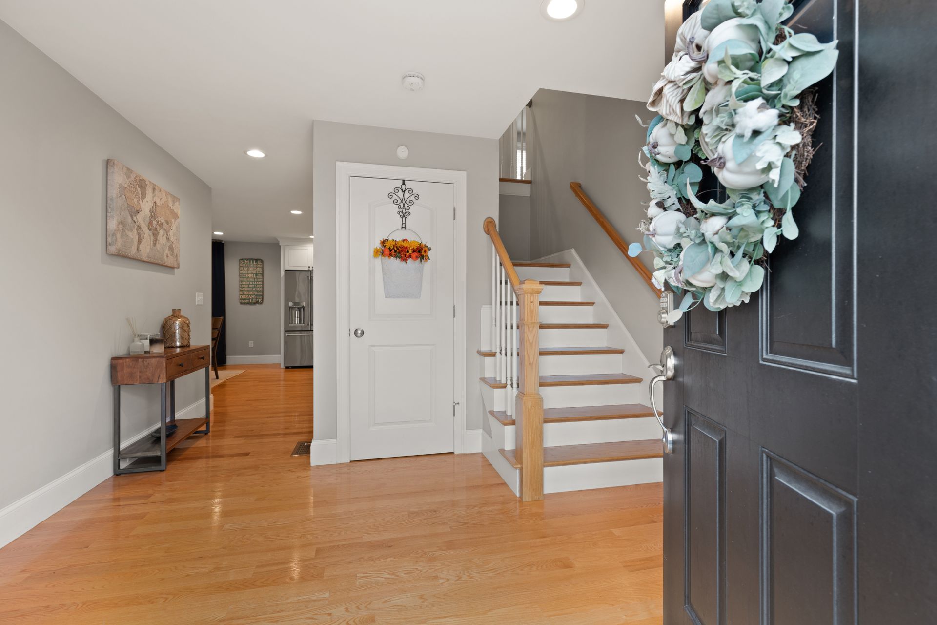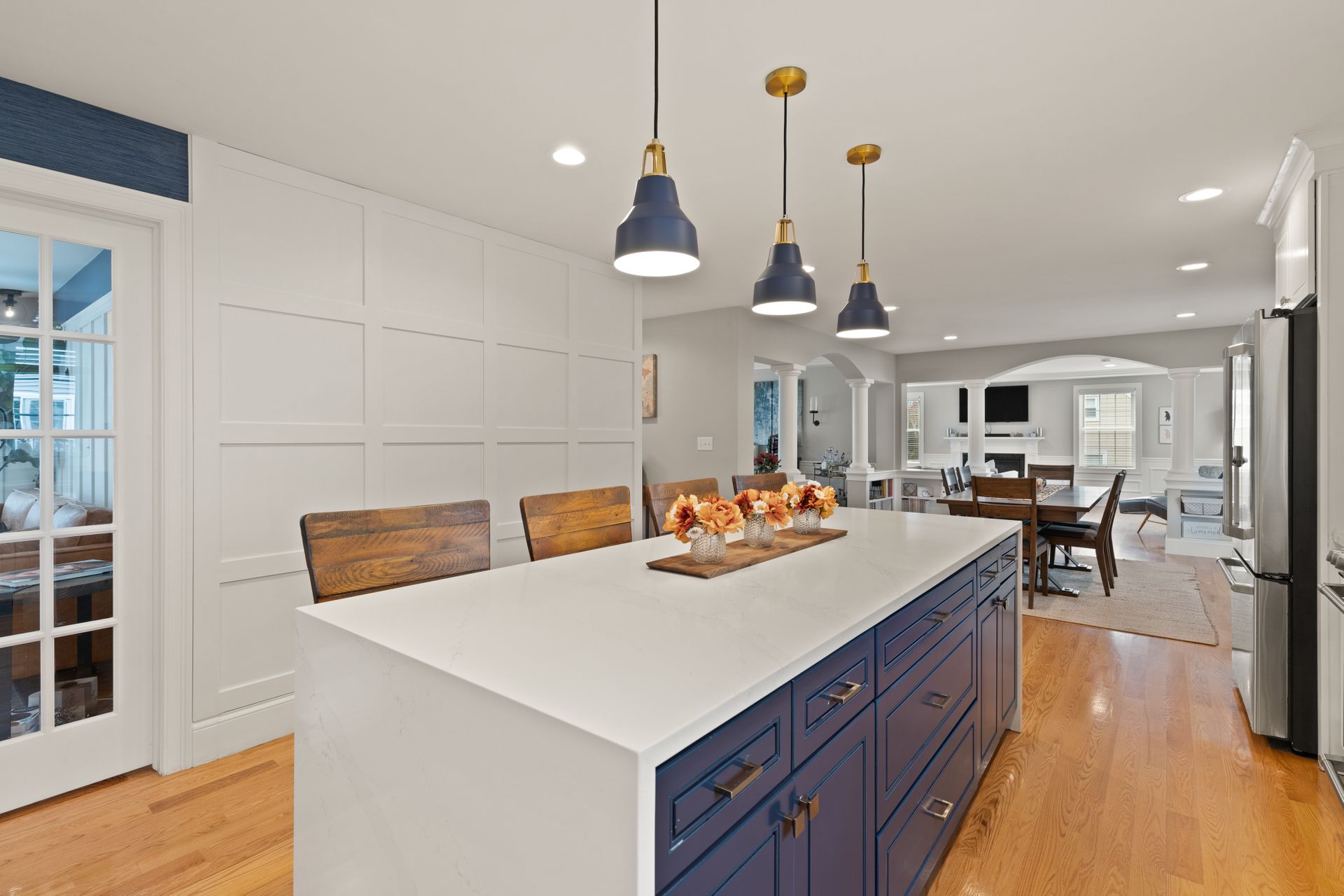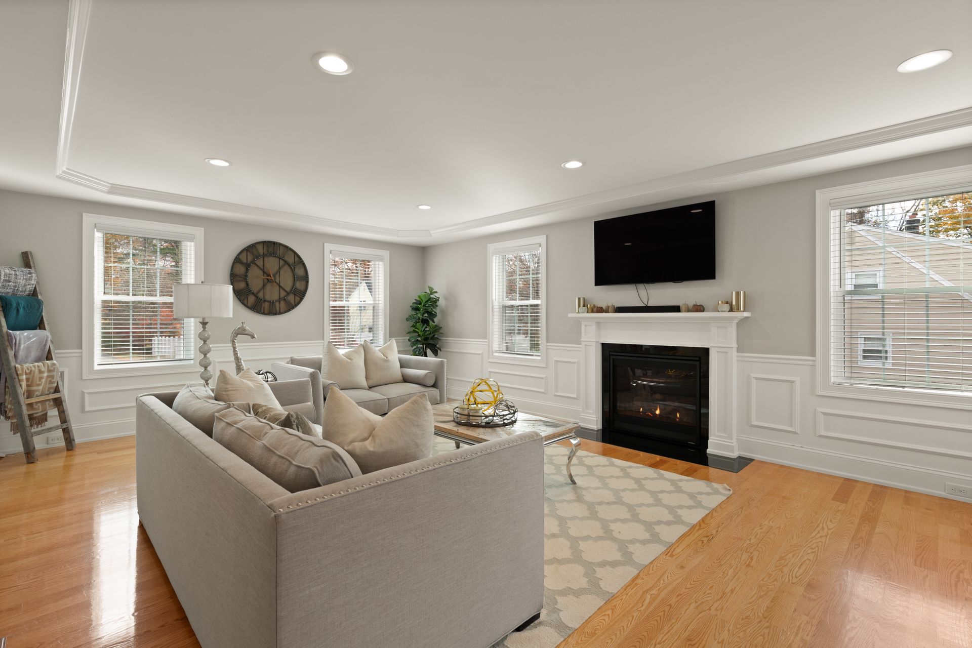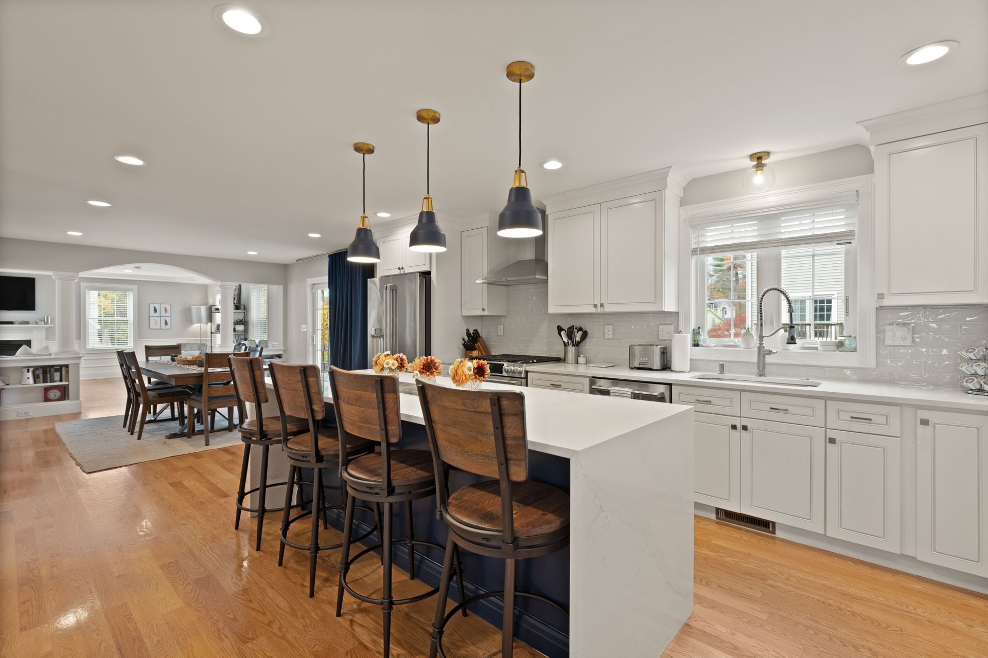 Stunning better than new property near the Burlington Line. A welcoming foyer greets you into this home. View your open floor plan with hardwood flooring, separated by pillars and arches between the kitchen, dining and great rooms. Lots of trim with chair rails, shadow boxes and crown molding throughout the first floor accented by recessed lighting. Enter your gorgeous kitchen with an eight-foot island, quartz counters, stainless steel high end Cafe appliances and a huge hideaway pantry. The formal living space doubles as an office with Glass French Doors. The second floor displays a large primary en suite bedroom with gigantic walk-in closet, a bathroom with soaking tub, huge tiled shower, double vanity and granite counters. Main upstairs bath has a double vanity and granite counters. Three Bedrooms round out the second floor. Use the Walk-up attic for future expansion and storage. The surprise is a 1,000 square foot basement unfinished but with a rubber floor, used as a home gym and it's amazing! A Large deck overlooks beautiful mature plantings that will create a beautiful border between yards. The new stone patio of 1,000 square feet enhances the landscaping with impressive walkways and walls creating a magnificent fenced in backyard. Large two car garage and parking for four more cars in the driveway. A one of a kind Colonial!