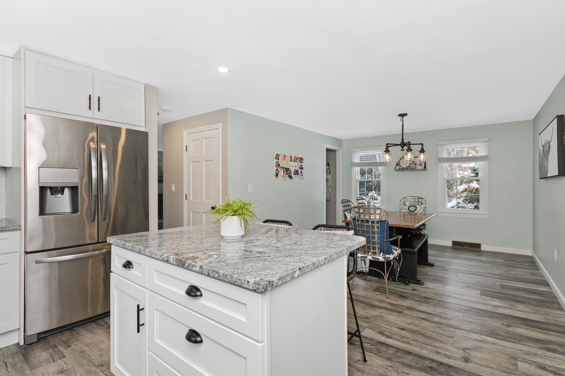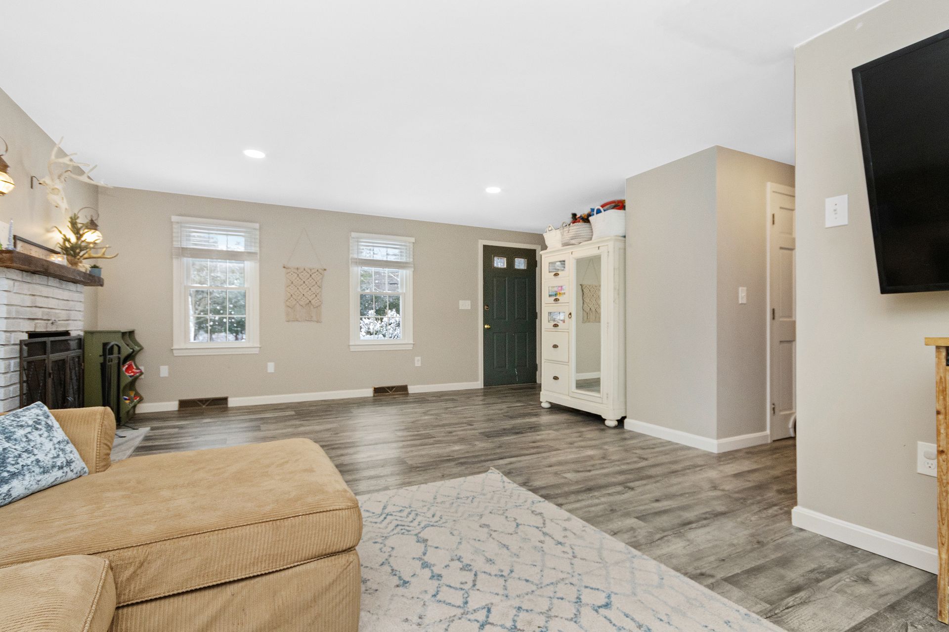 What a transformation this home has gone through. Open concept floor plan. Newly renovated kitchen complete with granite countertops, stainless steel appliances opens to the dining room area. Off kitchen enjoy the three-season screened in room overlooking the back yard. Front to back living room with fireplace for those winter nights, two full baths, once complete with spa tub and the other with tub seating, three large bedrooms. Lots of updates throughout the home, newer windows, roof and septic. Fenced in ground pool with new Liner. Oversized two car garage with a workshop area and a loft for storage. Close to Robin's pond fishing, corner lot in a small subdivision. Welcome Home.