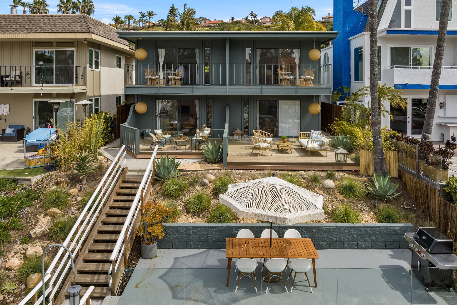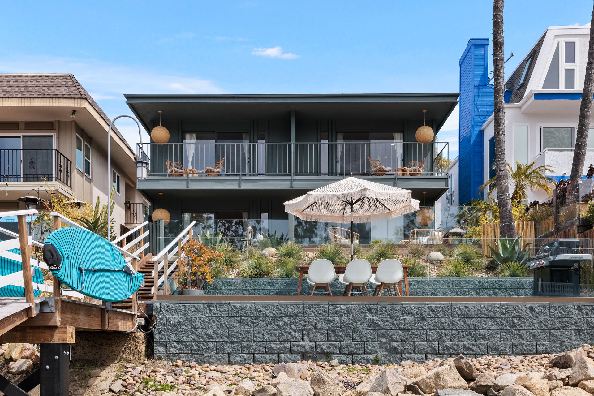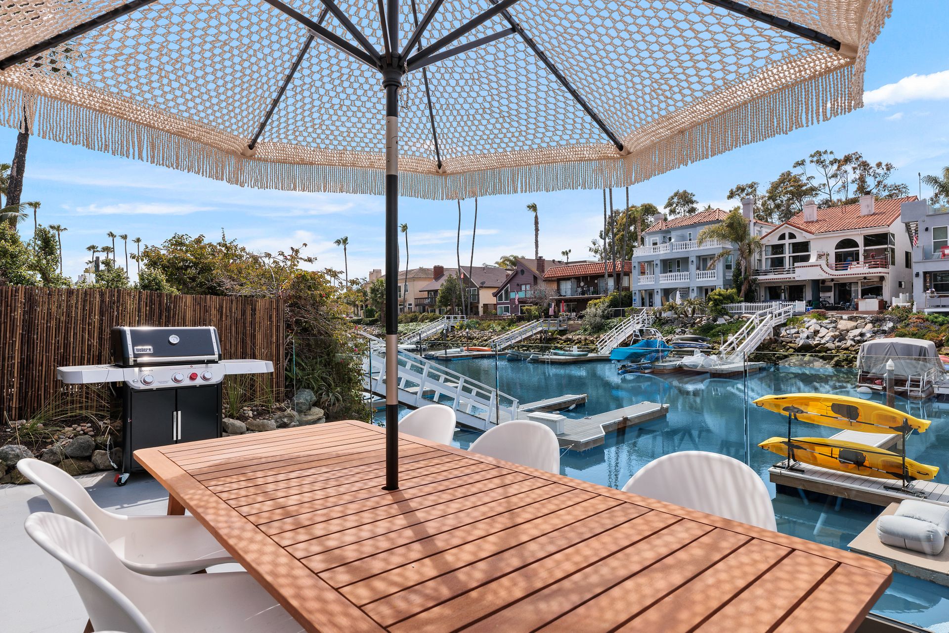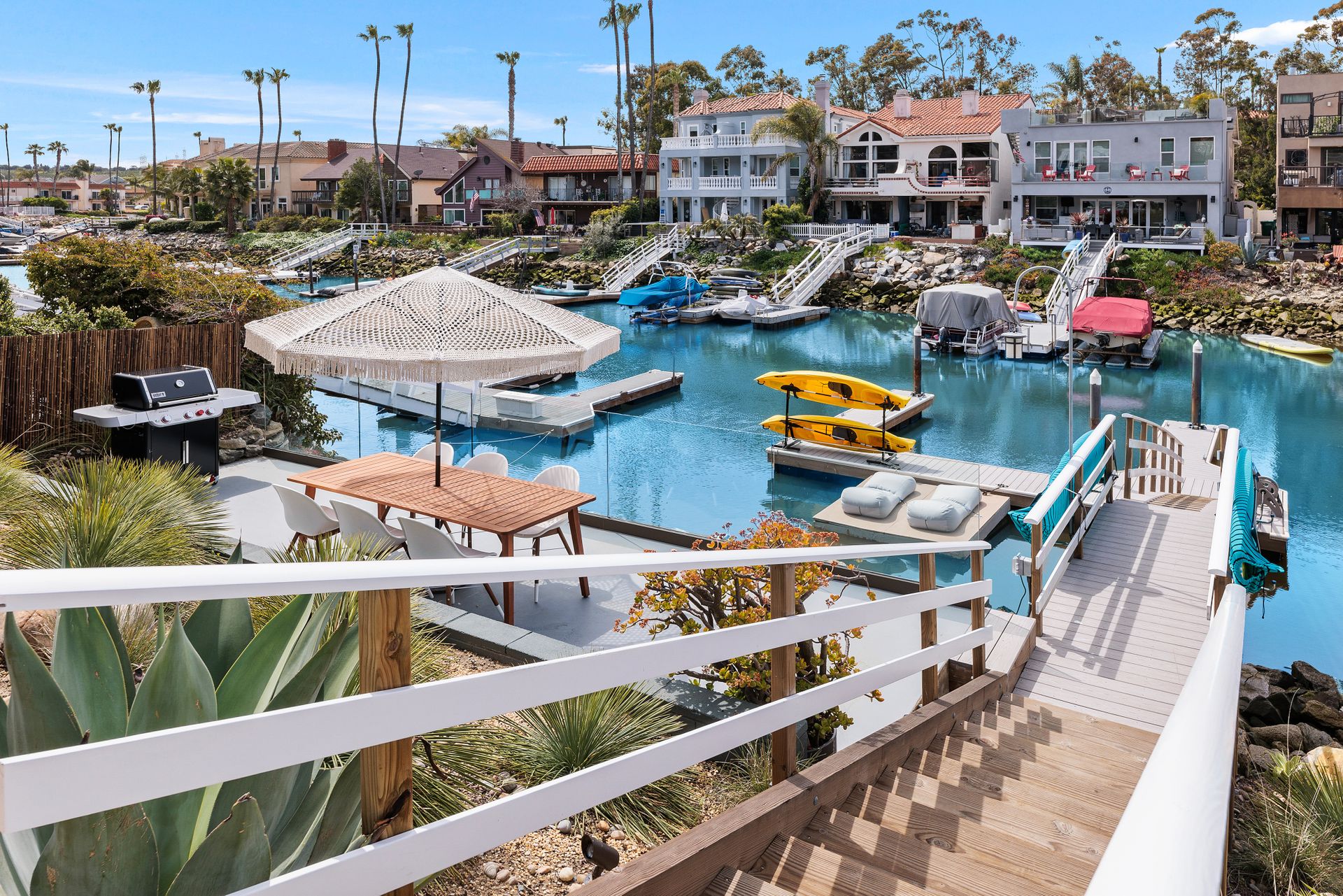 Mid-Century Trophy Property located on the water in one of only two areas in San Diego County with personal boat docks. Beautifully renovated and updated 4-plex in the heart of Carlsbad, CA. Property is located steps away from a quiet lagoon beach and an easy drive to area beaches and the Carlsbad village. All units have private outdoor space, and all have direct water views. Updates include new TPO roof, high end plumbing fixtures, custom Teak cabinetry, quartz counters, Stainless steel appliances, Italian tile, designer lighting, flooring and Ipe wood decks. All units professionally decorated and equipped. HOA allows for a minimum of 30-day rental. Guests have full access to private boat dock and outdoor dining area with stainless BBQ. Property has 3 garages with one unit having direct access and private gated entrance (owner’s unit). The property boasts over $16,000 in monthly gross income with potential to add at least two units over the garage area. Units are designed for ease of maintenance and easy to rent! The property was originally entitled as condos which adds value and flexibility for any investor’s exit strategy. Truly one of a kind!