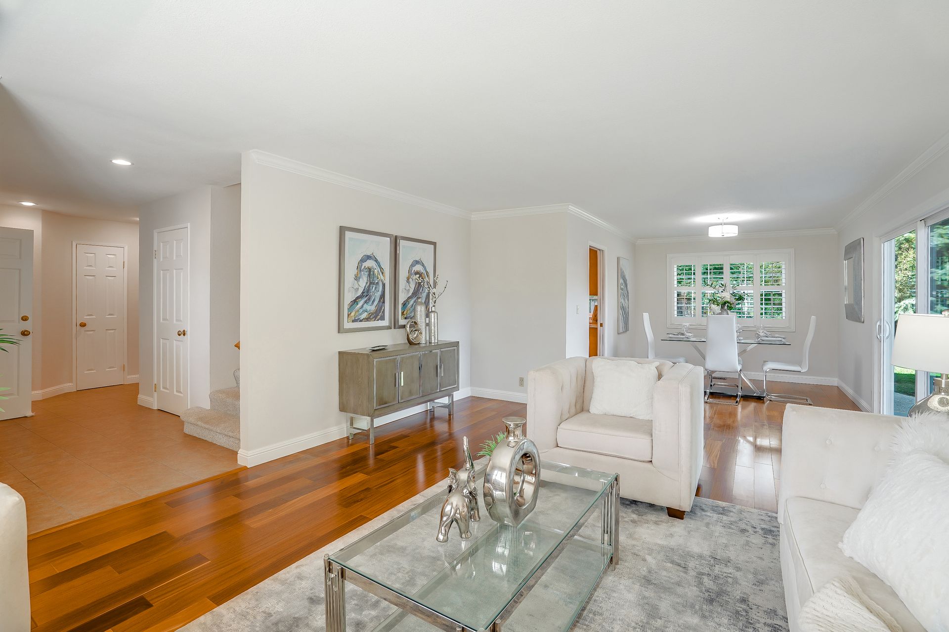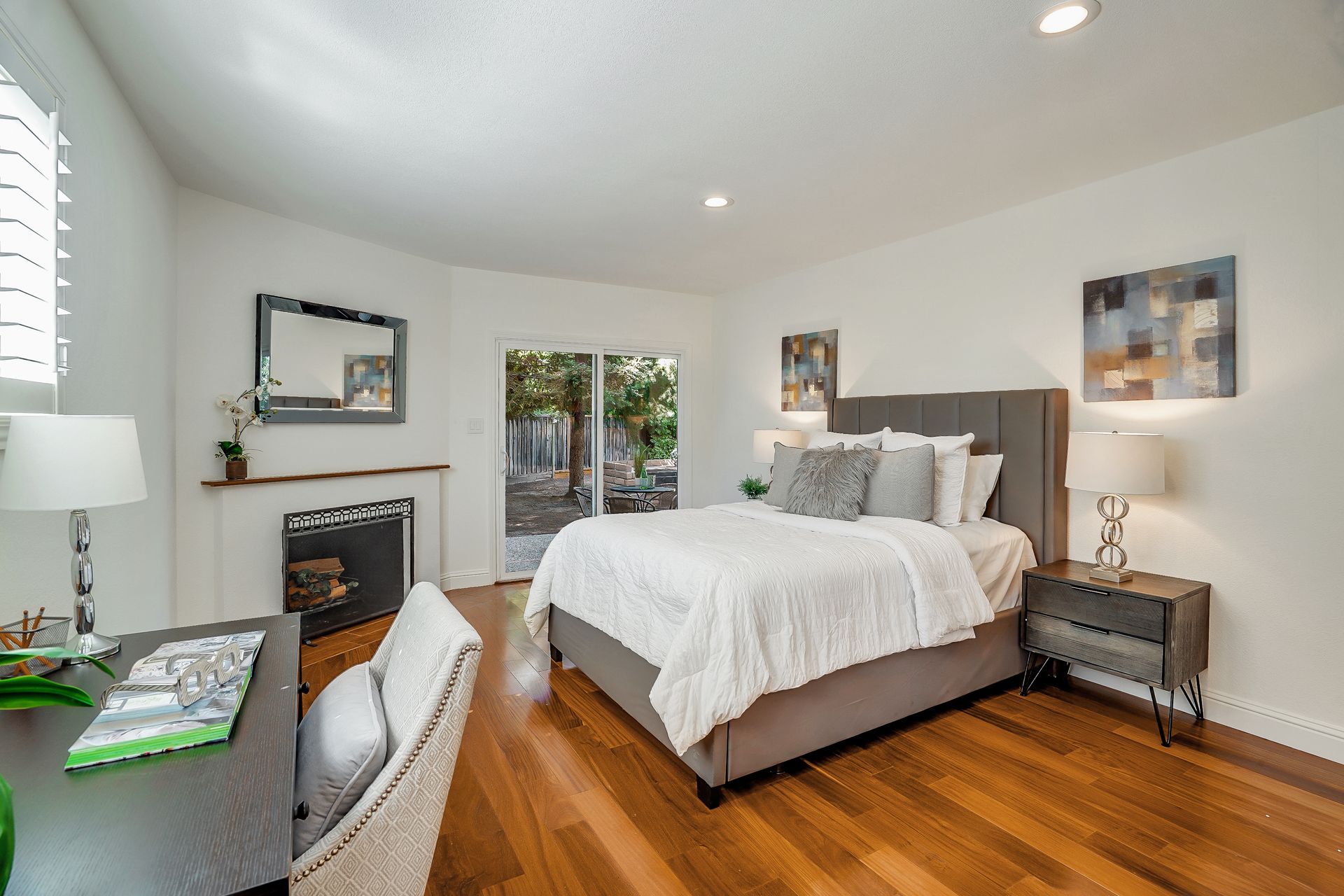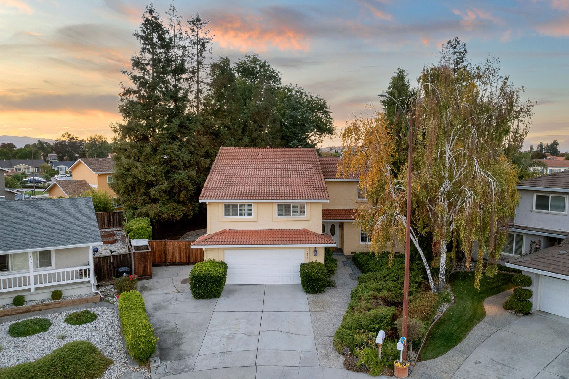 Welcome to this spacious four-bedroom home located at the end of a private cul-de-sac. This lovely home is situated in a park-like setting with mature trees, a large lawn area and multiple patios which are ideal for entertaining or relaxing. The sideyard has ample space for an R.V. or as boat storage. The formal entry leads to the living room and spacious dining area with a slider to the private side yard. The updated kitchen with granite countertops and stainless appliances has an adjacent family room with access to the expansive rear yard. A half bath is conveniently located nearby. Upstairs are four spacious bedrooms all with walk-in closets. Also on this floor is access to a separate, one-bedroom unit. It has a full bathroom with radiant floor heating, a fireplace, a spiral staircase and downstairs private side yard access. Additional amenities to this home are air conditioning, EV car charging, high-speed wiring, plantation shutters fresh interior paint and much more. Close to shopping, commute routes, public transportation and local parks. Welcome Home!