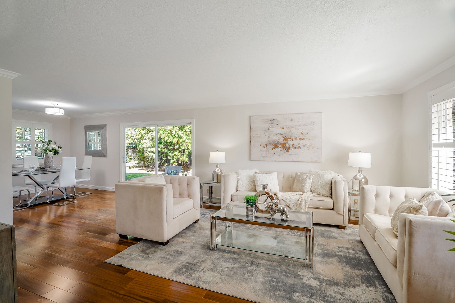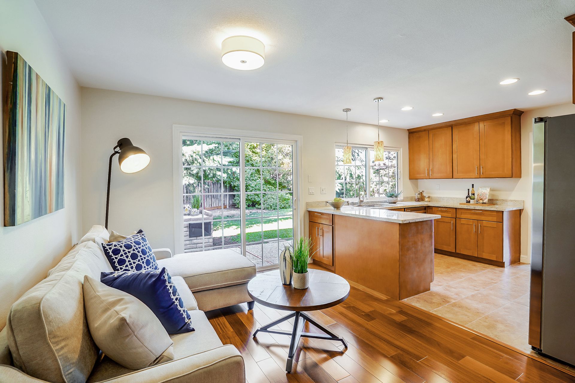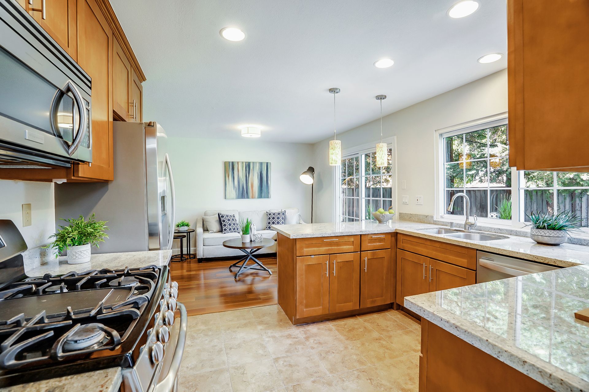 Welcome to this spacious four-bedroom home located at the end of a private cul-de-sac. This lovely home is situated in a park-like setting with mature trees, a large lawn area and multiple patios which are ideal for entertaining or relaxing. The sideyard has ample space for an R.V. or as boat storage. The formal entry leads to the living room and spacious dining area with a slider to the private side yard. The updated kitchen with granite countertops and stainless appliances has an adjacent family room with access to the expansive rear yard. A half bath is conveniently located nearby. Upstairs are four spacious bedrooms all with walk-in closets. Also on this floor is access to a separate, one-bedroom unit. It has a full bathroom with radiant floor heating, a fireplace, a spiral staircase and downstairs private side yard access. Additional amenities to this home are air conditioning, EV car charging, high-speed wiring, plantation shutters fresh interior paint and much more. Close to shopping, commute routes, public transportation and local parks. Welcome Home!
