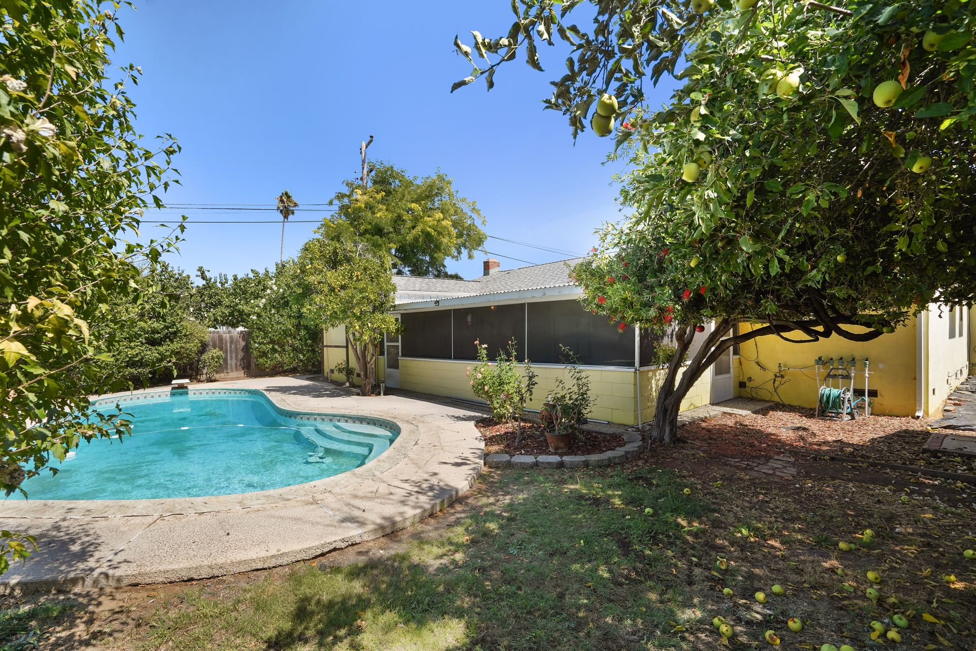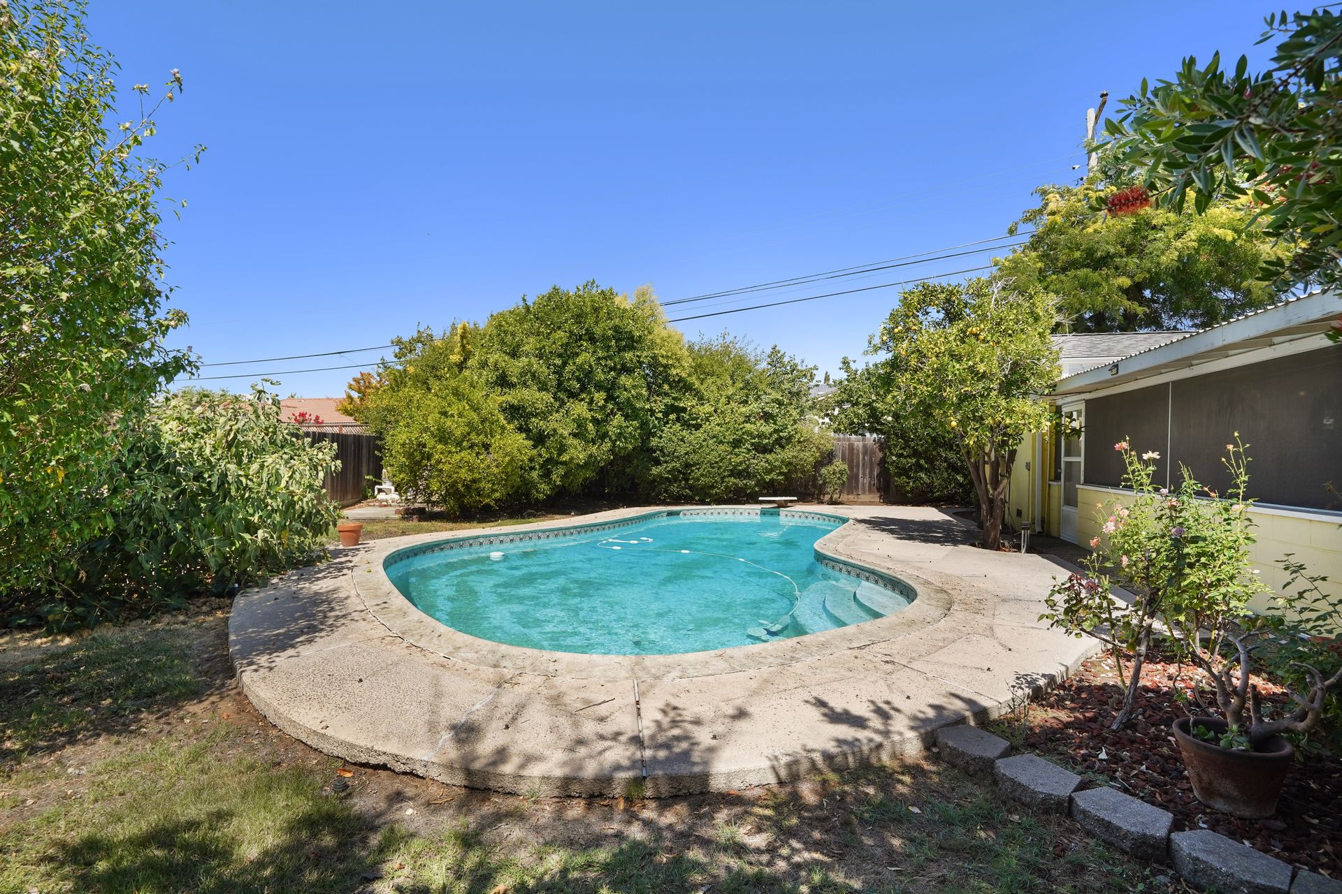 A great opportunity to make this spacious, sprawling ranch style home with charming curb appeal your own! Family owned since 1976, this home offers approximately 1900 square feet of living area, original hardwood flooring, 5 bedrooms, 2.5 baths, (records show 4/2) family room with a wood burning fireplace, living room, and additional space for a home office. Enjoy the spacious backyard, pool, mature fruit trees, landscaped front yard, lawn, a lovely rose garden and lush shrubs. Other features include 20 yr. Leased Solar (2014) , roof (2021) and HVAC- (2019) Stove/Oven (2020). All of this conveniently located near Mountain View Elementary, El Dorado Middle school and Concord High.