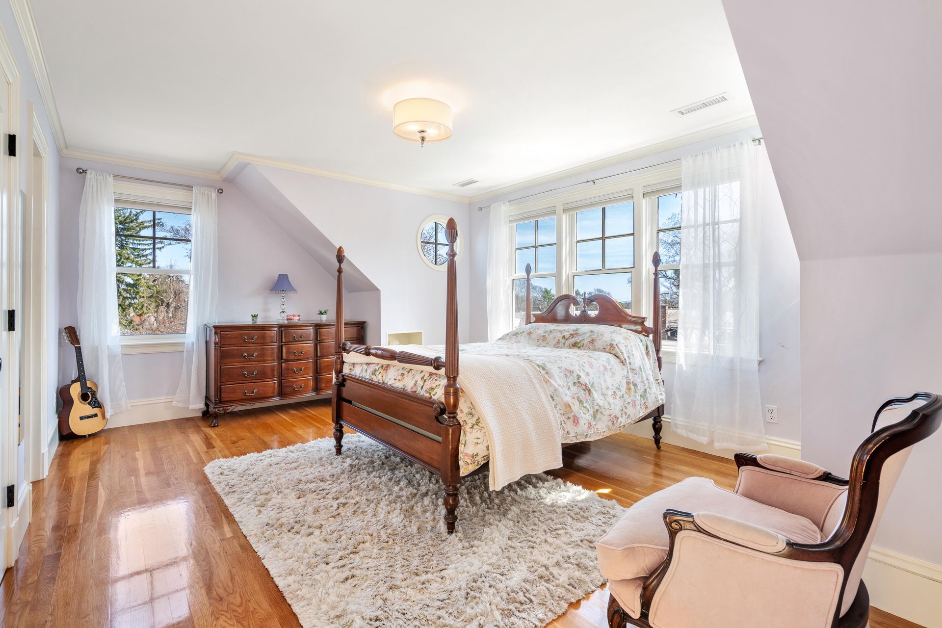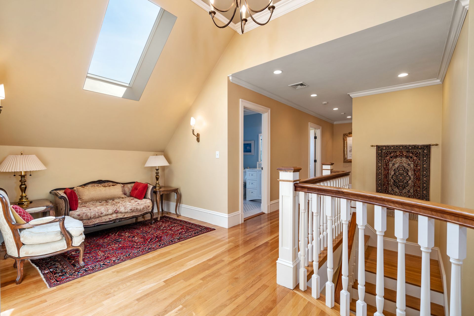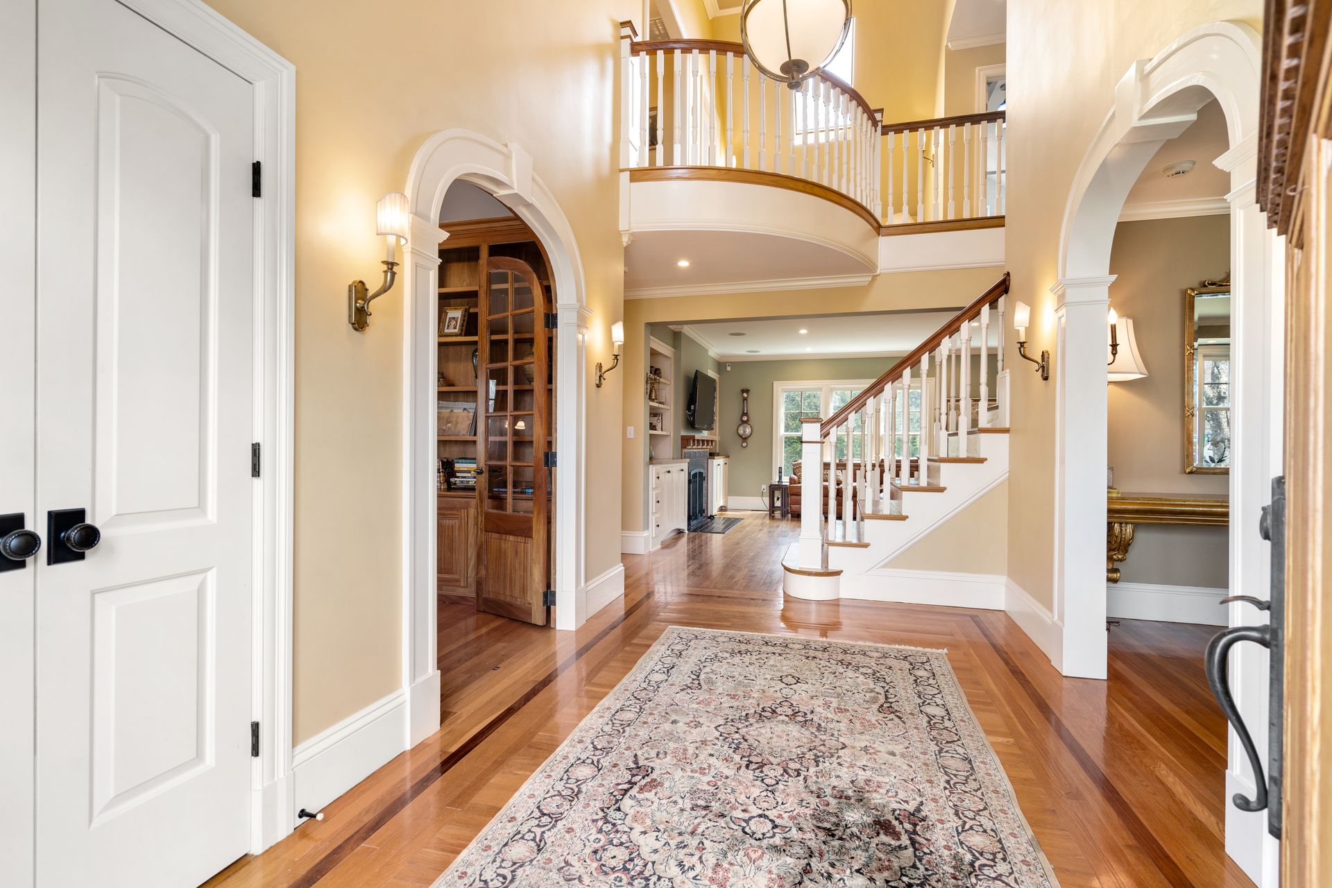 This stunning 2009 custom built contemporary colonial was crafted with careful attention to elegance and grace. With five bedrooms and five full bathrooms, this spacious and bright home is perfect for both entertaining and a work from home lifestyle. Welcoming you to this magnificent property is a breathtaking entry parlor with 21’ cathedral ceiling that leads to an exquisite library with rich wood bookcases and window seat. A chef’s dream kitchen with center island and high end appliances opens to an impressive family room with fireplace and built-ins. The formal dining room accesses a delightful covered stone patio. A central staircase leads to a second floor loft area with skylight. The primary bedroom features a vaulted ceiling, walk-in closet and luxurious bath. Amenities include a first floor office/bedroom, finished lower level with kitchenette, second floor laundry, attached garage. Set in a beautiful neighborhood on a private lot convenient to Mass Pike, Cambridge, Boston, Ward School.