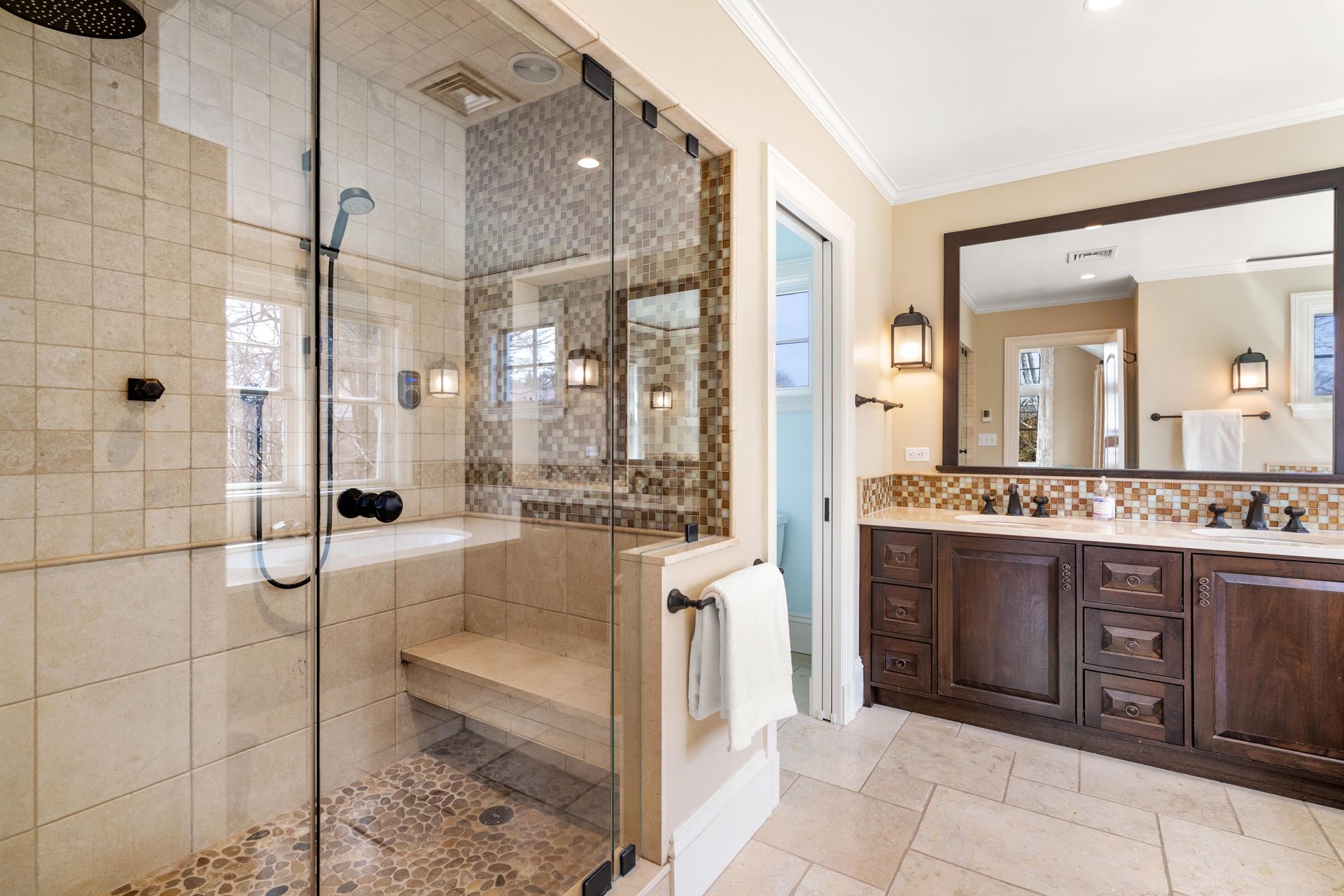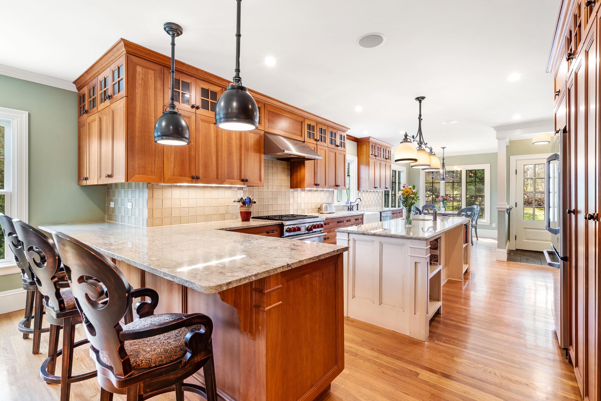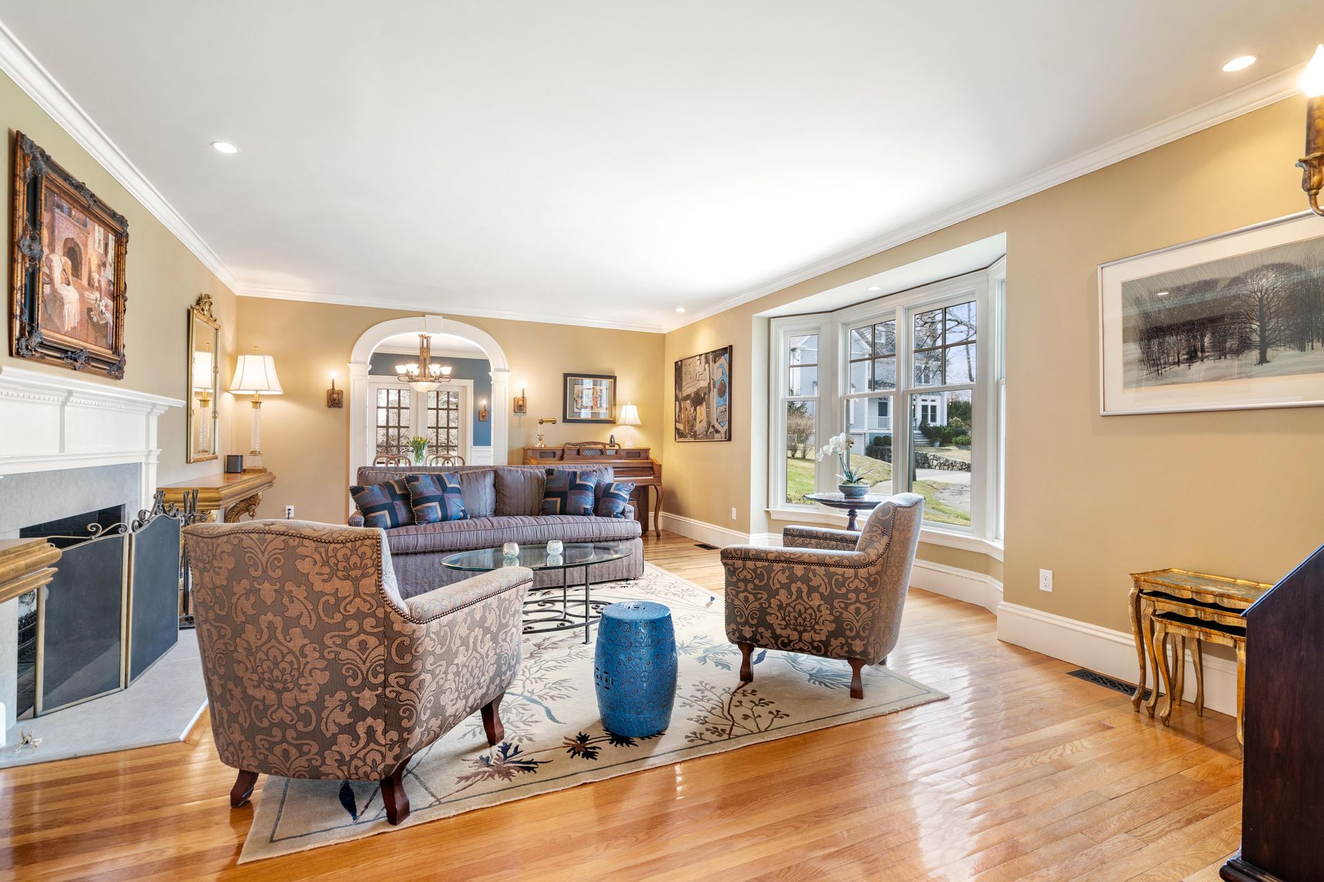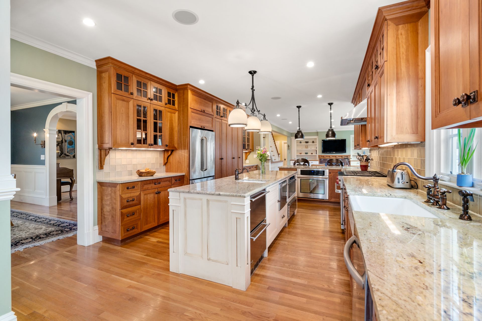 This stunning 2009 custom built contemporary colonial was crafted with careful attention to elegance and grace. With five bedrooms and five full bathrooms, this spacious and bright home is perfect for both entertaining and a work from home lifestyle. Welcoming you to this magnificent property is a breathtaking entry parlor with 21’ cathedral ceiling that leads to an exquisite library with rich wood bookcases and window seat. A chef’s dream kitchen with center island and high end appliances opens to an impressive family room with fireplace and built-ins. The formal dining room accesses a delightful covered stone patio. A central staircase leads to a second floor loft area with skylight. The primary bedroom features a vaulted ceiling, walk-in closet and luxurious bath. Amenities include a first floor office/bedroom, finished lower level with kitchenette, second floor laundry, attached garage. Set in a beautiful neighborhood on a private lot convenient to Mass Pike, Cambridge, Boston, Ward School.