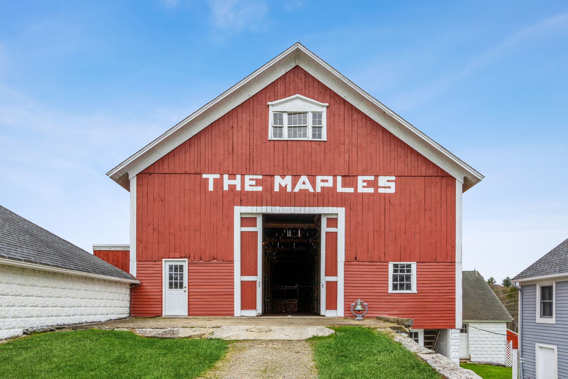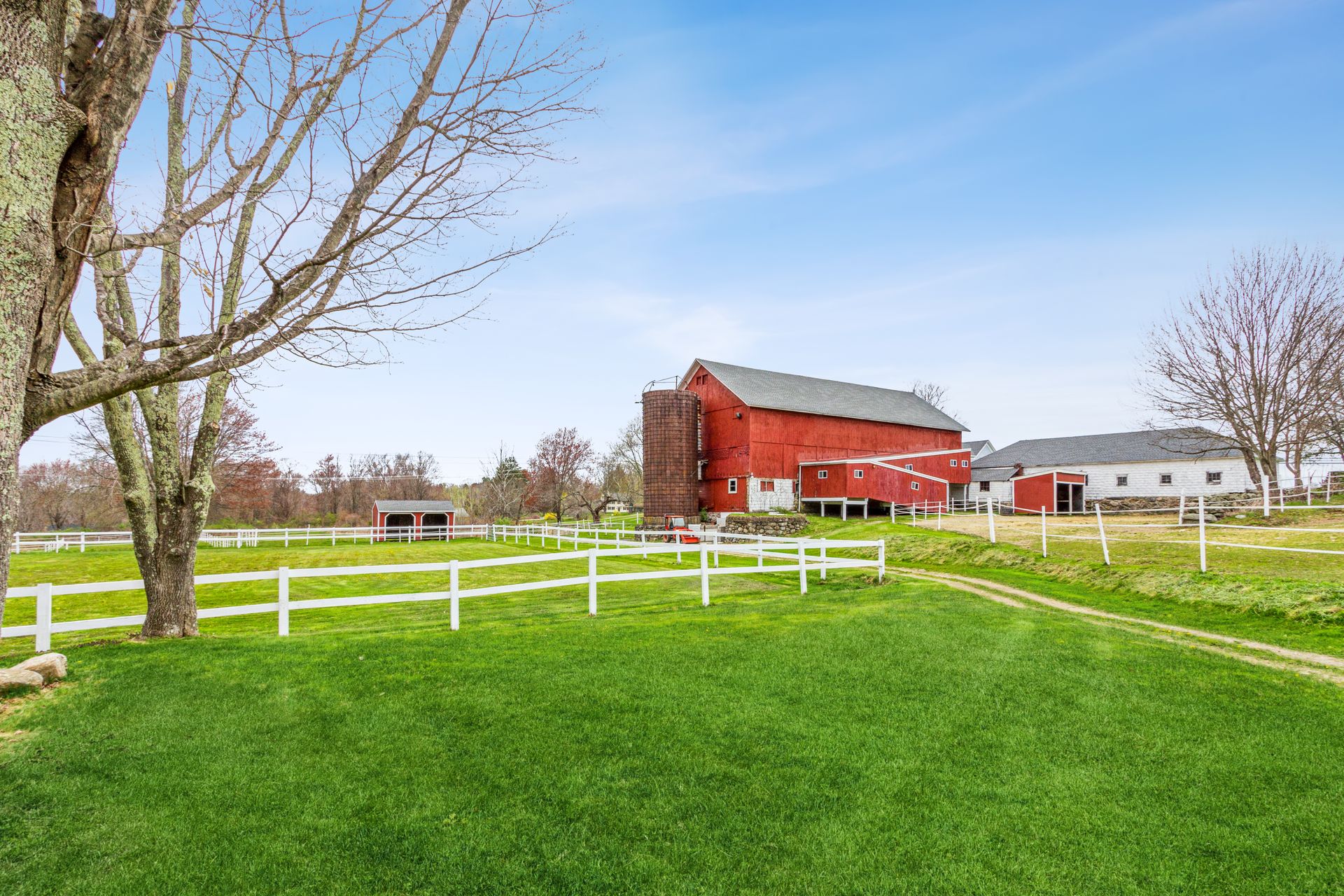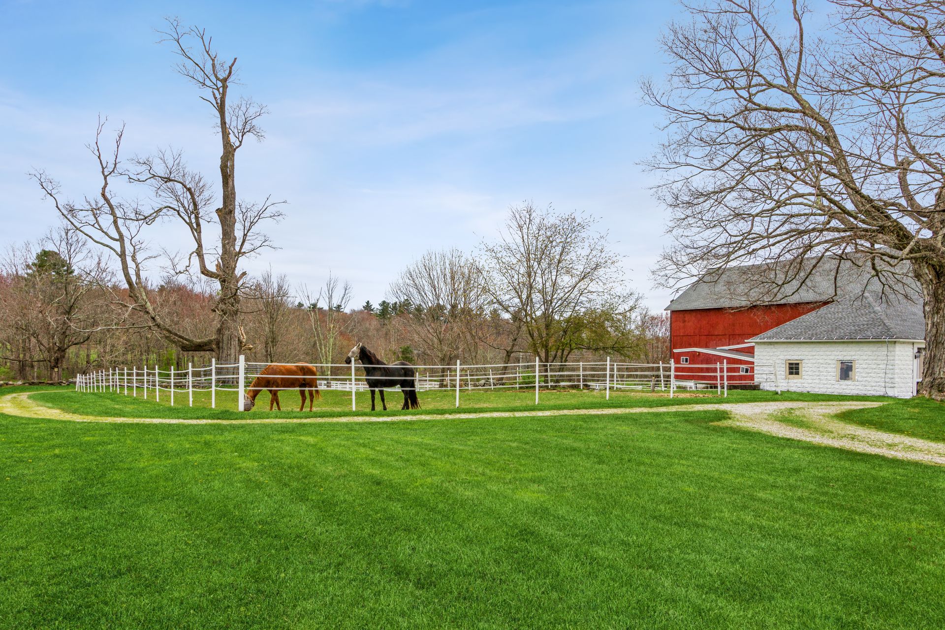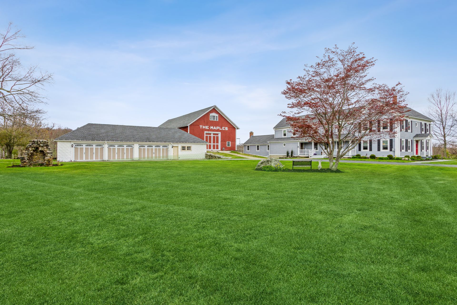 Picturesque and iconic 10+ acre Equestrian property and residence, known as "The Maples" farm will delight you! A beautifully updated and modernized 4,200 square foot Colonial home offers the character of yesteryear with today's amenities. The lovely formal dining room and the massive remodeled Kitchen with granite, stainless steel, dining area and efficient pellet stove make great gathering places! Great Room has beamed vaulted ceilings, stone fireplace and wide plank wood floors! Enormous light-filled primary suite with nine windows has remodeled granite bathroom and walk-in closet. Two more remodeled full baths! This home has been meticulously maintained and has all newer systems, roof and windows. Wonderful three-story 3,700 square foot barn with original hewn wood floors, 10 newer large stalls, tack room, hayloft, enclosed ramp structure, power/water, storage. Lighted 150x100 outdoor arena, two acres of pastures with expansion potential, RAMM fencing and two large Run-Ins. Four plus bay garage! Relax on the spacious patio and enjoy gorgeous scenic views, seasonal lake views and steps to the beach. Just magnificent!