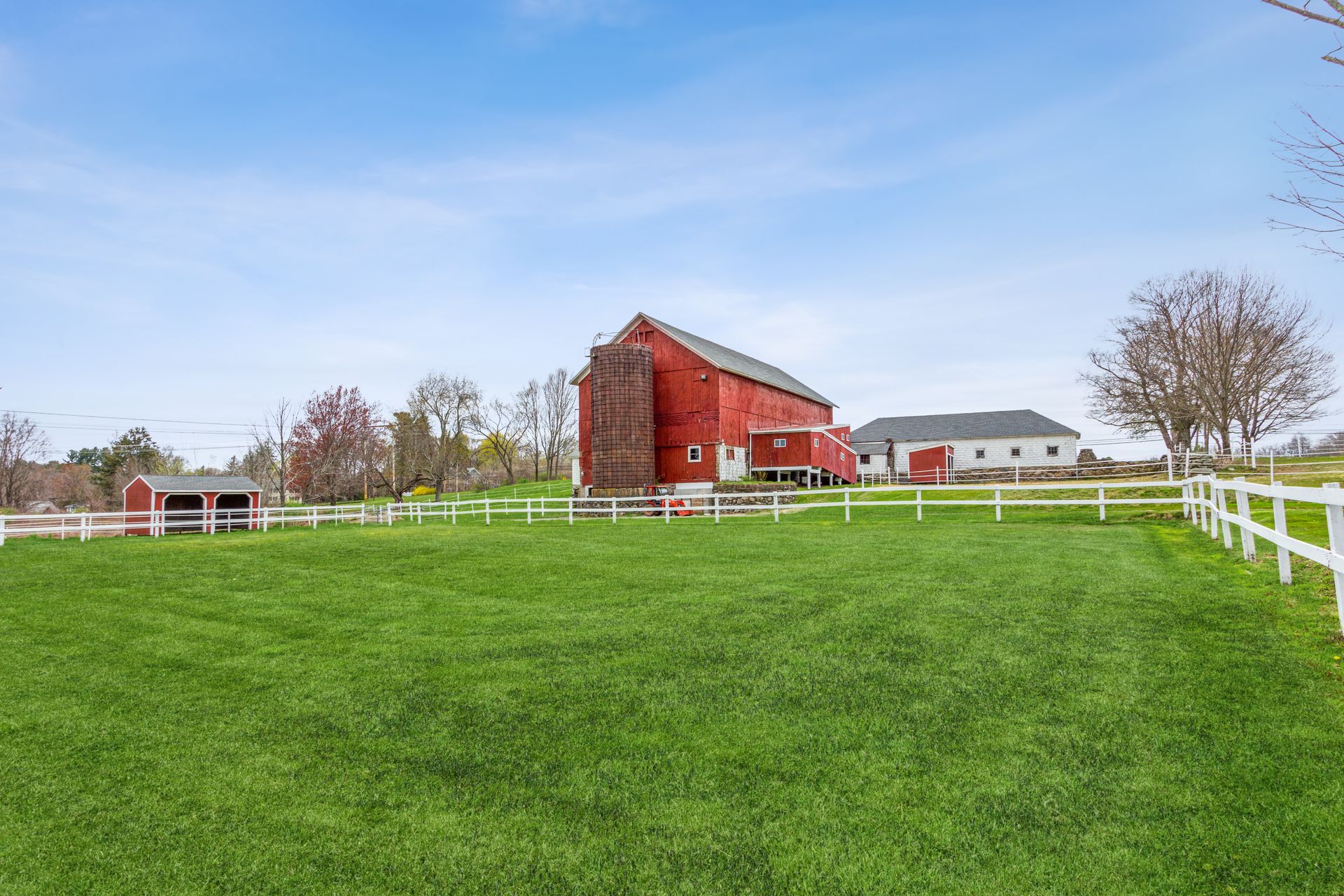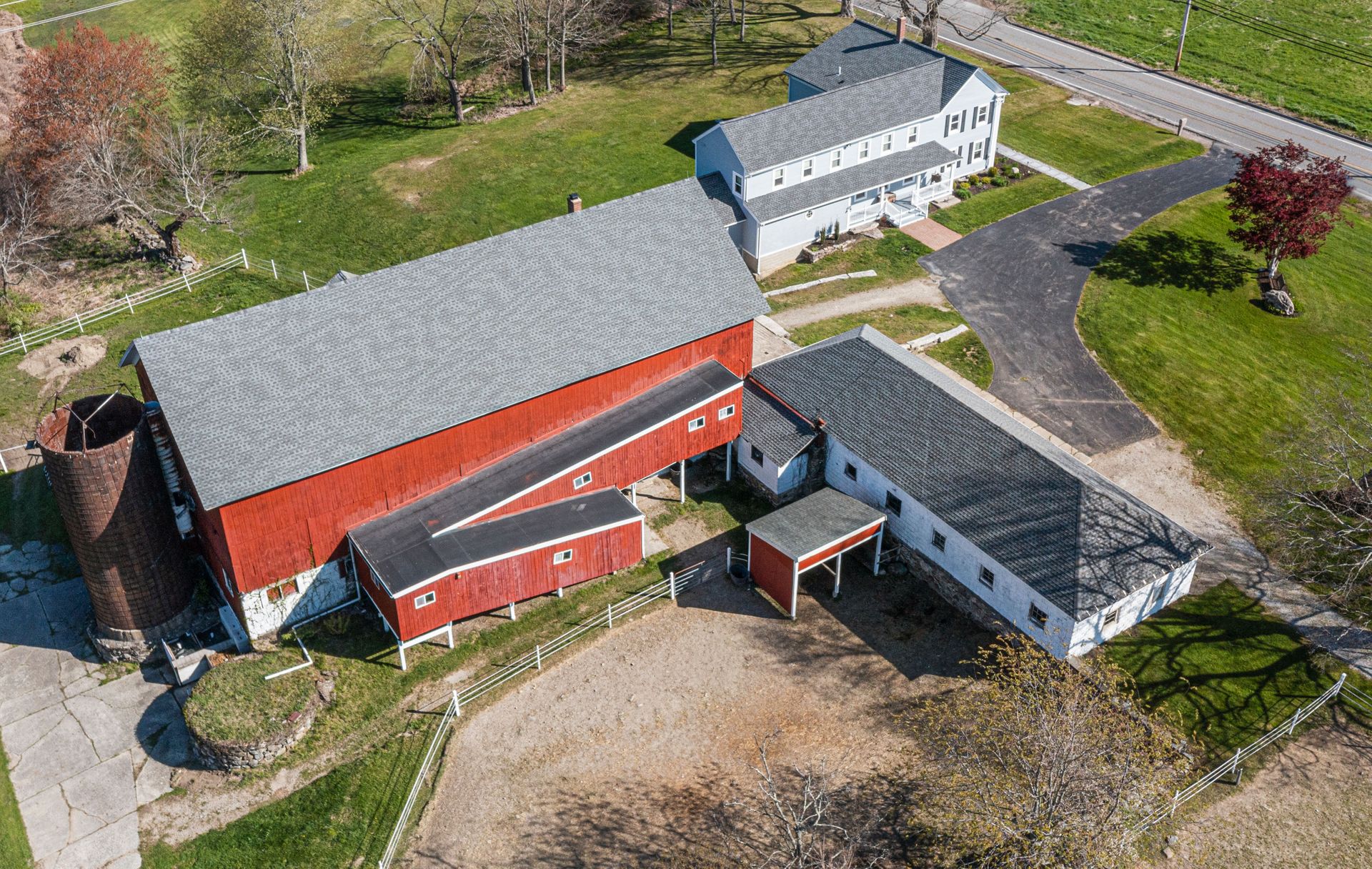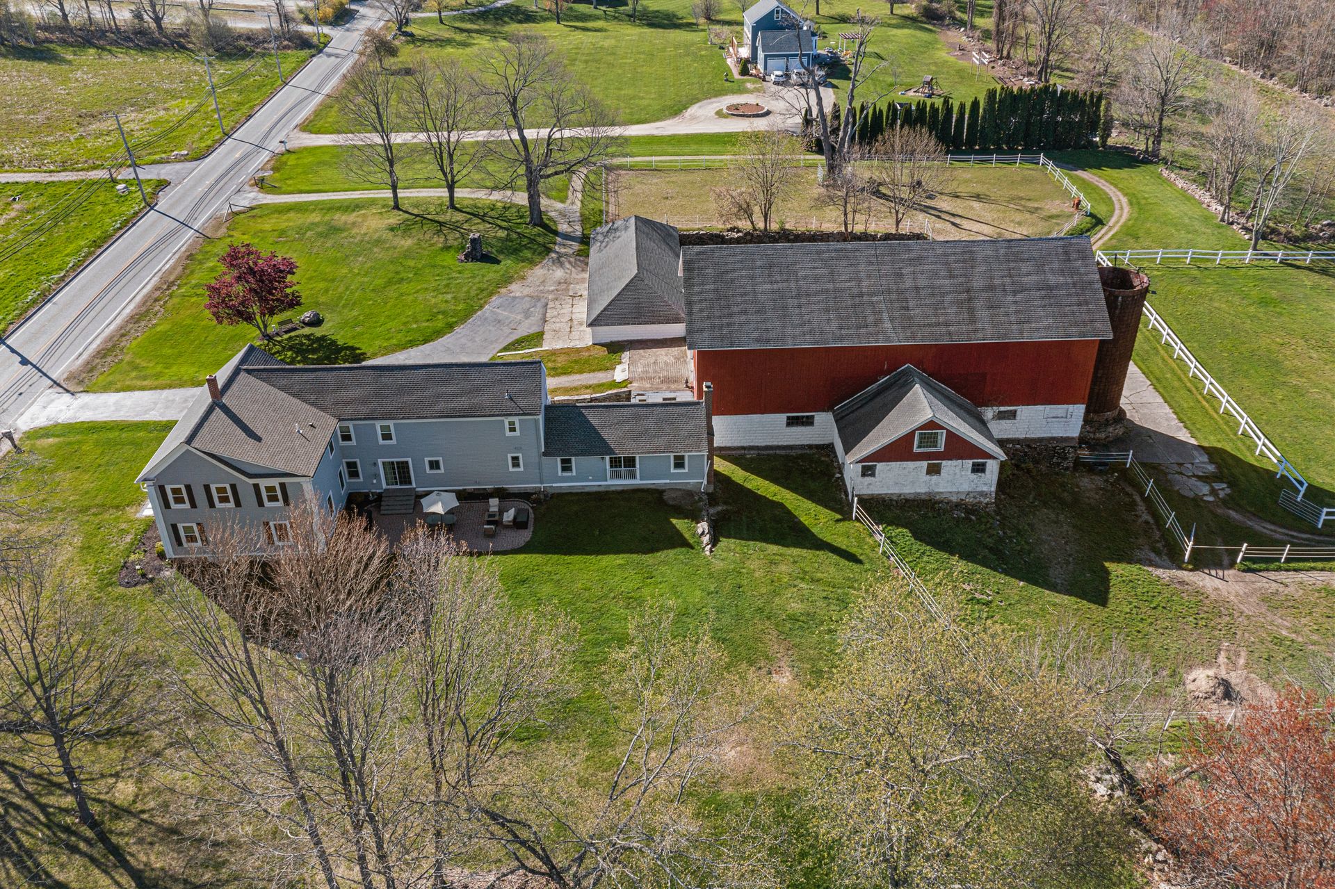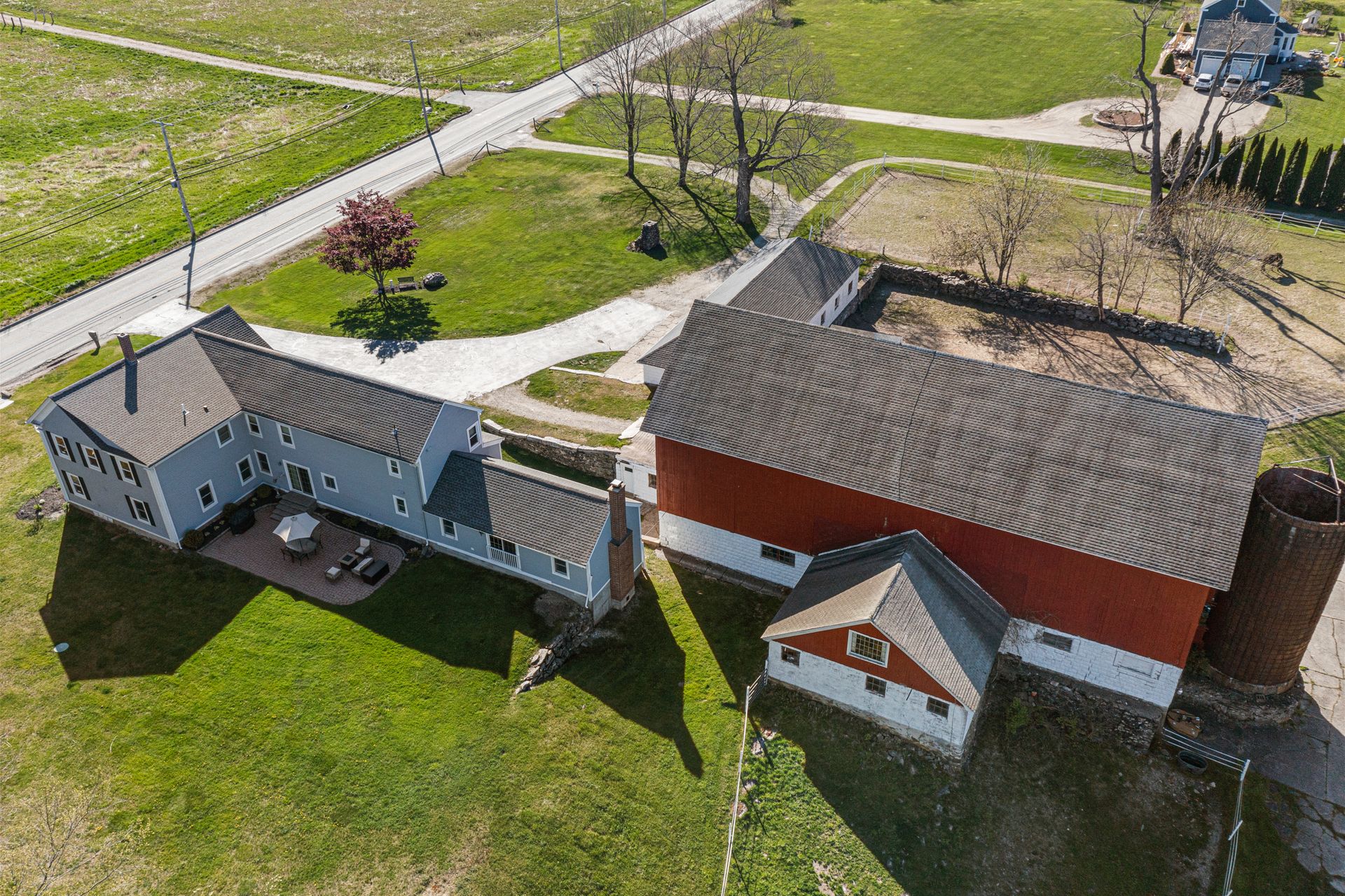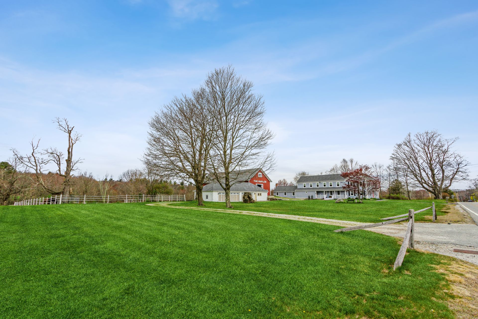 Picturesque and iconic 10+ acre Equestrian property and residence, known as "The Maples" farm will delight you! A beautifully updated and modernized 4,200 square foot Colonial home offers the character of yesteryear with today's amenities. The lovely formal dining room and the massive remodeled Kitchen with granite, stainless steel, dining area and efficient pellet stove make great gathering places! Great Room has beamed vaulted ceilings, stone fireplace and wide plank wood floors! Enormous light-filled primary suite with nine windows has remodeled granite bathroom and walk-in closet. Two more remodeled full baths! This home has been meticulously maintained and has all newer systems, roof and windows. Wonderful three-story 3,700 square foot barn with original hewn wood floors, 10 newer large stalls, tack room, hayloft, enclosed ramp structure, power/water, storage. Lighted 150x100 outdoor arena, two acres of pastures with expansion potential, RAMM fencing and two large Run-Ins. Four plus bay garage! Relax on the spacious patio and enjoy gorgeous scenic views, seasonal lake views and steps to the beach. Just magnificent!