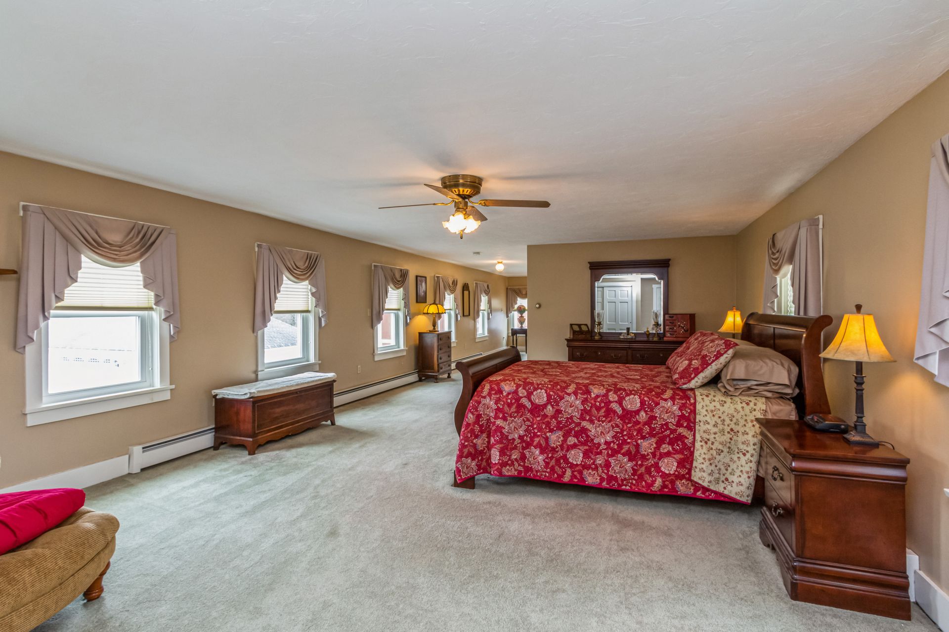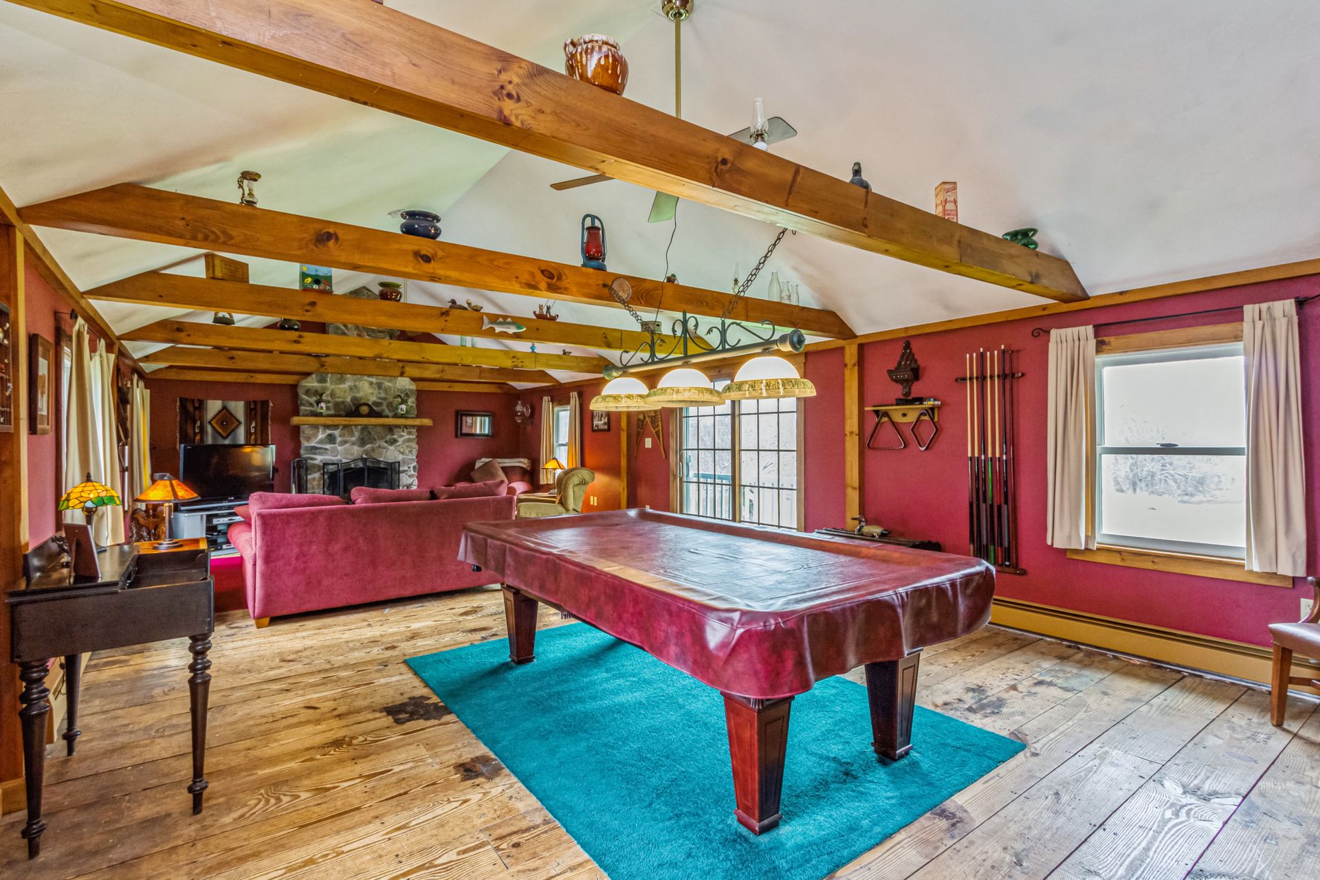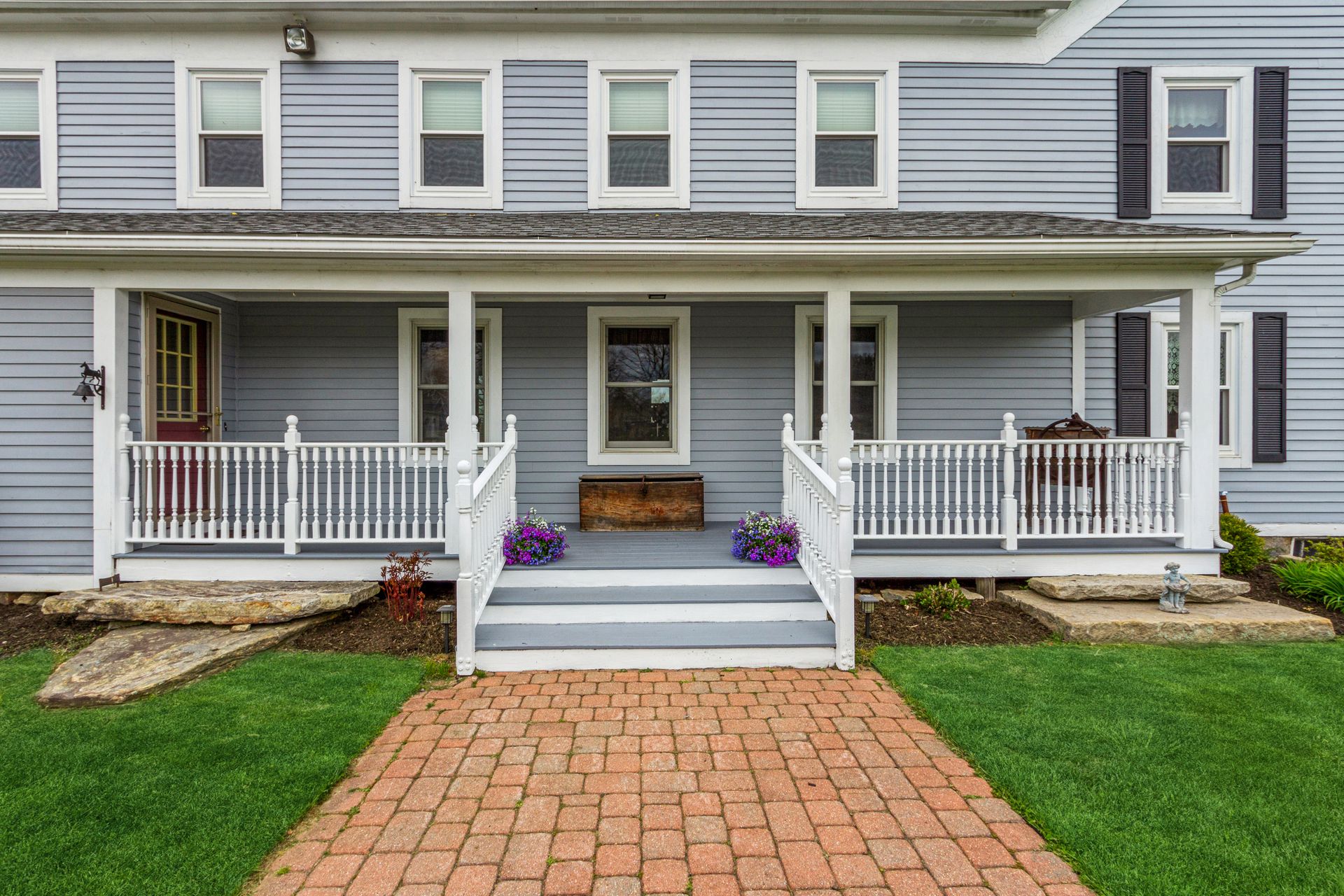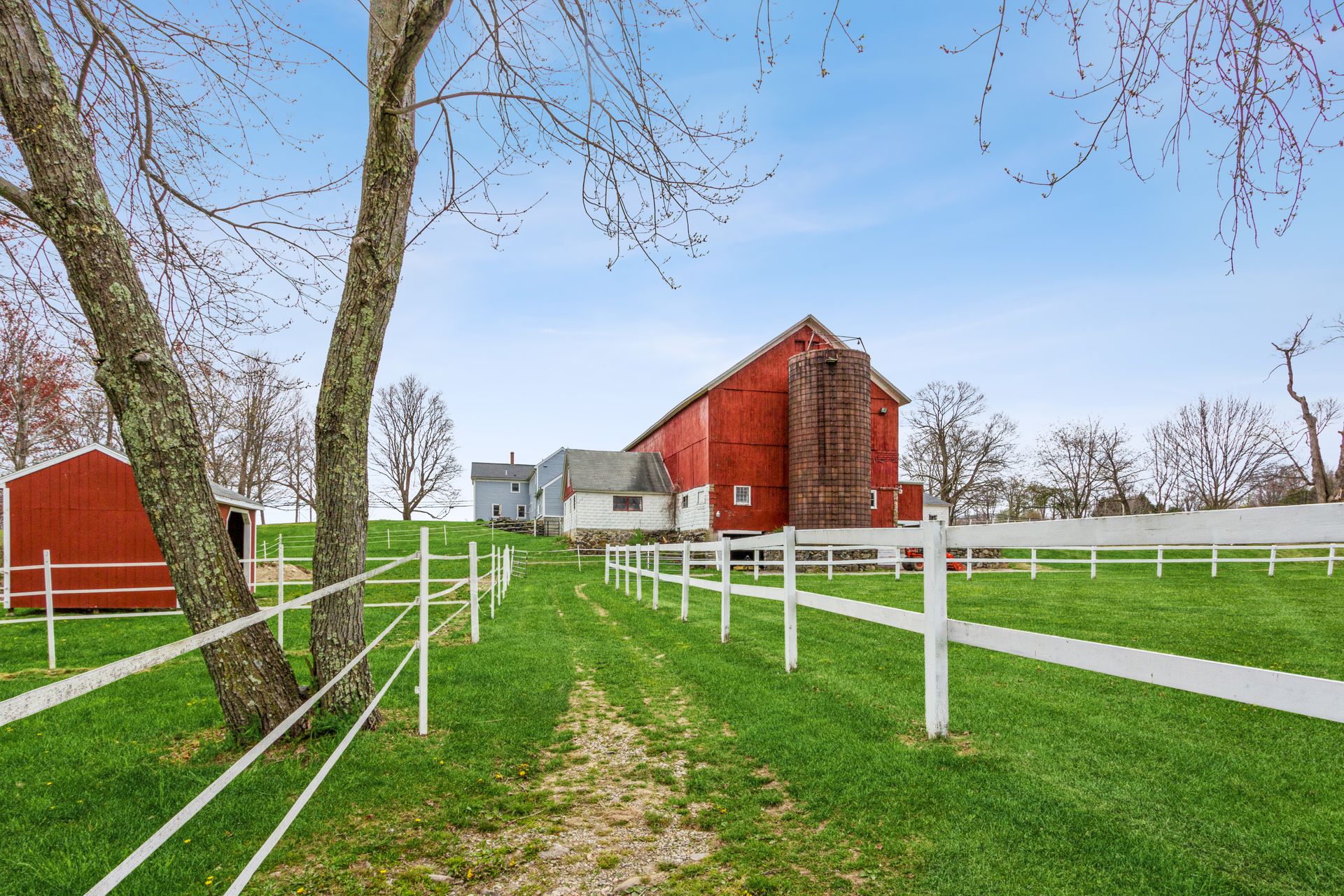 Picturesque and iconic 10+ acre Equestrian property and residence, known as "The Maples" farm will delight you! A beautifully updated and modernized 4,200 square foot Colonial home offers the character of yesteryear with today's amenities. The lovely formal dining room and the massive remodeled Kitchen with granite, stainless steel, dining area and efficient pellet stove make great gathering places! Great Room has beamed vaulted ceilings, stone fireplace and wide plank wood floors! Enormous light-filled primary suite with nine windows has remodeled granite bathroom and walk-in closet. Two more remodeled full baths! This home has been meticulously maintained and has all newer systems, roof and windows. Wonderful three-story 3,700 square foot barn with original hewn wood floors, 10 newer large stalls, tack room, hayloft, enclosed ramp structure, power/water, storage. Lighted 150x100 outdoor arena, two acres of pastures with expansion potential, RAMM fencing and two large Run-Ins. Four plus bay garage! Relax on the spacious patio and enjoy gorgeous scenic views, seasonal lake views and steps to the beach. Just magnificent!