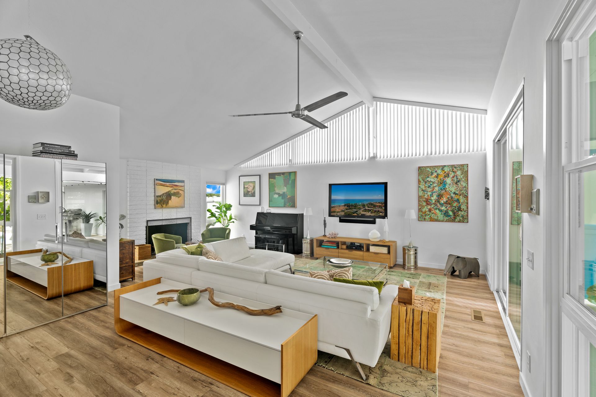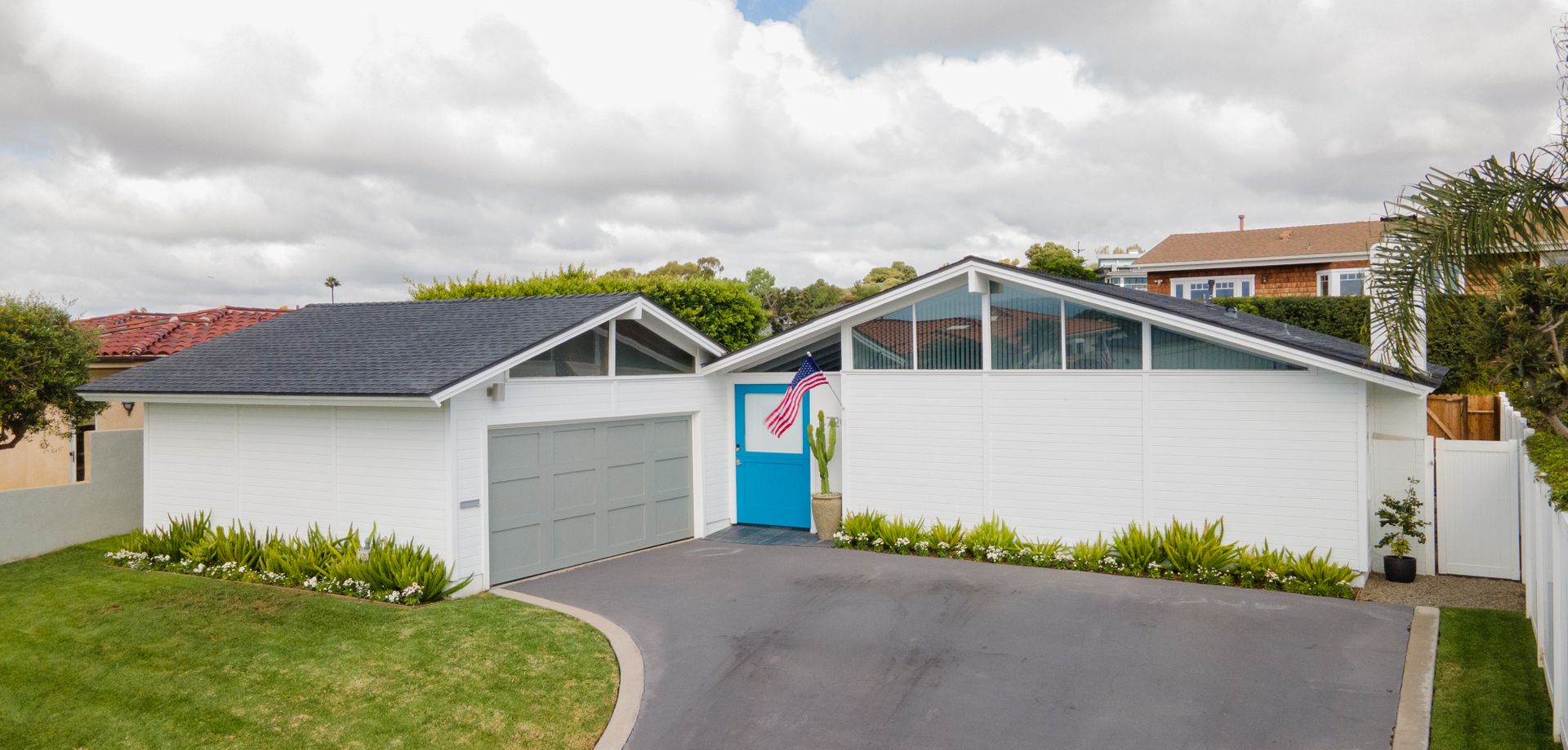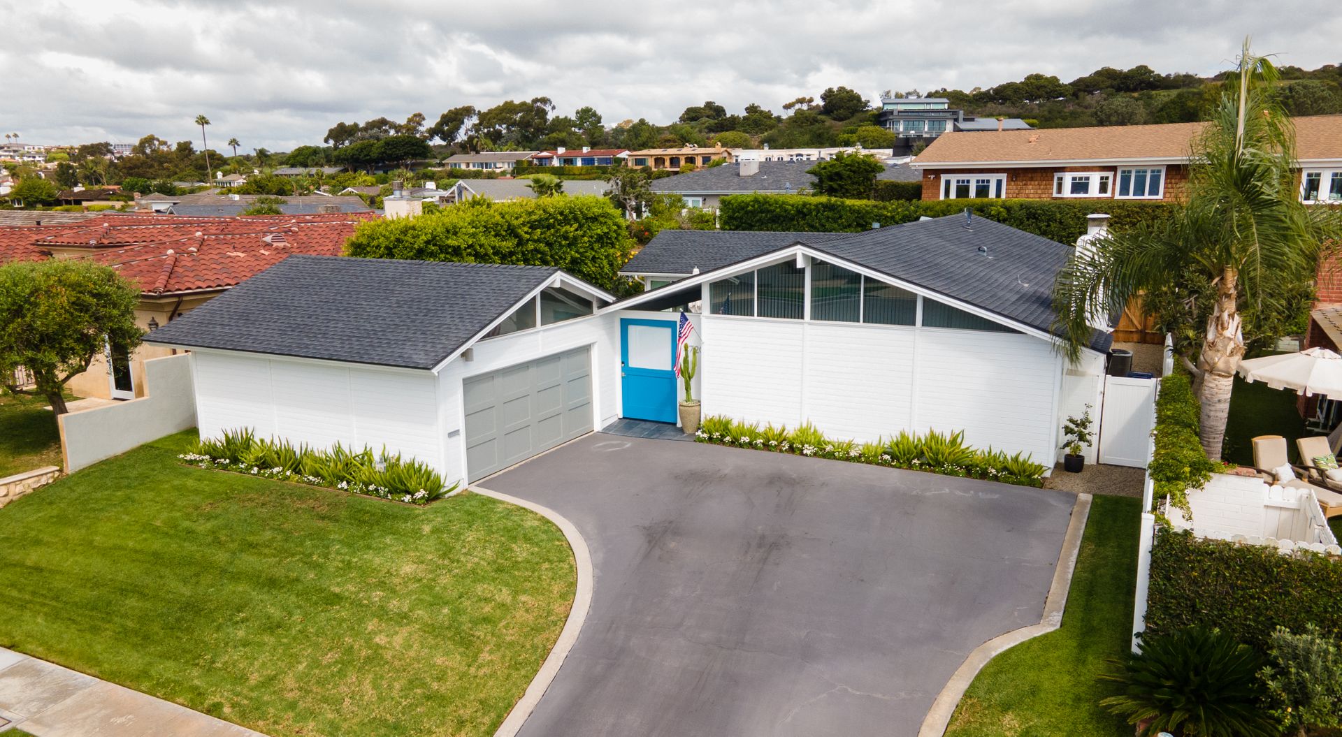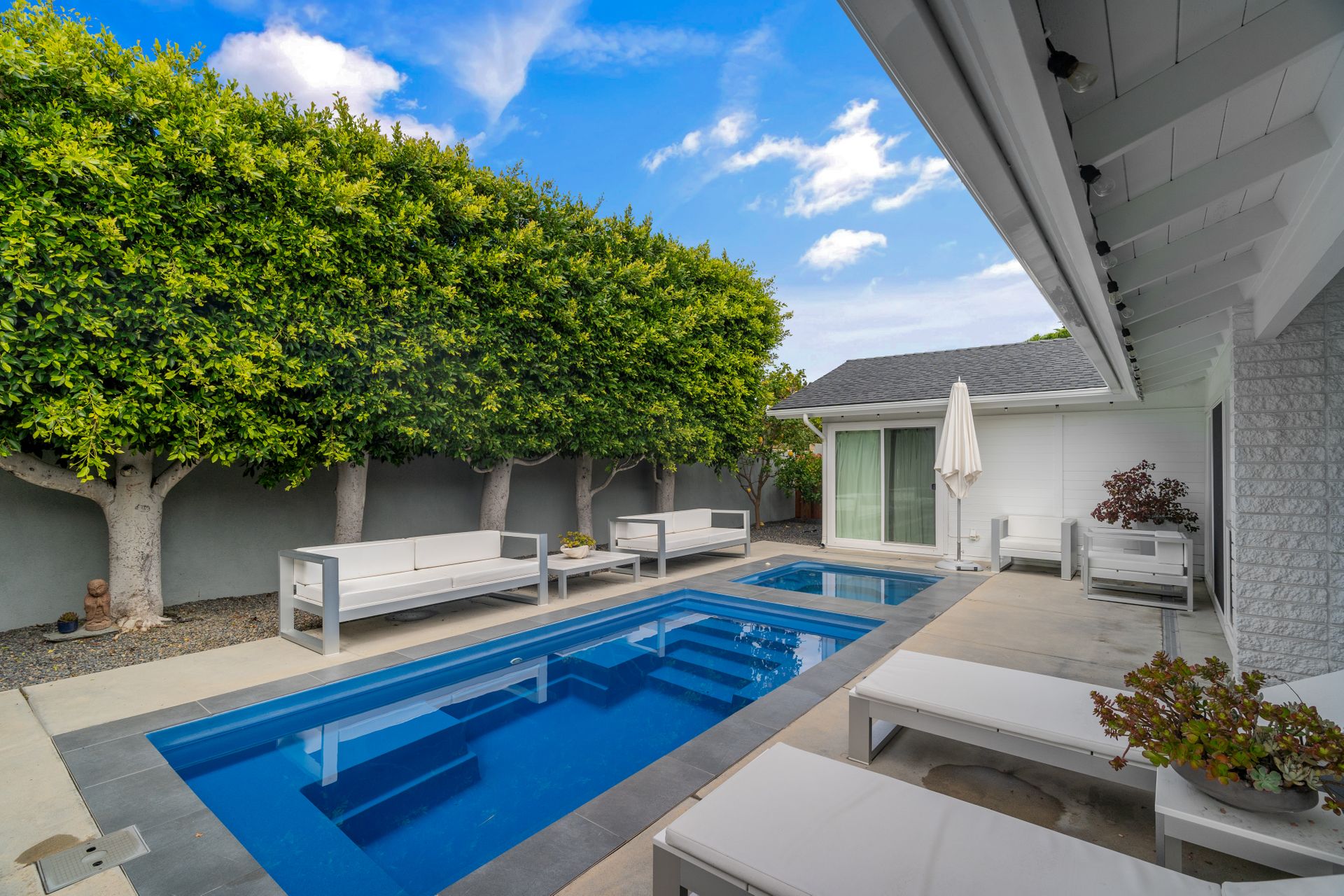 Situated in Cameo Highlands, this super cool mid-century modern, single level, 3-bedroom pool home supplies soaring ceilings, tons of windows and an open concept. The remodeled kitchen has sprawling counters, a country-style sink, stainless steel appliances, a built-in microwave, ample cabinetry and a breakfast bar overlooking the living room with a stacked masonry fireplace and hearth. The large dining room has a sliding door that opens to a covered courtyard, alongside the back yard replete with pool and spa. With organic lighting, the spacious primary suite features a private bath with a newer frameless glass shower. All newer electrical, plumbing, fencing, roof, driveway, windows and garage door. Live the life of luxury and comfort with proximity to renown schools, exquisite dining, famed shopping and world-class beaches – including private beach access.
