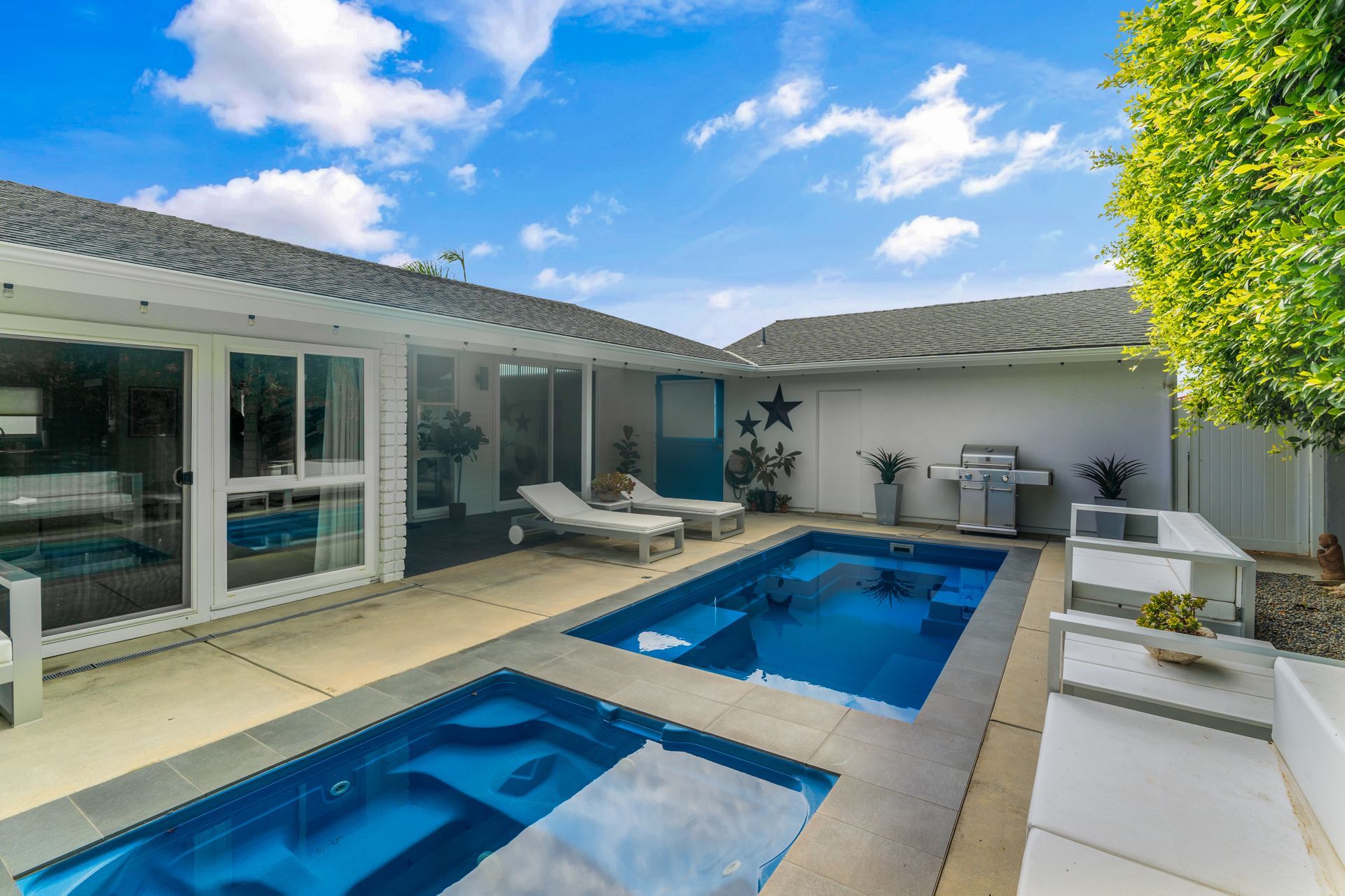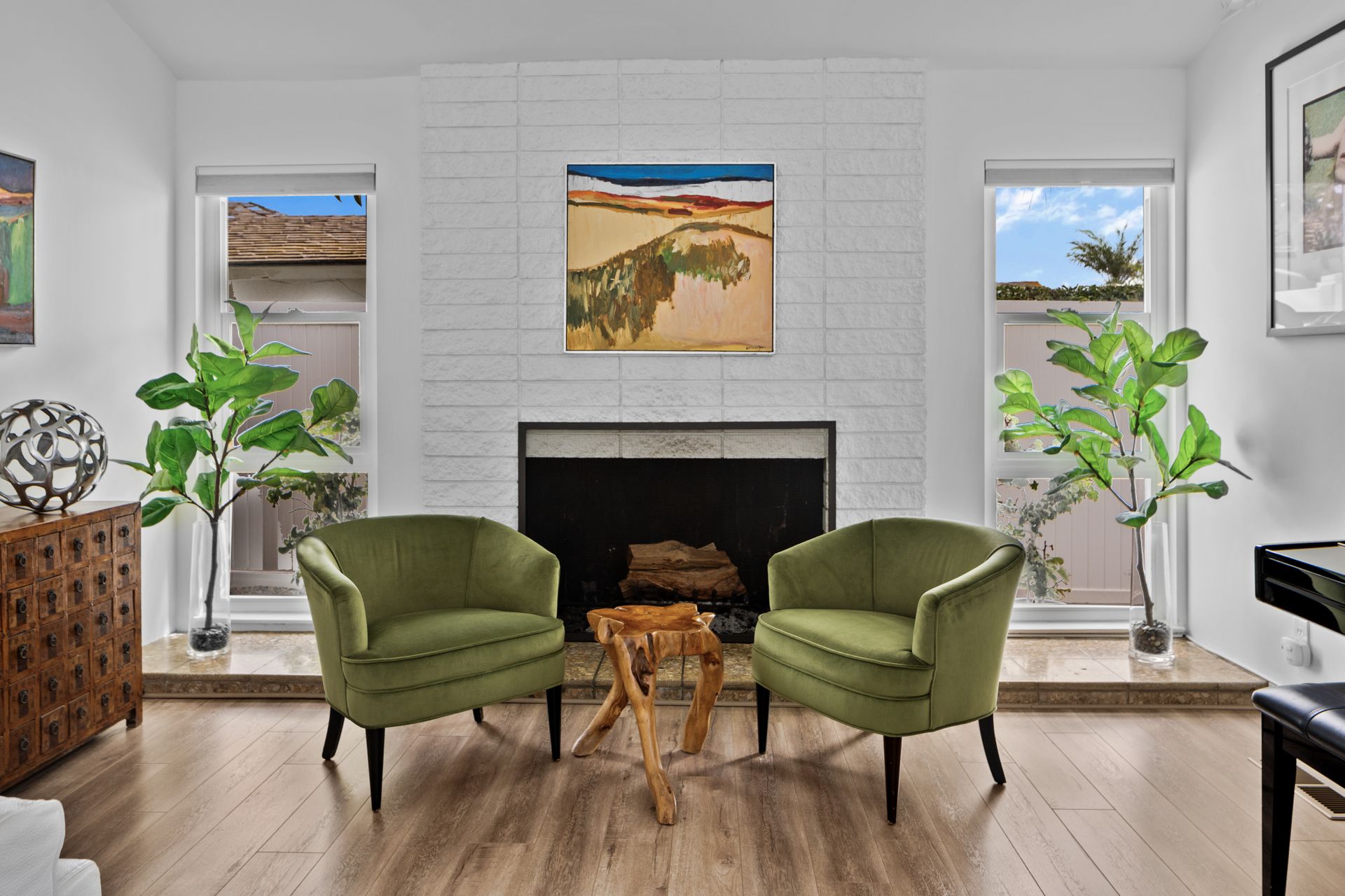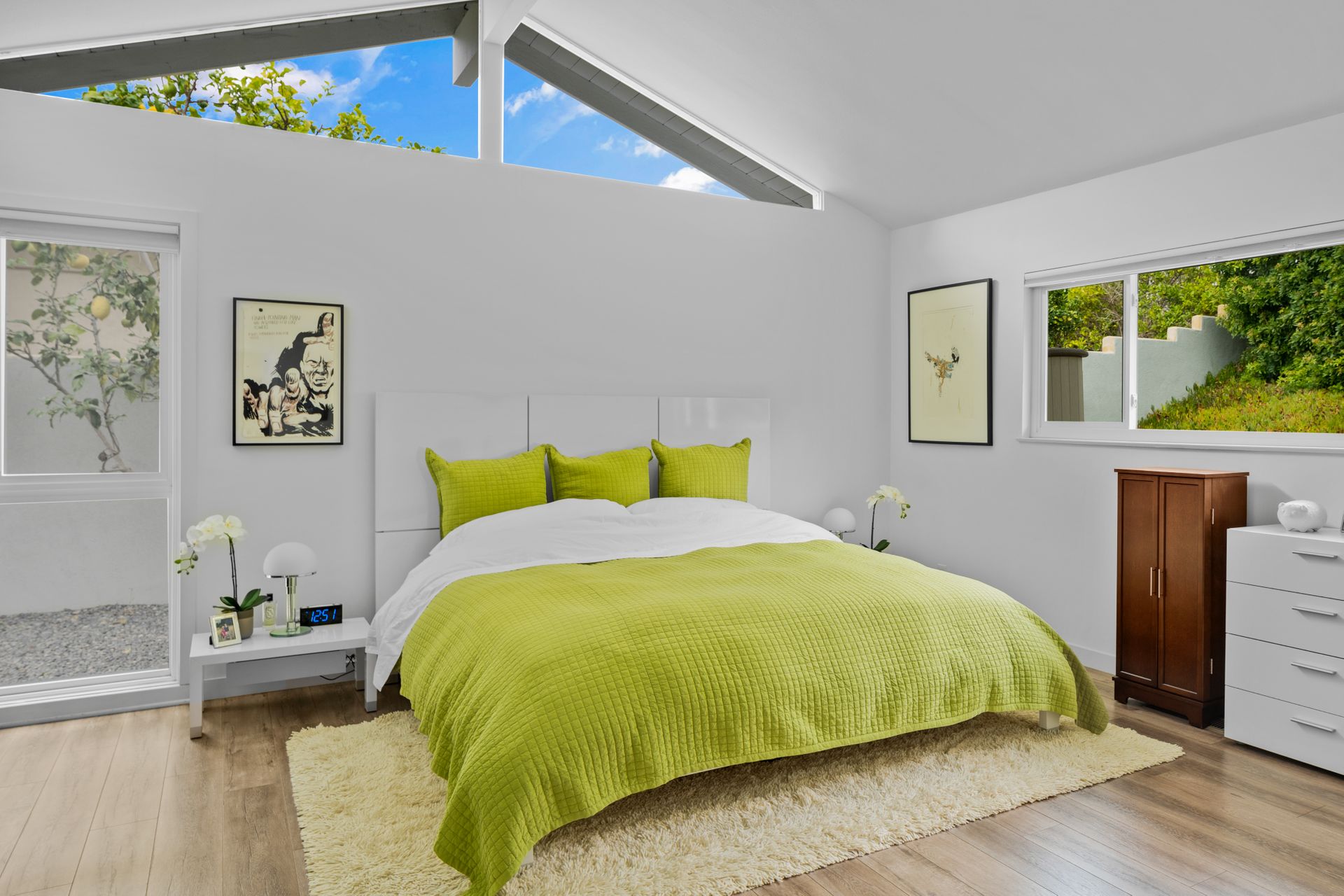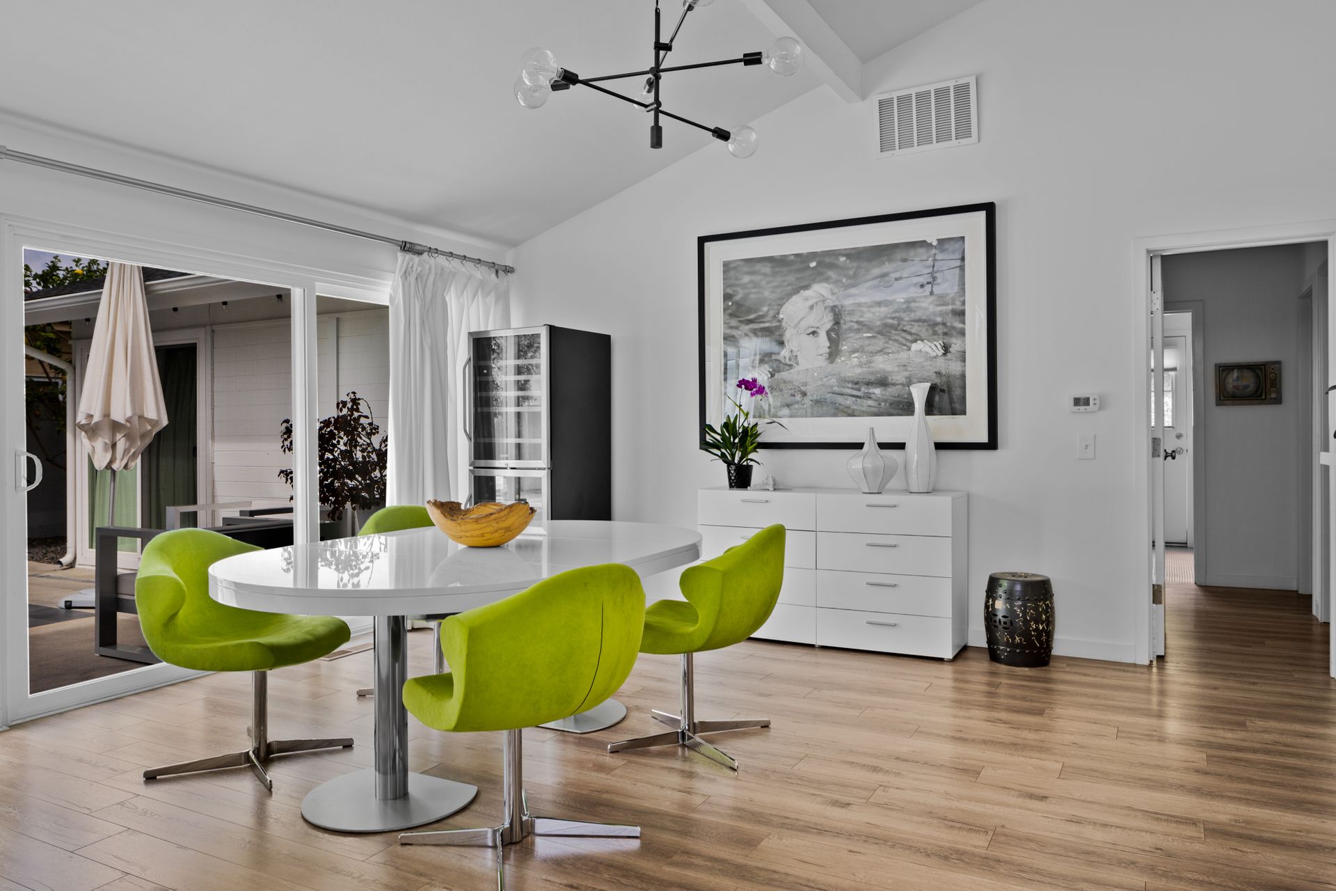 Situated in Cameo Highlands, this super cool mid-century modern, single level, 3-bedroom pool home supplies soaring ceilings, tons of windows and an open concept. The remodeled kitchen has sprawling counters, a country-style sink, stainless steel appliances, a built-in microwave, ample cabinetry and a breakfast bar overlooking the living room with a stacked masonry fireplace and hearth. The large dining room has a sliding door that opens to a covered courtyard, alongside the back yard replete with pool and spa. With organic lighting, the spacious primary suite features a private bath with a newer frameless glass shower. All newer electrical, plumbing, fencing, roof, driveway, windows and garage door. Live the life of luxury and comfort with proximity to renown schools, exquisite dining, famed shopping and world-class beaches – including private beach access.